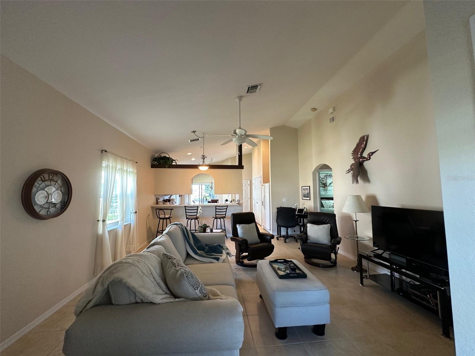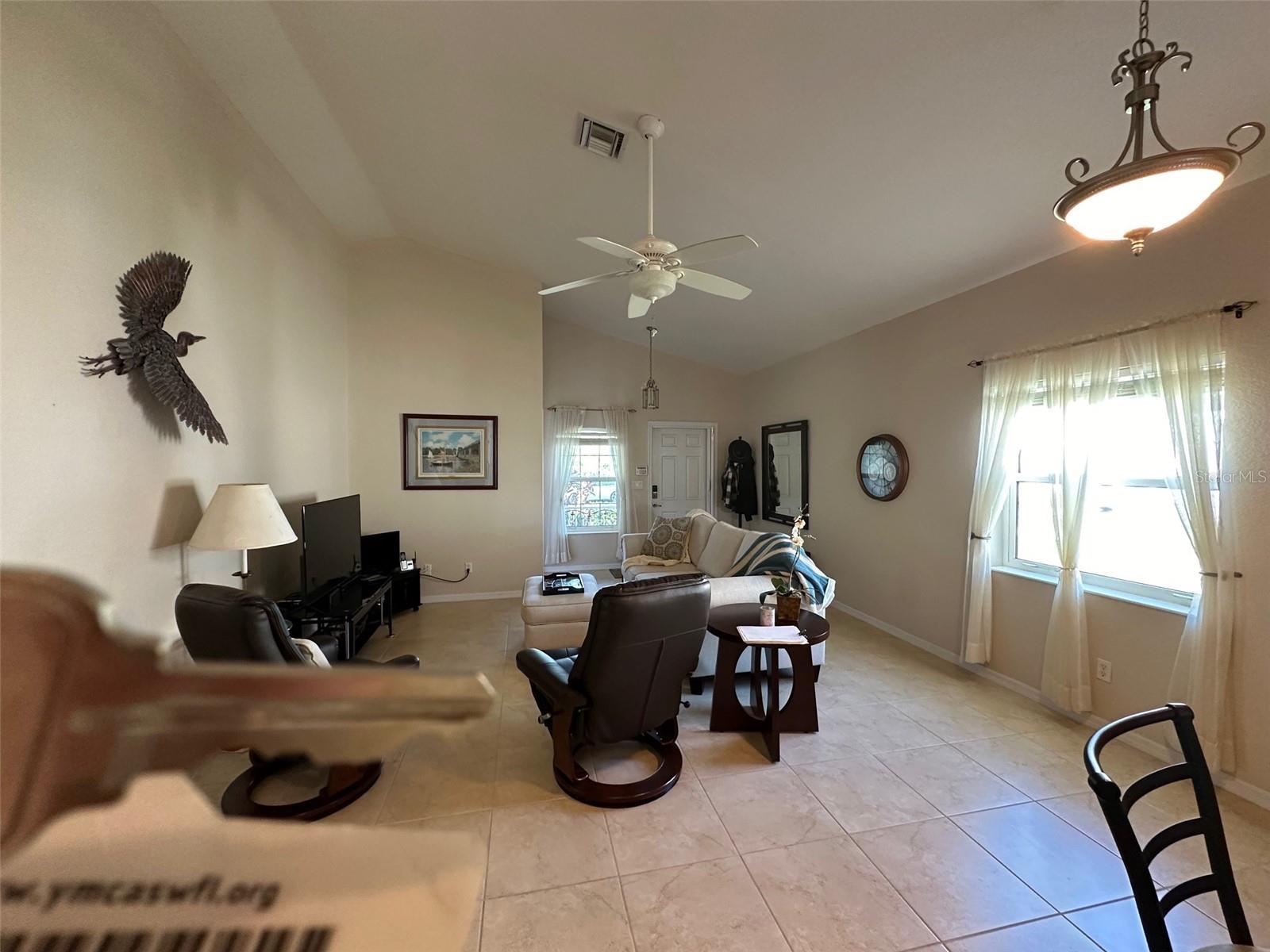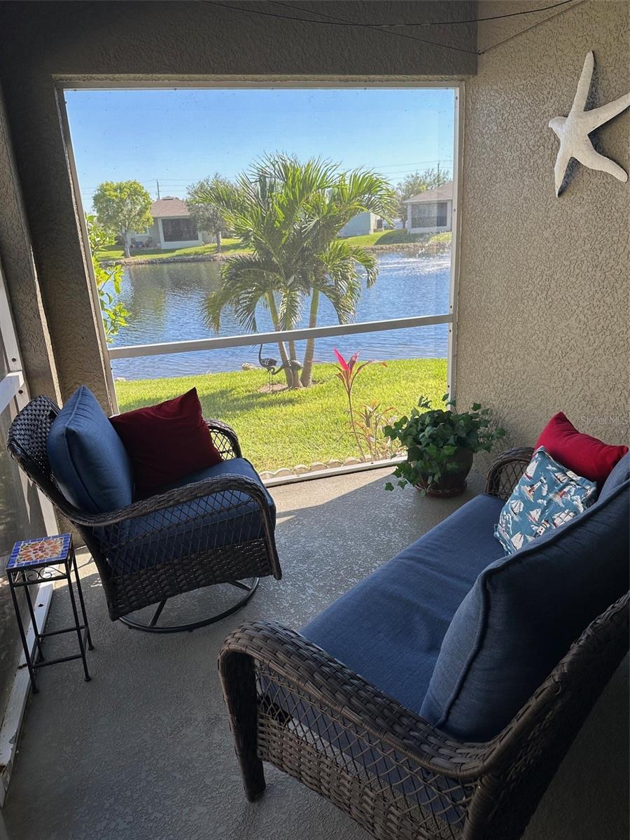 Best buy in town! Welcome home to this fantastic furnished lakefront property in the serene gated 55+ community of Rio Villa Lakes. This charming 3-bedroom, 2-bath home offers the convenience of a two-car garage and is situated on a quiet cul-de-sac, beautifully landscaped with brick pavers leading up to the house, including the driveway, all while overlooking the tranquil lake and its soothing water fountain. Step inside this light and bright home, featuring an open and split floor plan designed for comfortable living. The spacious living room and dining area seamlessly blend, complemented by solid surface countertops. The large breakfast bar and eat-in kitchen make meal preparation enjoyable, and sliding doors provide easy access to the lanai. Additionally, there's a convenient inside laundry room. The master bedroom boasts a stunning view of the lake, while the adjoining bath features double sinks and a shower/tub combo — perfect for relaxation. The guest bedrooms come with ample closet space, ensuring plenty of storage for you and your guests. Recent updates enhance this home’s appeal, including a new roof (2023), a new A/C system (2023), and a new hot water heater (2022). It’s equipped with hurricane windows for added safety, gutters, garage door screens, lakefront stones for erosion control, high-rise toilets, garbage bin fencing, and a security camera for peace of mind. Living in Rio Villa Lakes means enjoying a hassle-free lifestyle with amenities that include a heated community pool, tennis courts, a fitness center, and a spacious 2400 sq ft clubhouse. This vibrant community is just minutes from historic downtown Punta Gorda, where you'll find shopping, dining, waterfront parks, fishing ramps, boat docks, art galleries, and extensive walking and biking paths, as well as medical facilities. Plus, don't miss out on the local farmers markets on weekends and the delightful shops and dining options at Fisherman’s Village. This home is truly a must-see, offering a perfect blend of comfort, style, and unparalleled community amenities!