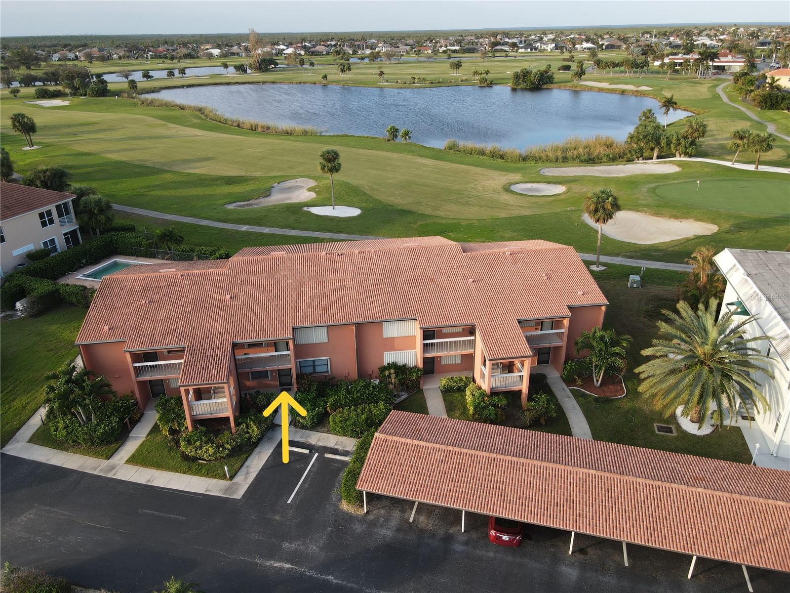 Discover Your Dream Condo in Punta Gorda! Welcome to the charming City of Punta Gorda, where this delightful condo in Burnt Store Isles awaits! Overlooking the 8th hole of Twin Isles Golf and Country Club, this spacious 1,390 sq. ft. gem features two generously sized bedrooms and two baths, perfect for comfortable living. Step outside to your 14 x 9 covered and screened lanai, ideal for enjoying the vibrant atmosphere of golfers enjoying their day. As a ground floor unit, you’ll appreciate the convenience of easy access—perfect for a quick pet walk or enjoying the outdoors. The open layout creates a sense of spaciousness, with one bedroom measuring 14 x 14 and the second at 14 x 12. Enjoy a well-appointed laundry room with ample shelving, and savor the view of the golf course from the kitchen, dining area, and living room. This condo is freshly painted, featuring new ceiling fans and light fixtures, plus a stylish kitchen with stainless steel appliances and granite countertops. Additional perks include a covered parking spot with a handy storage closet, accordion shutters for easy storm preparation, and a proven track record of no flooding—offering you peace of mind. Relax at the community pool or take a quick stroll to explore the vibrant Punta Gorda lifestyle. With a booming pickleball scene and access to numerous golf courses, you'll never run out of activities. Plus, convenience is at your doorstep with a Publix Shopping Center and Home Depot just a block away. Downtown Punta Gorda boasts over 20 unique restaurants, lively pubs, and a bustling Saturday morning farmers market, ensuring there's always something to enjoy. With scenic walking trails and Charlotte Harbor only a mile away, this location truly has it all! Don’t miss out on the chance to call this immaculate condo your home. It’s move-in ready and can close in just two weeks! Schedule your showing today and embrace the Punta Gorda lifestyle.