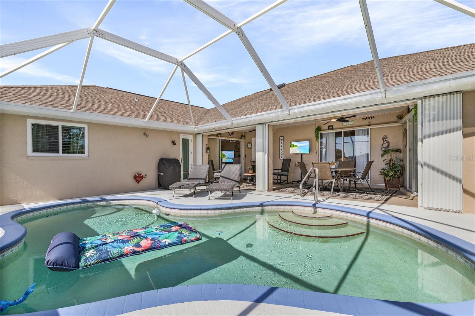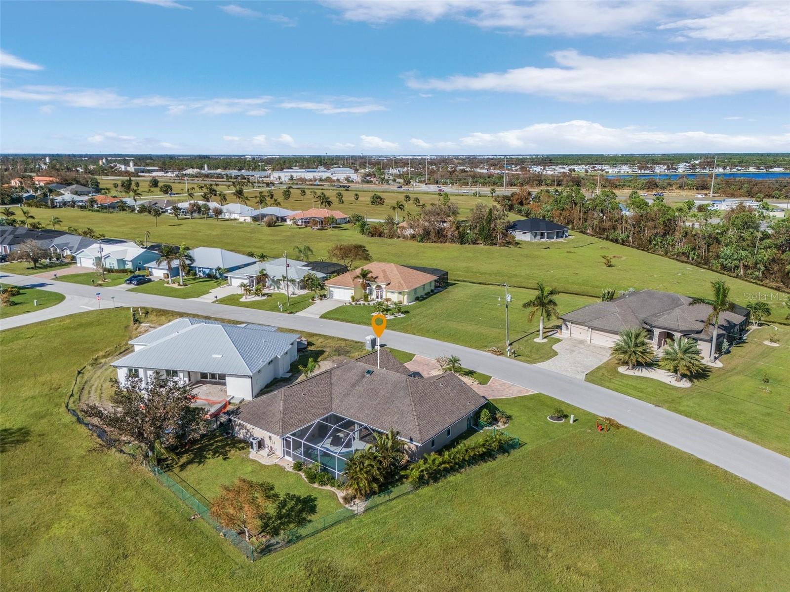 REDUCED!! NOT IN FLOOD ZONE-Welcome to Burnt Store Meadows located in the City of Punta Gorda. Discover a piece of paradise in this 4 bedroom, 2 bath pool home with added bonus room. As you approach, a circular driveway & lush tropical landscaping creates an inviting first impression. Upon entering you will be welcomed by your dining room filled with natural light. Your open concept kitchen, living room & breakfast area is perfect for entertaining. The master bath has dual sinks, walk in shower, 2 large closets and garden tub. This split floor plan ensures privacy and convenience. Ample closets are present in every bedroom.Roof 2017,Air Conditioner installed in 2020, Irrigation System 2023, Hot Water Tank 2016, Saltwater Generator, Pool Heater/Filter/ Pump 2022, Reverse Osmosis on sink 2022 and Hurricane Impact Windows 2024.There is also a Hurricane Impact Door to the beautiful secondary bathroom which leads to the outdoor pool area. Spend quality time under your 10x24 lanai complete with new ceiling fans and 3 pocket slider doors. This home backs up to a Greenbelt for added privacy. The fenced in yard is perfect for your family pets. This community is a short drive to Historic Downtown Punta Gorda, Charlotte Harbor and the popular Fisherman's Village.
