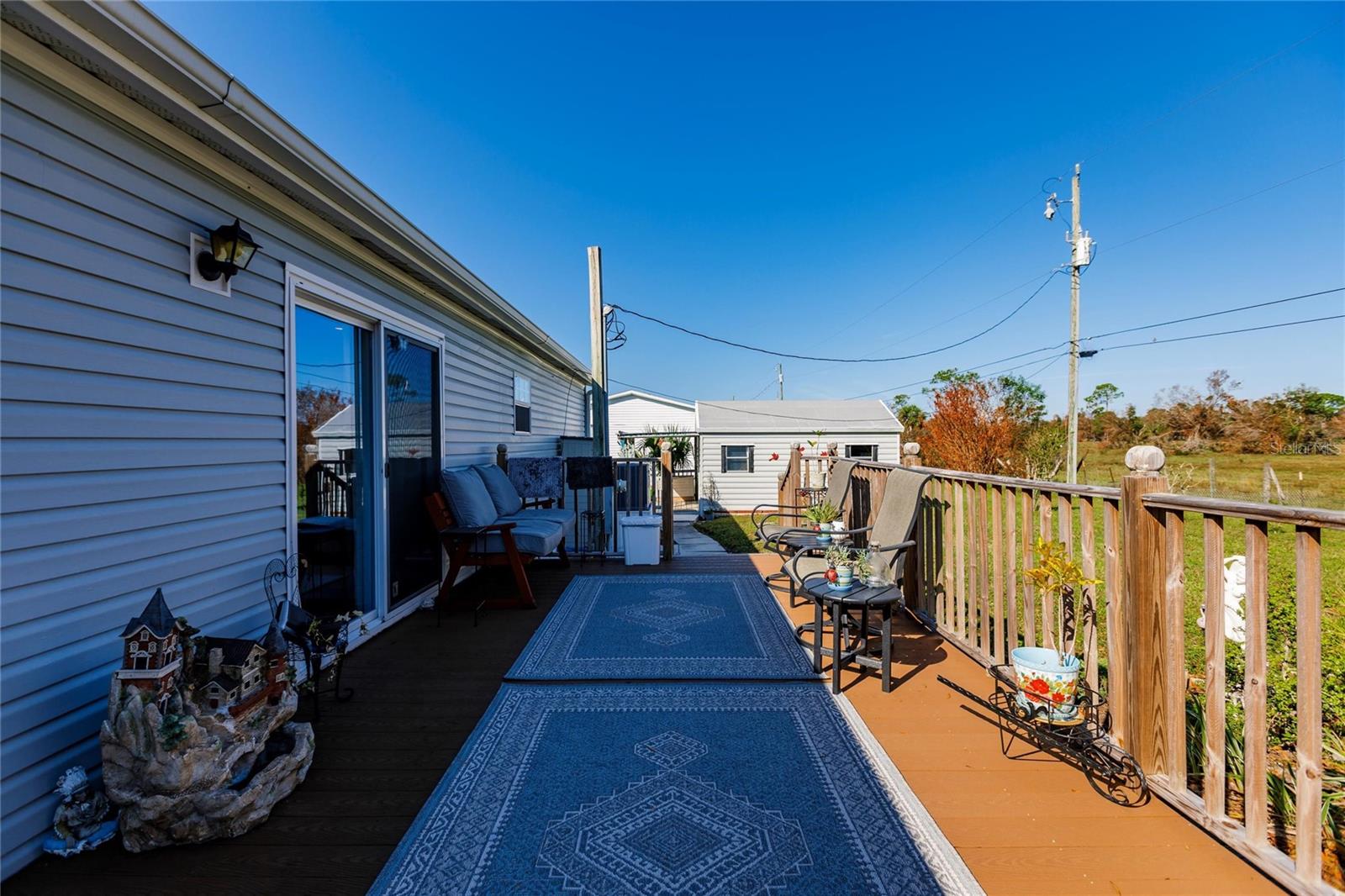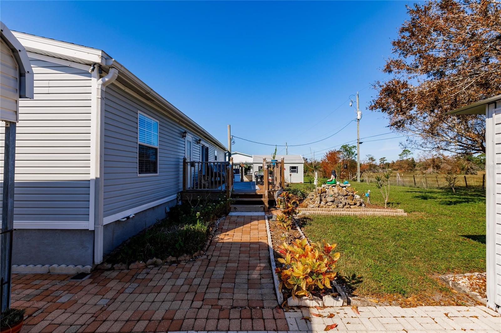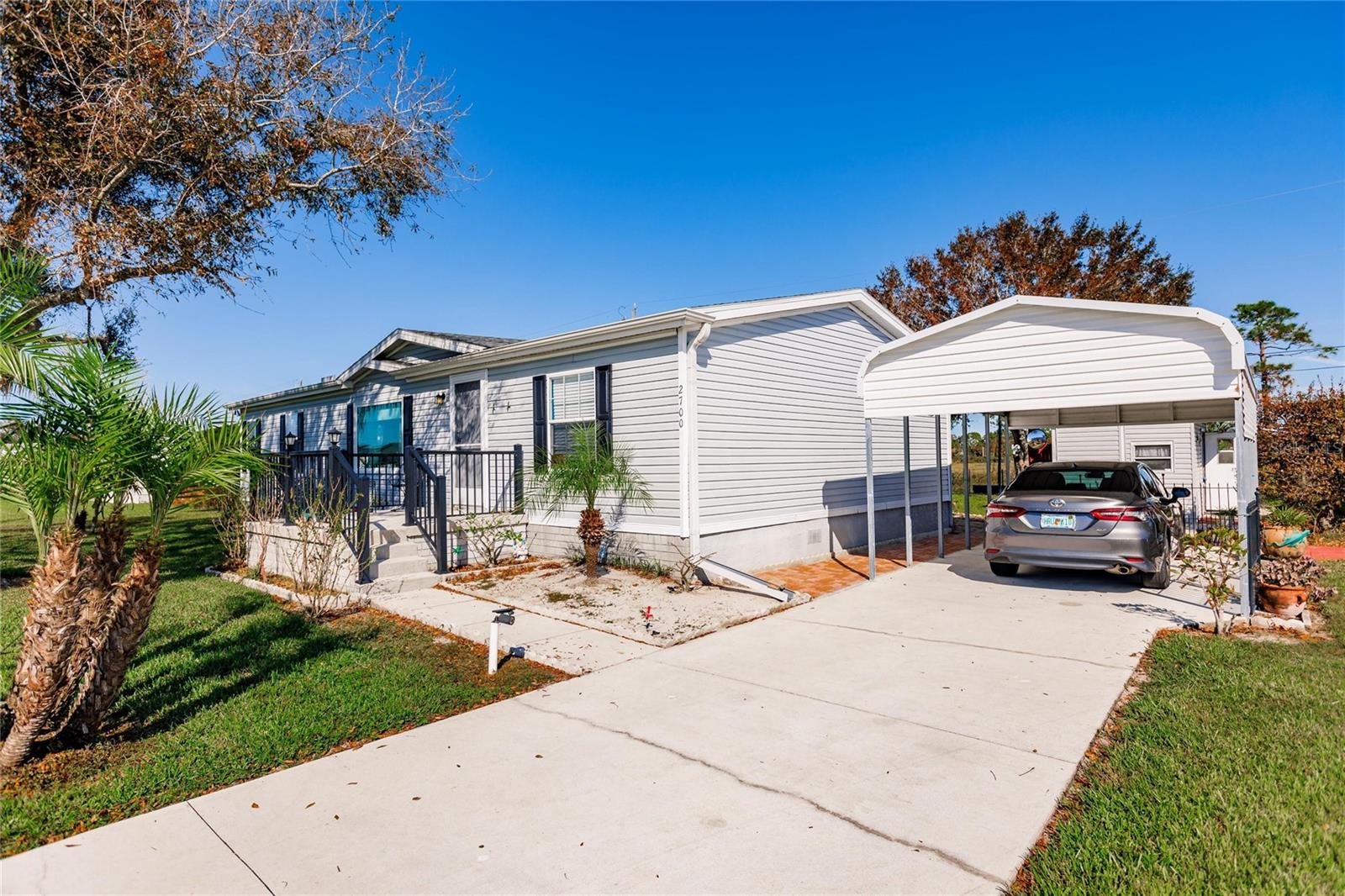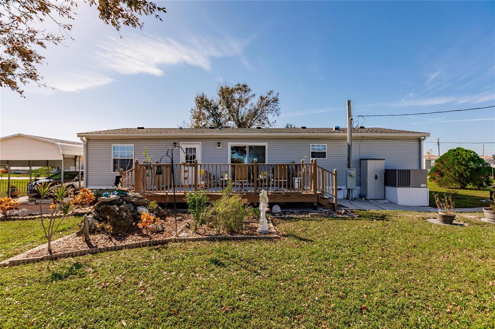 This 3 bedroom, 2 bath home is situated on over a third of an acre and is located in the rural area of Crystal Lake Community in Punta Gorda and offers wood plank laminate flooring in all main living areas, decorator light and fan fixtures, recessed lighting, soaring vaulted ceilings, and color accent walls with crowned molding. Bright and open floor plan with huge kitchen boasting warm wood cabinetry, granite counters, stainless appliances with 3 door fridge, pantry, and spacious dining area. The master suite will be your private retreat with walk in closet and en suite bath with garden soaking tub, spacious shower, and his and hers sinks. Large deck in the rear of the home overlooks private back yard for enjoying your morning coffee or afternoon drink! Other key features include new roof installed in 2022, new hot water heater, carport, septic recently pumped and new lid installed, 2 storage buildings, and RV port. Lots of storage for your vehicles and “toys”. Dedicated laundry room is equipped with new washer and dryer. Lake Access. Proximity to local waterways and beaches, dining, shopping, and golf courses makes this property ideal for the Florida lifestyle. Also, easy access to public parks with bike and walking trails and picnic areas, and boat ramps providing access to many waterways, beautiful Charlotte Harbor, Peace and Myakka Rivers, and the blue waters of the Gulf of Mexico. Just a short distance to historic downtown Punta Gorda and popular Fishermen’s Village with quaint shops and cafes. And easy access to Interstate 75 with Sarasota and Tampa to the North and Fort Myers and Naples to the South. Tastefully appointed home is waiting for you!