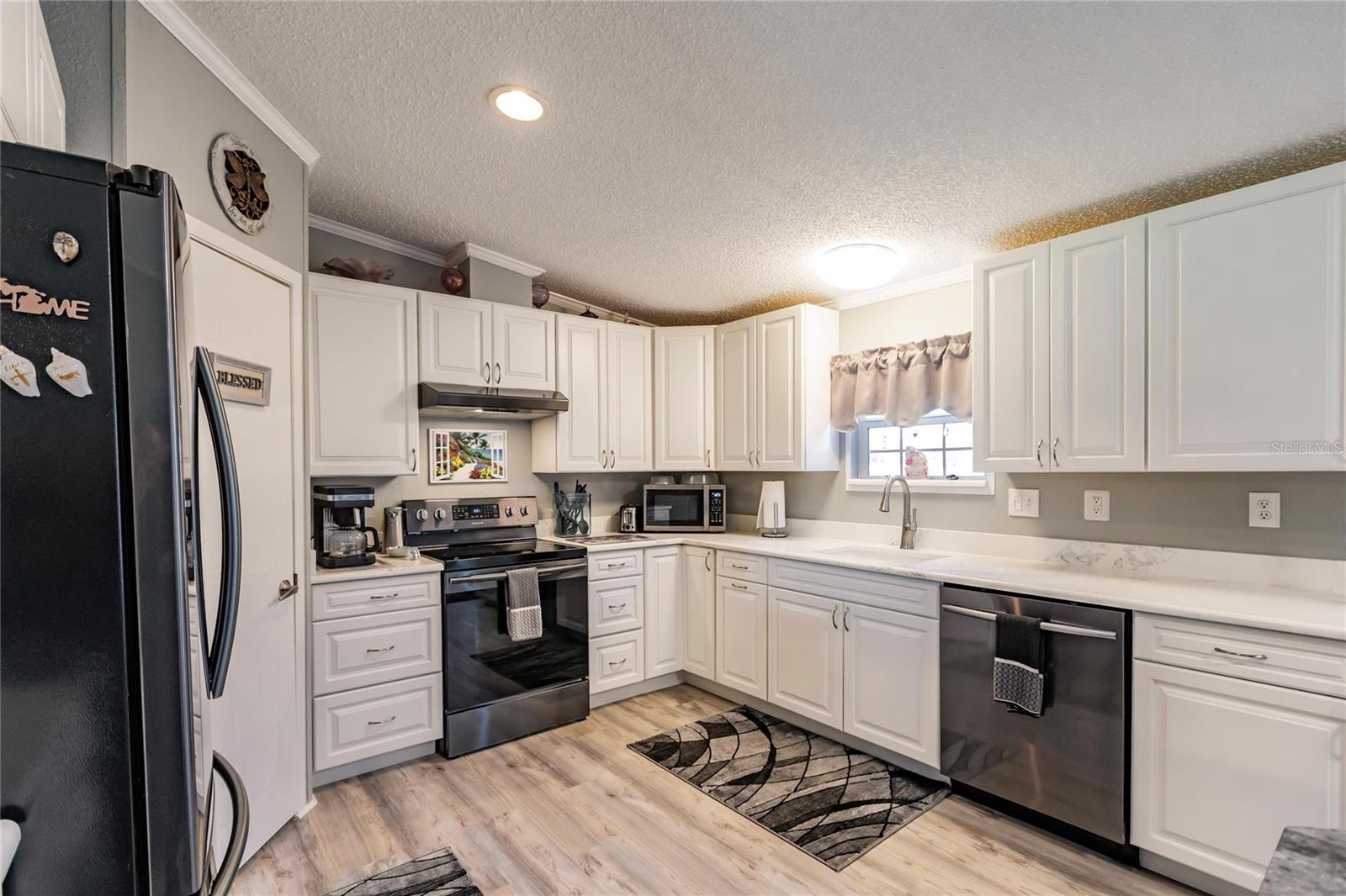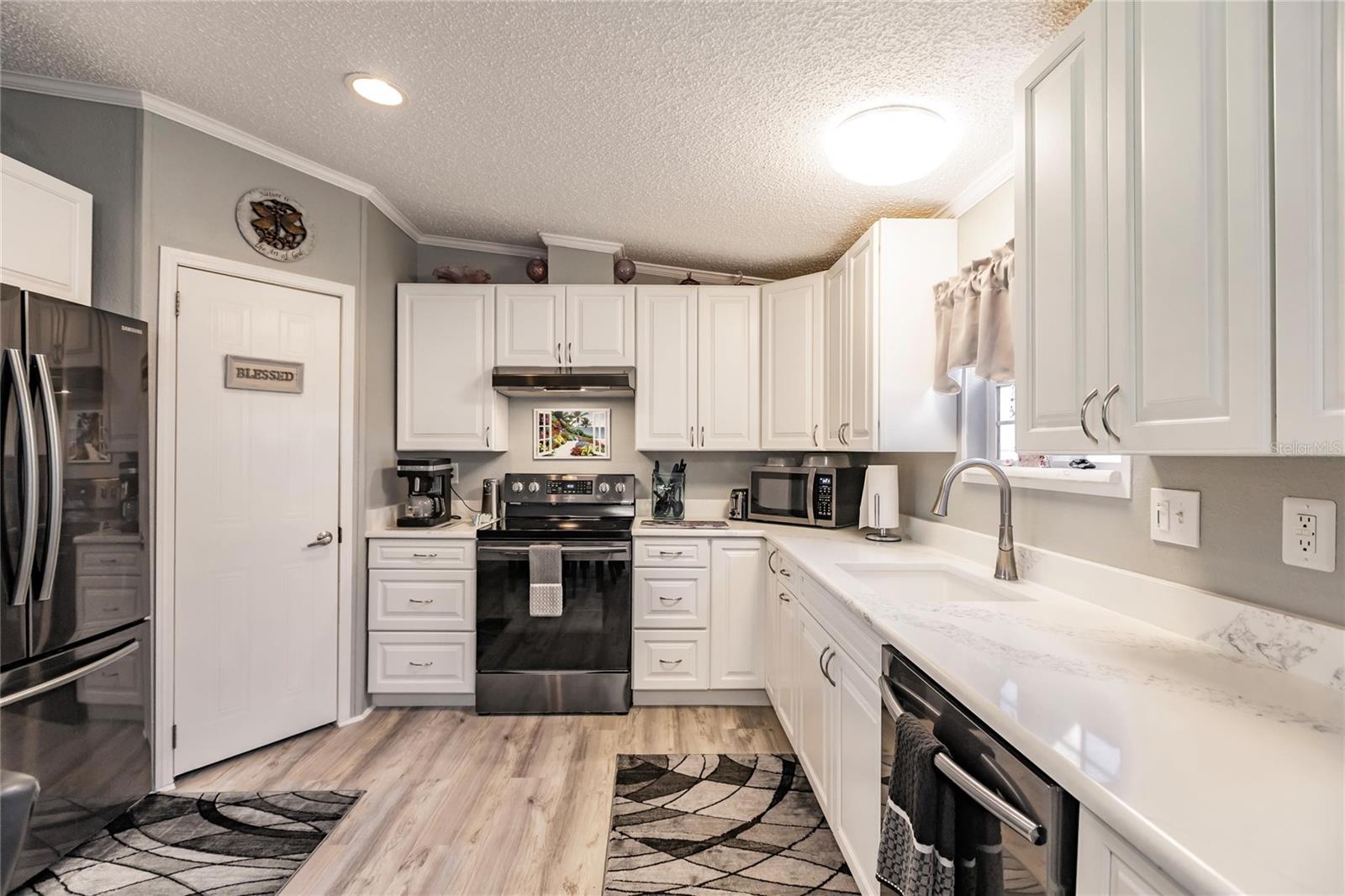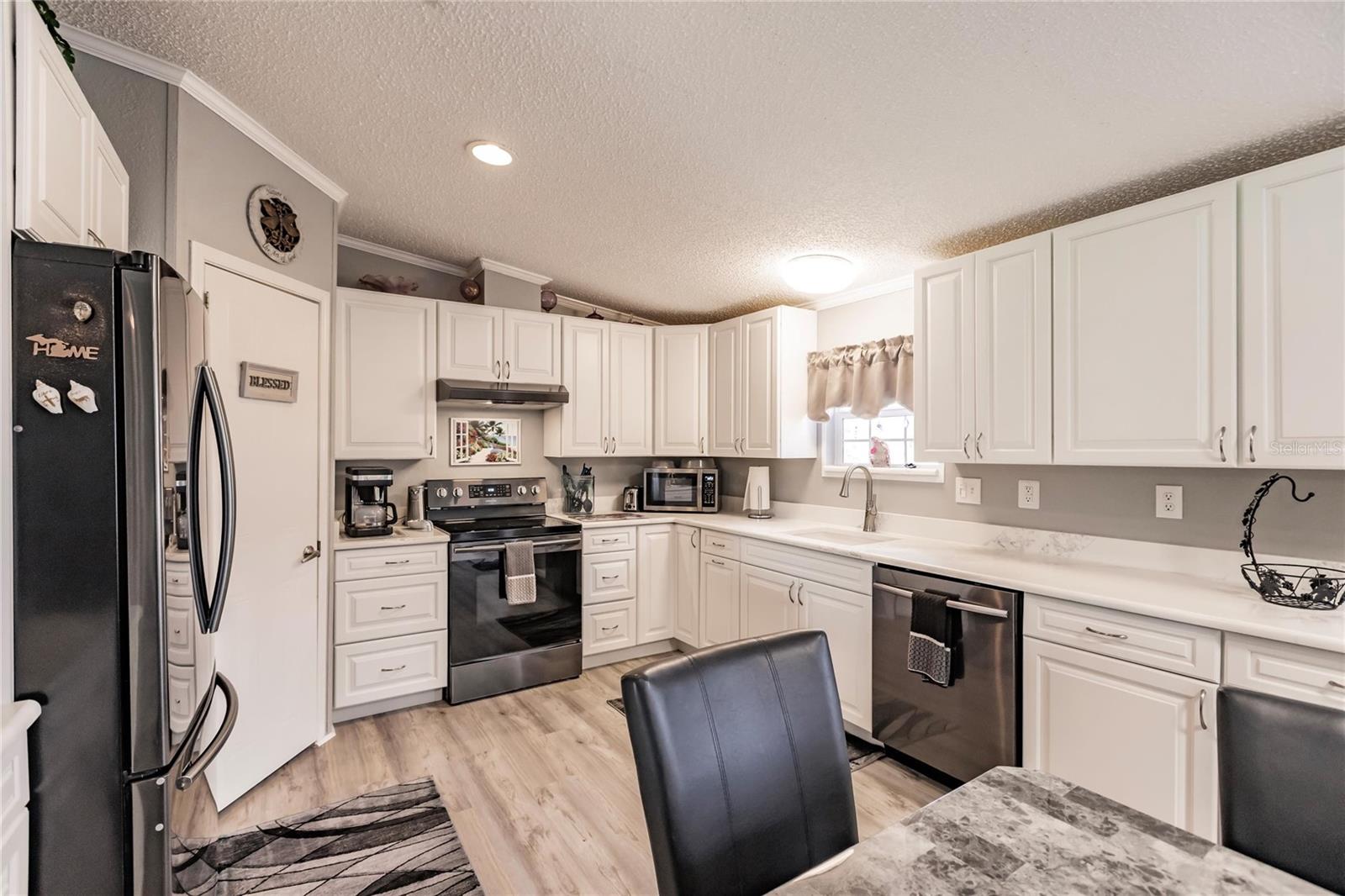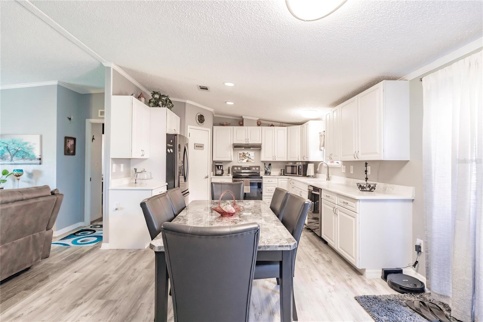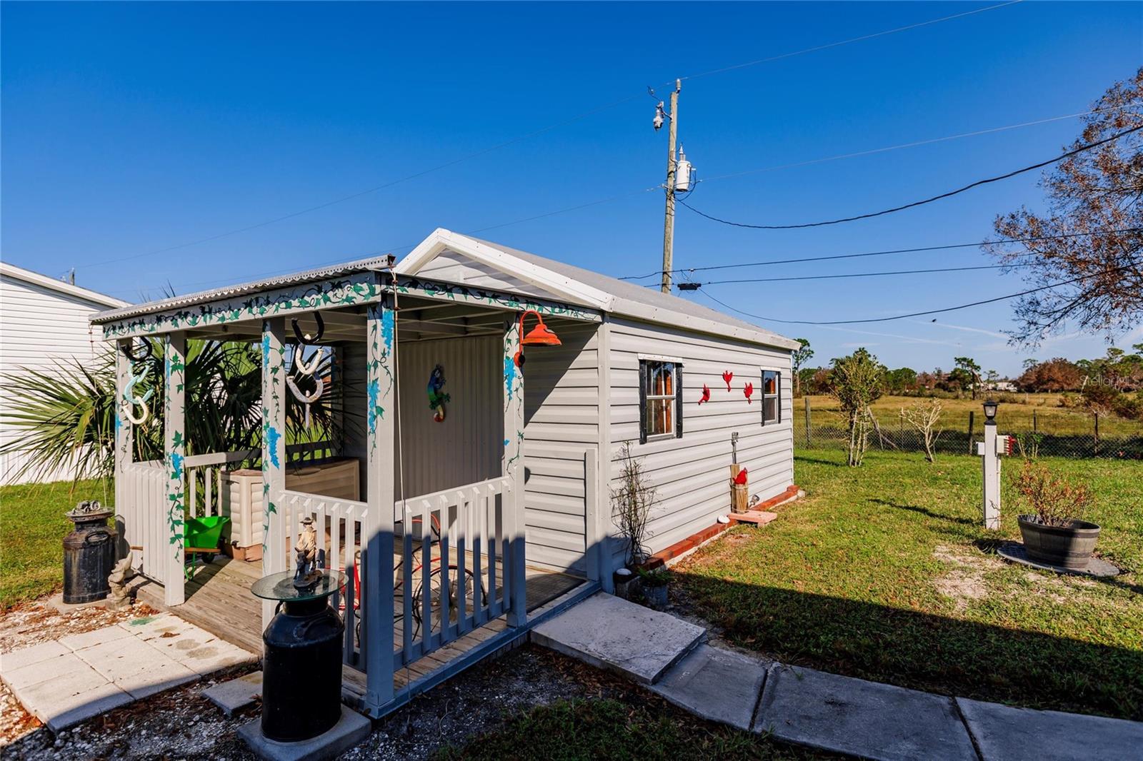 This 3 bedroom, 2 bath home is situated on over a third of an acre and is located in the rural area of Crystal Lake Community in Punta Gorda and offers wood plank laminate flooring in all main living areas, decorator light and fan fixtures, recessed lighting, soaring vaulted ceilings, and color accent walls with crowned molding. Bright and open floor plan with huge kitchen boasting warm wood cabinetry, granite counters, stainless appliances with 3 door fridge, pantry, and spacious dining area. The master suite will be your private retreat with walk in closet and en suite bath with garden soaking tub, spacious shower, and his and hers sinks. Large deck in the rear of the home overlooks private back yard for enjoying your morning coffee or afternoon drink! Other key features include new roof installed in 2022, new hot water heater, carport, septic recently pumped and new lid installed, 2 storage buildings, and RV port. Lots of storage for your vehicles and “toys”. Dedicated laundry room is equipped with new washer and dryer. Lake Access. Proximity to local waterways and beaches, dining, shopping, and golf courses makes this property ideal for the Florida lifestyle. Also, easy access to public parks with bike and walking trails and picnic areas, and boat ramps providing access to many waterways, beautiful Charlotte Harbor, Peace and Myakka Rivers, and the blue waters of the Gulf of Mexico. Just a short distance to historic downtown Punta Gorda and popular Fishermen’s Village with quaint shops and cafes. And easy access to Interstate 75 with Sarasota and Tampa to the North and Fort Myers and Naples to the South. Tastefully appointed home is waiting for you!