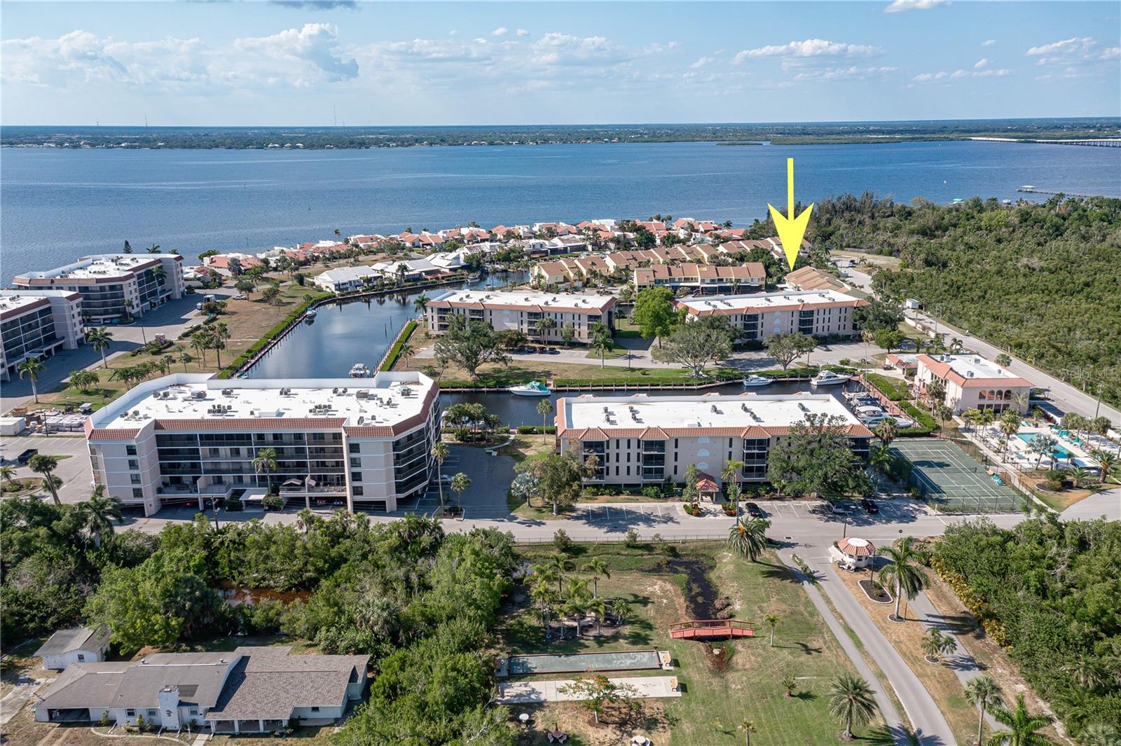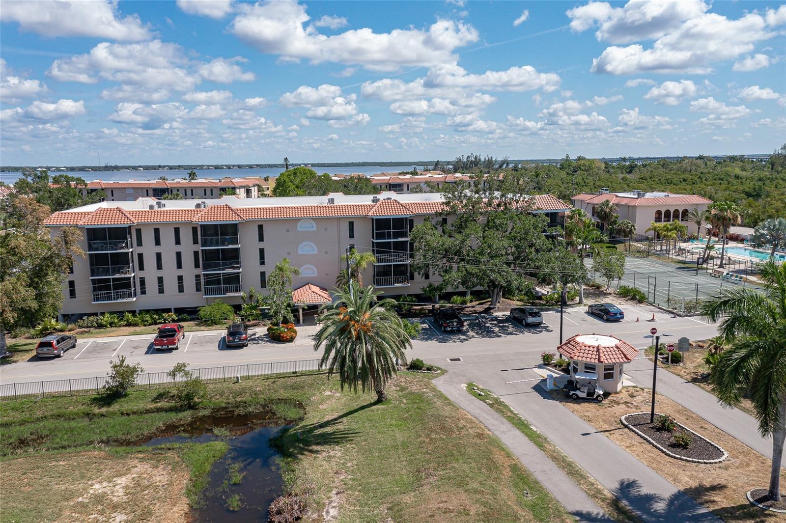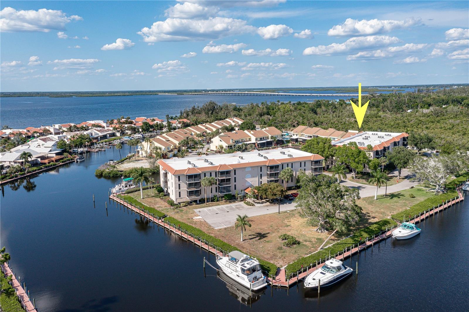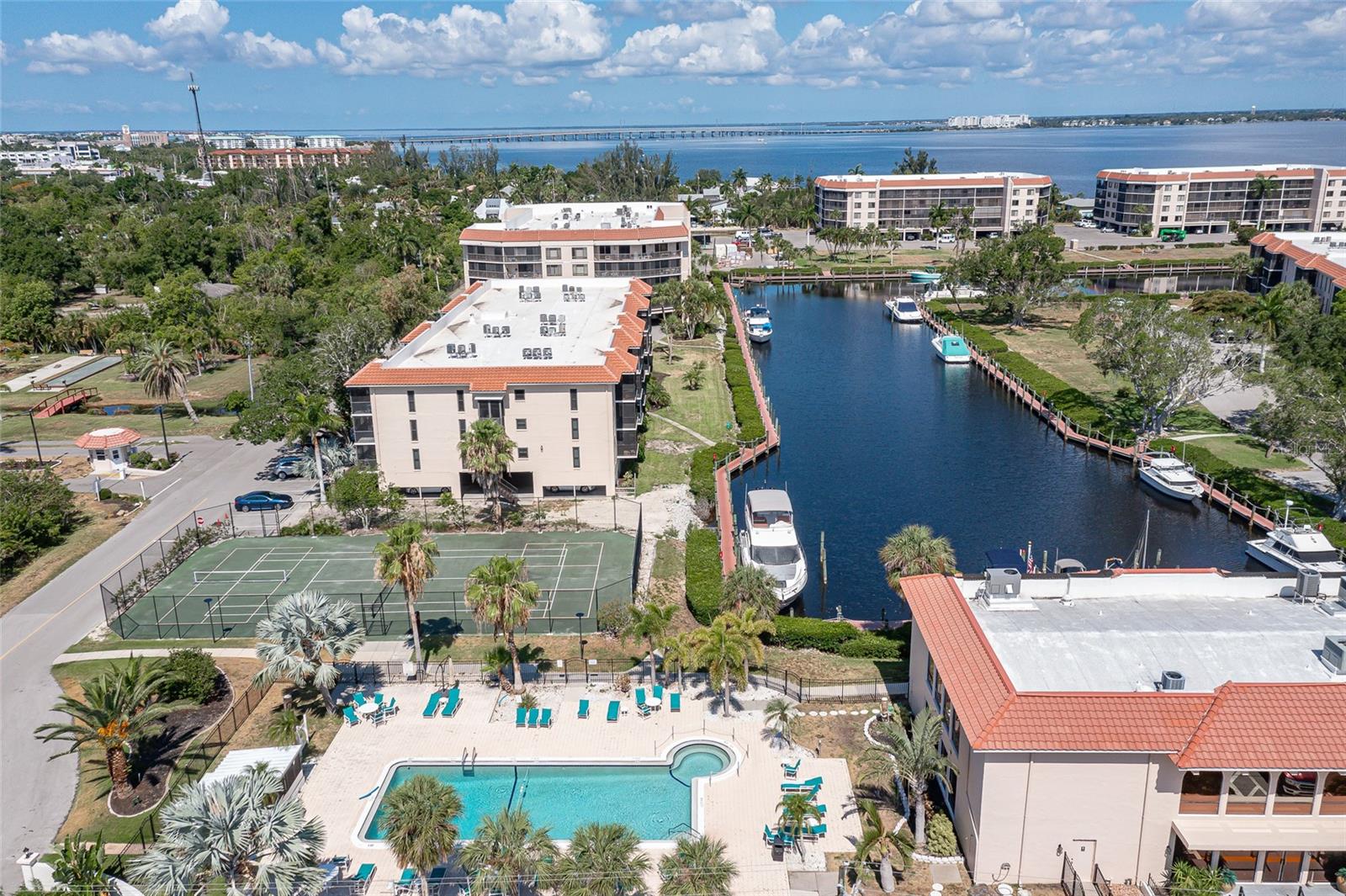 WATERFRONT CONDO AT EMERALD POINTE! Wonderful, 2 bed/2 bath, waterfront condo in beautiful Emerald Pointe. Condo enjoys an open floor plan w/split bedroom & interior laundry closet (washer/dryer hookup) plus a screened balcony overlooking the tranquil canal & dock view below. The master suite has an oversized walk-in closet & sink w/seated vanity. The WC includes the walk-in closet. The screened lanai is perfect for outdoor dining or relaxing & taking in the gorgeous sunsets available nightly. A storage closet is found just off the entry. Emerald Pointe has the feel of an all-inclusive resort. Enjoy resort-style living with an impressive array of amenities, including four Har-Tru clay tennis courts with a full-time tennis pro, pickleball and Bocce ball courts, a putting green, three swimming pools, a clubhouse, and a fitness center. Boaters will love the marina, offering dock space on a first-come, first-served basis, so you can bring your boat and keep it just steps from home. Reach open water in minutes, ideal for enjoying SW Florida’s world-class fishing and boating. As of listing, dock space is available. The community also boasts an active social calendar with book clubs, bridge games, poker nights, crafting groups, and more, making every day feel like a vacation!