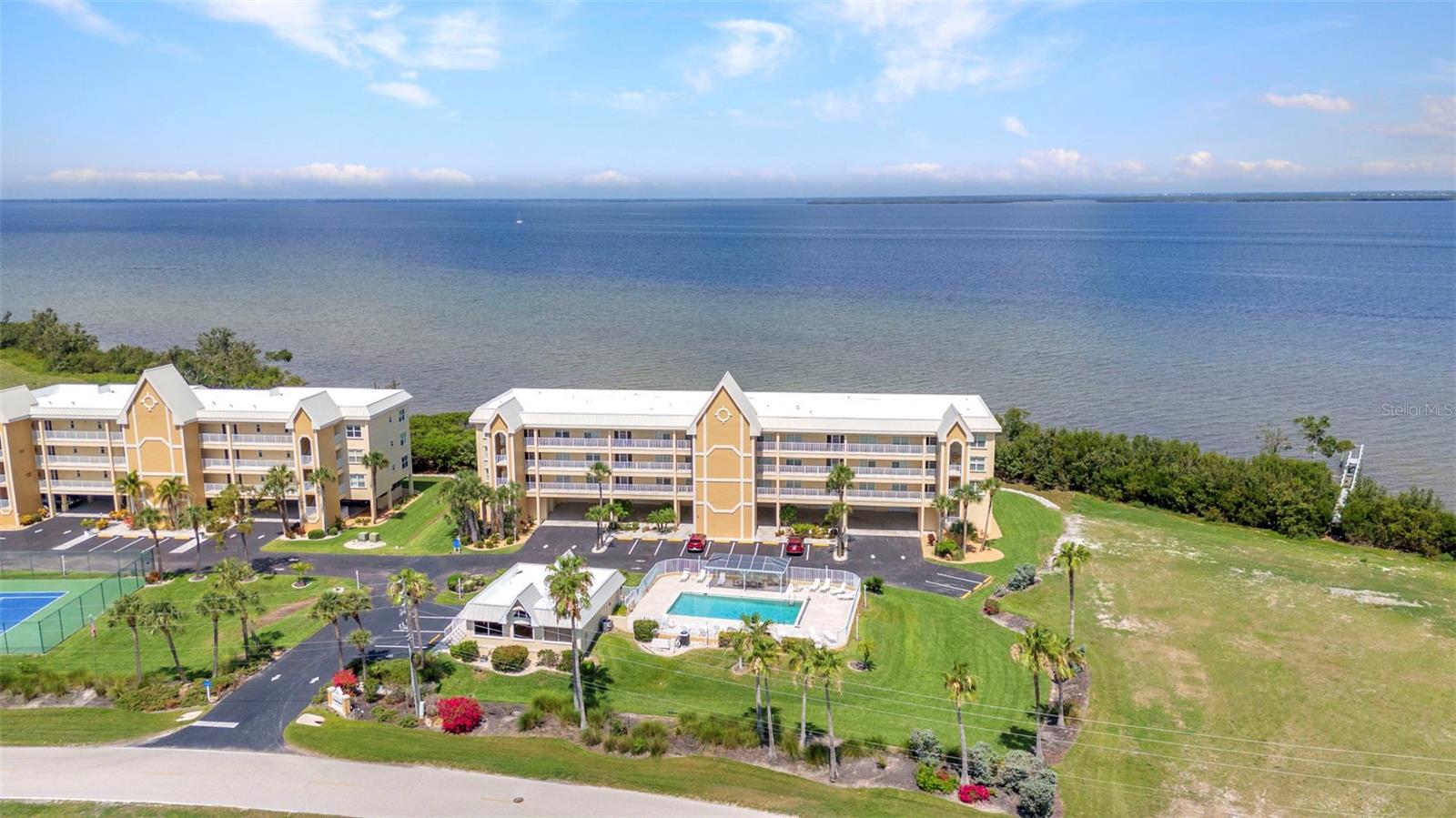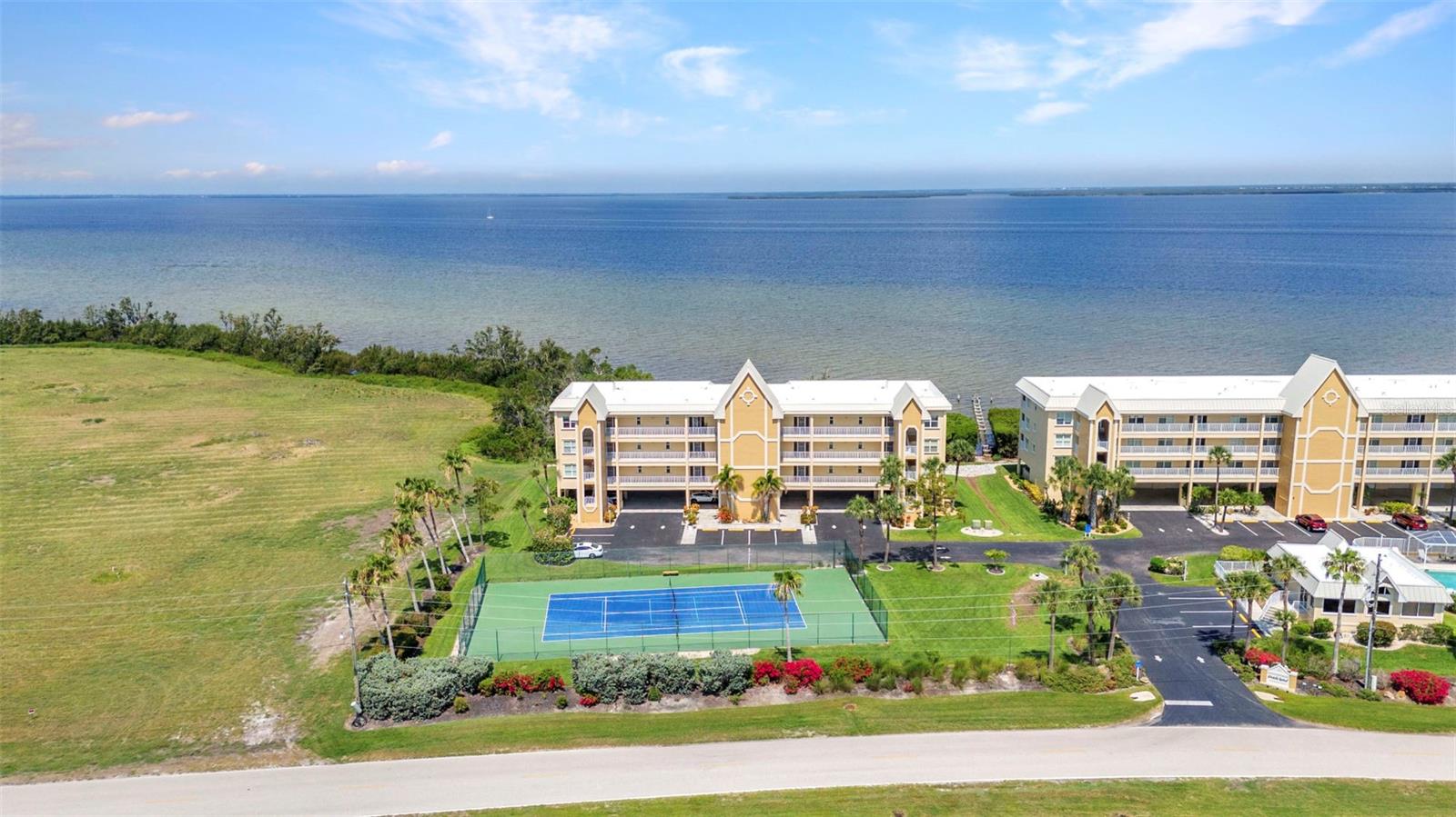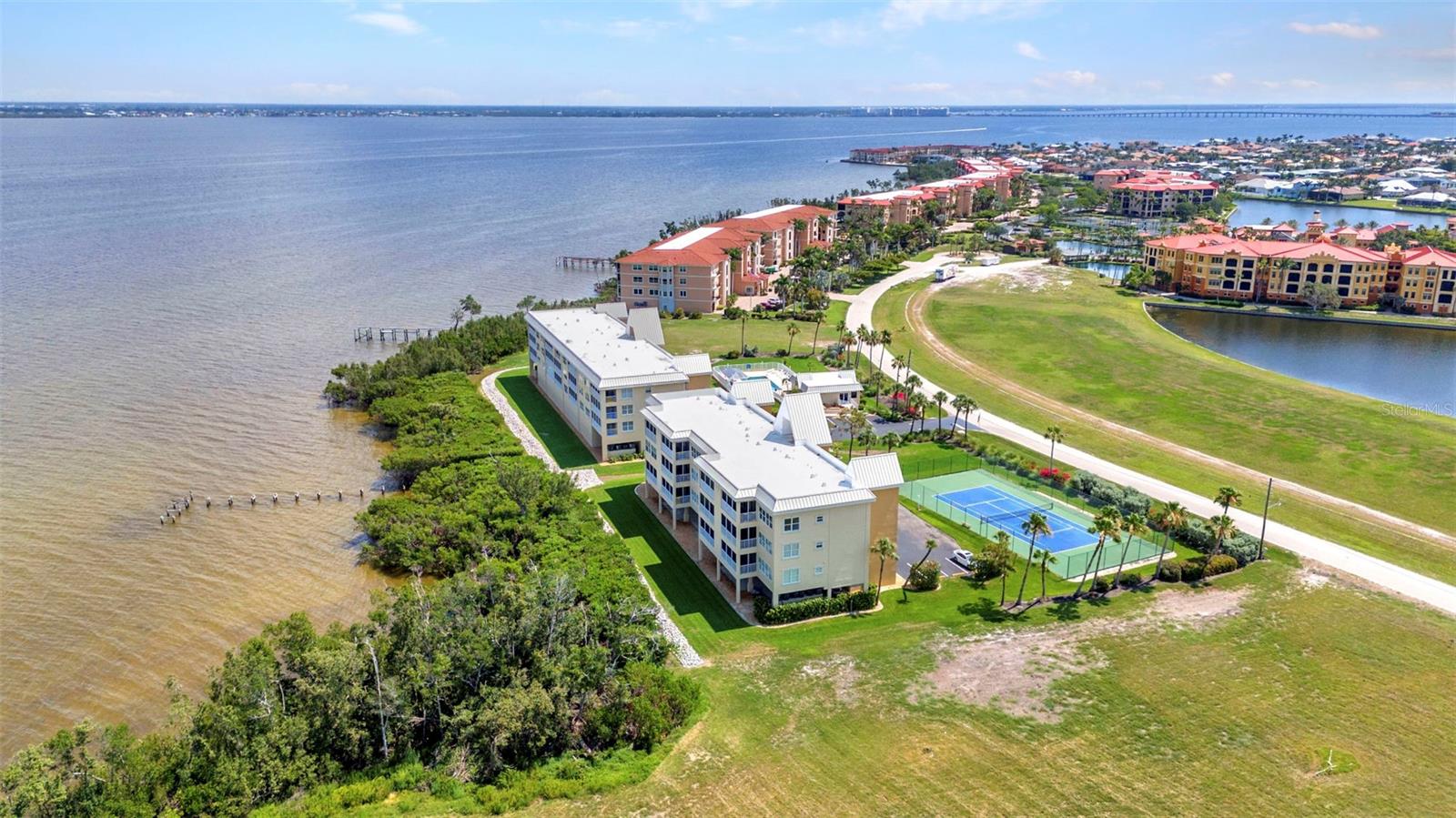 Motivated Seller. Experience the essence of waterfront living in this beautifully updated 2-bedroom 2-bathroom 2nd-floor condo, where stunning views of Charlotte Harbor—the second-largest estuary in Florida—await. Known worldwide for exceptional sportfishing, Charlotte Harbor offers endless opportunities for relaxation and adventure. From your private balcony, enjoy morning coffee with peaceful harbor views and unwind with vibrant sunsets at day’s end. This spacious condo also has an open floor plan filled with natural light from sliding glass doors in both the living room and master bedroom, creating seamless access to the balcony. Recent upgrades throughout the over 1,500-square-foot unit provide a modern, move-in-ready living space. Fresh drywall has been installed in the master bedroom, master bathroom, and living area, with the entire unit primed, textured, and painted. New 8-inch baseboards add a touch of elegance throughout, complementing the brand-new luxury plank vinyl flooring. The kitchen is a chef’s dream, featuring new quartz countertops, all-newer stainless steel appliances, under-cabinet lighting, a new backsplash, and updated hardware. A custom ceiling with additional lighting and a new sink fixture with upgraded pipes and connections complete the space with both style and function. The master suite offers a spa-like retreat with a new quartz countertop vanity, modern nickel fixtures, updated plumbing, and a walk-in shower. The living room has been refreshed with a new fan and a stylish light fixture, creating a cozy and inviting atmosphere. Energy efficiency meets comfort with the newly installed in October 2024 2-ton coastal-rated AC condenser, complete with an air purifier to maintain pristine indoor air quality. Additionally, all outlets and switches throughout the unit have been replaced, and a dazzling new crystal chandelier adds an extra touch of elegance to the living area. The community amenities provide resort-style living at its finest. Relax by the sparkling blue pool, gather with friends at the clubhouse, enjoy a match on the tennis courts, or cast a line from the private fishing pier. Conveniently located near the building's elevator, the condo comes with both a covered and an uncovered parking space. Beyond your front door, explore the vibrant lifestyle of Punta Gorda. Walk or bike to Fishermen’s Village, a beloved waterfront destination offering boutique shopping, dining, and live entertainment. Just minutes away, Downtown Punta Gorda charms with cobblestone streets filled with restaurants featured by USA Today as part of the best small-town food scene in the country. Nature lovers will enjoy nearby Ponce de Leon Park, where sugary sandy shores and scenic trails along the harbor invite you to relax and explore. For boating enthusiasts, the condo’s location provides easy access to marinas, boat ramps, and the Gulf Coast’s picturesque beaches. Whether you prefer shopping, farmers' markets, or outdoor adventures, Punta Gorda offers something for everyone. This move-in-ready condo offers more than just a home—it’s a gateway to the Southwest Florida lifestyle. Whether you're savoring sunsets, enjoying endless amenities, or exploring the vibrant surroundings, this is your chance to embrace the coastal way of life. Why wait? Stop dreaming and start living the Sunshine Day Florida lifestyle today!