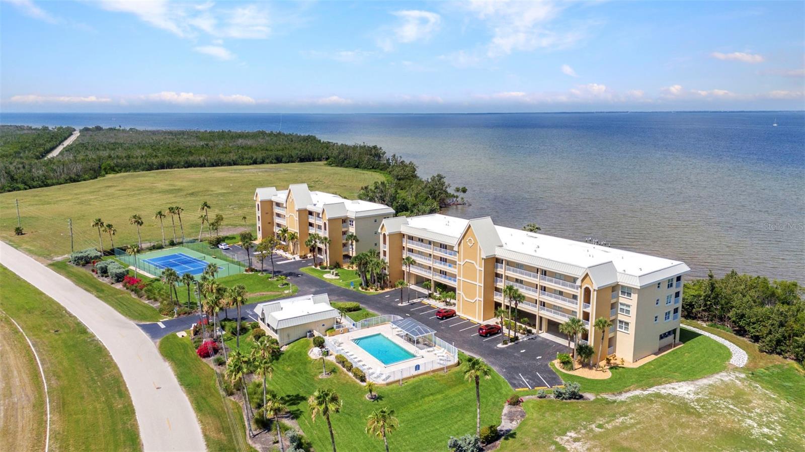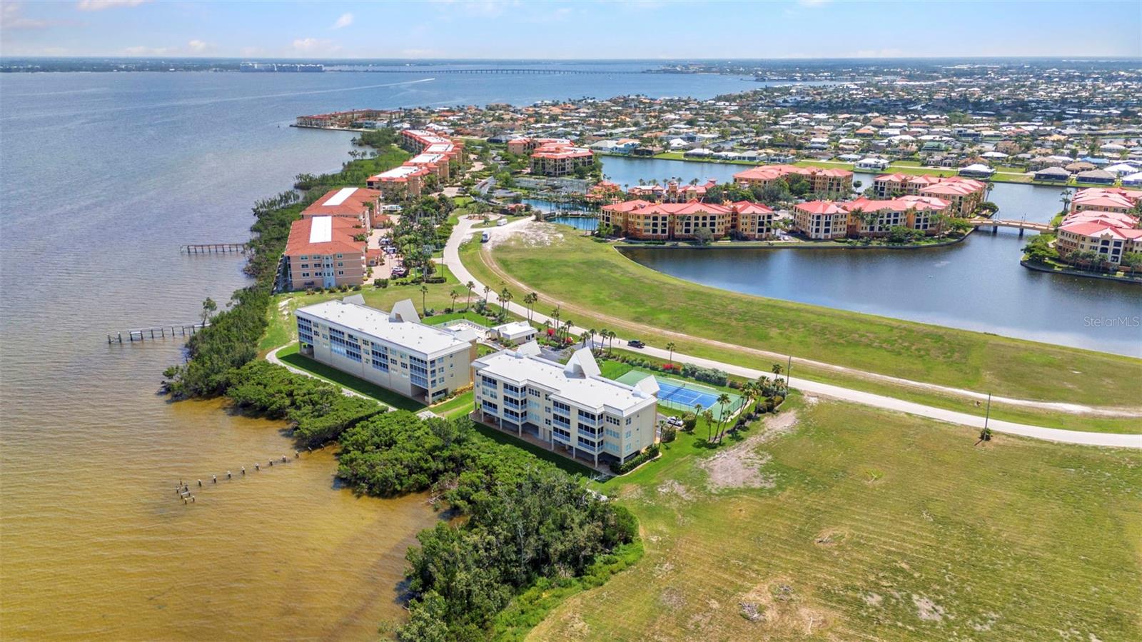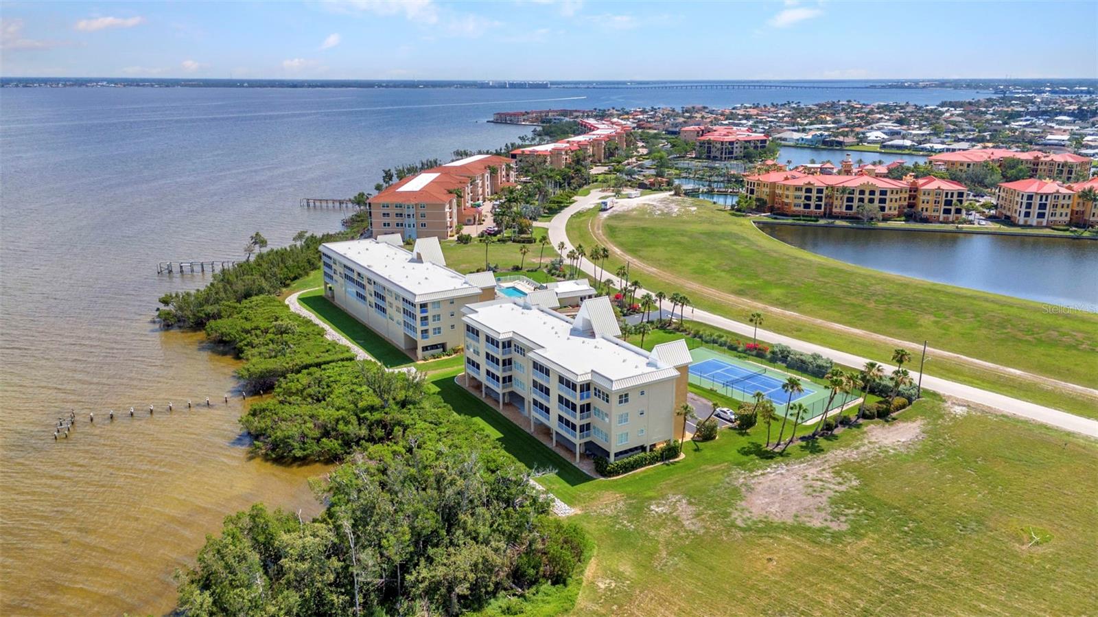 Motivated Seller. Experience the essence of waterfront living in this beautifully updated 2-bedroom 2-bathroom 2nd-floor condo, where stunning views of Charlotte Harbor—the second-largest estuary in Florida—await. Known worldwide for exceptional sportfishing, Charlotte Harbor offers endless opportunities for relaxation and adventure. From your private balcony, enjoy morning coffee with peaceful harbor views and unwind with vibrant sunsets at day’s end. This spacious condo also has an open floor plan filled with natural light from sliding glass doors in both the living room and master bedroom, creating seamless access to the balcony. Recent upgrades throughout the over 1,500-square-foot unit provide a modern, move-in-ready living space. Fresh drywall has been installed in the master bedroom, master bathroom, and living area, with the entire unit primed, textured, and painted. New 8-inch baseboards add a touch of elegance throughout, complementing the brand-new luxury plank vinyl flooring. The kitchen is a chef’s dream, featuring new quartz countertops, all-newer stainless steel appliances, under-cabinet lighting, a new backsplash, and updated hardware. A custom ceiling with additional lighting and a new sink fixture with upgraded pipes and connections complete the space with both style and function. The master suite offers a spa-like retreat with a new quartz countertop vanity, modern nickel fixtures, updated plumbing, and a walk-in shower. The living room has been refreshed with a new fan and a stylish light fixture, creating a cozy and inviting atmosphere. Energy efficiency meets comfort with the newly installed in October 2024 2-ton coastal-rated AC condenser, complete with an air purifier to maintain pristine indoor air quality. Additionally, all outlets and switches throughout the unit have been replaced, and a dazzling new crystal chandelier adds an extra touch of elegance to the living area. The community amenities provide resort-style living at its finest. Relax by the sparkling blue pool, gather with friends at the clubhouse, enjoy a match on the tennis courts, or cast a line from the private fishing pier. Conveniently located near the building's elevator, the condo comes with both a covered and an uncovered parking space. Beyond your front door, explore the vibrant lifestyle of Punta Gorda. Walk or bike to Fishermen’s Village, a beloved waterfront destination offering boutique shopping, dining, and live entertainment. Just minutes away, Downtown Punta Gorda charms with cobblestone streets filled with restaurants featured by USA Today as part of the best small-town food scene in the country. Nature lovers will enjoy nearby Ponce de Leon Park, where sugary sandy shores and scenic trails along the harbor invite you to relax and explore. For boating enthusiasts, the condo’s location provides easy access to marinas, boat ramps, and the Gulf Coast’s picturesque beaches. Whether you prefer shopping, farmers' markets, or outdoor adventures, Punta Gorda offers something for everyone. This move-in-ready condo offers more than just a home—it’s a gateway to the Southwest Florida lifestyle. Whether you're savoring sunsets, enjoying endless amenities, or exploring the vibrant surroundings, this is your chance to embrace the coastal way of life. Why wait? Stop dreaming and start living the Sunshine Day Florida lifestyle today!