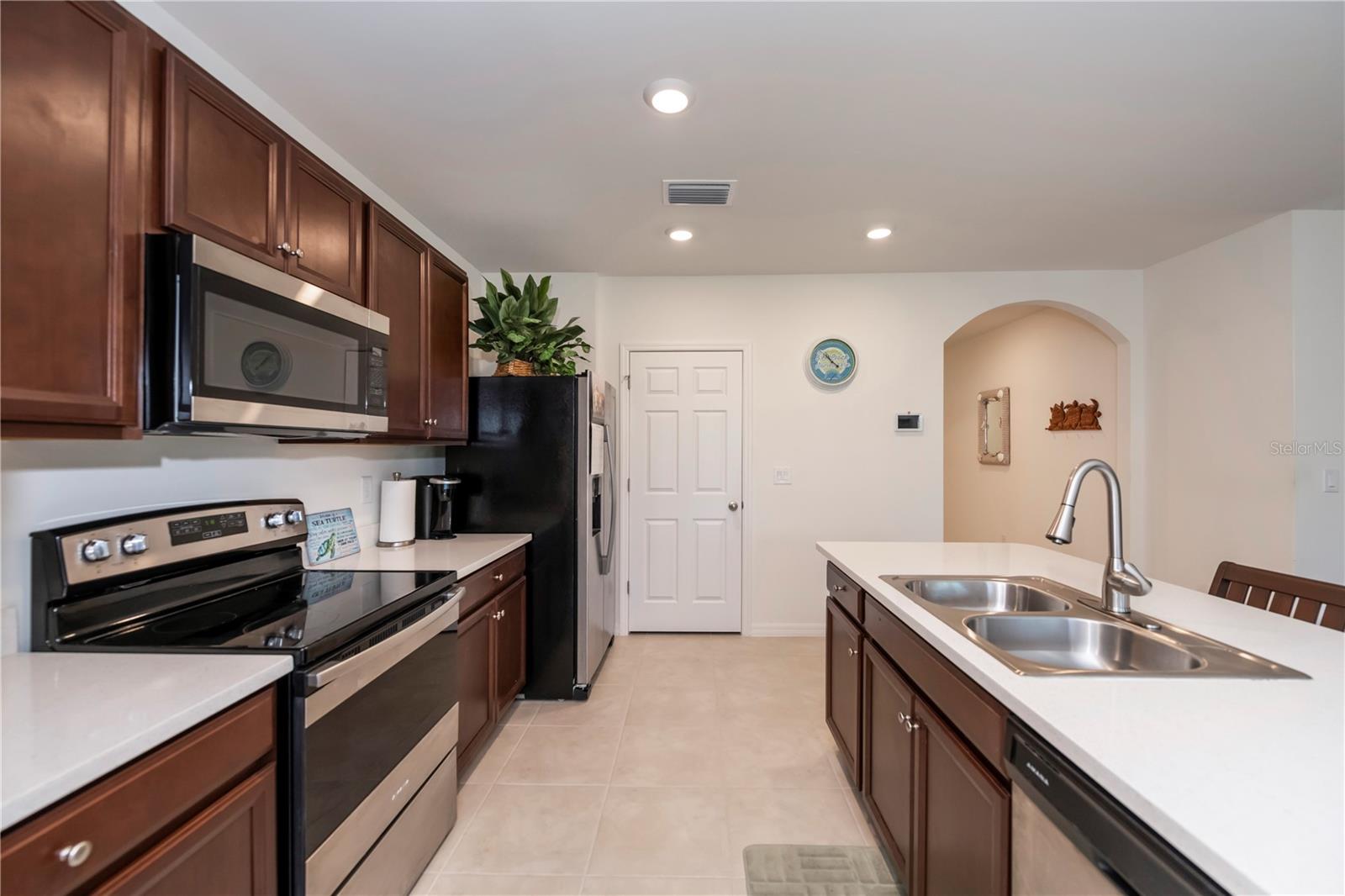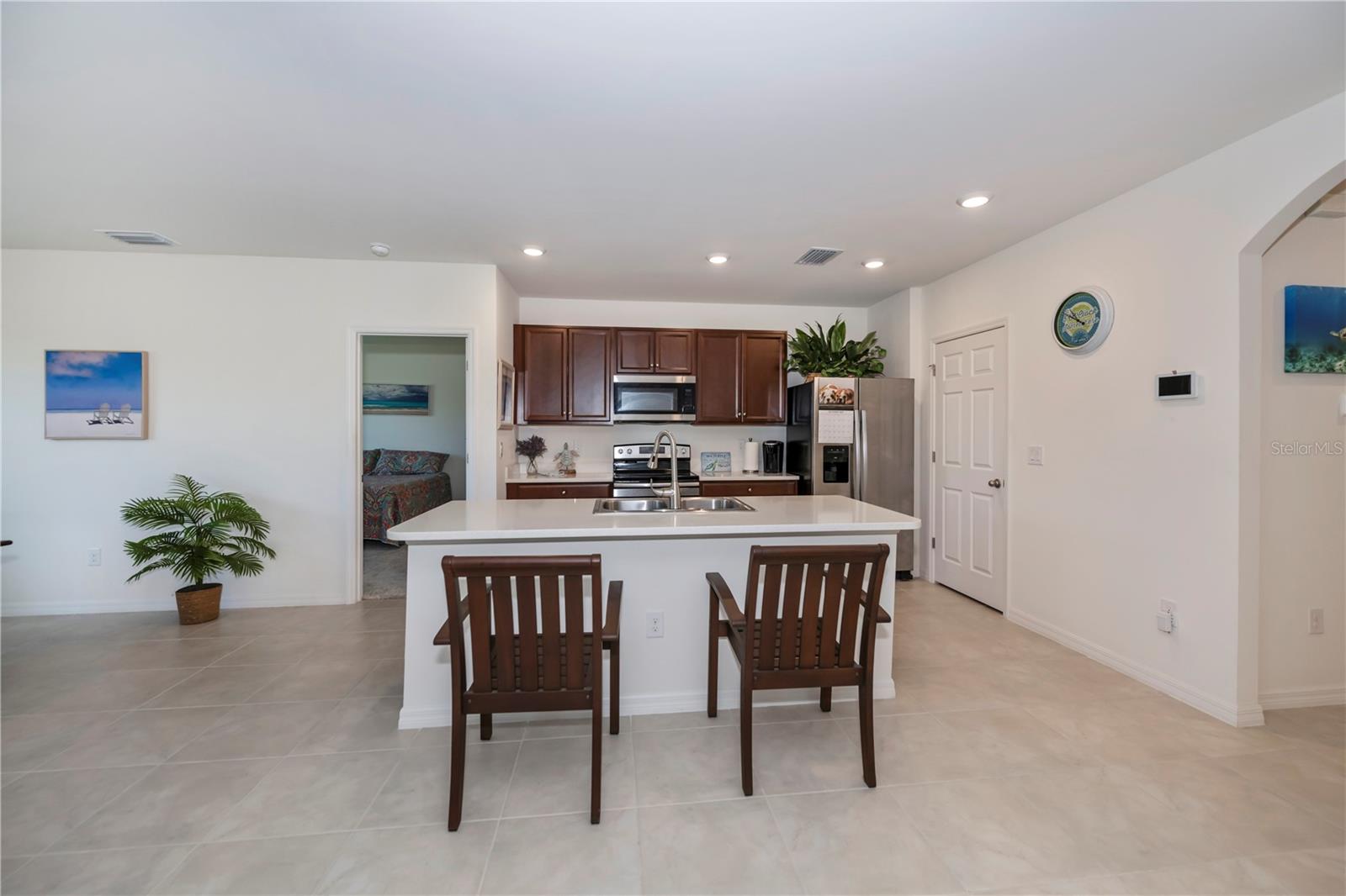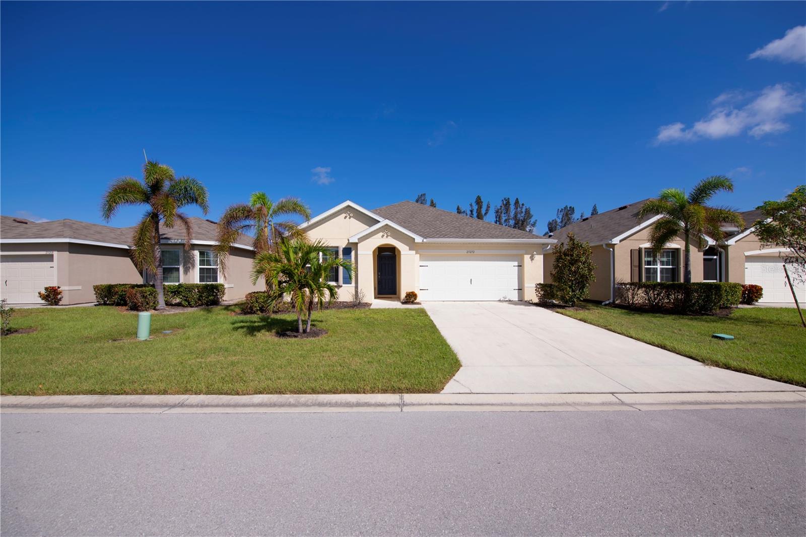 BACKYARD PRIVACY AWAITS in the spacious and nearly new 2020 3/2/2 Arias model by D.R Horton in the sought after, GATED and DEED RESTRICTED community of Waterford, LOW HOA , PET & GOLF CART FRIENDLY with great amenities including 2 SEPARATE RESORT STYLE POOLS! Merely minutes to the walking downtown of Punta Gorda, this newer split plan home has an EXTRA DEEP BACKYARD backing up to a FENCED AND MANICURED GREENBELT for most serene enjoyment from your SCREENED LANAI day or night all year round. Chef worthy kitchen has its own SEPARATE DINING/ breakfast area with serene views, rich DARK MAPLE cabinetry, CORIAN COUNTERTOPS, convenient BREAKFAST BAR, PANTRY, and wonderful NATURAL LIGHT. STAINLESS APPLIANCES simply perfect for entertaining. The spacious Great room has glass sliding door access nearby to the covered screened lanai allowing for beautiful breezes in both spring and fall. The master bedroom has new carpeting with expansive walk in closet and ensuite master bath complete with dual sinks. Both guest bedrooms, have brand new carpet, are generous in size plus certain to impress your company with ample closet space up front and share a sleek bathroom. Inside laundry, easy upgraded accordion storm shutters and nice deco trimmed windows add value and charm.WATERFORD is a CAREFREE LIFESTYLE completely built out and perfect for year round residents or seasonal snowbirds with lush landscaping, nice sidewalks, fitness center, billiard room, pickleball, walking trails, bocce ball, grilling areas, private event room, covered community mailboxes, TWO RESORT STYLE POOLS and lively events with low hoa covering lawn mowing, yard irrigation, and trimming too. A must see this charming community that spans over 150 acres of land with exceptional location close to the gorgeous and fun Sunseekers resort, Punta Gorda airport, marinas, golf courses, hospitals, Gilchrest ,Laishley , and Ponce De Leon parks, boutique shopping, specialty dining, farmers markets and wide array of entertainment. Don't miss out on this wonderful home and fabulous SW Florida lifestyle that you've been dreaming of, schedule your showing TODAY!