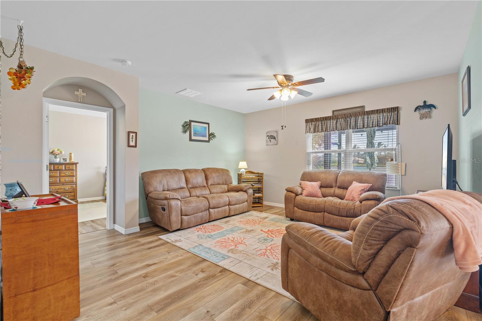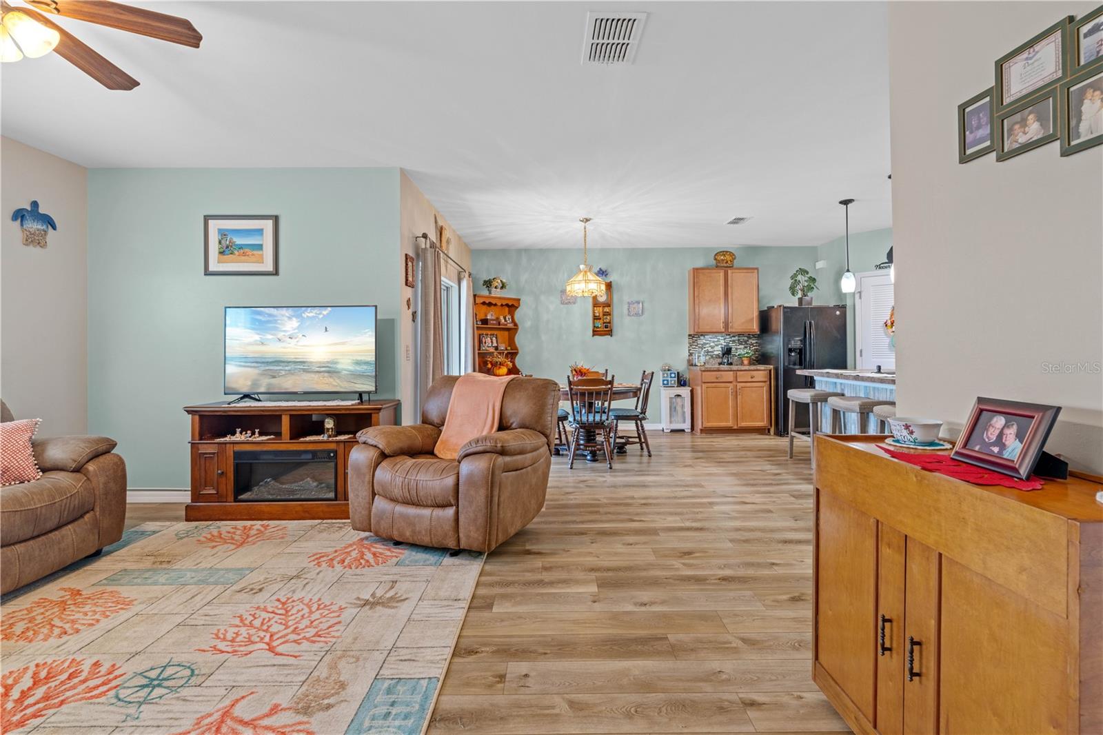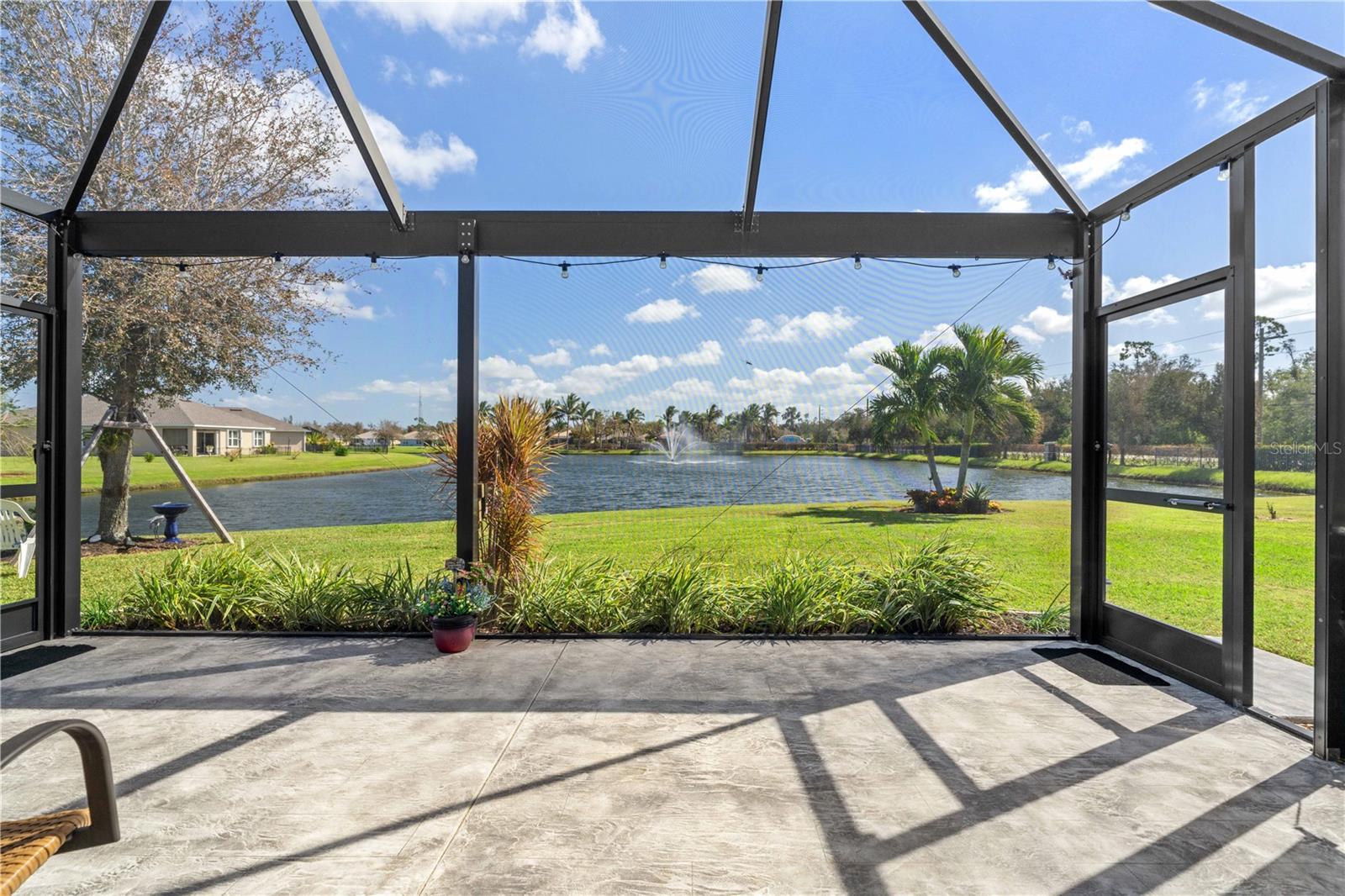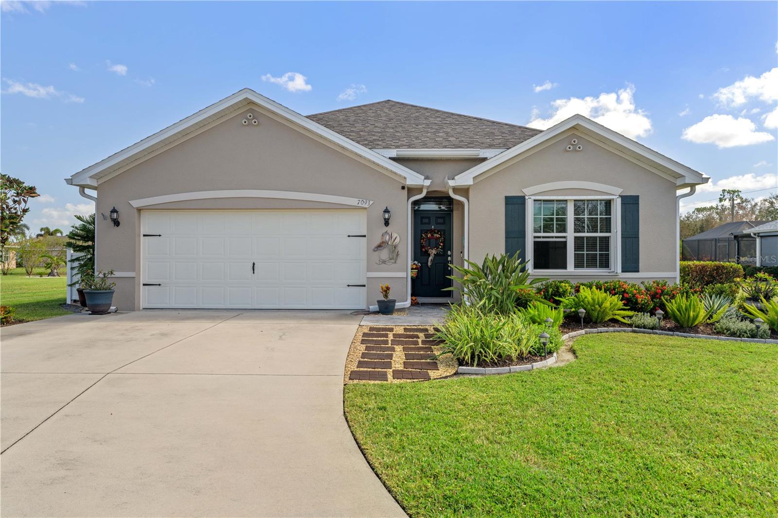 LAKEVIEW HOME IN WATERFORD ESTATES - Lovely *FOUR* bed/TWO bath home in the gated community of Waterford Estates boasts an open floor plan, wonderful lake view from most of the home on an oversized property with extended length driveway. Inside, the open layout features a large living room, dining area & chef's kitchen. Sliding glass doors open to the lanai extending the living space out onto the lanai. Large kitchen has a mosaic tile-look back splash, center island w/pendant lighting & breakfast bar seating plus a walk-in corner pantry. Architectural details include large UV-protected windows that let in tons of natural light, luxury vinyl plank flooring throughout the home w/exception of new carpet in one guest bedroom. Home is in move-in condition & boasts a spacious, master retreat w/two closets (including one oversized, walk-in) & an en-suite master bath w/private WC, dual sinks, shower w/adjustable shower head & large linen closet. The three guest rooms share a guest bath w/combination tub/shower. The L-shaped lanai has a stamped concrete deck w/picture-frame screen enclosure creating the perfect space to sit back, relax & enjoy the phenomenal lake view. Other amenities include an interior laundry room w/full-sized washer & dryer, attached 2-car garage, widened driveway, gas generator w/hook-up transfer switch, & whole-house hurricane protection. Low-voltage lighting brightens up the home at night for a beautiful look. NEW ROOF 2022. Exterior paint NEW in 2024. Waterford Estates is a growing community w/gated entrances, two pools, a community center w/billiards & card rooms plus a fitness center, pickle ball & bocce courts. Miles of sidewalks allow your evening stroll to pass by numerous lakes throughout the picturesque neighborhood. Low HOA fees (paid quarterly) cover lawn mowing & quarterly trimming plus yard irrigation, recreation facilities & management company. Neighborhood is conveniently located minutes from historic downtown Punta Gorda & Fishermen's Village w/easy access to US41, I-75, PGD airport & FSW College. Home has a transferrable flood policy w/$930 premium ($4,454 discount). FURNITURE/TURN-KEY AVAILABLE (NEGOTIABLE) Make an appointment today. You won't be disappointed.