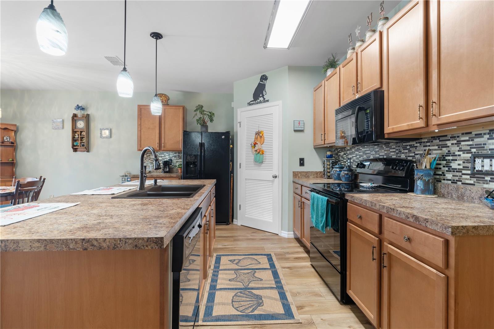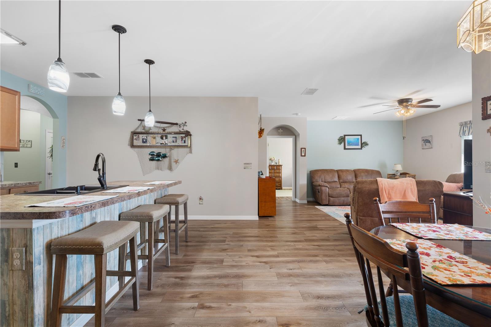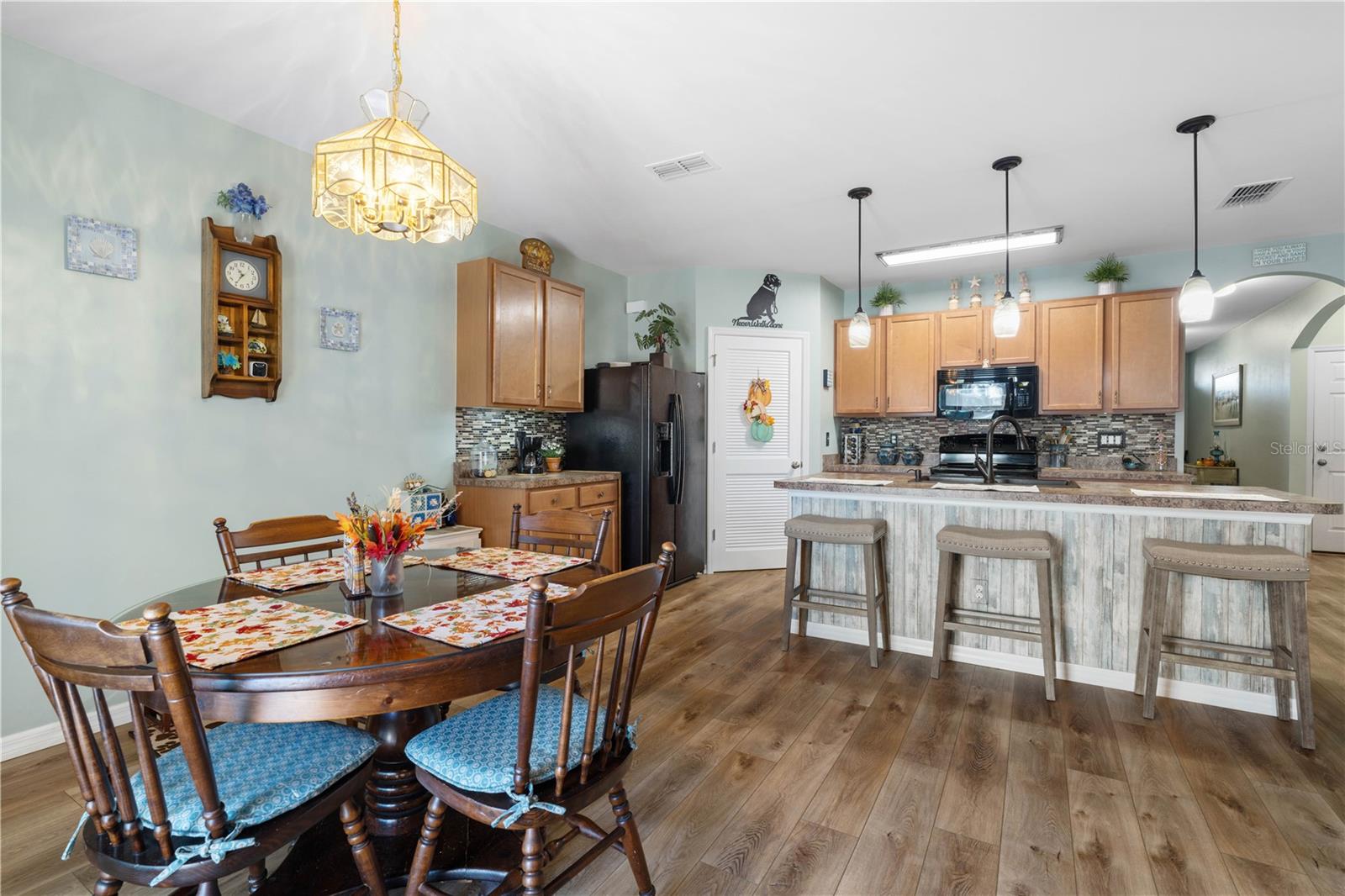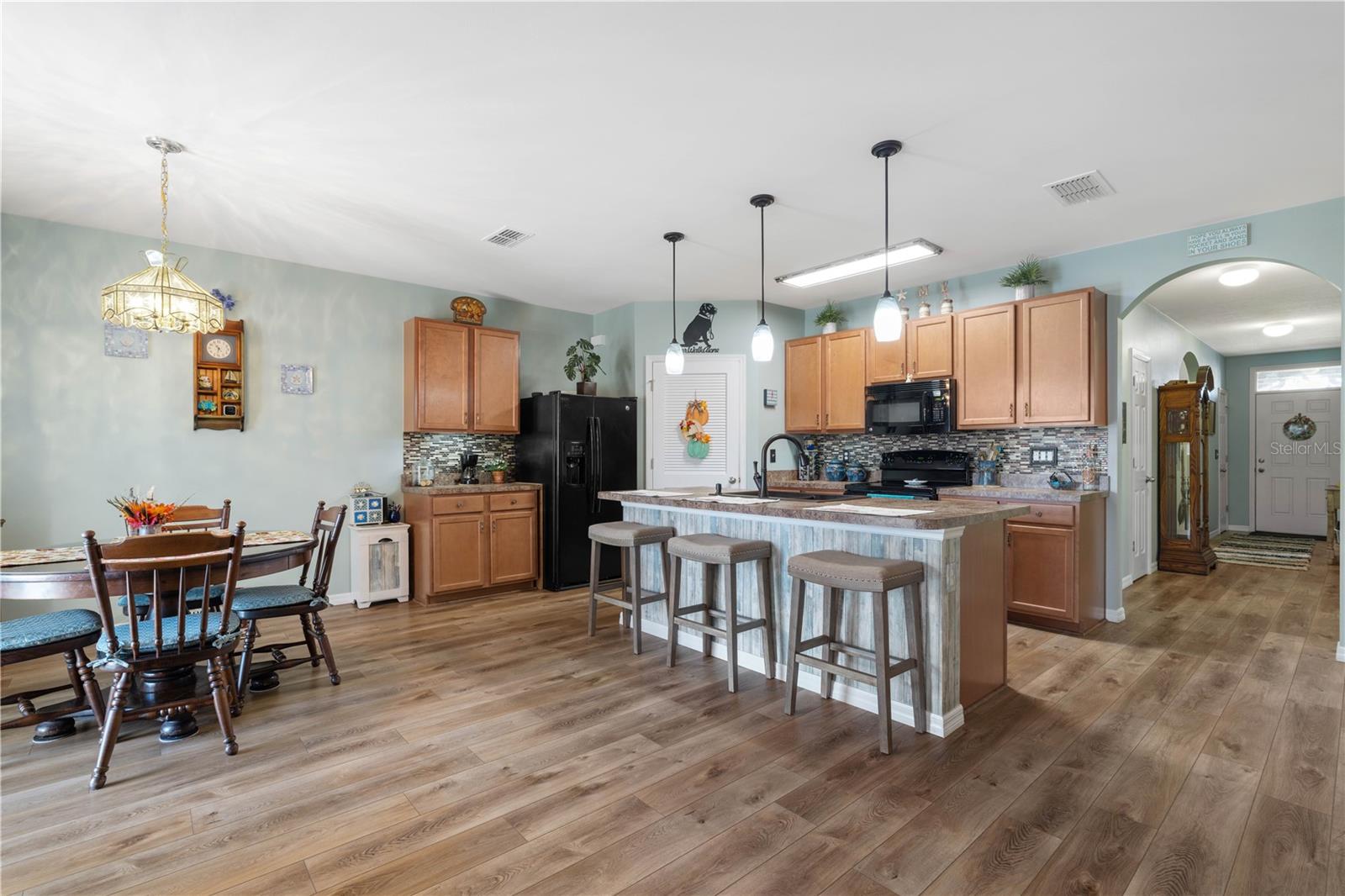 LAKEVIEW HOME IN WATERFORD ESTATES - Lovely *FOUR* bed/TWO bath home in the gated community of Waterford Estates boasts an open floor plan, wonderful lake view from most of the home on an oversized property with extended length driveway. Inside, the open layout features a large living room, dining area & chef's kitchen. Sliding glass doors open to the lanai extending the living space out onto the lanai. Large kitchen has a mosaic tile-look back splash, center island w/pendant lighting & breakfast bar seating plus a walk-in corner pantry. Architectural details include large UV-protected windows that let in tons of natural light, luxury vinyl plank flooring throughout the home w/exception of new carpet in one guest bedroom. Home is in move-in condition & boasts a spacious, master retreat w/two closets (including one oversized, walk-in) & an en-suite master bath w/private WC, dual sinks, shower w/adjustable shower head & large linen closet. The three guest rooms share a guest bath w/combination tub/shower. The L-shaped lanai has a stamped concrete deck w/picture-frame screen enclosure creating the perfect space to sit back, relax & enjoy the phenomenal lake view. Other amenities include an interior laundry room w/full-sized washer & dryer, attached 2-car garage, widened driveway, gas generator w/hook-up transfer switch, & whole-house hurricane protection. Low-voltage lighting brightens up the home at night for a beautiful look. NEW ROOF 2022. Exterior paint NEW in 2024. Waterford Estates is a growing community w/gated entrances, two pools, a community center w/billiards & card rooms plus a fitness center, pickle ball & bocce courts. Miles of sidewalks allow your evening stroll to pass by numerous lakes throughout the picturesque neighborhood. Low HOA fees (paid quarterly) cover lawn mowing & quarterly trimming plus yard irrigation, recreation facilities & management company. Neighborhood is conveniently located minutes from historic downtown Punta Gorda & Fishermen's Village w/easy access to US41, I-75, PGD airport & FSW College. Home has a transferrable flood policy w/$930 premium ($4,454 discount). FURNITURE/TURN-KEY AVAILABLE (NEGOTIABLE) Make an appointment today. You won't be disappointed.