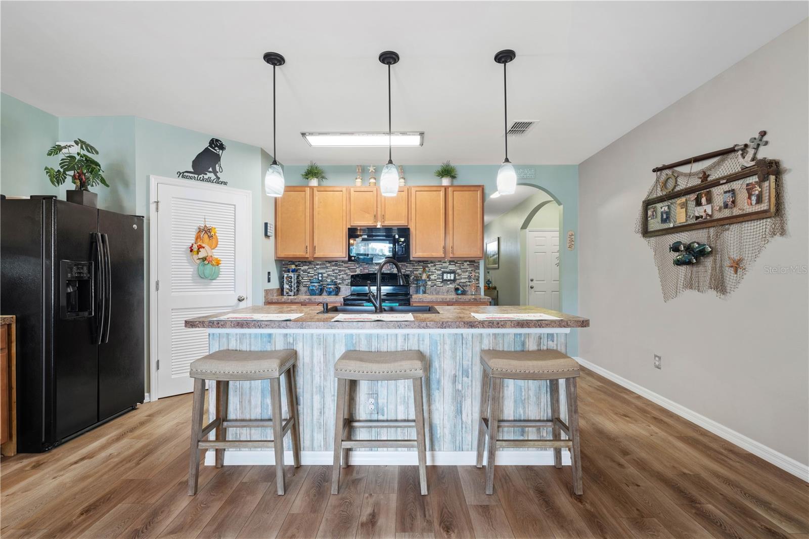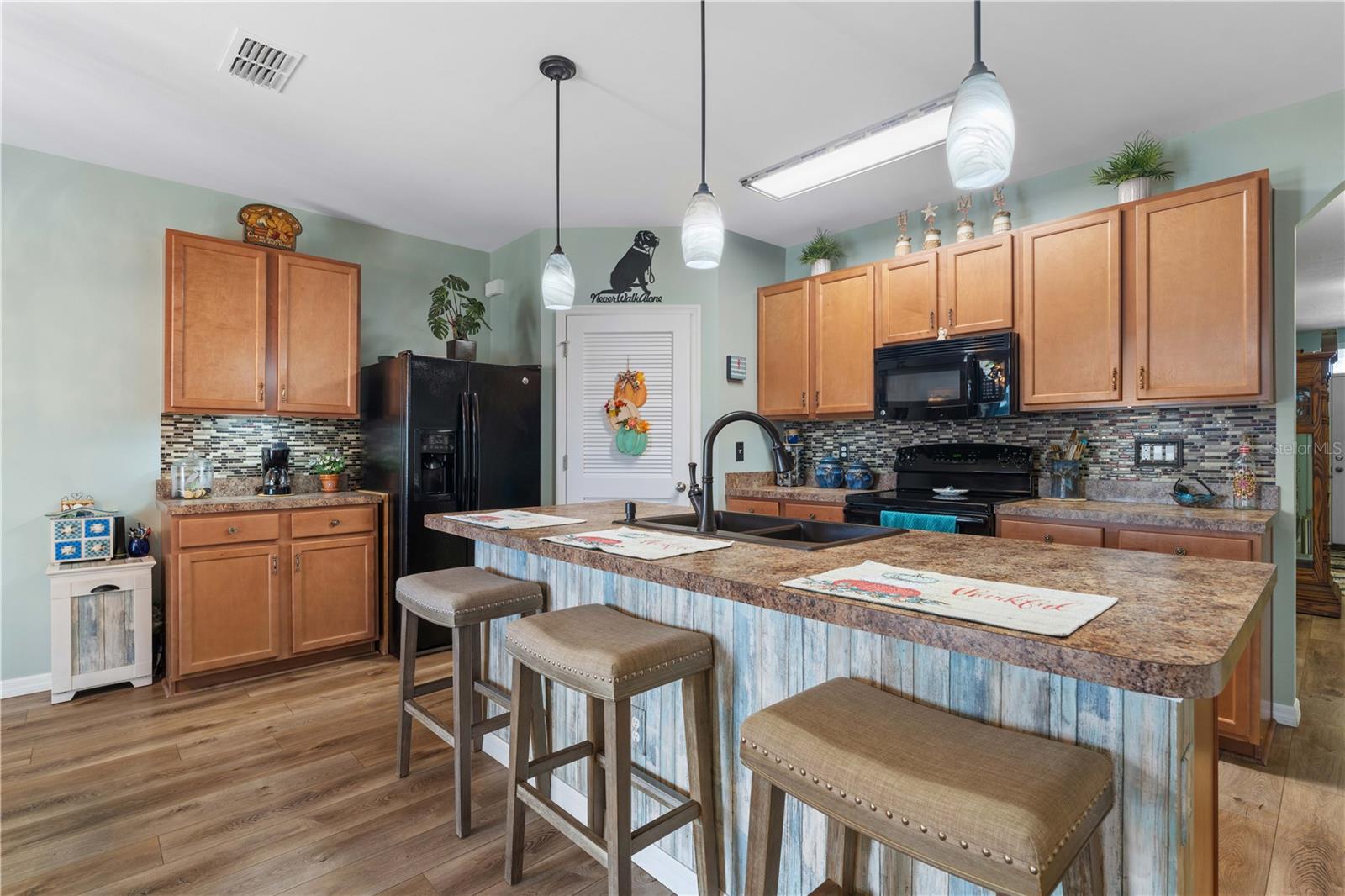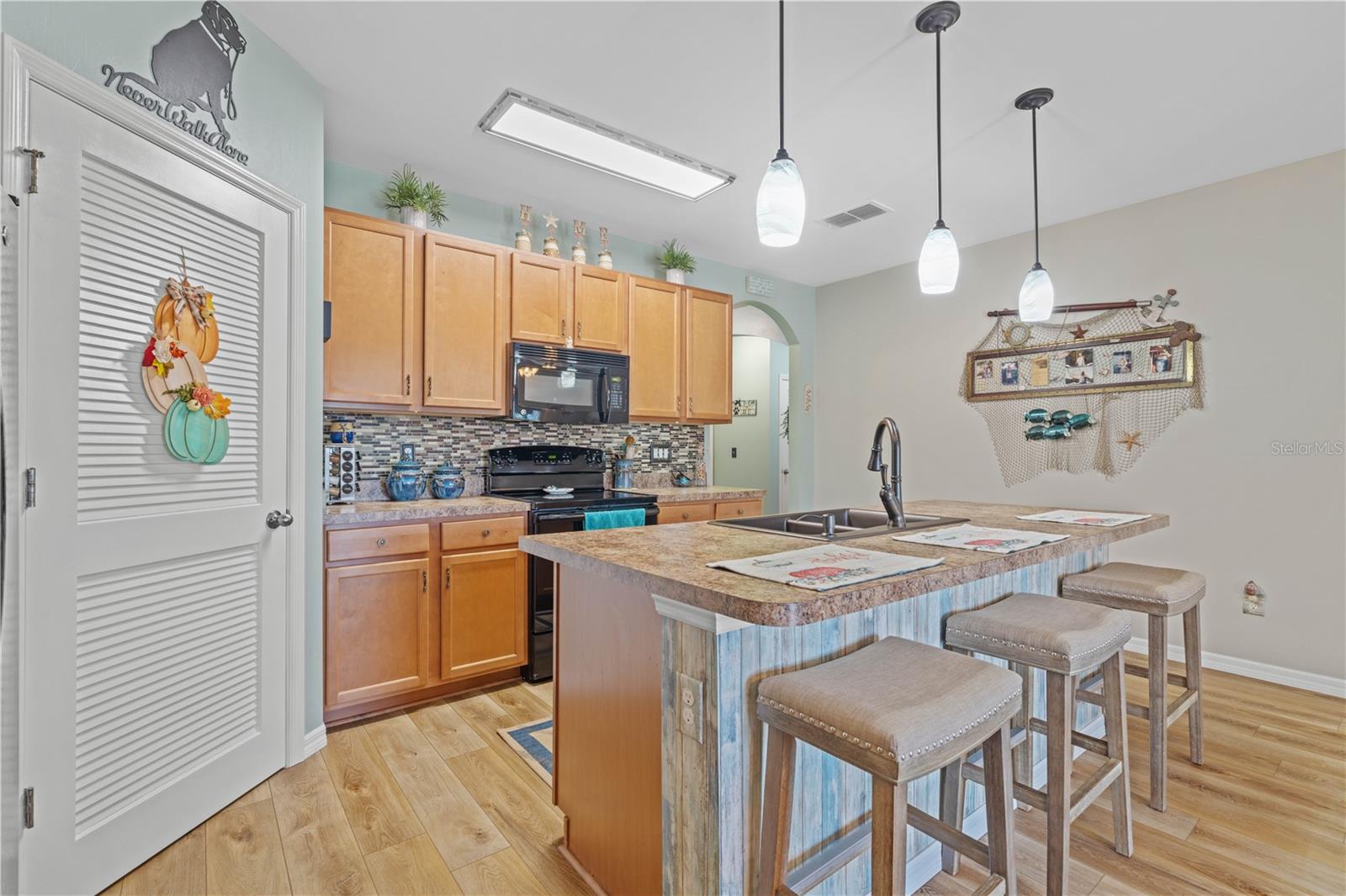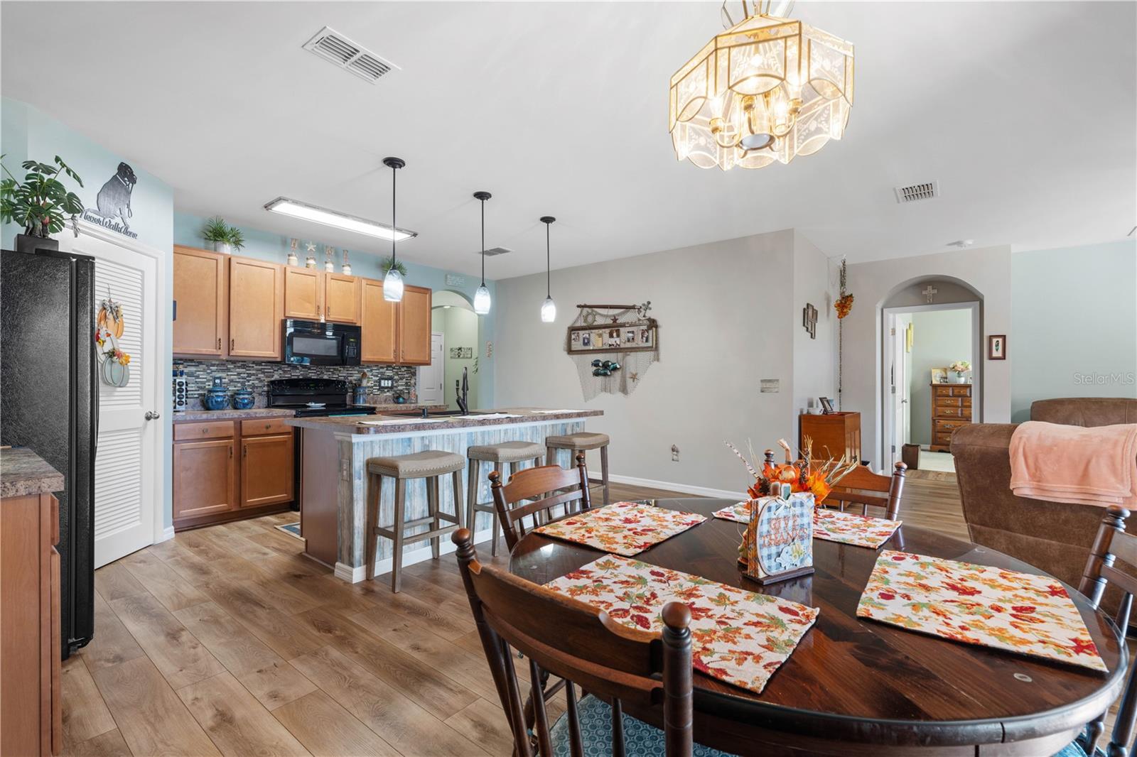 LAKEVIEW HOME IN WATERFORD ESTATES - Lovely *FOUR* bed/TWO bath home in the gated community of Waterford Estates boasts an open floor plan, wonderful lake view from most of the home on an oversized property with extended length driveway. Inside, the open layout features a large living room, dining area & chef's kitchen. Sliding glass doors open to the lanai extending the living space out onto the lanai. Large kitchen has a mosaic tile-look back splash, center island w/pendant lighting & breakfast bar seating plus a walk-in corner pantry. Architectural details include large UV-protected windows that let in tons of natural light, luxury vinyl plank flooring throughout the home w/exception of new carpet in one guest bedroom. Home is in move-in condition & boasts a spacious, master retreat w/two closets (including one oversized, walk-in) & an en-suite master bath w/private WC, dual sinks, shower w/adjustable shower head & large linen closet. The three guest rooms share a guest bath w/combination tub/shower. The L-shaped lanai has a stamped concrete deck w/picture-frame screen enclosure creating the perfect space to sit back, relax & enjoy the phenomenal lake view. Other amenities include an interior laundry room w/full-sized washer & dryer, attached 2-car garage, widened driveway, gas generator w/hook-up transfer switch, & whole-house hurricane protection. Low-voltage lighting brightens up the home at night for a beautiful look. NEW ROOF 2022. Exterior paint NEW in 2024. Waterford Estates is a growing community w/gated entrances, two pools, a community center w/billiards & card rooms plus a fitness center, pickle ball & bocce courts. Miles of sidewalks allow your evening stroll to pass by numerous lakes throughout the picturesque neighborhood. Low HOA fees (paid quarterly) cover lawn mowing & quarterly trimming plus yard irrigation, recreation facilities & management company. Neighborhood is conveniently located minutes from historic downtown Punta Gorda & Fishermen's Village w/easy access to US41, I-75, PGD airport & FSW College. Home has a transferrable flood policy w/$930 premium ($4,454 discount). FURNITURE/TURN-KEY AVAILABLE (NEGOTIABLE) Make an appointment today. You won't be disappointed.