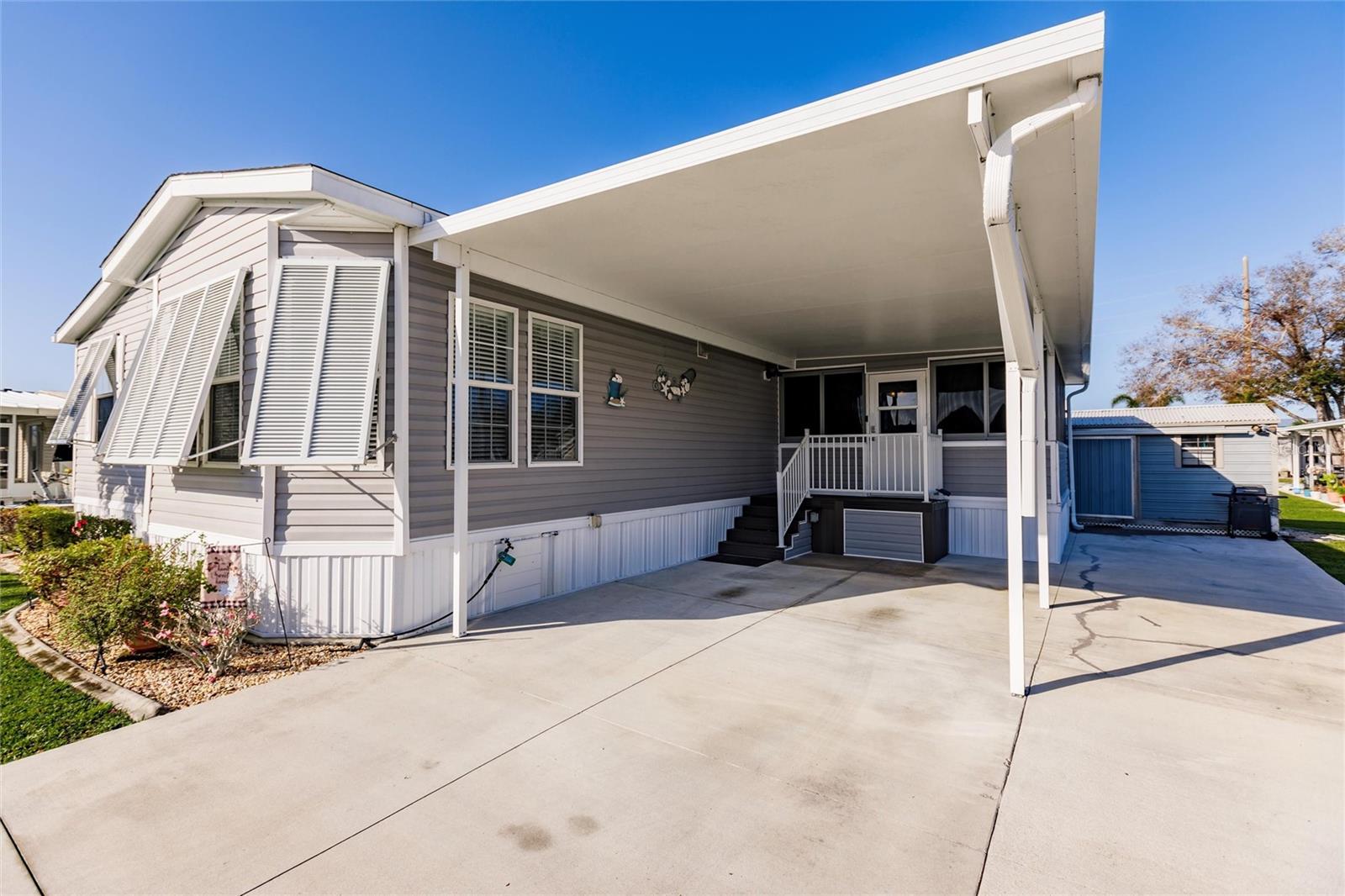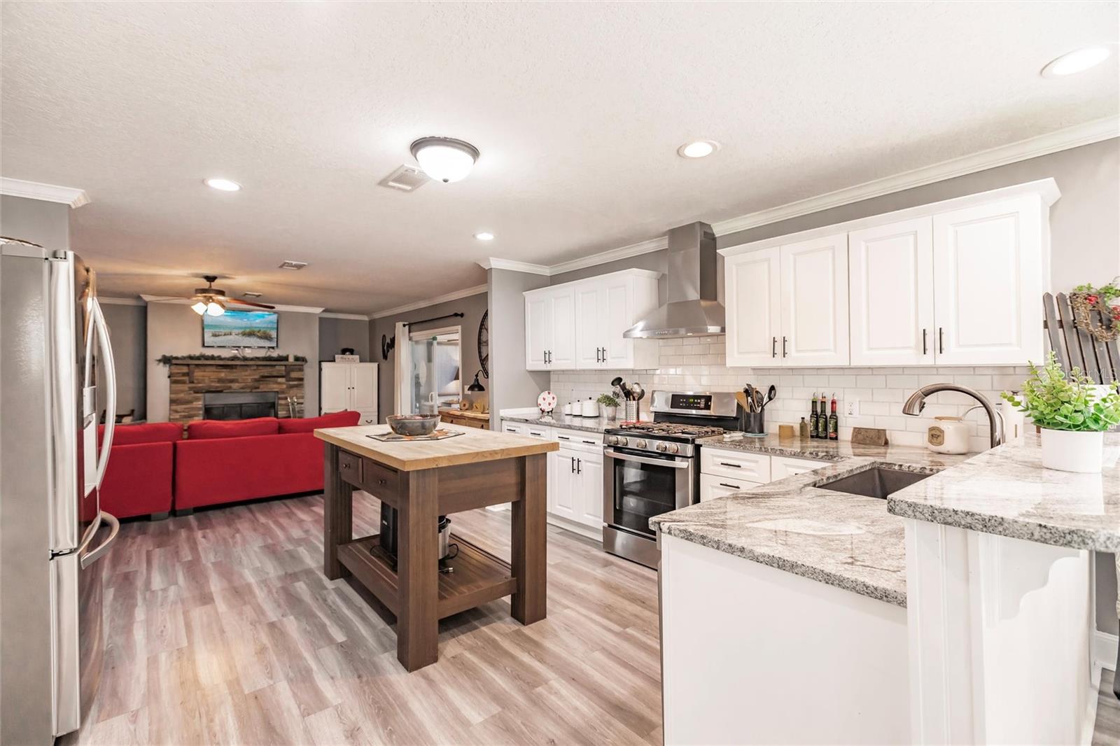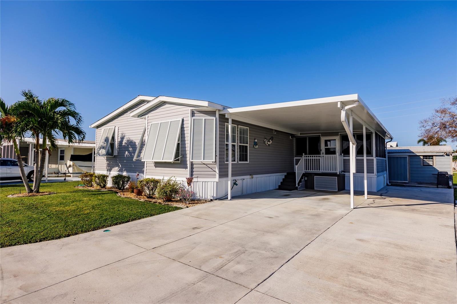 Luxury, Comfort & Lifestyle in Punta Gorda’s Premier 55+ Community! Step into the elegance and spacious design you’ve been waiting for with this oversized 2018 Fleetwood manufactured home in the highly sought-after Alligator Park. Offering over 1,900 sq. ft., this 3-bedroom, 2-bath beauty combines modern upgrades, timeless style, and everyday convenience—making it a true standout. The open-concept floor plan is perfect for entertaining or relaxing in style. A chef’s dream kitchen awaits, featuring granite countertops, custom white cabinetry, stainless steel appliances, a gas stove with hood, and a butcher block island—the perfect gathering spot for family and friends. The home is brimming with upscale touches, from crown molding throughout to a cozy wood-burning fireplace that anchors the living area. Retreat to the spacious master suite with plush carpeting, freestanding wardrobe closet, and a spa-like bathroom with dual vanities, a tiled walk-in shower with glass doors, and a bonus sitting vanity area. Peace of mind comes built-in with a whole-house water softener, 50 AMP generator hook-up, and thoughtful upgrades inside and out. The exterior impresses with an oversized driveway and carport—ample space for multiple vehicles, guests, or even your RV. Life at Alligator Park means more than just a home—it’s a lifestyle. Residents enjoy a heated swimming & lap pool, active clubhouse, and a vibrant calendar of community events. All just minutes from downtown Punta Gorda, waterfront dining, shopping, and Gulf Coast beaches. This home comes mostly furnished (see included list) and even better—the price includes the $60K park share! Don’t miss your chance to own this luxuriously upgraded home in one of Punta Gorda’s most desirable 55+ communities.