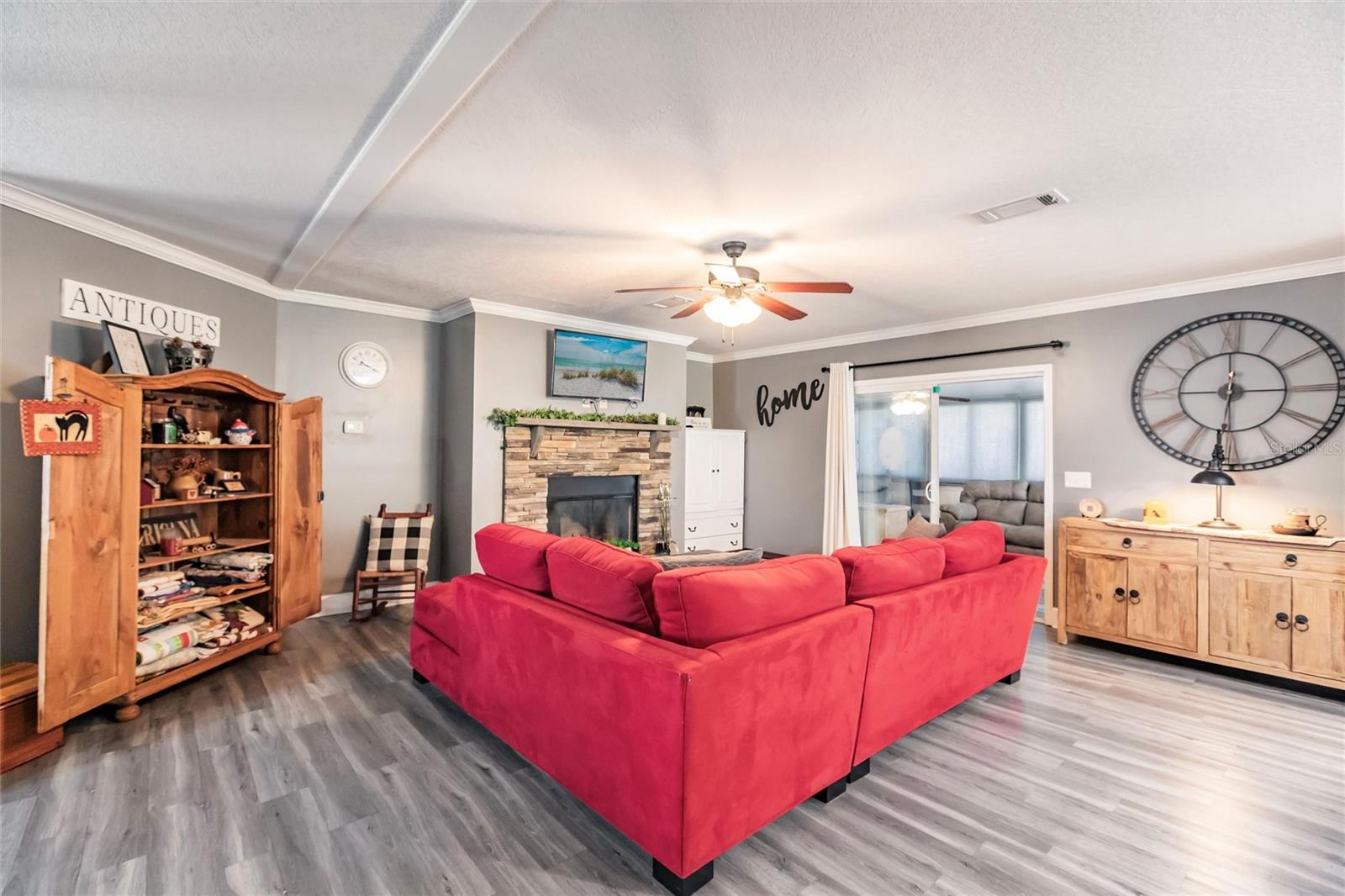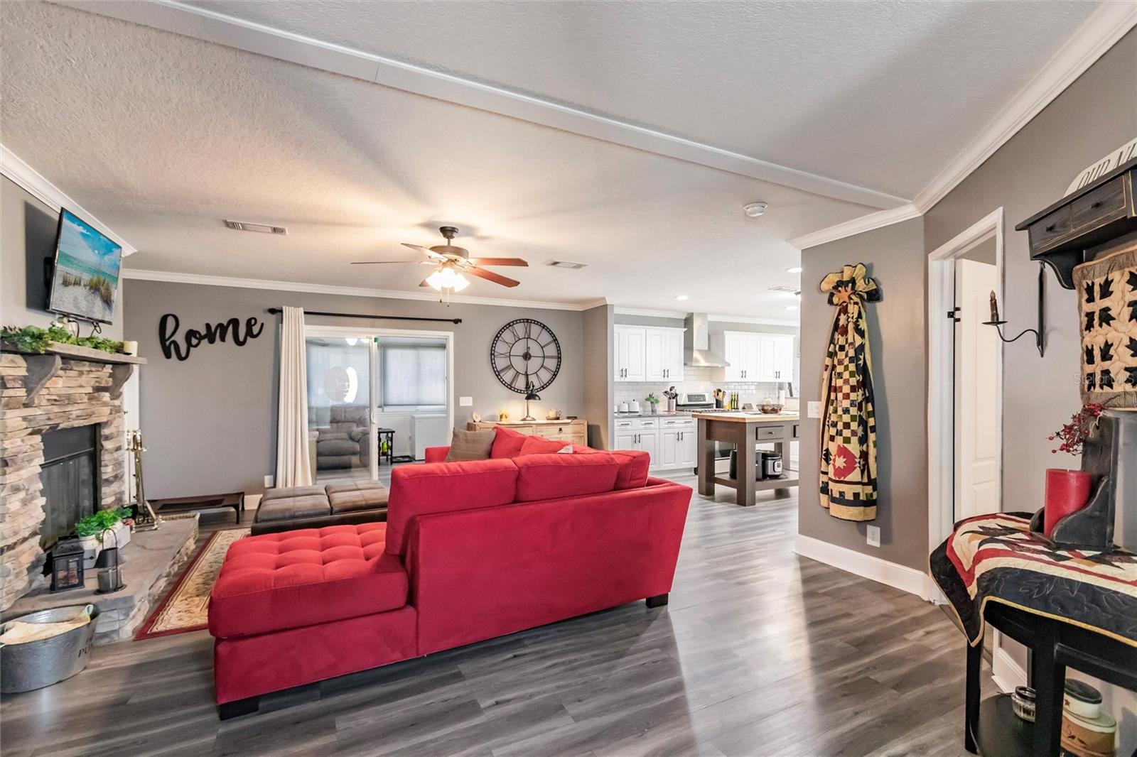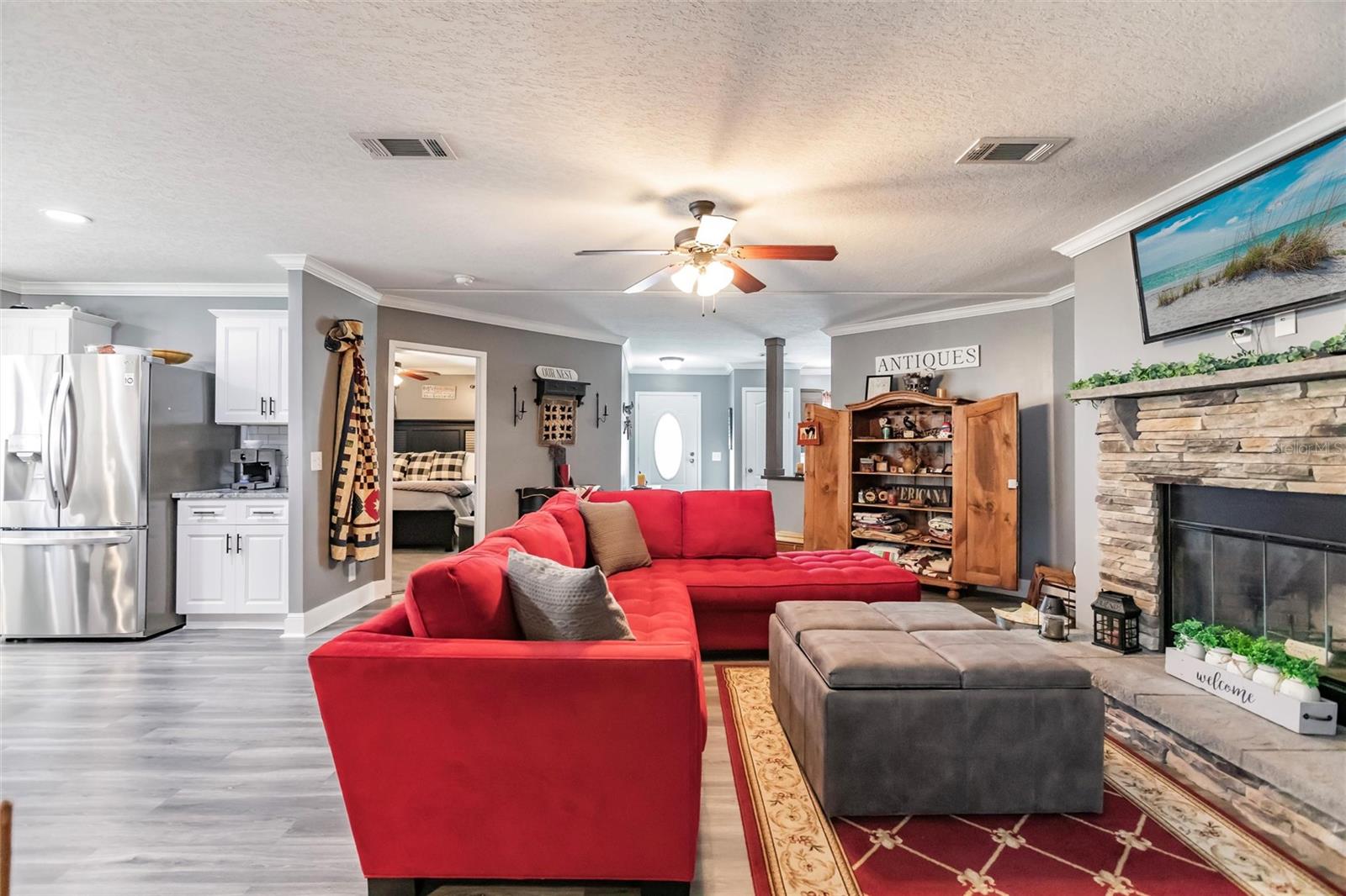Luxury, Comfort & Lifestyle in Punta Gorda’s Premier 55+ Community! Step into the elegance and spacious design you’ve been waiting for with this oversized 2018 Fleetwood manufactured home in the highly sought-after Alligator Park. Offering over 1,900 sq. ft., this 3-bedroom, 2-bath beauty combines modern upgrades, timeless style, and everyday convenience—making it a true standout. The open-concept floor plan is perfect for entertaining or relaxing in style. A chef’s dream kitchen awaits, featuring granite countertops, custom white cabinetry, stainless steel appliances, a gas stove with hood, and a butcher block island—the perfect gathering spot for family and friends. The home is brimming with upscale touches, from crown molding throughout to a cozy wood-burning fireplace that anchors the living area. Retreat to the spacious master suite with plush carpeting, freestanding wardrobe closet, and a spa-like bathroom with dual vanities, a tiled walk-in shower with glass doors, and a bonus sitting vanity area. Peace of mind comes built-in with a whole-house water softener, 50 AMP generator hook-up, and thoughtful upgrades inside and out. The exterior impresses with an oversized driveway and carport—ample space for multiple vehicles, guests, or even your RV. Life at Alligator Park means more than just a home—it’s a lifestyle. Residents enjoy a heated swimming & lap pool, active clubhouse, and a vibrant calendar of community events. All just minutes from downtown Punta Gorda, waterfront dining, shopping, and Gulf Coast beaches. This home comes mostly furnished (see included list) and even better—the price includes the $60K park share! Don’t miss your chance to own this luxuriously upgraded home in one of Punta Gorda’s most desirable 55+ communities.