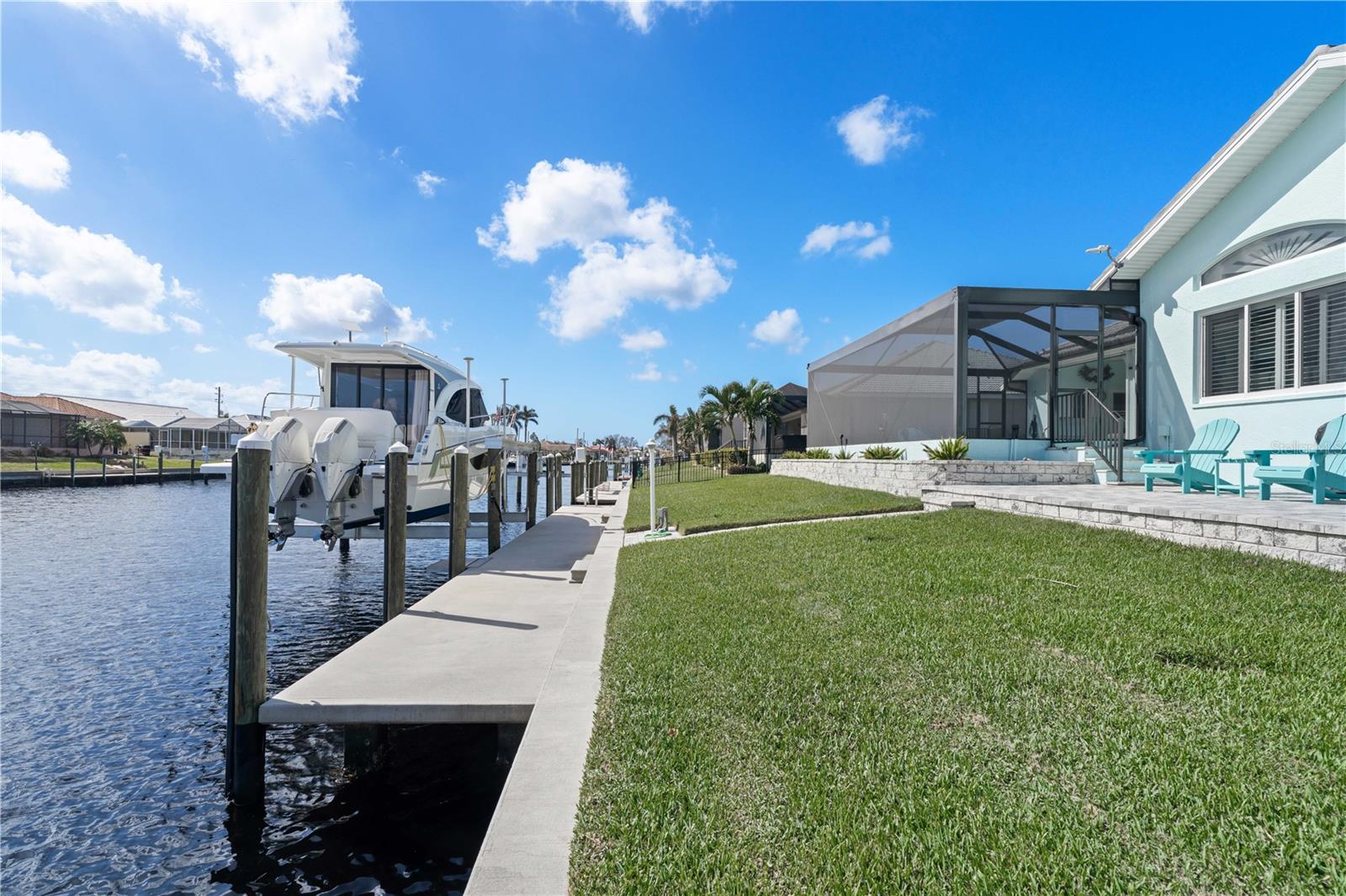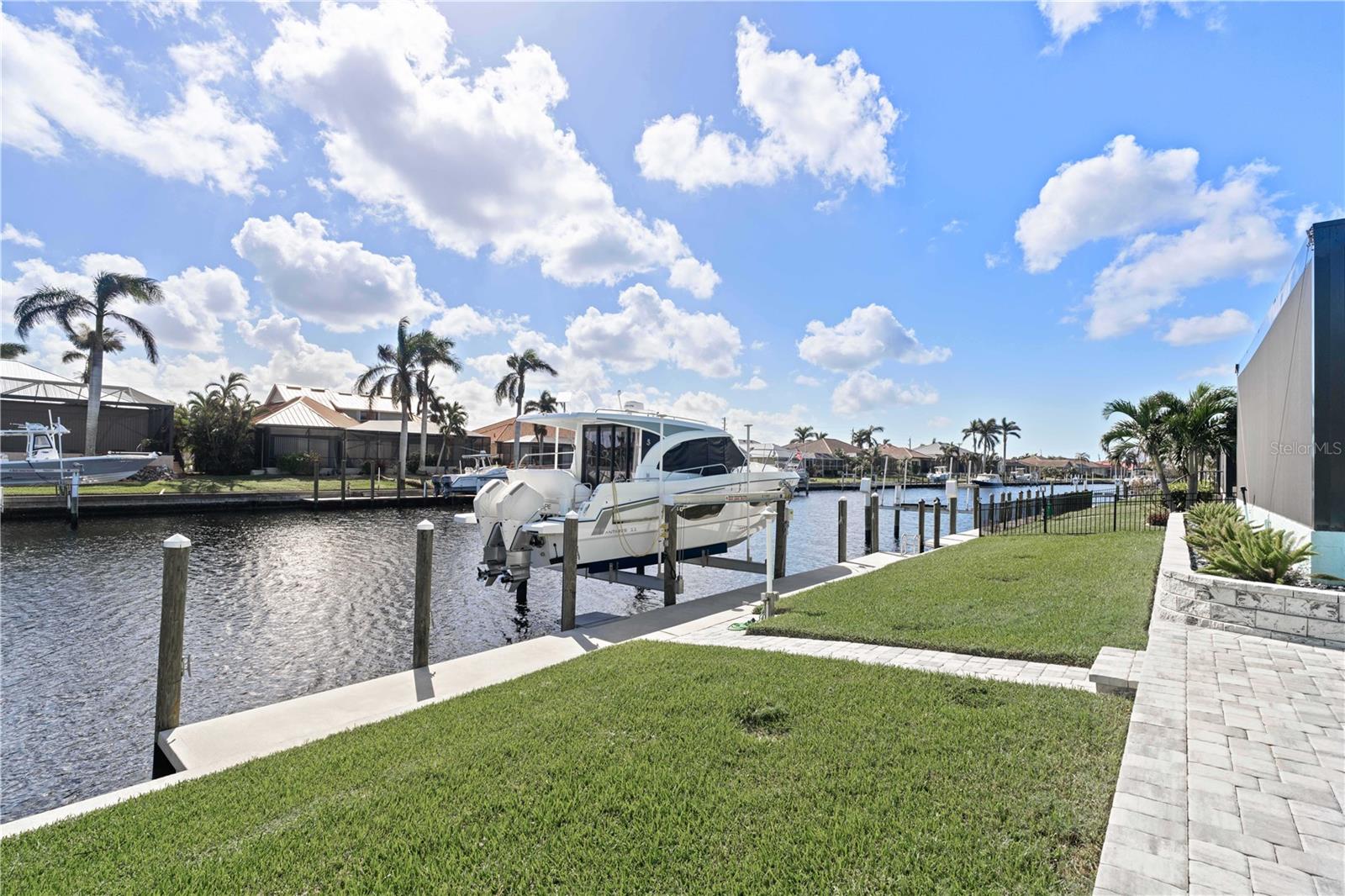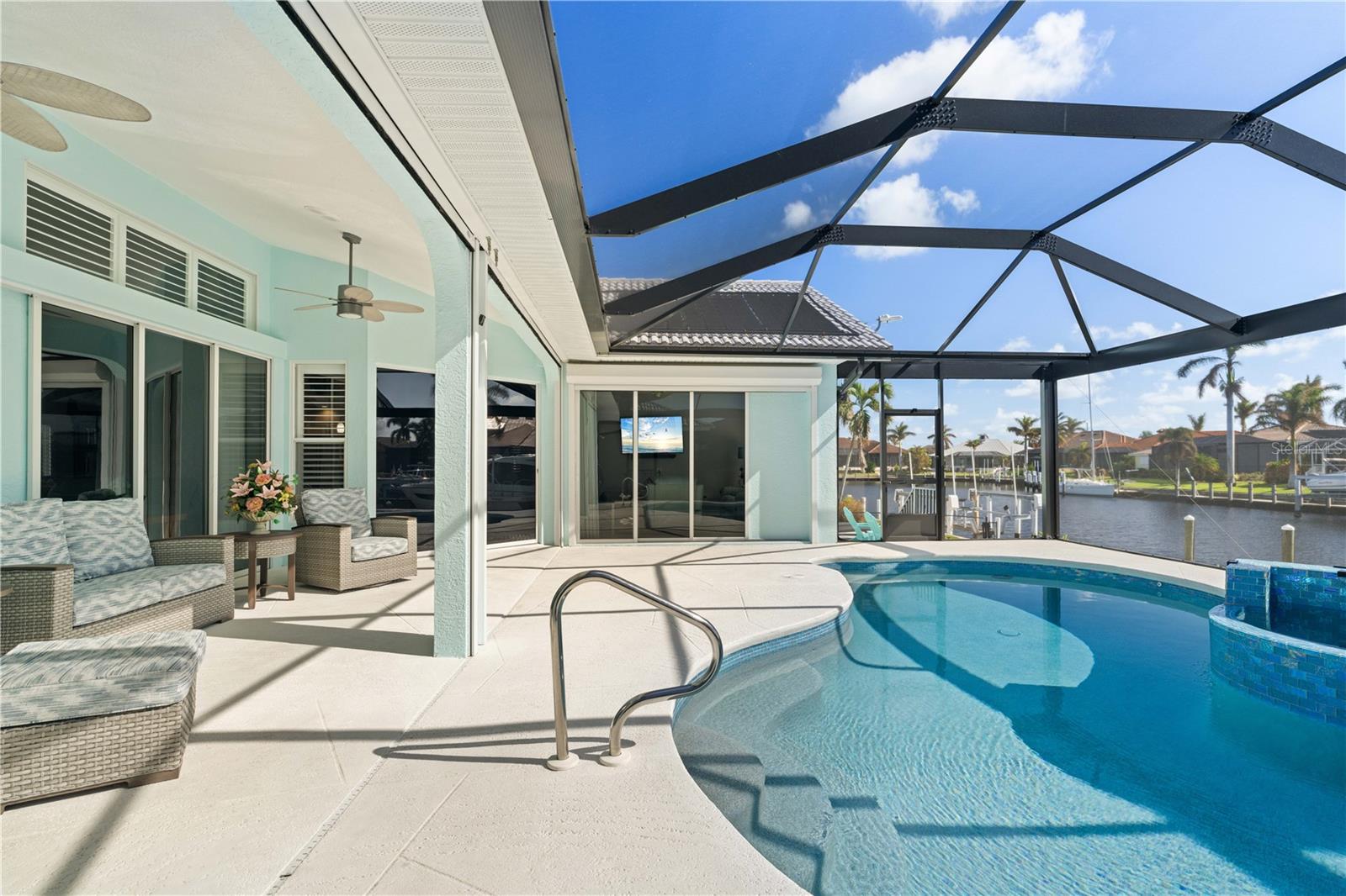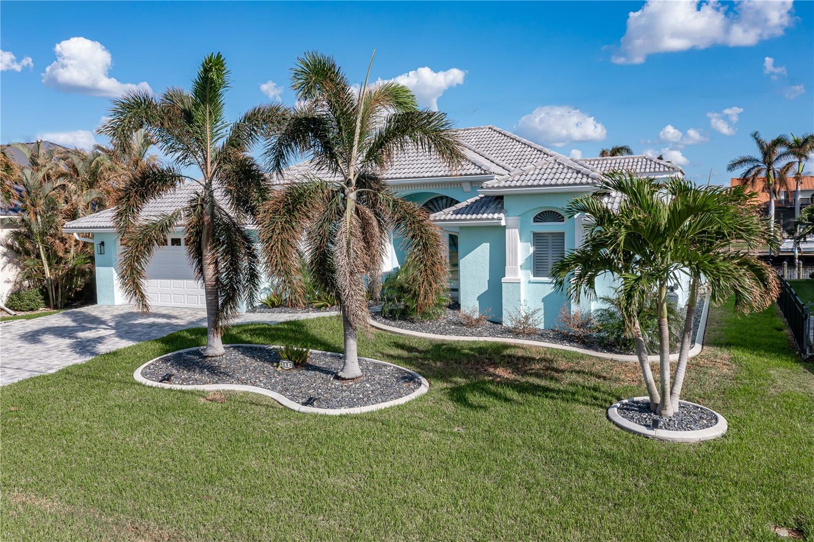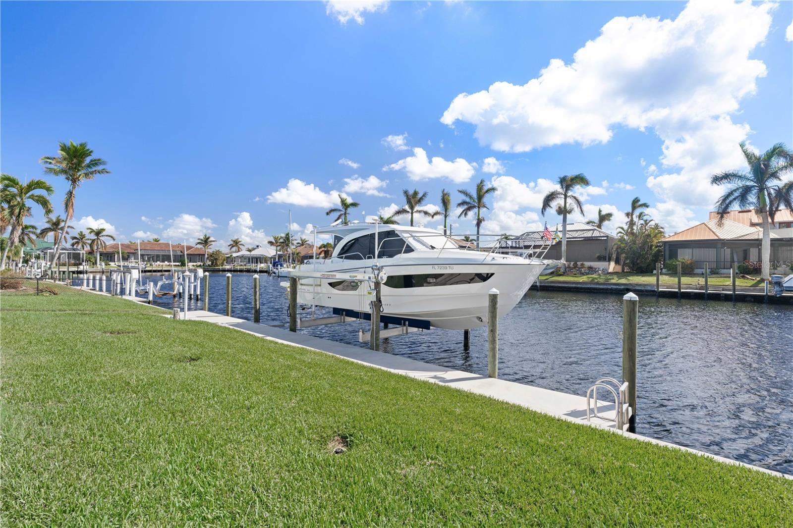 GORGEOUS, WATERFRONT HOME IN PGI W/10 FT ELEVATION, 84 FT OF SEAWALL & QUICK SAIL ACCESS TO CHARLOTTE HARBOR - This beautifully updated, 3 bed/2.5 bath home HAS IT ALL - nearly 2,300 sq ft of living space, 84 ft of seawall, extended concrete dock w/boat lift & sailboat access to Charlotte Harbor. The property is located on a wider than average canal with a great turning basin. Step through the beautiful (hurricane rated) double doors w/inlaid glass to discover a spacious, open floor plan w/formal living room, dining room & separate family room. The home has been completely updated w/new luxury vinyl plank flooring throughout most of the home (carpet in master bed), gorgeous kitchen & baths w/top-of-the-line counters and appliances plus new plantation shutters & all new exterior paint, soffits & gutters. Other architectural details include cathedral ceilings, disappearing sliding glass doors in the living room & family room that seamlessly blend the indoor & outdoor living spaces, transom windows above windows & sliders & decorative plant shelves. Kitchen is the heart of the home & a chef's dream w/quartz counters, NEW GE stainless steel appliances including a convection oven & induction cook top plus a breakfast bar w/pendant lighting. An adjacent breakfast area gives you more options for dining while offering a pool & canal view. Kitchen also opens to the large family room for easy entertaining. The split bedroom floor plan boasts large bedrooms including a private owner's retreat w/spa-like bath, an oversized walk-in closet & walk-out access to the lanai. The master bath has dual sinks, custom vanity w/quartz top, private WC, modern soaking tub & walk-in tile shower w/detachable shower head. The large guest rooms share a beautifully updated guest bath w/walk-in tiled shower. Outside, the large lanai has an in-ground, solar-heated pool & PLENTY OF ROOM for outdoor entertaining. In addition to the screened lanai, the home boasts a large, open-air brick paver patio designed for soaking of the Florida sun as well as giving you the perfect place to BBQ! The fenced backyard leads to an extended, 60ft concrete dock w/20,000 lb, REMOTE-CONTROLLED gear driven boat lift. Water & electric hook-ups are available dockside. Additional updates include completely NEW A/C (including duct work, handler & compressor), NEW paver patio & walkway to dock (2023), NEW pool cage w/panoramic screens, refinished pool deck (2023), NEW pool pump & filter (2023), resurfaced pool w/NEW glass waterline tile for pool & fountain (2023), NEW 20,000 lb boat lift (2024), NEW paver driveway (2024), NEW water heater (2021) & NEW remote-controlled Kevlar hurricane screens on lanai (2023). Other amenities include attached two-car garage, WHOLE HOUSE HURRICANE PROTECTION (mix of impact windows, roll down shutters & Kevlar screens), water softener & well-maintained tropical landscaping that surrounds the home. No expense was spared during renovations. This home is move-in ready. Make an appointment today & be prepared to fall in love! FURNITURE NEGOTIABLE - AVAILABLE TURNKEY, IF DESIRED.
