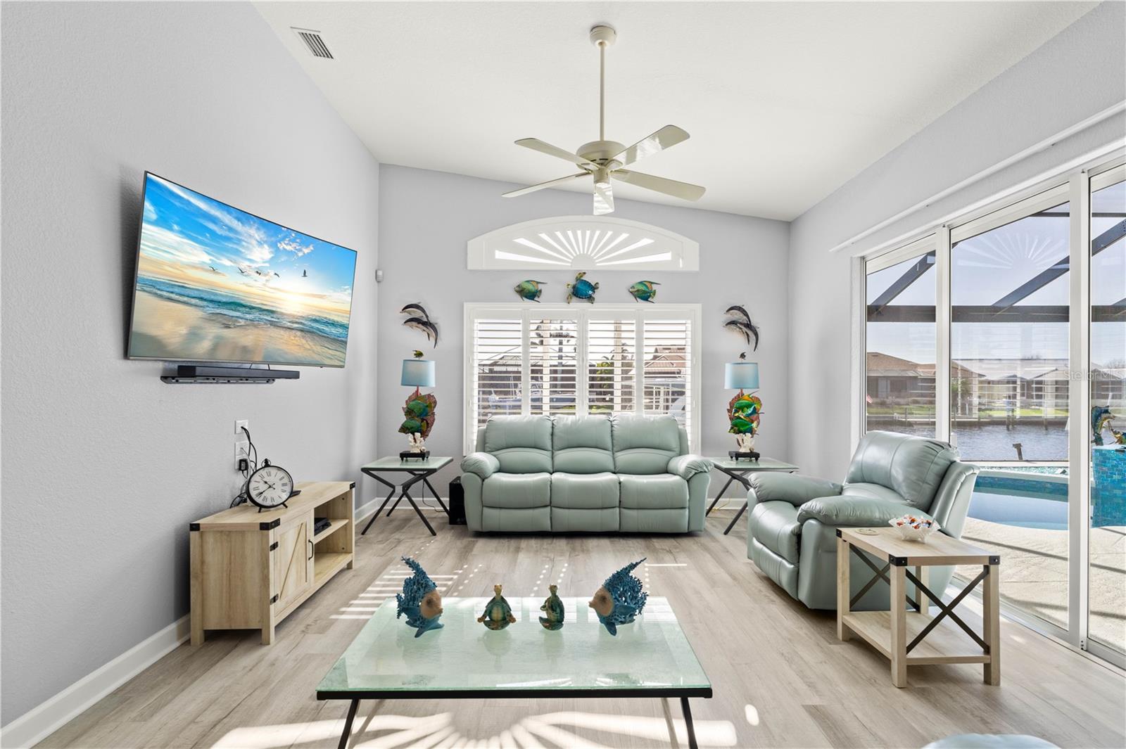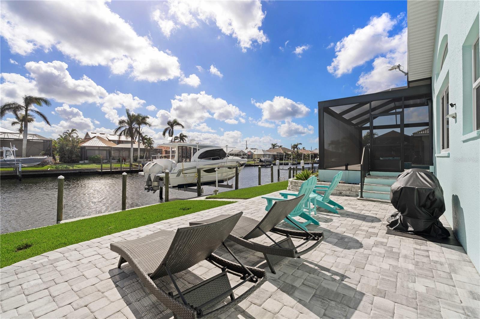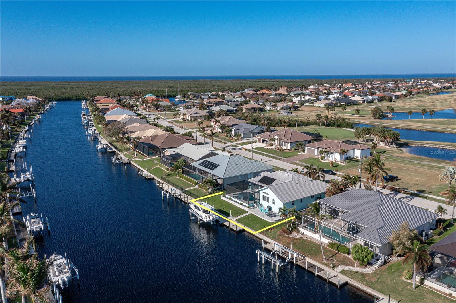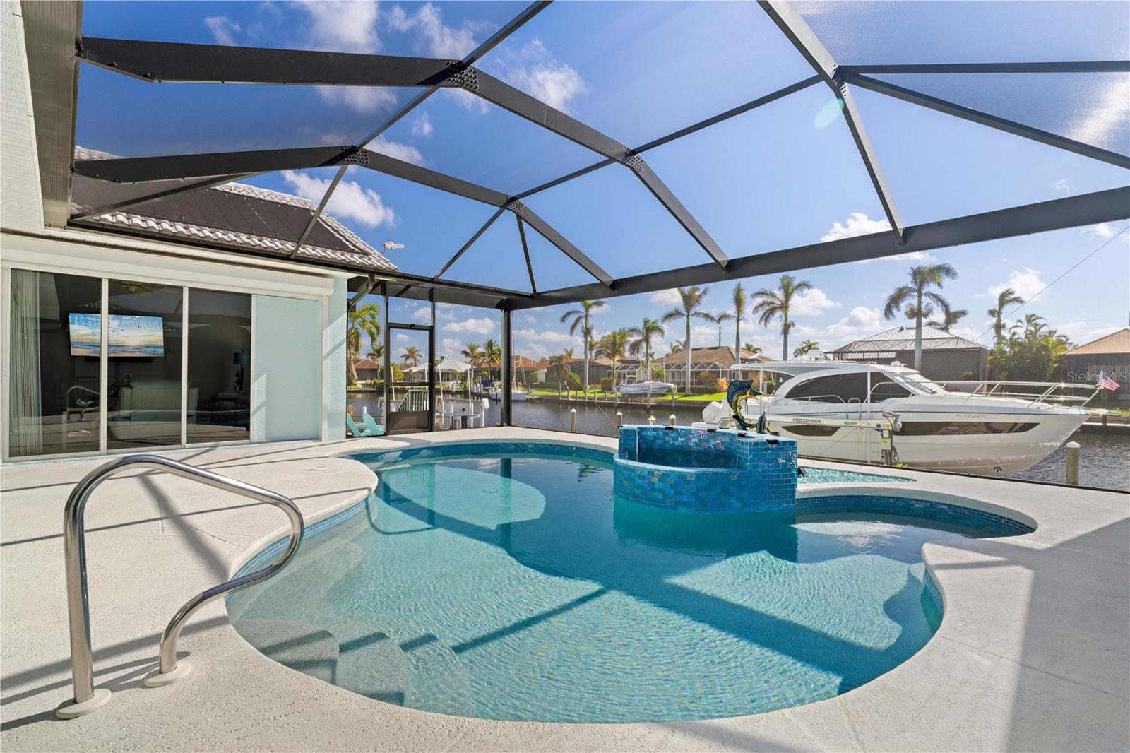 GORGEOUS, WATERFRONT HOME IN PGI W/10 FT ELEVATION, 84 FT OF SEAWALL & QUICK SAIL ACCESS TO CHARLOTTE HARBOR - This beautifully updated, 3 bed/2.5 bath home HAS IT ALL - nearly 2,300 sq ft of living space, 84 ft of seawall, extended concrete dock w/boat lift & sailboat access to Charlotte Harbor. The property is located on a wider than average canal with a great turning basin. Step through the beautiful (hurricane rated) double doors w/inlaid glass to discover a spacious, open floor plan w/formal living room, dining room & separate family room. The home has been completely updated w/new luxury vinyl plank flooring throughout most of the home (carpet in master bed), gorgeous kitchen & baths w/top-of-the-line counters and appliances plus new plantation shutters & all new exterior paint, soffits & gutters. Other architectural details include cathedral ceilings, disappearing sliding glass doors in the living room & family room that seamlessly blend the indoor & outdoor living spaces, transom windows above windows & sliders & decorative plant shelves. Kitchen is the heart of the home & a chef's dream w/quartz counters, NEW GE stainless steel appliances including a convection oven & induction cook top plus a breakfast bar w/pendant lighting. An adjacent breakfast area gives you more options for dining while offering a pool & canal view. Kitchen also opens to the large family room for easy entertaining. The split bedroom floor plan boasts large bedrooms including a private owner's retreat w/spa-like bath, an oversized walk-in closet & walk-out access to the lanai. The master bath has dual sinks, custom vanity w/quartz top, private WC, modern soaking tub & walk-in tile shower w/detachable shower head. The large guest rooms share a beautifully updated guest bath w/walk-in tiled shower. Outside, the large lanai has an in-ground, solar-heated pool & PLENTY OF ROOM for outdoor entertaining. In addition to the screened lanai, the home boasts a large, open-air brick paver patio designed for soaking of the Florida sun as well as giving you the perfect place to BBQ! The fenced backyard leads to an extended, 60ft concrete dock w/20,000 lb, REMOTE-CONTROLLED gear driven boat lift. Water & electric hook-ups are available dockside. Additional updates include completely NEW A/C (including duct work, handler & compressor), NEW paver patio & walkway to dock (2023), NEW pool cage w/panoramic screens, refinished pool deck (2023), NEW pool pump & filter (2023), resurfaced pool w/NEW glass waterline tile for pool & fountain (2023), NEW 20,000 lb boat lift (2024), NEW paver driveway (2024), NEW water heater (2021) & NEW remote-controlled Kevlar hurricane screens on lanai (2023). Other amenities include attached two-car garage, WHOLE HOUSE HURRICANE PROTECTION (mix of impact windows, roll down shutters & Kevlar screens), water softener & well-maintained tropical landscaping that surrounds the home. No expense was spared during renovations. This home is move-in ready. Make an appointment today & be prepared to fall in love! FURNITURE NEGOTIABLE - AVAILABLE TURNKEY, IF DESIRED.