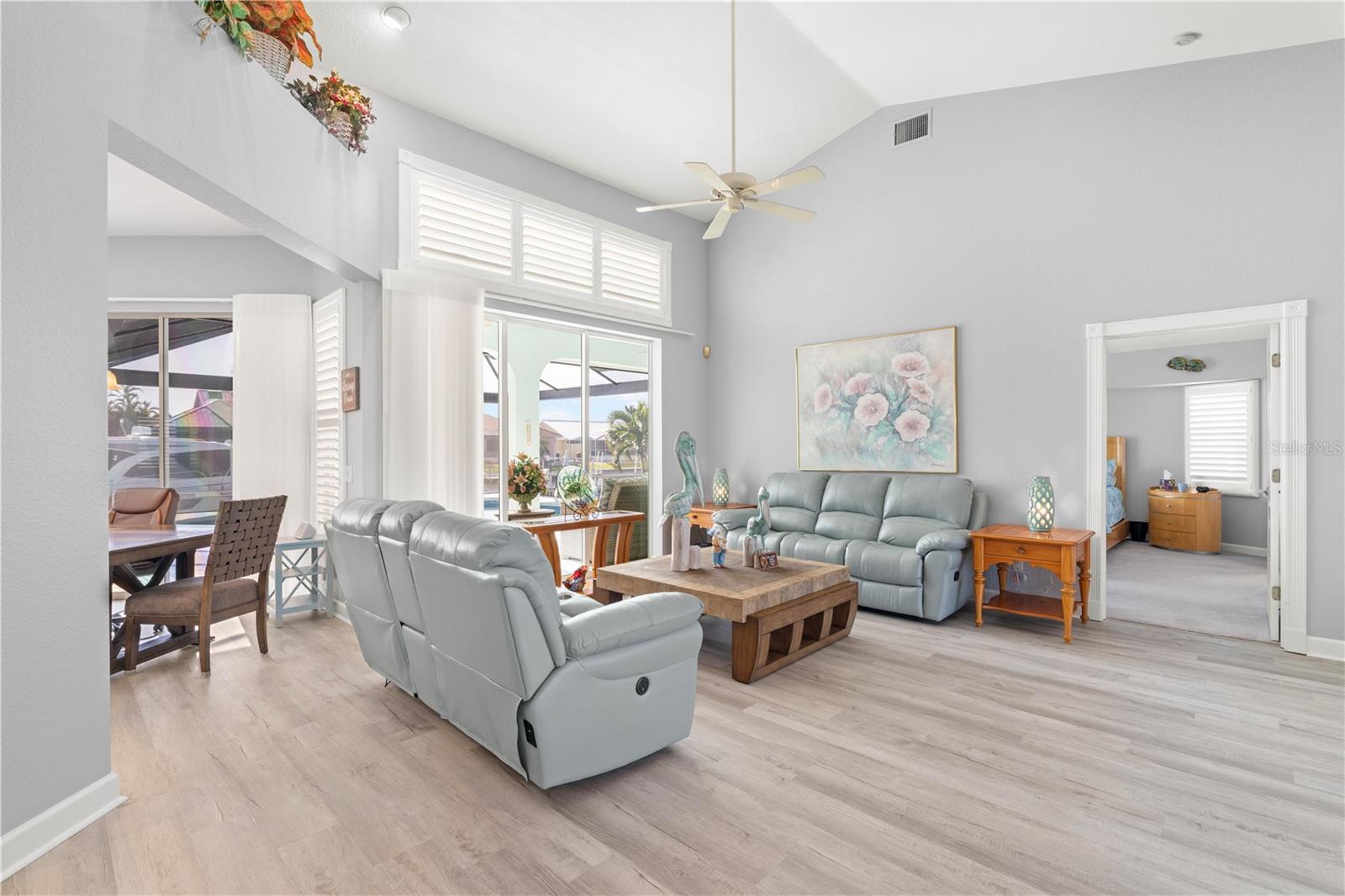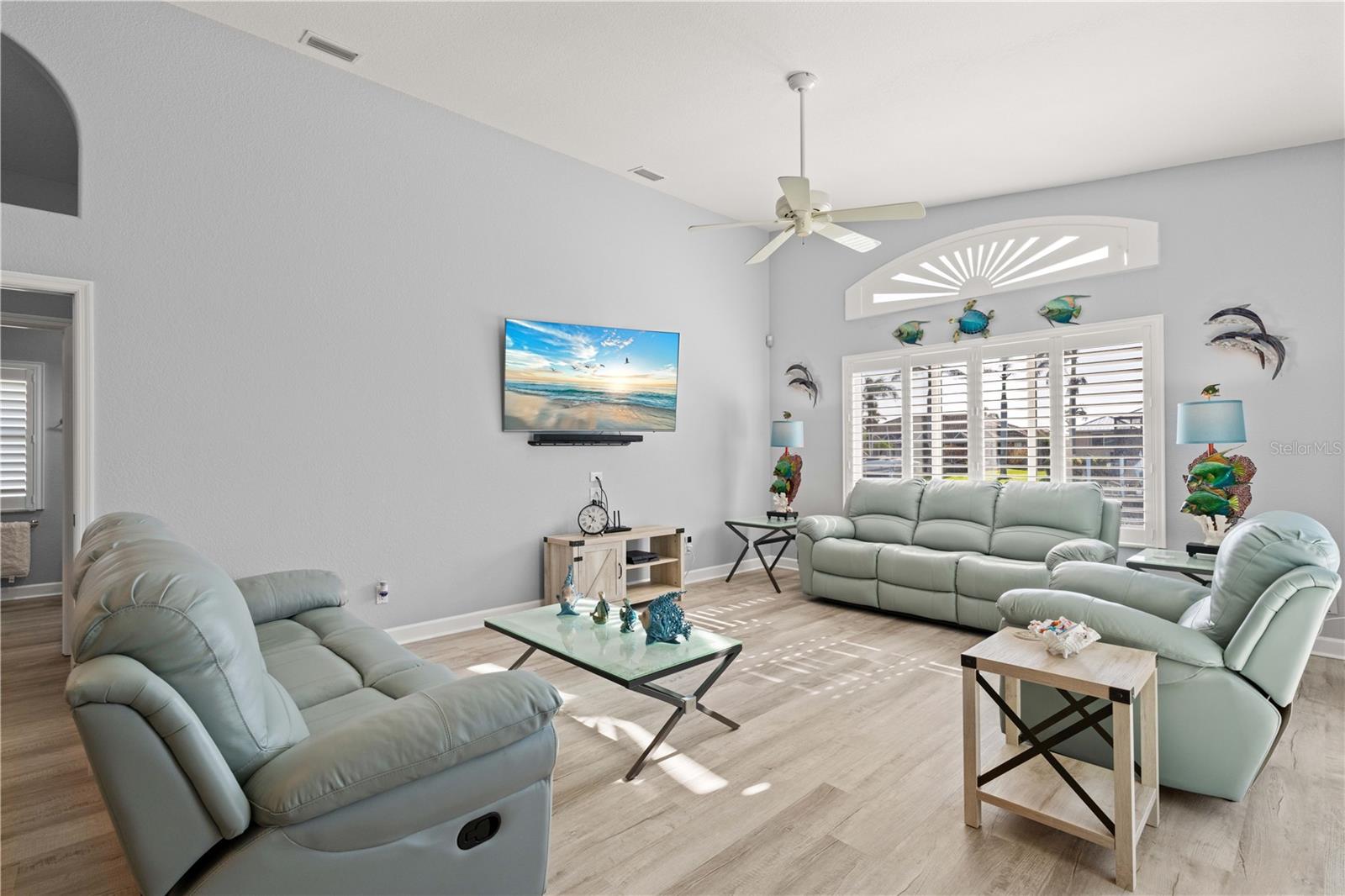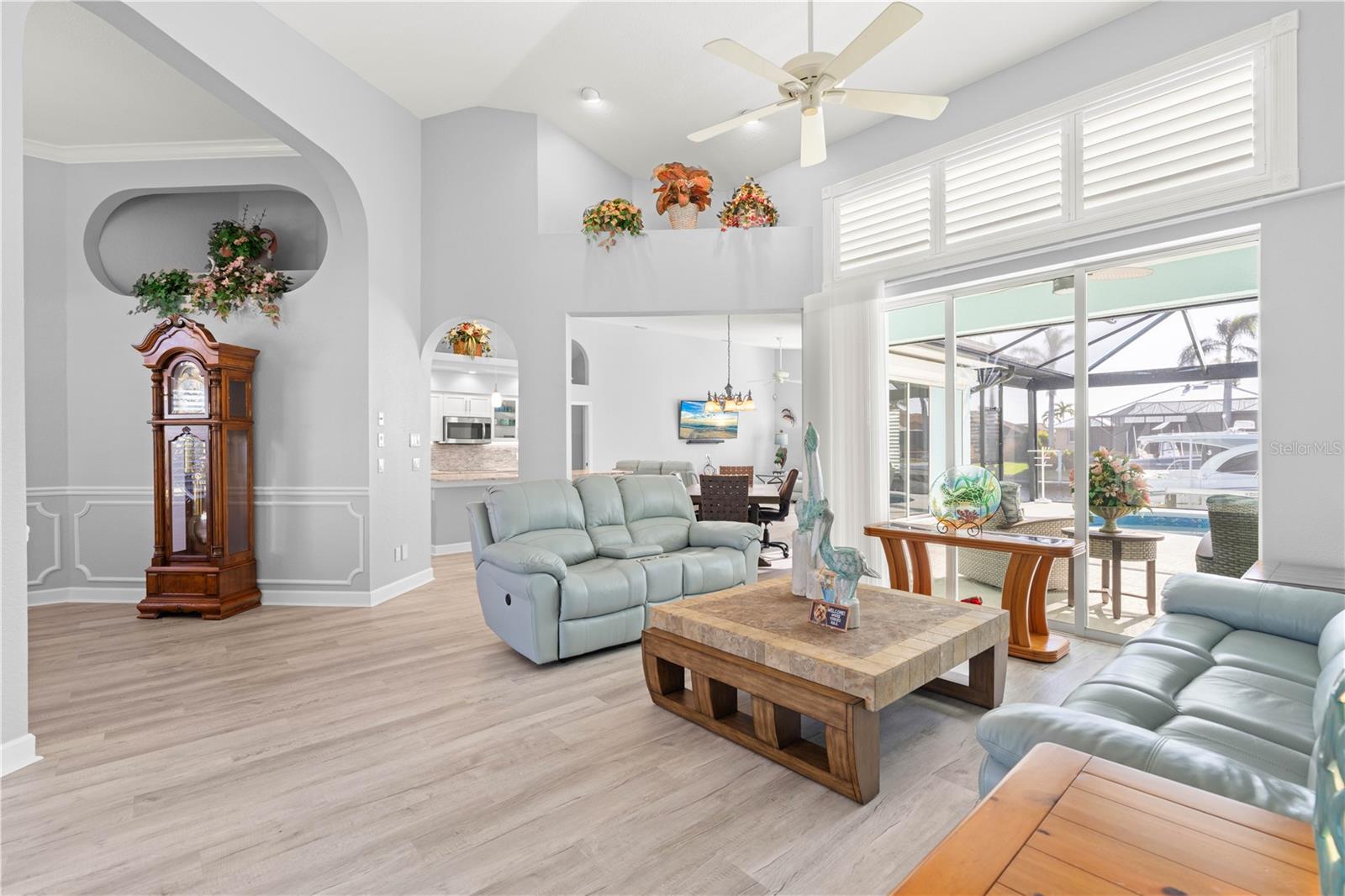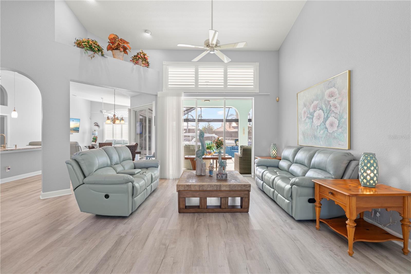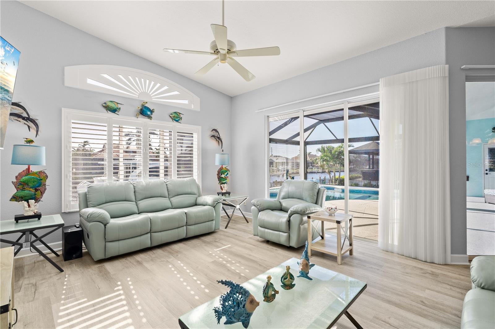 GORGEOUS, WATERFRONT HOME IN PGI W/10 FT ELEVATION, 84 FT OF SEAWALL & QUICK SAIL ACCESS TO CHARLOTTE HARBOR - This beautifully updated, 3 bed/2.5 bath home HAS IT ALL - nearly 2,300 sq ft of living space, 84 ft of seawall, extended concrete dock w/boat lift & sailboat access to Charlotte Harbor. The property is located on a wider than average canal with a great turning basin. Step through the beautiful (hurricane rated) double doors w/inlaid glass to discover a spacious, open floor plan w/formal living room, dining room & separate family room. The home has been completely updated w/new luxury vinyl plank flooring throughout most of the home (carpet in master bed), gorgeous kitchen & baths w/top-of-the-line counters and appliances plus new plantation shutters & all new exterior paint, soffits & gutters. Other architectural details include cathedral ceilings, disappearing sliding glass doors in the living room & family room that seamlessly blend the indoor & outdoor living spaces, transom windows above windows & sliders & decorative plant shelves. Kitchen is the heart of the home & a chef's dream w/quartz counters, NEW GE stainless steel appliances including a convection oven & induction cook top plus a breakfast bar w/pendant lighting. An adjacent breakfast area gives you more options for dining while offering a pool & canal view. Kitchen also opens to the large family room for easy entertaining. The split bedroom floor plan boasts large bedrooms including a private owner's retreat w/spa-like bath, an oversized walk-in closet & walk-out access to the lanai. The master bath has dual sinks, custom vanity w/quartz top, private WC, modern soaking tub & walk-in tile shower w/detachable shower head. The large guest rooms share a beautifully updated guest bath w/walk-in tiled shower. Outside, the large lanai has an in-ground, solar-heated pool & PLENTY OF ROOM for outdoor entertaining. In addition to the screened lanai, the home boasts a large, open-air brick paver patio designed for soaking of the Florida sun as well as giving you the perfect place to BBQ! The fenced backyard leads to an extended, 60ft concrete dock w/20,000 lb, REMOTE-CONTROLLED gear driven boat lift. Water & electric hook-ups are available dockside. Additional updates include completely NEW A/C (including duct work, handler & compressor), NEW paver patio & walkway to dock (2023), NEW pool cage w/panoramic screens, refinished pool deck (2023), NEW pool pump & filter (2023), resurfaced pool w/NEW glass waterline tile for pool & fountain (2023), NEW 20,000 lb boat lift (2024), NEW paver driveway (2024), NEW water heater (2021) & NEW remote-controlled Kevlar hurricane screens on lanai (2023). Other amenities include attached two-car garage, WHOLE HOUSE HURRICANE PROTECTION (mix of impact windows, roll down shutters & Kevlar screens), water softener & well-maintained tropical landscaping that surrounds the home. No expense was spared during renovations. This home is move-in ready. Make an appointment today & be prepared to fall in love! FURNITURE NEGOTIABLE - AVAILABLE TURNKEY, IF DESIRED.