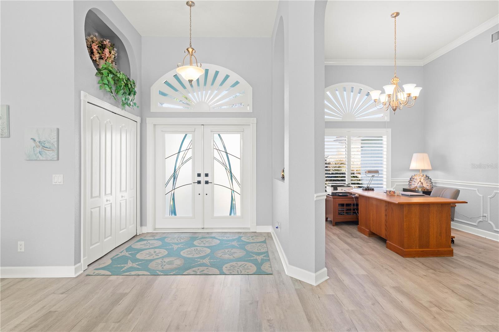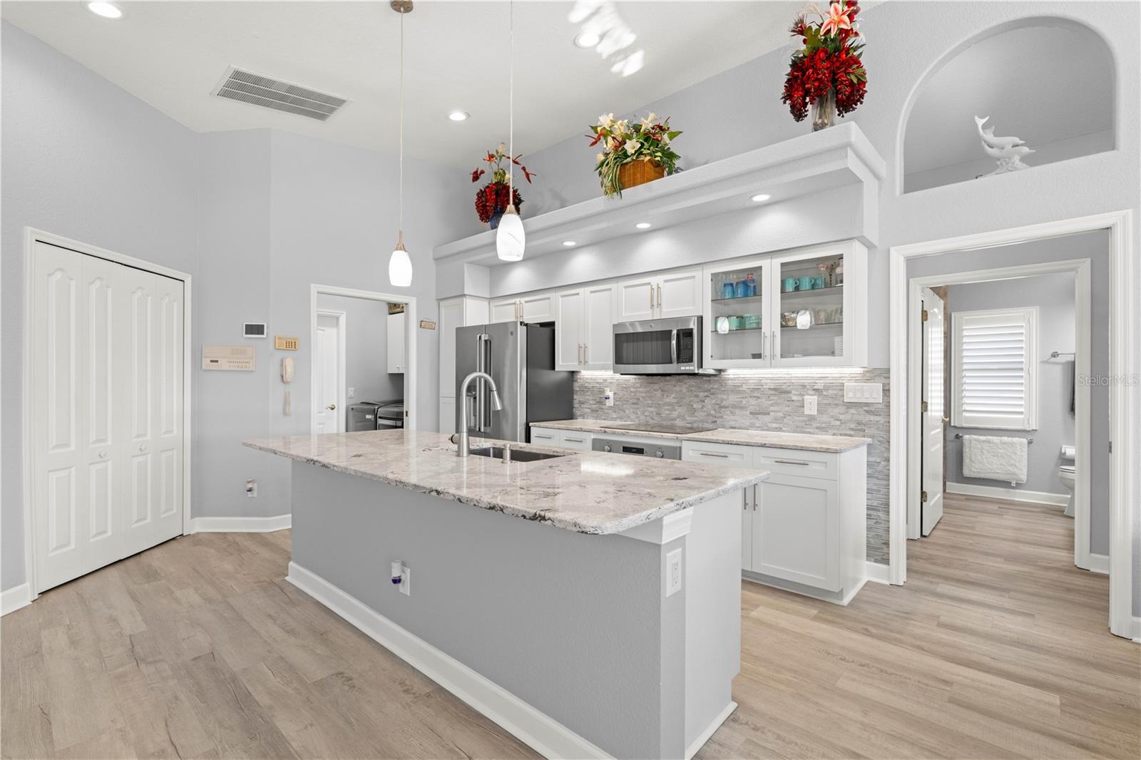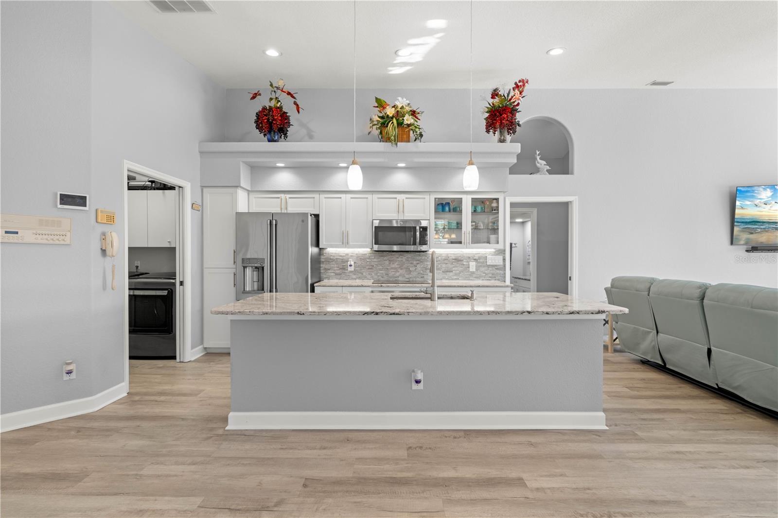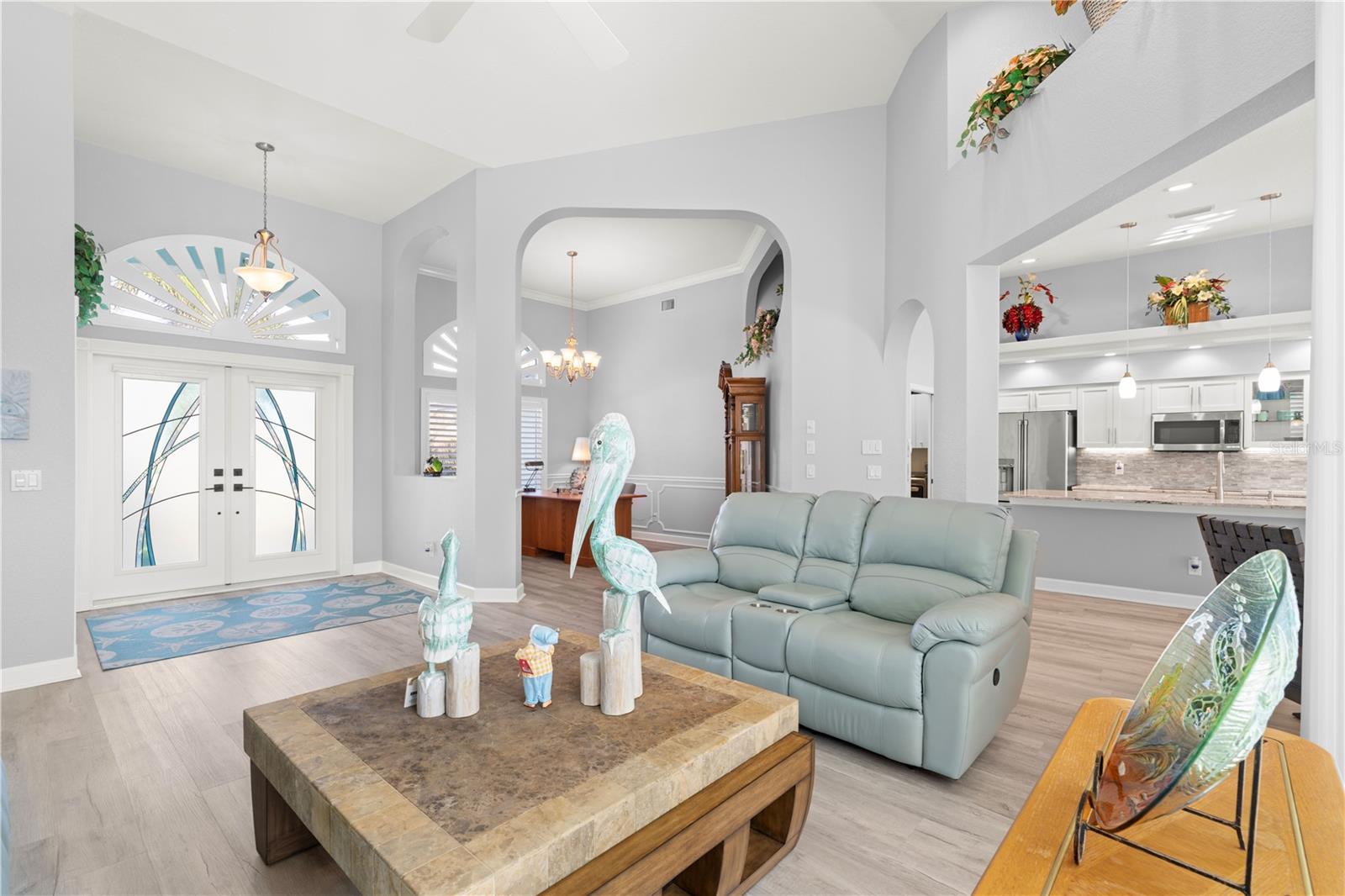 GORGEOUS, WATERFRONT HOME IN PGI W/10 FT ELEVATION, 84 FT OF SEAWALL & QUICK SAIL ACCESS TO CHARLOTTE HARBOR - This beautifully updated, 3 bed/2.5 bath home HAS IT ALL - nearly 2,300 sq ft of living space, 84 ft of seawall, extended concrete dock w/boat lift & sailboat access to Charlotte Harbor. The property is located on a wider than average canal with a great turning basin. Step through the beautiful (hurricane rated) double doors w/inlaid glass to discover a spacious, open floor plan w/formal living room, dining room & separate family room. The home has been completely updated w/new luxury vinyl plank flooring throughout most of the home (carpet in master bed), gorgeous kitchen & baths w/top-of-the-line counters and appliances plus new plantation shutters & all new exterior paint, soffits & gutters. Other architectural details include cathedral ceilings, disappearing sliding glass doors in the living room & family room that seamlessly blend the indoor & outdoor living spaces, transom windows above windows & sliders & decorative plant shelves. Kitchen is the heart of the home & a chef's dream w/quartz counters, NEW GE stainless steel appliances including a convection oven & induction cook top plus a breakfast bar w/pendant lighting. An adjacent breakfast area gives you more options for dining while offering a pool & canal view. Kitchen also opens to the large family room for easy entertaining. The split bedroom floor plan boasts large bedrooms including a private owner's retreat w/spa-like bath, an oversized walk-in closet & walk-out access to the lanai. The master bath has dual sinks, custom vanity w/quartz top, private WC, modern soaking tub & walk-in tile shower w/detachable shower head. The large guest rooms share a beautifully updated guest bath w/walk-in tiled shower. Outside, the large lanai has an in-ground, solar-heated pool & PLENTY OF ROOM for outdoor entertaining. In addition to the screened lanai, the home boasts a large, open-air brick paver patio designed for soaking of the Florida sun as well as giving you the perfect place to BBQ! The fenced backyard leads to an extended, 60ft concrete dock w/20,000 lb, REMOTE-CONTROLLED gear driven boat lift. Water & electric hook-ups are available dockside. Additional updates include completely NEW A/C (including duct work, handler & compressor), NEW paver patio & walkway to dock (2023), NEW pool cage w/panoramic screens, refinished pool deck (2023), NEW pool pump & filter (2023), resurfaced pool w/NEW glass waterline tile for pool & fountain (2023), NEW 20,000 lb boat lift (2024), NEW paver driveway (2024), NEW water heater (2021) & NEW remote-controlled Kevlar hurricane screens on lanai (2023). Other amenities include attached two-car garage, WHOLE HOUSE HURRICANE PROTECTION (mix of impact windows, roll down shutters & Kevlar screens), water softener & well-maintained tropical landscaping that surrounds the home. No expense was spared during renovations. This home is move-in ready. Make an appointment today & be prepared to fall in love! FURNITURE NEGOTIABLE - AVAILABLE TURNKEY, IF DESIRED.