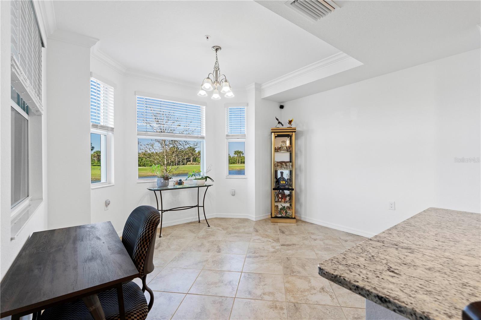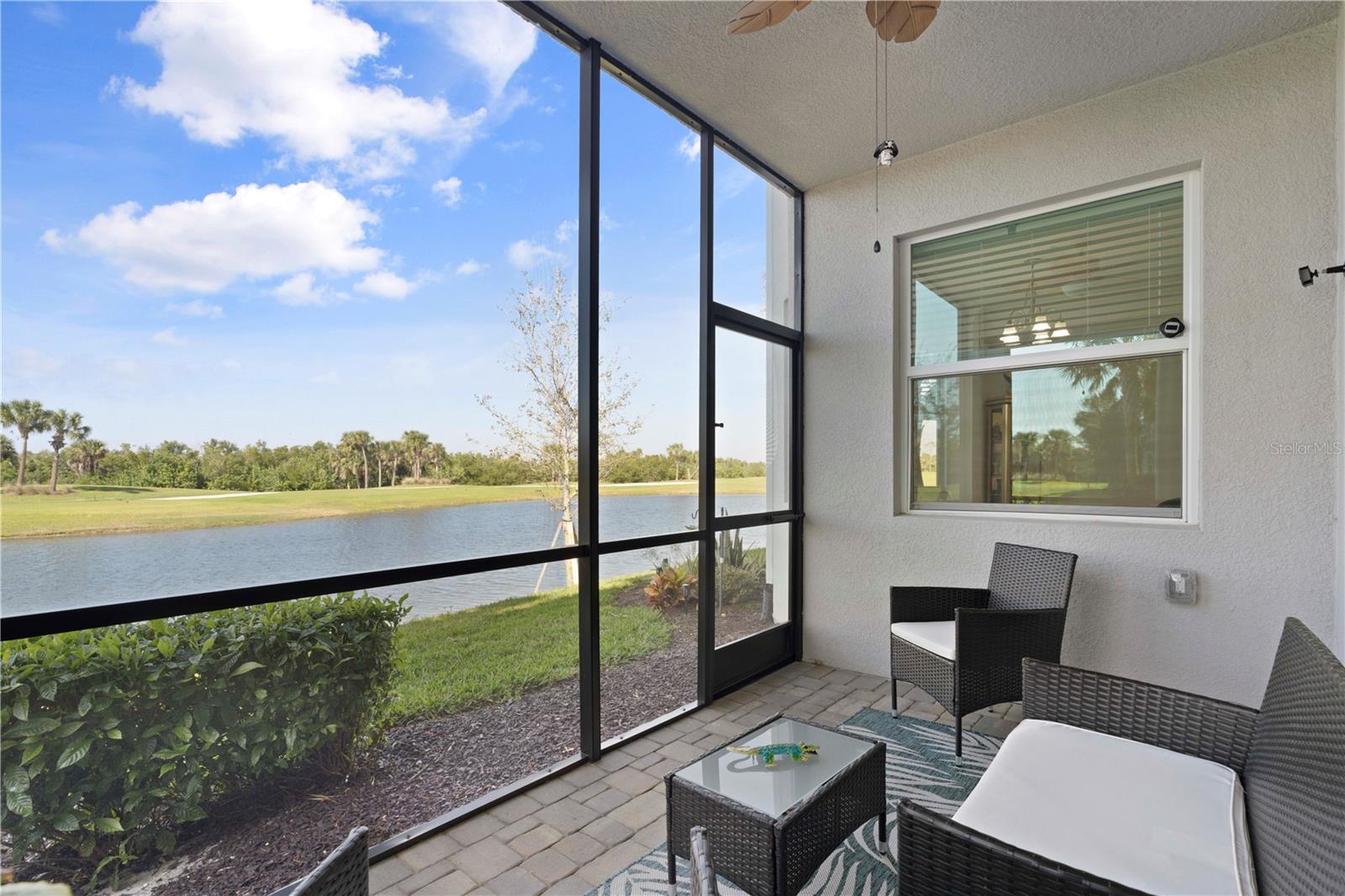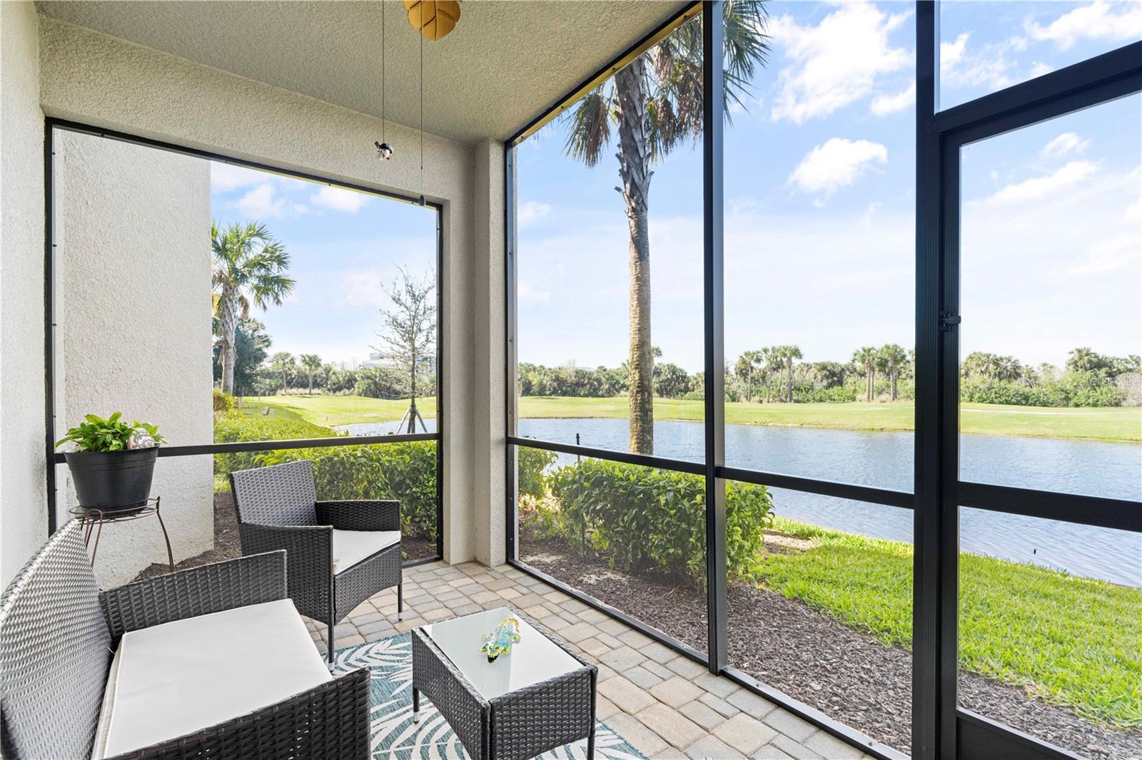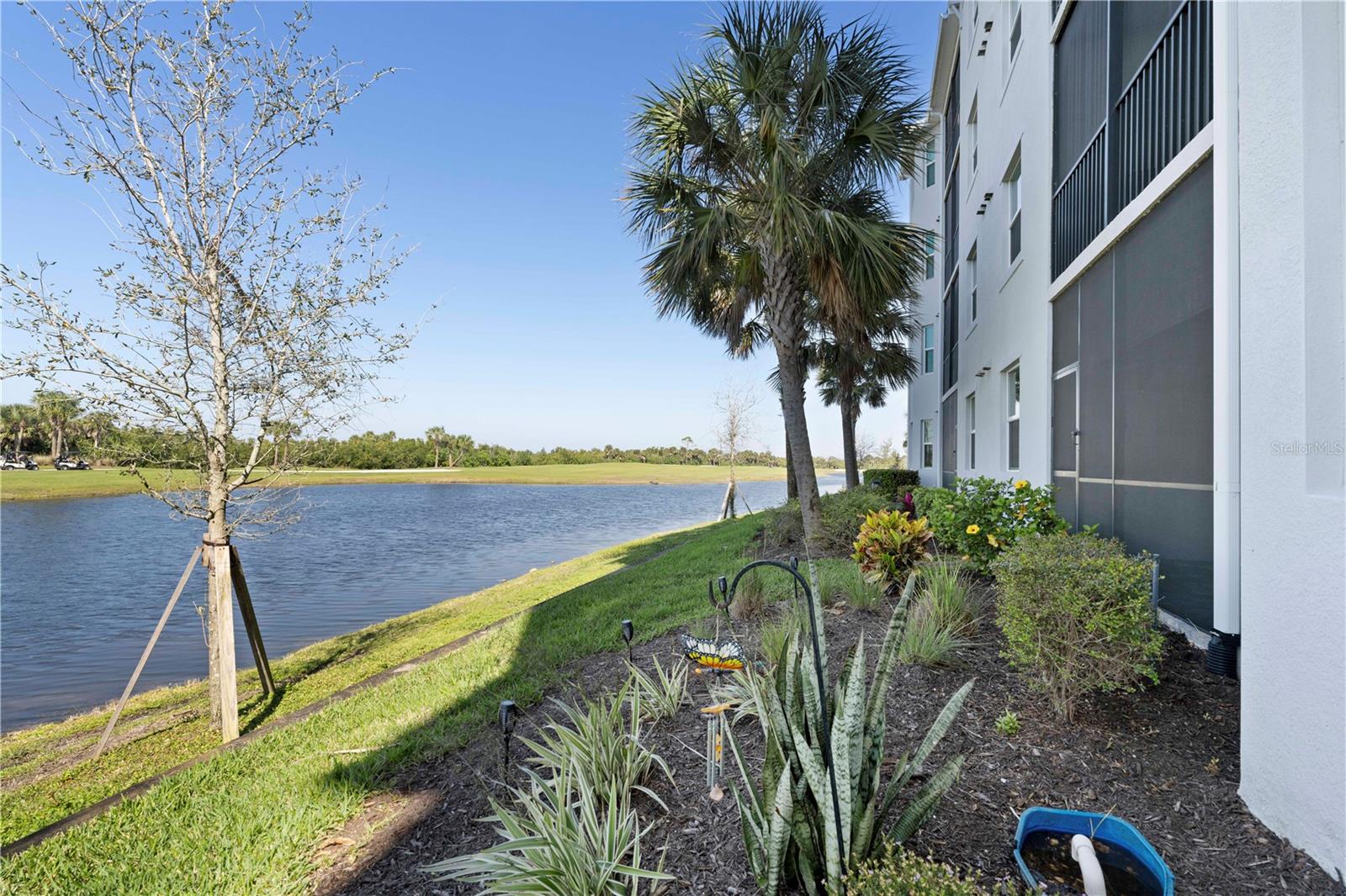 LAKEFRONT CONDO W/**GOLF MEMBERSHIP** ON FIRST FLOOR IN DESIRABLE HERITAGE LANDING - Check out this 2 bed/2 bath, ground-floor, lakefront condo at Heritage Landing. DEEDED GOLF MEMBERSHIP is the ONLY WAY to play a round during season - Claim yours today! No initiation fees or equity deposits required. Condo offers the Birkdale floor plan in Terrace I & is in move-in condition. It features an open layout w/great room, gourmet kitchen & large adjacent dining area plus two bedrooms & two bathrooms. Sliders in great room open to the lanai extending the living space outdoor. Sliders in lanai also feature retractable/motorized shades for privacy. Thanks to the western rear exposure, you can enjoy the colorful evening skies as the sun sets over the lake & nature preserve beyond. Central kitchen boasts a large island w/breakfast bar seating, stainless steel appliances, granite counters, tall cabinetry & built-in pantry. Other architectural details include large, picture windows, crown molding, wood-look laminate flooring in bedrooms & tile flooring laid on the diagonal throughout the main living area. The master suite has an oversized walk-in closet & en-suite master bath w/granite-topped vanity & glass-enclosed walk-in shower. The unit also an interior laundry area w/full-sized washer & dryer. Each condo comes w/exterior storage closet labeled w/unit number. Tiled lanai offers unparalleled views of golf course lake, tee & fairway plus CHEC nature preserve in the background. Relax out here & watch as the golfers pass by throughout the day. Heritage Landing offers resort-style living in a luxury, gated community that features an 18-hole championship golf course designed by Gordon Lewis along w/driving range, chipping & putting greens plus other world-class amenities including a large pool w/lap lanes, full fitness center including Nautilus machines, treadmills, recumbent bikes, rowing machines, ellipticals plus an adjacent aerobic room for group classes w/two TRX workout stations & two Echelon Reflect fitness mirrors, full-service spa/salon, saunas, 6 Har-Tru tennis courts, 6 pickleball courts, 2 bocce courts & more! A poolside cafe features a full food & bar menu w/poolside service. Fine & casual dining options will be available in the soon-to-be-built clubhouse. Miles of sidewalks allow you to enjoy an early morning or late afternoon neighborhood stroll around the professionally-landscaped streets. Community is ideally located along the Burnt Store Road corridor that easily connects you to Punta Gorda, Cape Coral & Ft Myers w/easy access to I-75 & US41. PGD airport is just a few minutes away. Start living your dream Florida life w/luxury, resort-like amenities at your fingertips.