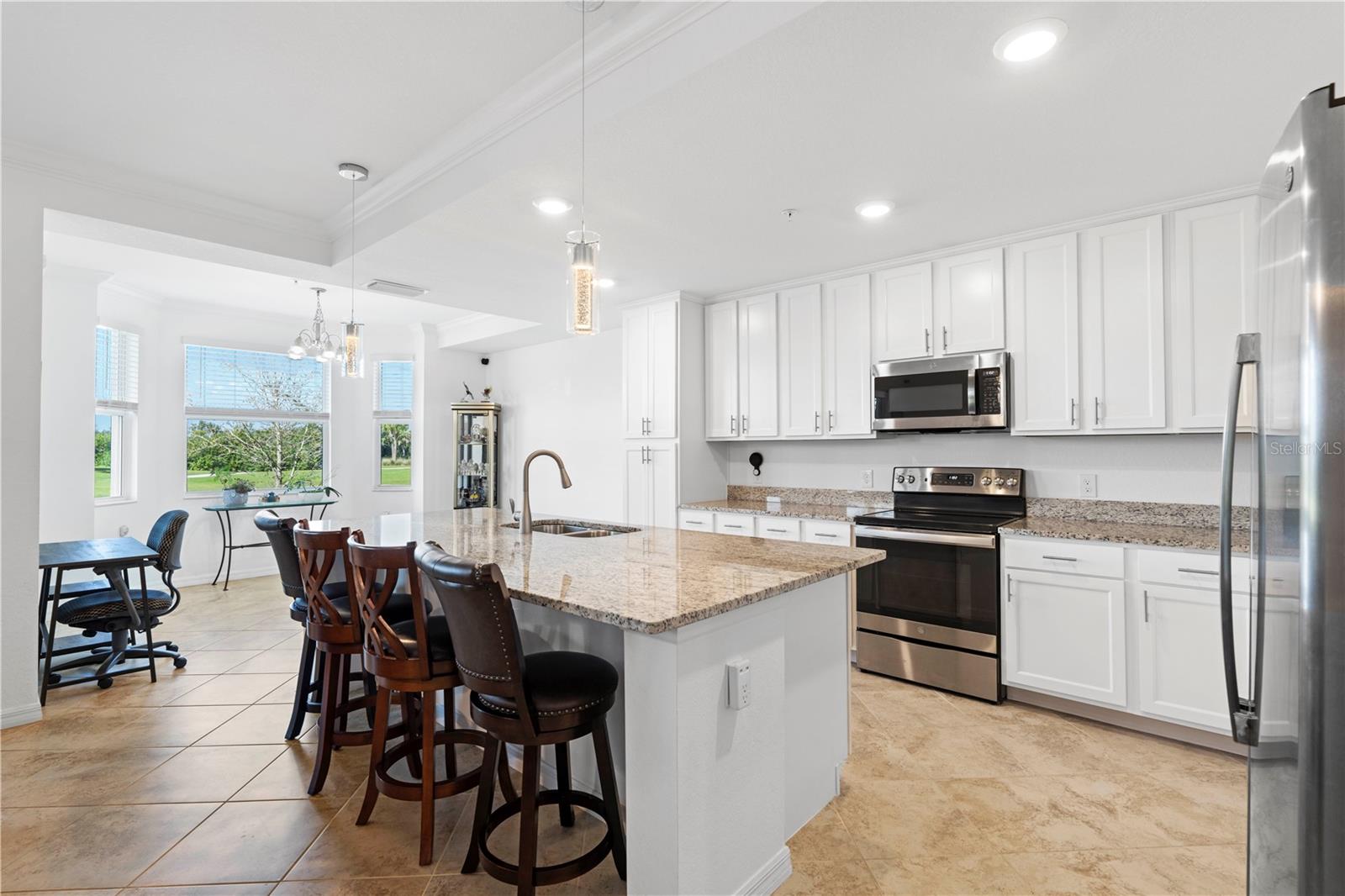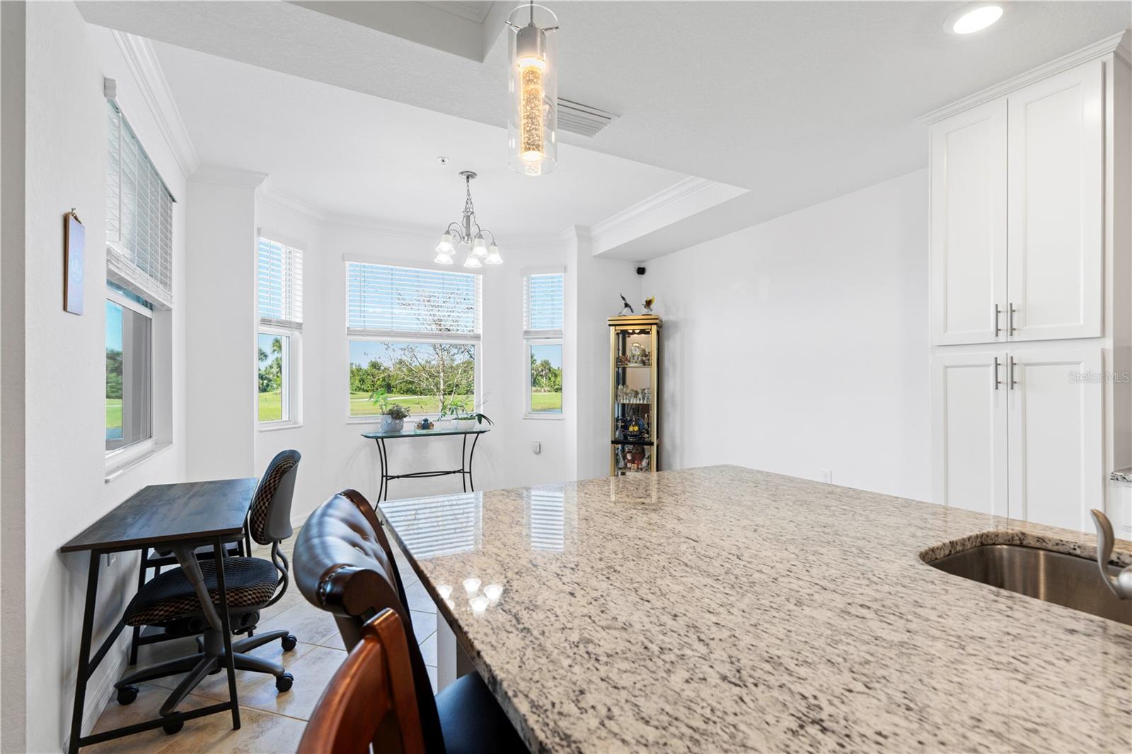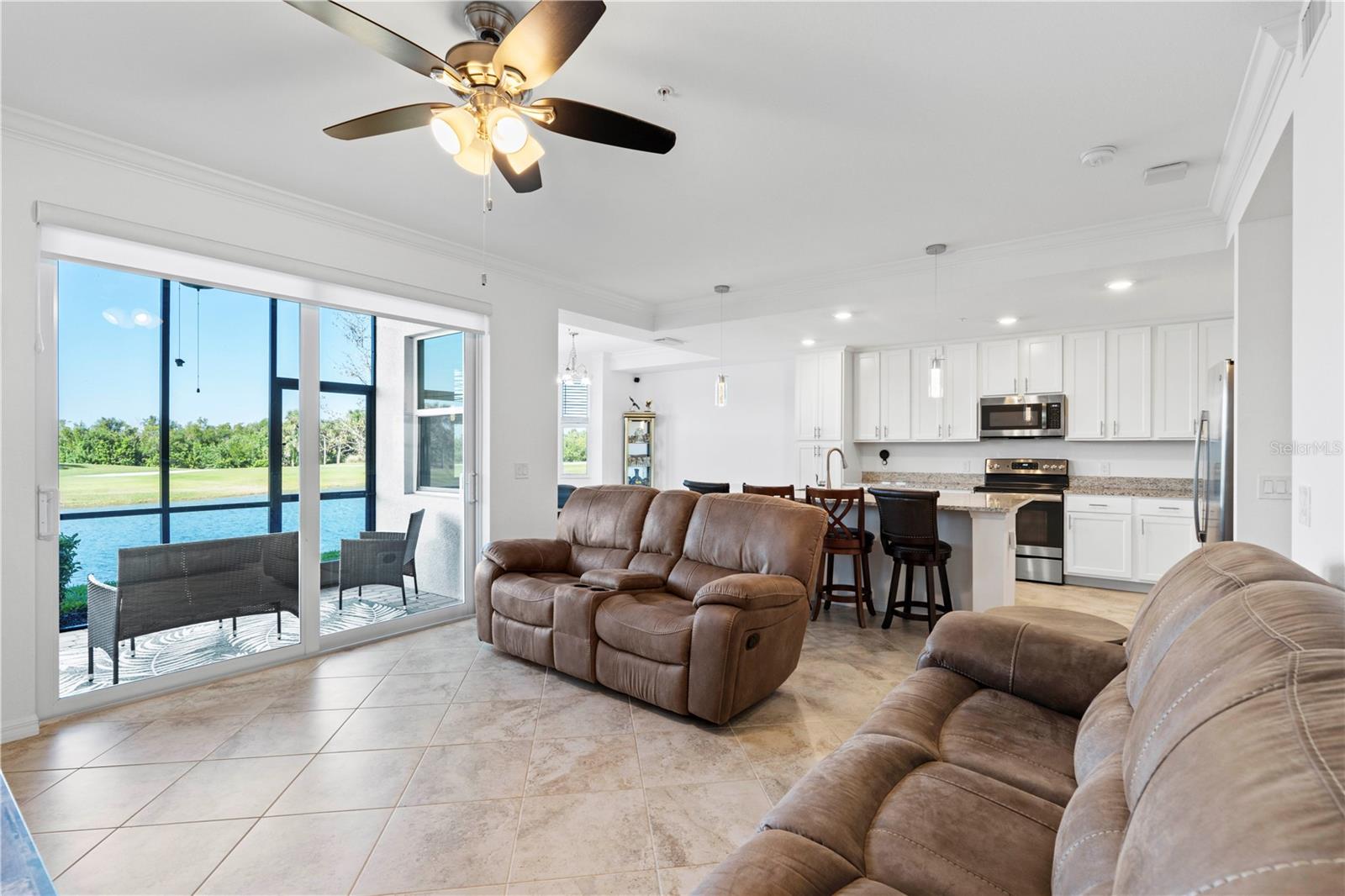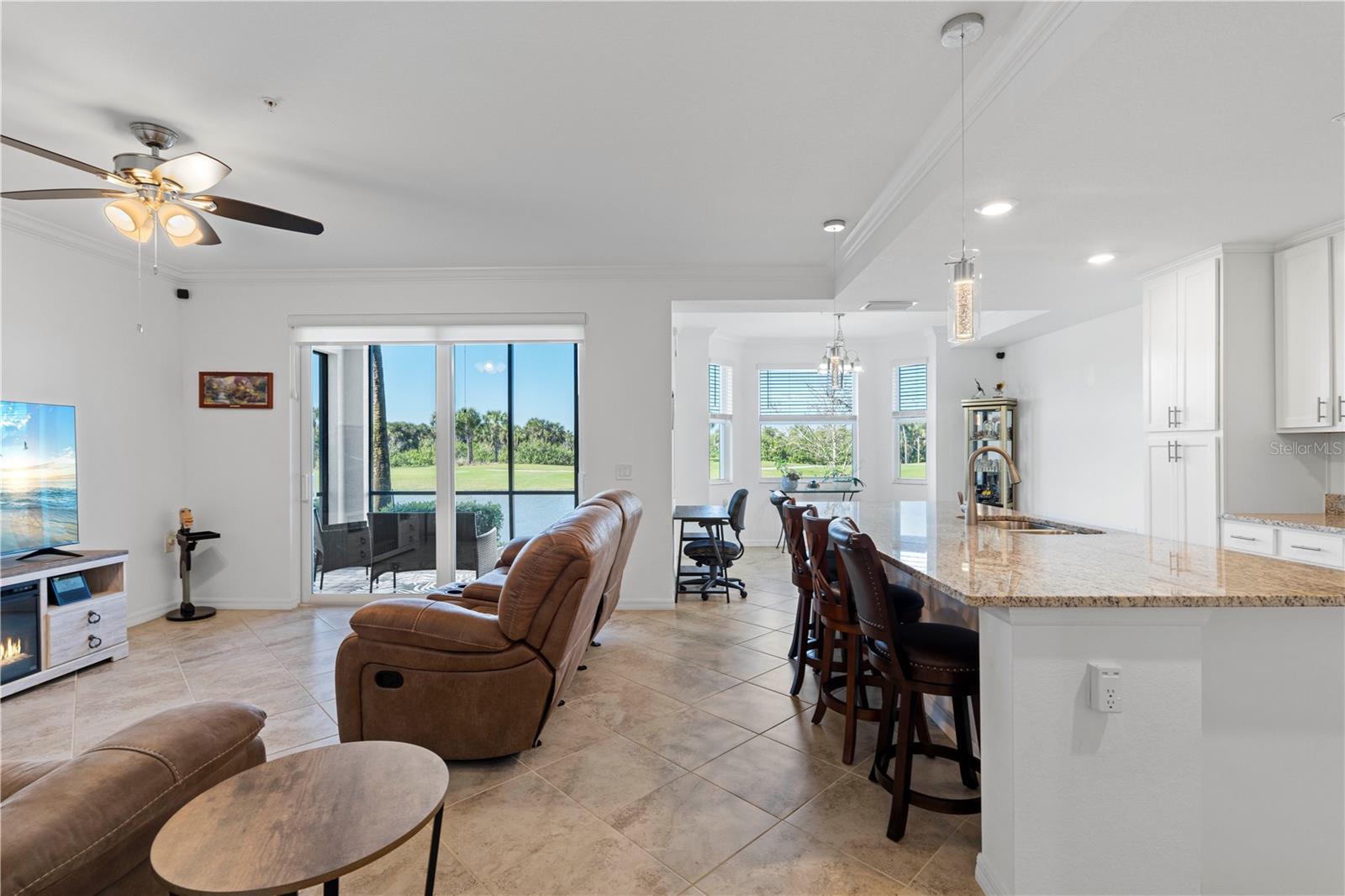 LAKEFRONT CONDO W/**GOLF MEMBERSHIP** ON FIRST FLOOR IN DESIRABLE HERITAGE LANDING - Check out this 2 bed/2 bath, ground-floor, lakefront condo at Heritage Landing. DEEDED GOLF MEMBERSHIP is the ONLY WAY to play a round during season - Claim yours today! No initiation fees or equity deposits required. Condo offers the Birkdale floor plan in Terrace I & is in move-in condition. It features an open layout w/great room, gourmet kitchen & large adjacent dining area plus two bedrooms & two bathrooms. Sliders in great room open to the lanai extending the living space outdoor. Sliders in lanai also feature retractable/motorized shades for privacy. Thanks to the western rear exposure, you can enjoy the colorful evening skies as the sun sets over the lake & nature preserve beyond. Central kitchen boasts a large island w/breakfast bar seating, stainless steel appliances, granite counters, tall cabinetry & built-in pantry. Other architectural details include large, picture windows, crown molding, wood-look laminate flooring in bedrooms & tile flooring laid on the diagonal throughout the main living area. The master suite has an oversized walk-in closet & en-suite master bath w/granite-topped vanity & glass-enclosed walk-in shower. The unit also an interior laundry area w/full-sized washer & dryer. Each condo comes w/exterior storage closet labeled w/unit number. Tiled lanai offers unparalleled views of golf course lake, tee & fairway plus CHEC nature preserve in the background. Relax out here & watch as the golfers pass by throughout the day. Heritage Landing offers resort-style living in a luxury, gated community that features an 18-hole championship golf course designed by Gordon Lewis along w/driving range, chipping & putting greens plus other world-class amenities including a large pool w/lap lanes, full fitness center including Nautilus machines, treadmills, recumbent bikes, rowing machines, ellipticals plus an adjacent aerobic room for group classes w/two TRX workout stations & two Echelon Reflect fitness mirrors, full-service spa/salon, saunas, 6 Har-Tru tennis courts, 6 pickleball courts, 2 bocce courts & more! A poolside cafe features a full food & bar menu w/poolside service. Fine & casual dining options will be available in the soon-to-be-built clubhouse. Miles of sidewalks allow you to enjoy an early morning or late afternoon neighborhood stroll around the professionally-landscaped streets. Community is ideally located along the Burnt Store Road corridor that easily connects you to Punta Gorda, Cape Coral & Ft Myers w/easy access to I-75 & US41. PGD airport is just a few minutes away. Start living your dream Florida life w/luxury, resort-like amenities at your fingertips.