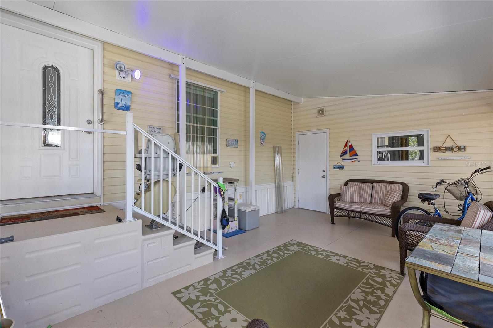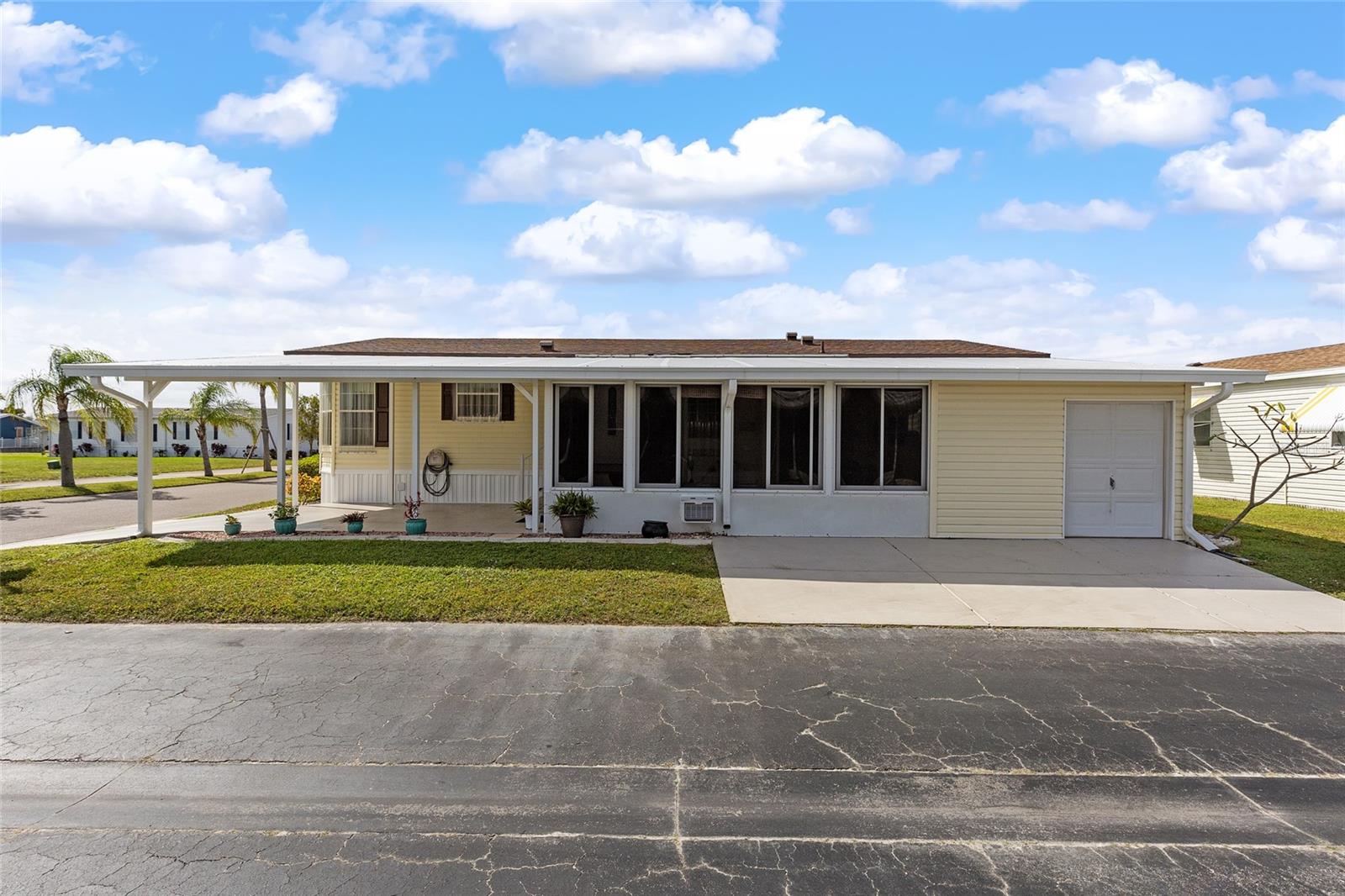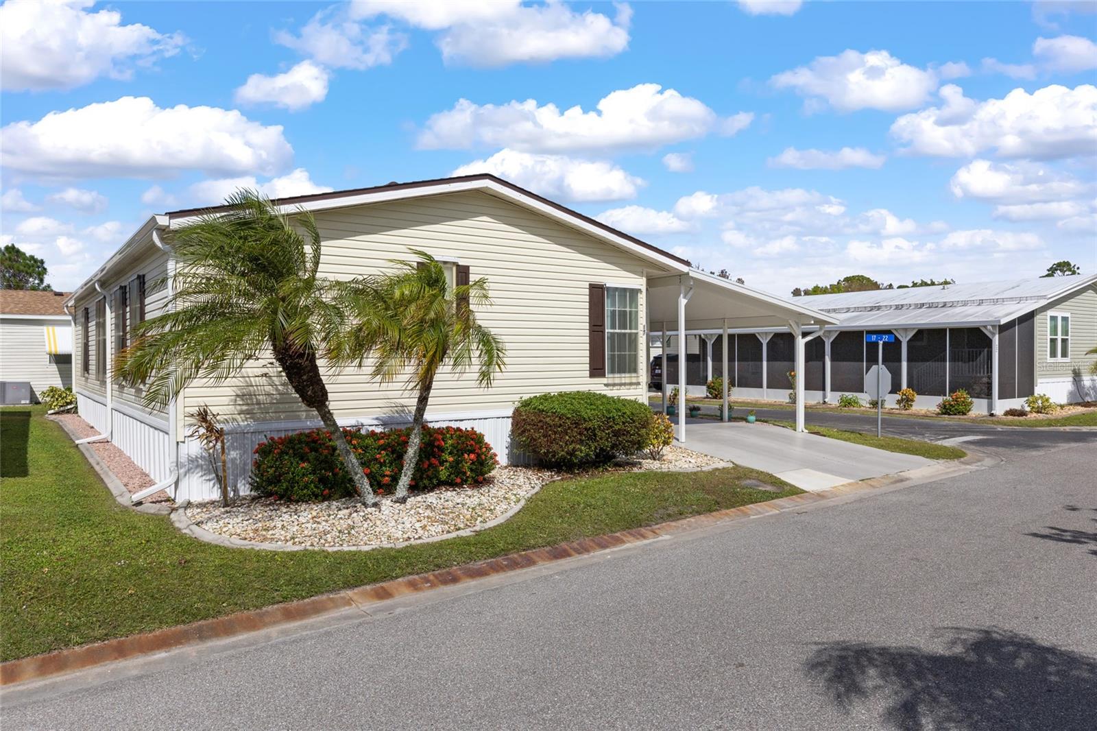 " Port Charlotte Village was Voted #1 Manufactured home Community in Charlotte County for 2024". ** NOT IN FLOOD ZONE**Welcome to this beautiful and meticulously maintained 3-bedroom, 2-bathroom home located in a vibrant 55+ community with a low HOA. This home has been thoughtfully updated and is designed for comfort and convenience. With a new roof installed in 2023 and a complete HVAC system from 2018, this property is well-prepared for Florida living. The recently added 2023 carport and two separate driveways provide ample parking space for you and your guests, while a large enclosed lanai offers the perfect setting for relaxing or entertaining in any weather. Inside, a bright, open floor plan welcomes you, designed to create a spacious and inviting atmosphere. The expansive kitchen is a dream for anyone who enjoys cooking or entertaining, featuring generous counter space, abundant cabinetry, and a cozy breakfast nook for casual dining. Each of the three bedrooms is spacious, with large walk-in closets offering plenty of storage options. The third bedroom is particularly versatile, featuring a built-in Murphy bed and a separate entrance, making it ideal for hosting guests or setting up a private office space. The primary bathroom is both practical and elegant, with floor-to-ceiling built-in cabinets providing ample storage for linens, toiletries, and more. A chair lift along the staircase railing ensures easy accessibility to the upstairs level, making this home suitable for a variety of mobility needs. Additionally, the property includes a dedicated golf cart garage with a large workshop area and utility sink, perfect for hobbyists or those looking for additional workspace. Beyond the home, you'll find a wealth of amenities nearby. This community is conveniently located close to premier shopping centers, an array of popular restaurants, and numerous elite golf courses, offering endless opportunities for leisure and recreation. Entertainment options are abundant, and Florida's renowned beaches are just a short drive away, allowing you to easily enjoy the beautiful coastlines, sun, and sand. This inviting home combines modern upgrades, thoughtful design, and an unbeatable location. Don’t miss the chance to experience this exceptional property and make it your own! Schedule a viewing today
