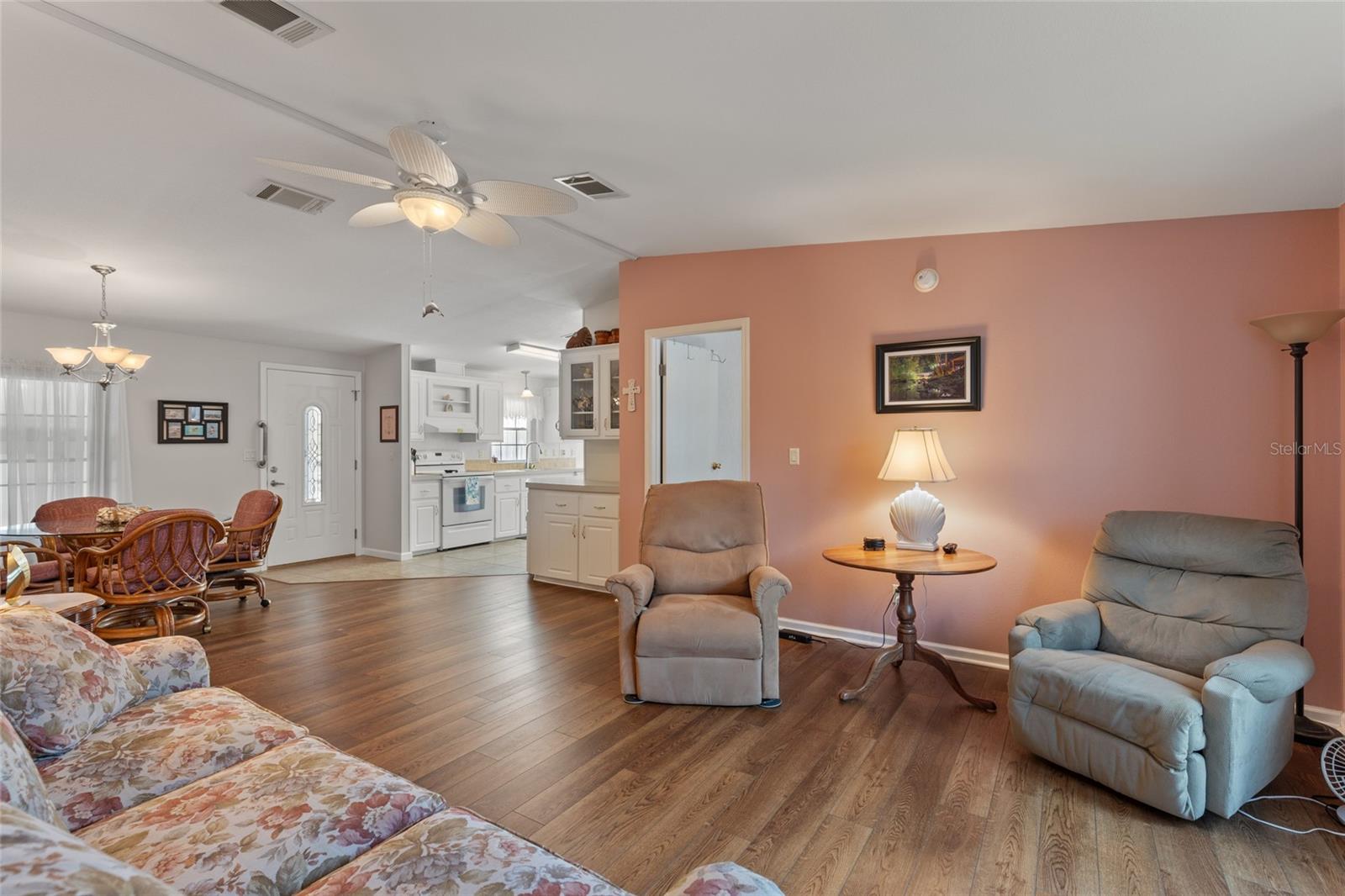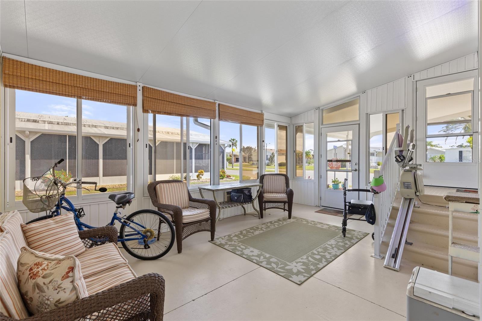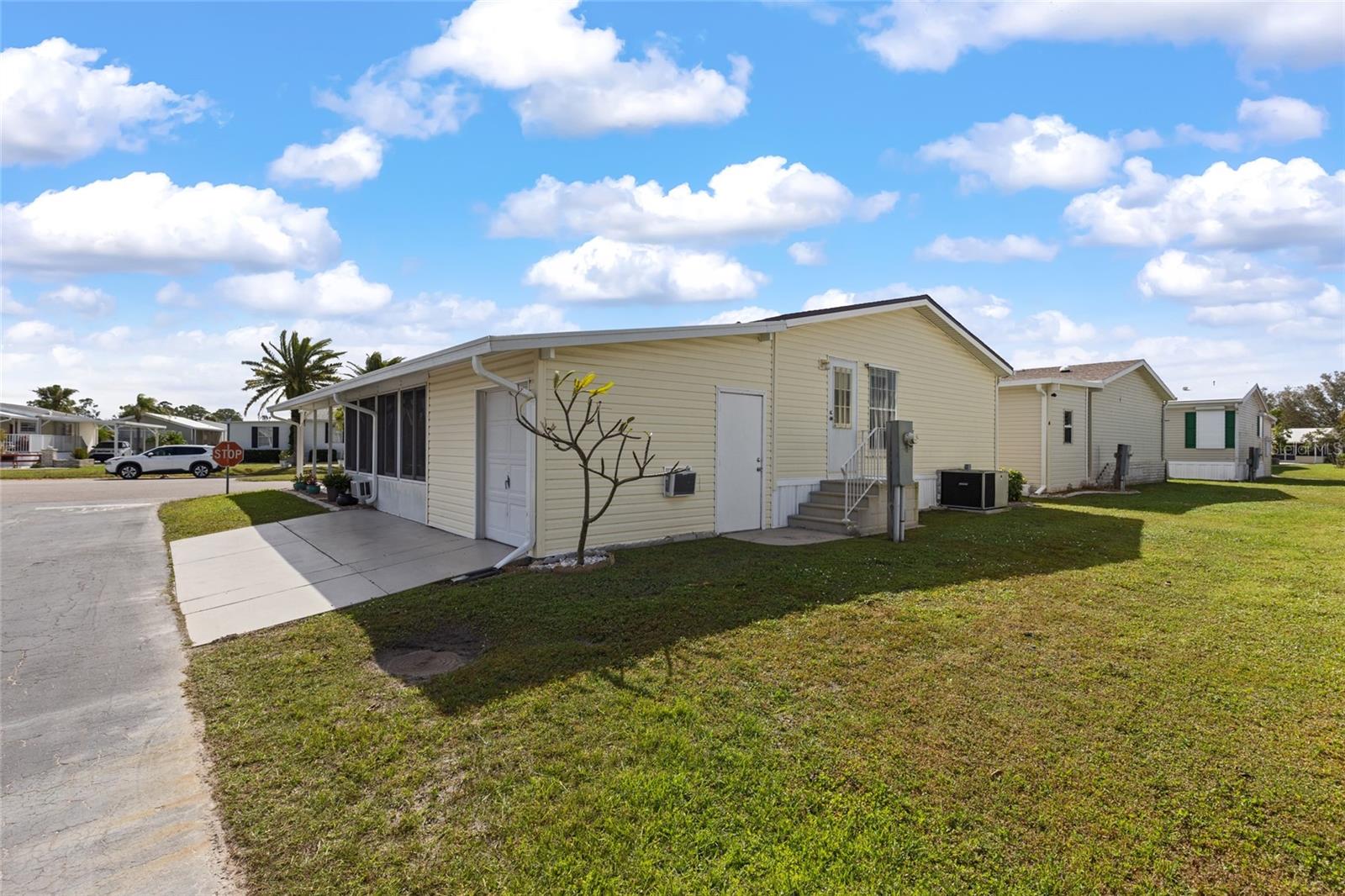" Port Charlotte Village was Voted #1 Manufactured home Community in Charlotte County for 2024". ** NOT IN FLOOD ZONE**Welcome to this beautiful and meticulously maintained 3-bedroom, 2-bathroom home located in a vibrant 55+ community with a low HOA. This home has been thoughtfully updated and is designed for comfort and convenience. With a new roof installed in 2023 and a complete HVAC system from 2018, this property is well-prepared for Florida living. The recently added 2023 carport and two separate driveways provide ample parking space for you and your guests, while a large enclosed lanai offers the perfect setting for relaxing or entertaining in any weather. Inside, a bright, open floor plan welcomes you, designed to create a spacious and inviting atmosphere. The expansive kitchen is a dream for anyone who enjoys cooking or entertaining, featuring generous counter space, abundant cabinetry, and a cozy breakfast nook for casual dining. Each of the three bedrooms is spacious, with large walk-in closets offering plenty of storage options. The third bedroom is particularly versatile, featuring a built-in Murphy bed and a separate entrance, making it ideal for hosting guests or setting up a private office space. The primary bathroom is both practical and elegant, with floor-to-ceiling built-in cabinets providing ample storage for linens, toiletries, and more. A chair lift along the staircase railing ensures easy accessibility to the upstairs level, making this home suitable for a variety of mobility needs. Additionally, the property includes a dedicated golf cart garage with a large workshop area and utility sink, perfect for hobbyists or those looking for additional workspace. Beyond the home, you'll find a wealth of amenities nearby. This community is conveniently located close to premier shopping centers, an array of popular restaurants, and numerous elite golf courses, offering endless opportunities for leisure and recreation. Entertainment options are abundant, and Florida's renowned beaches are just a short drive away, allowing you to easily enjoy the beautiful coastlines, sun, and sand. This inviting home combines modern upgrades, thoughtful design, and an unbeatable location. Don’t miss the chance to experience this exceptional property and make it your own! Schedule a viewing today