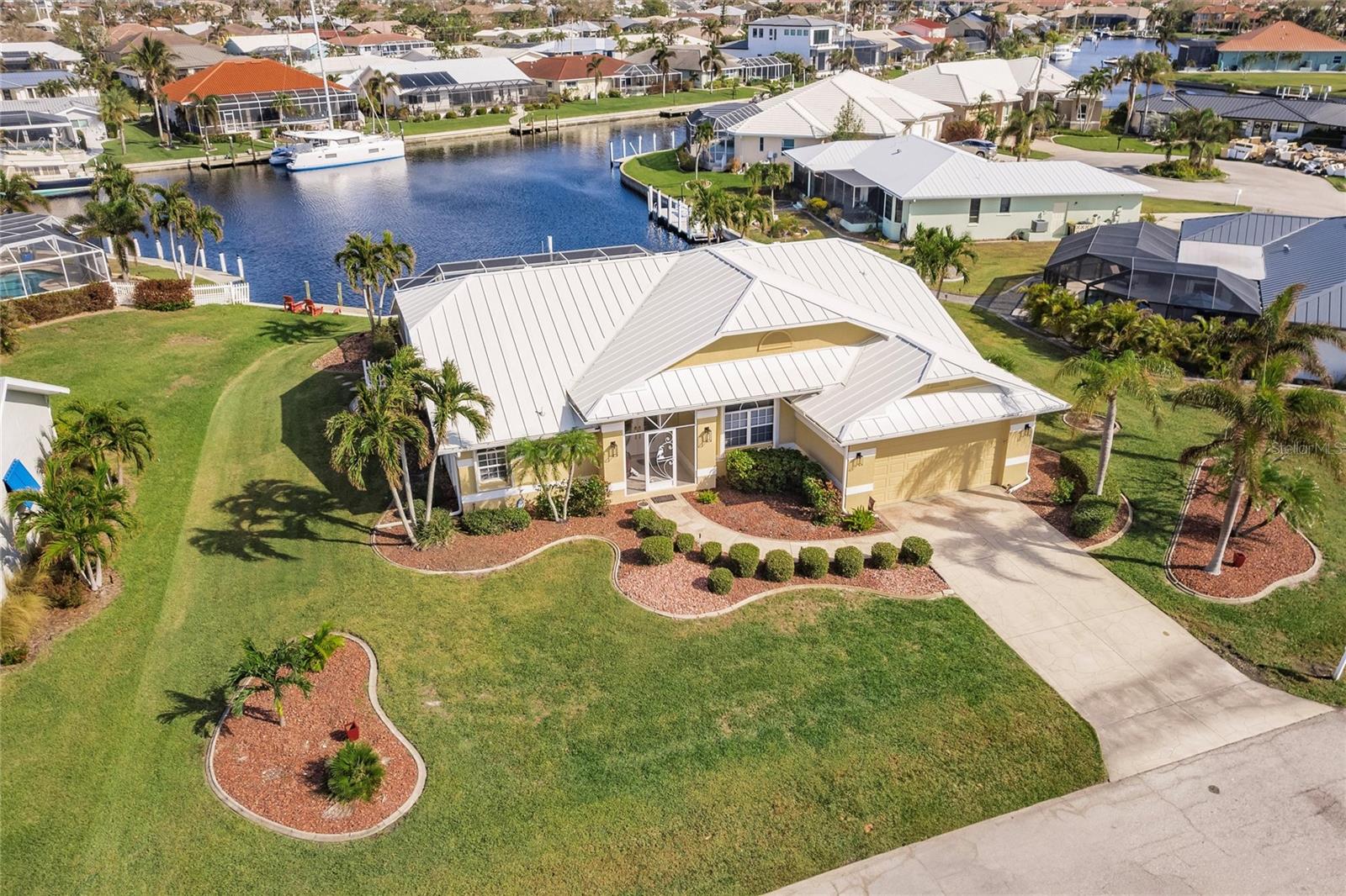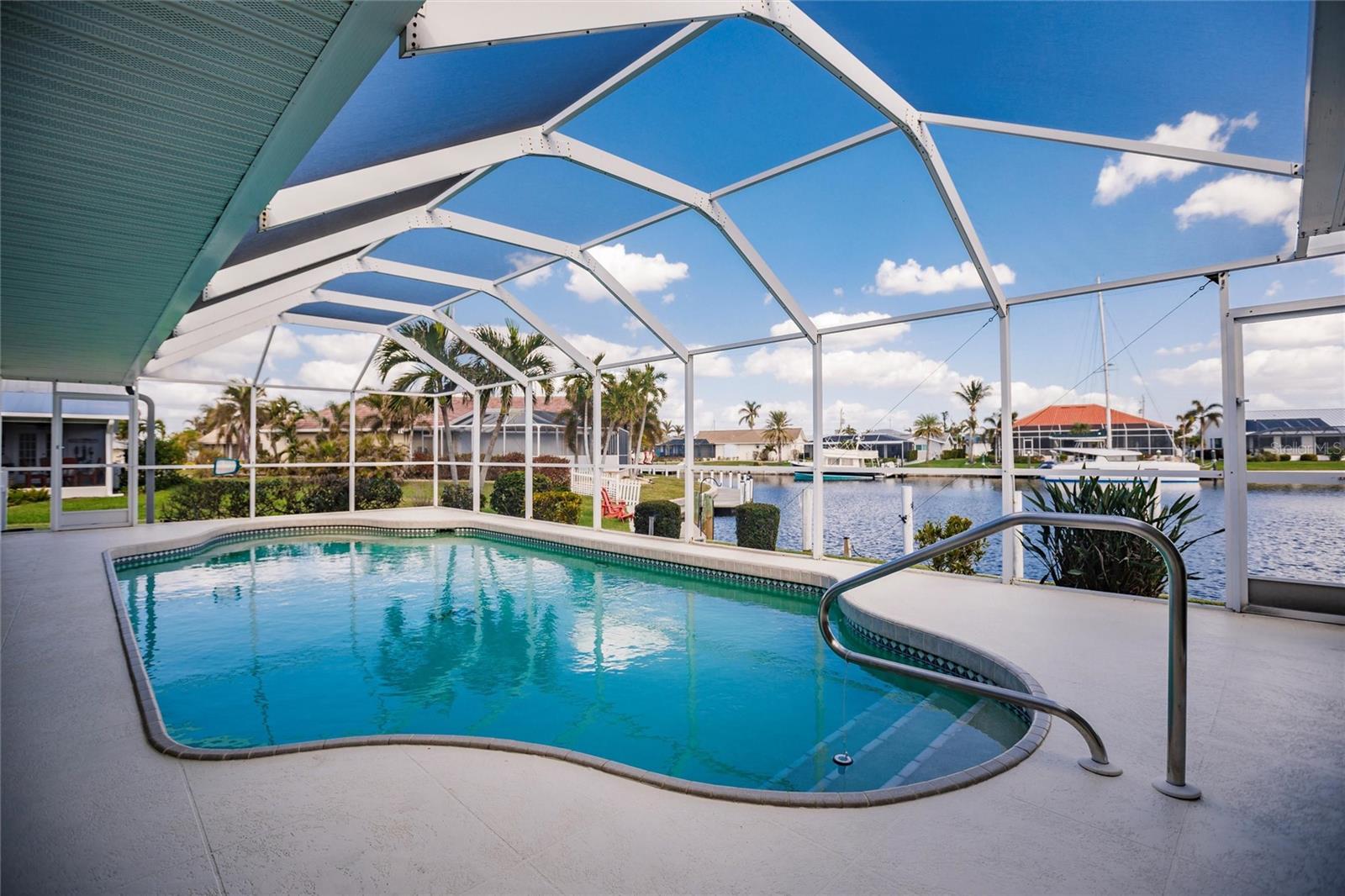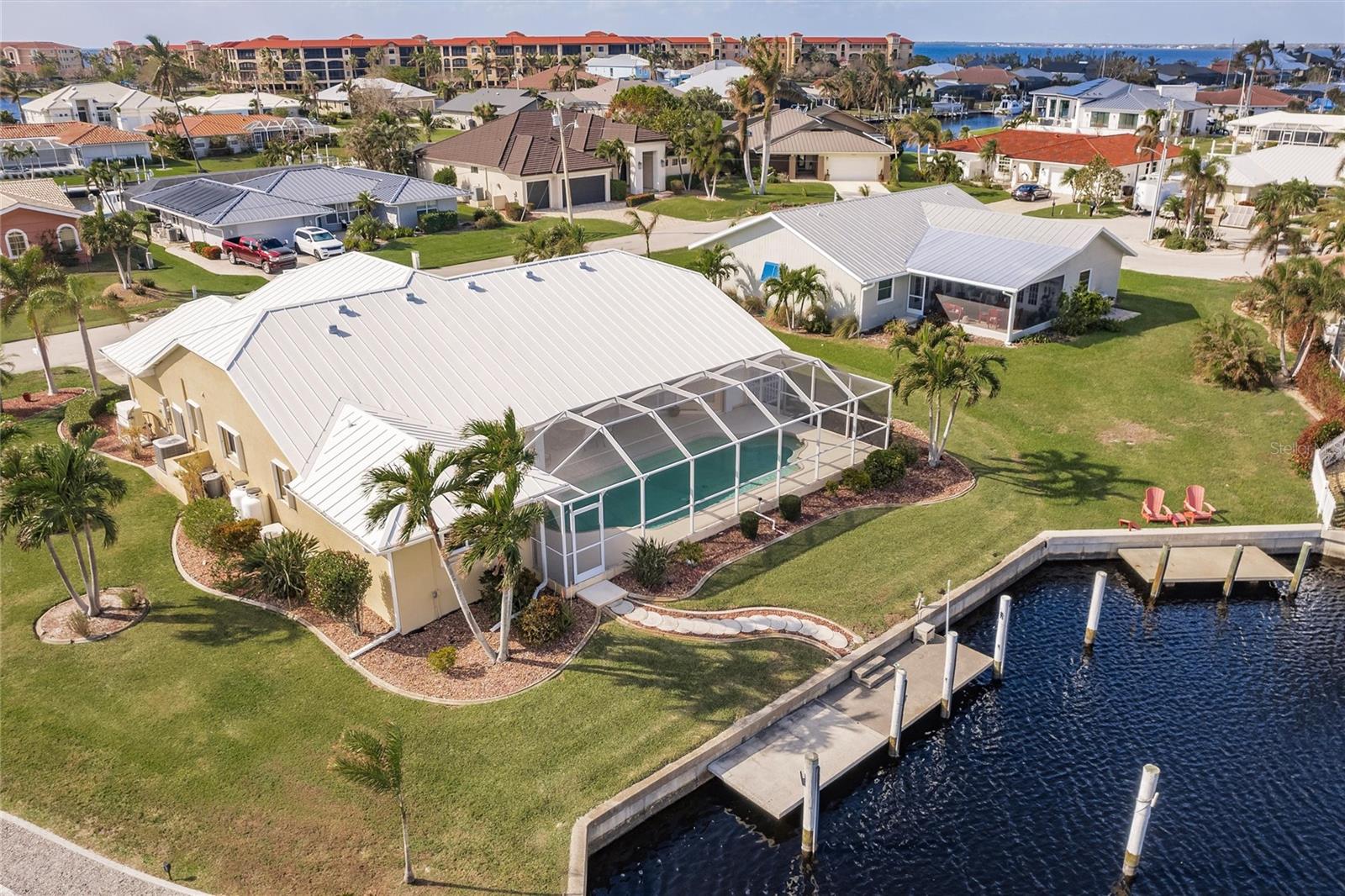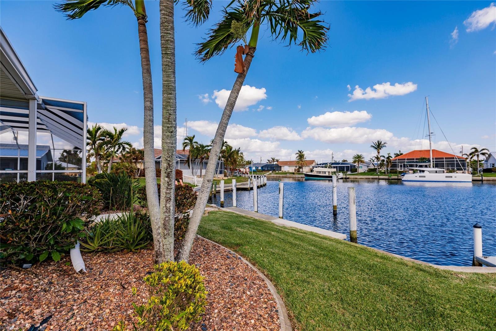 Welcome to your dream waterfront retreat in Punta Gorda Isles! Nestled on a quiet cu-de-sac near the end of the isles, this meticulously maintained sailboat-access home truly checks every box. Situated on an oversized lot along the King Fisher Lagoon, this property boasts DIRECT DEEP-WATER ACCESS with NO BRIDGES to Charlotte Harbor and beyond. Sail away in minutes and enjoy the best of Southwest Florida boating. This beautiful three bedroom, two bathroom residence features a desirable split floor plan, soaring cathedral ceilings, and over 2000 square feet of open concept living space. Large sliders and windows flood the home with natural light and frame stunning views of the wide canal. The updated interior requires no work, just bring your boat and bathing suit. Enjoy total peace of mind with a brand new air conditioning system and feel secure with uninterrupted power as the home features a whole house generator. The concrete sea wall, maintained by the city of Punta Gorda, adds additional value and stability. Outdoor living is just as impressive; a private heated pool area, lush tropical landscaping, and a thoughtful setback from the road provide a true sense of privacy. The only thing better than a waterfront lot in Punta Gorda is a large waterfront lot in Punta Gorda. The home is thoughtfully placed in the lot to maximize privacy and gorgeous sunrises that greet each new day. Additional highlights include ample storage throughout, spacious walk in closets, a quiet established neighborhood, no hurricane damage from any recent storms, and full hurricane house protection provided by accordion shutters. Only a short drive to the historic downtown Punta Gorda featuring shops, restaurants, a weekly Farmers Market and Flea Market at the History Park as well as the Harbor Walk and Pickleplex. Also a short drive to a dog park (Hounds on Henry), The Military Museum, Fisherman's Village, The Sunseeker Resort, and The Punta Gorda Airport offering flights throughout the country via Allegiant Air. Whether you are an avid sailor, a seasonal resident, or looking for your forever home, this property offers a perfect blend of luxury, location and lifestyle. Don't miss your chance to own this slice of coastal paradise.