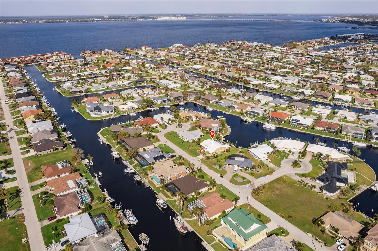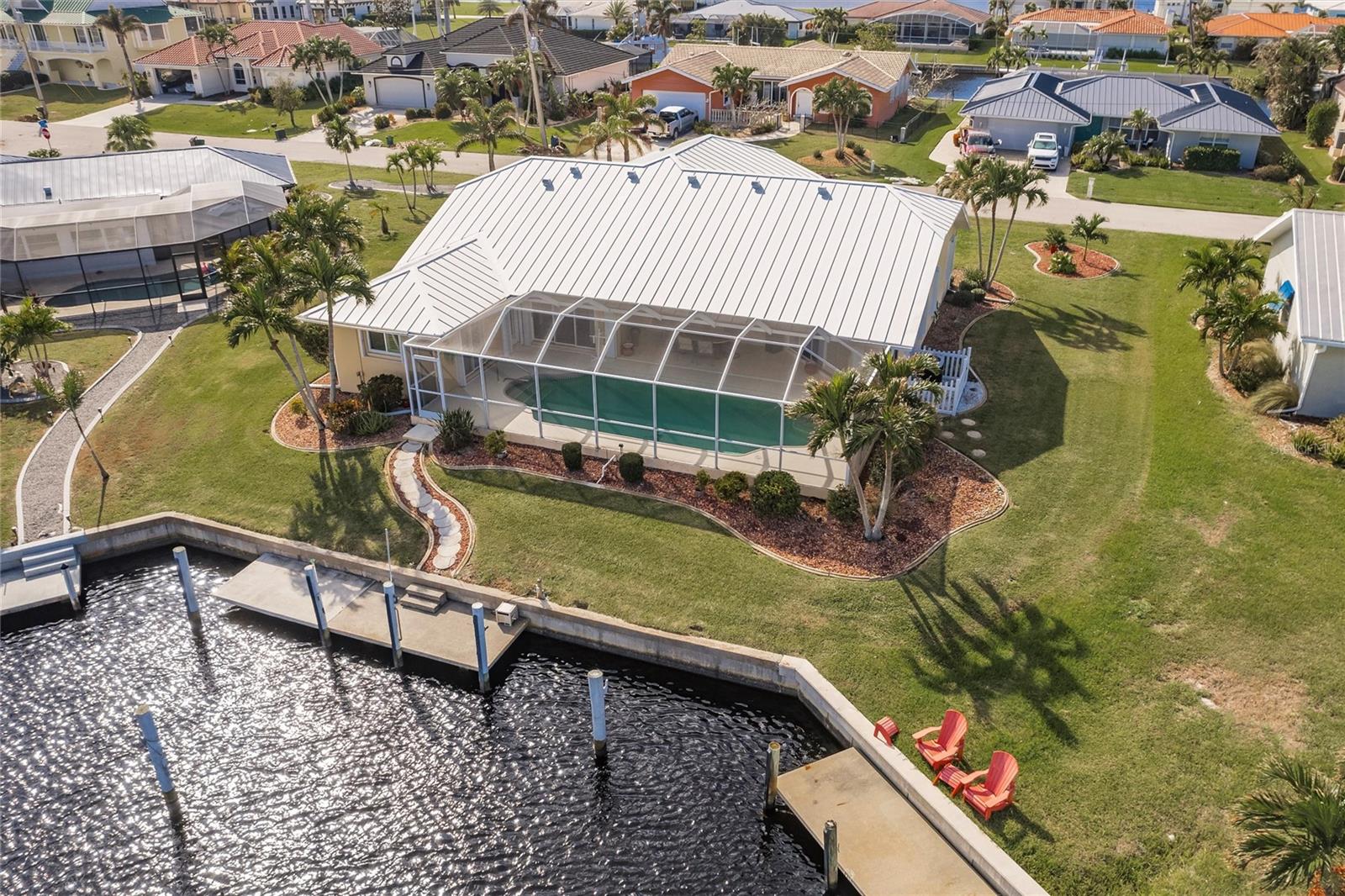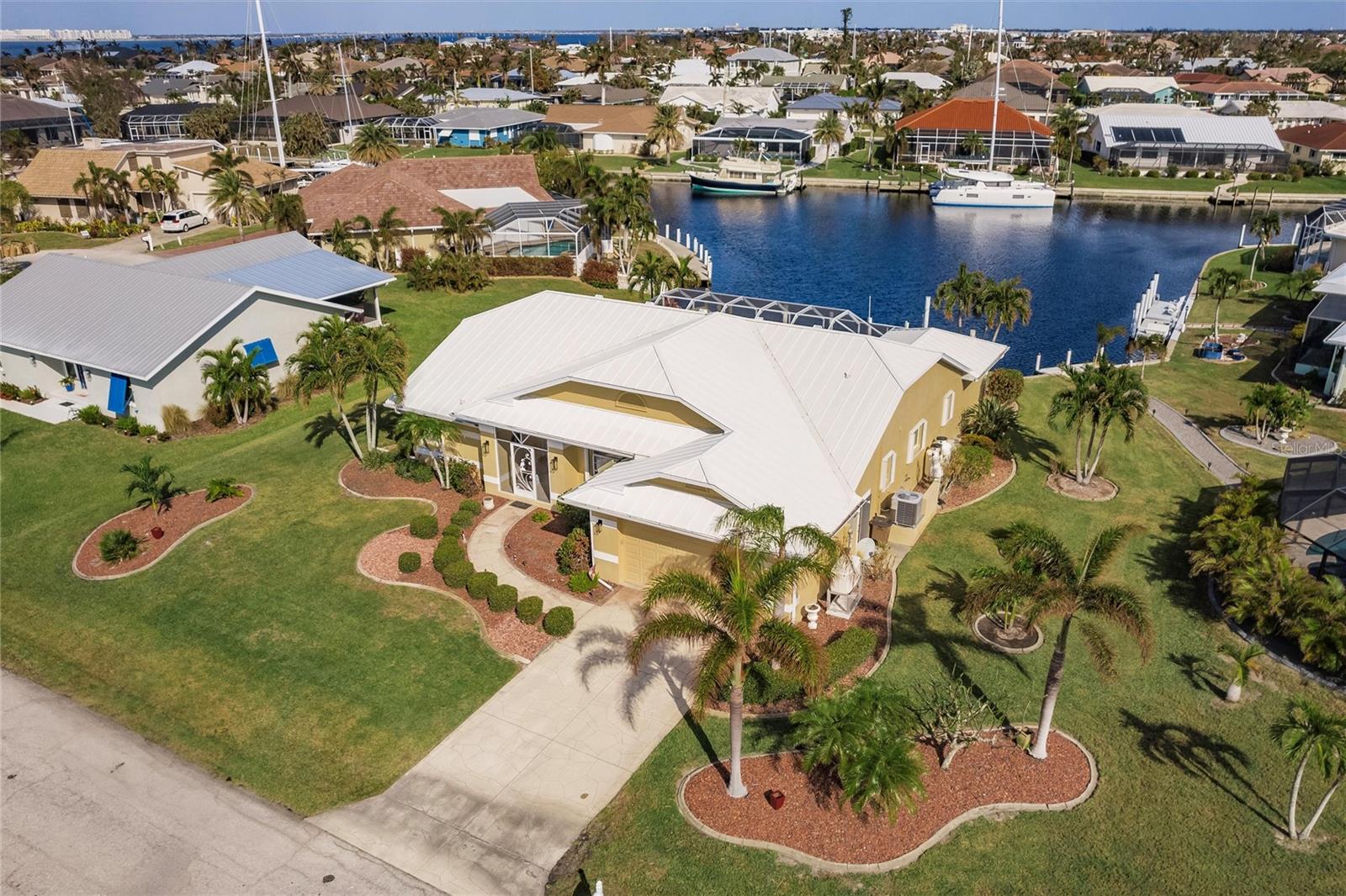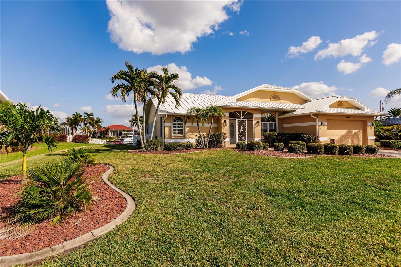 Welcome to your dream waterfront retreat in Punta Gorda Isles! Nestled on a quiet cu-de-sac near the end of the isles, this meticulously maintained sailboat-access home truly checks every box. Situated on an oversized lot along the King Fisher Lagoon, this property boasts DIRECT DEEP-WATER ACCESS with NO BRIDGES to Charlotte Harbor and beyond. Sail away in minutes and enjoy the best of Southwest Florida boating. This beautiful three bedroom, two bathroom residence features a desirable split floor plan, soaring cathedral ceilings, and over 2000 square feet of open concept living space. Large sliders and windows flood the home with natural light and frame stunning views of the wide canal. The updated interior requires no work, just bring your boat and bathing suit. Enjoy total peace of mind with a brand new air conditioning system and feel secure with uninterrupted power as the home features a whole house generator. The concrete sea wall, maintained by the city of Punta Gorda, adds additional value and stability. Outdoor living is just as impressive; a private heated pool area, lush tropical landscaping, and a thoughtful setback from the road provide a true sense of privacy. The only thing better than a waterfront lot in Punta Gorda is a large waterfront lot in Punta Gorda. The home is thoughtfully placed in the lot to maximize privacy and gorgeous sunrises that greet each new day. Additional highlights include ample storage throughout, spacious walk in closets, a quiet established neighborhood, no hurricane damage from any recent storms, and full hurricane house protection provided by accordion shutters. Only a short drive to the historic downtown Punta Gorda featuring shops, restaurants, a weekly Farmers Market and Flea Market at the History Park as well as the Harbor Walk and Pickleplex. Also a short drive to a dog park (Hounds on Henry), The Military Museum, Fisherman's Village, The Sunseeker Resort, and The Punta Gorda Airport offering flights throughout the country via Allegiant Air. Whether you are an avid sailor, a seasonal resident, or looking for your forever home, this property offers a perfect blend of luxury, location and lifestyle. Don't miss your chance to own this slice of coastal paradise.
