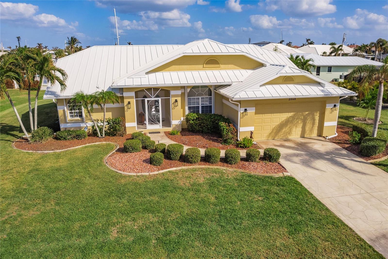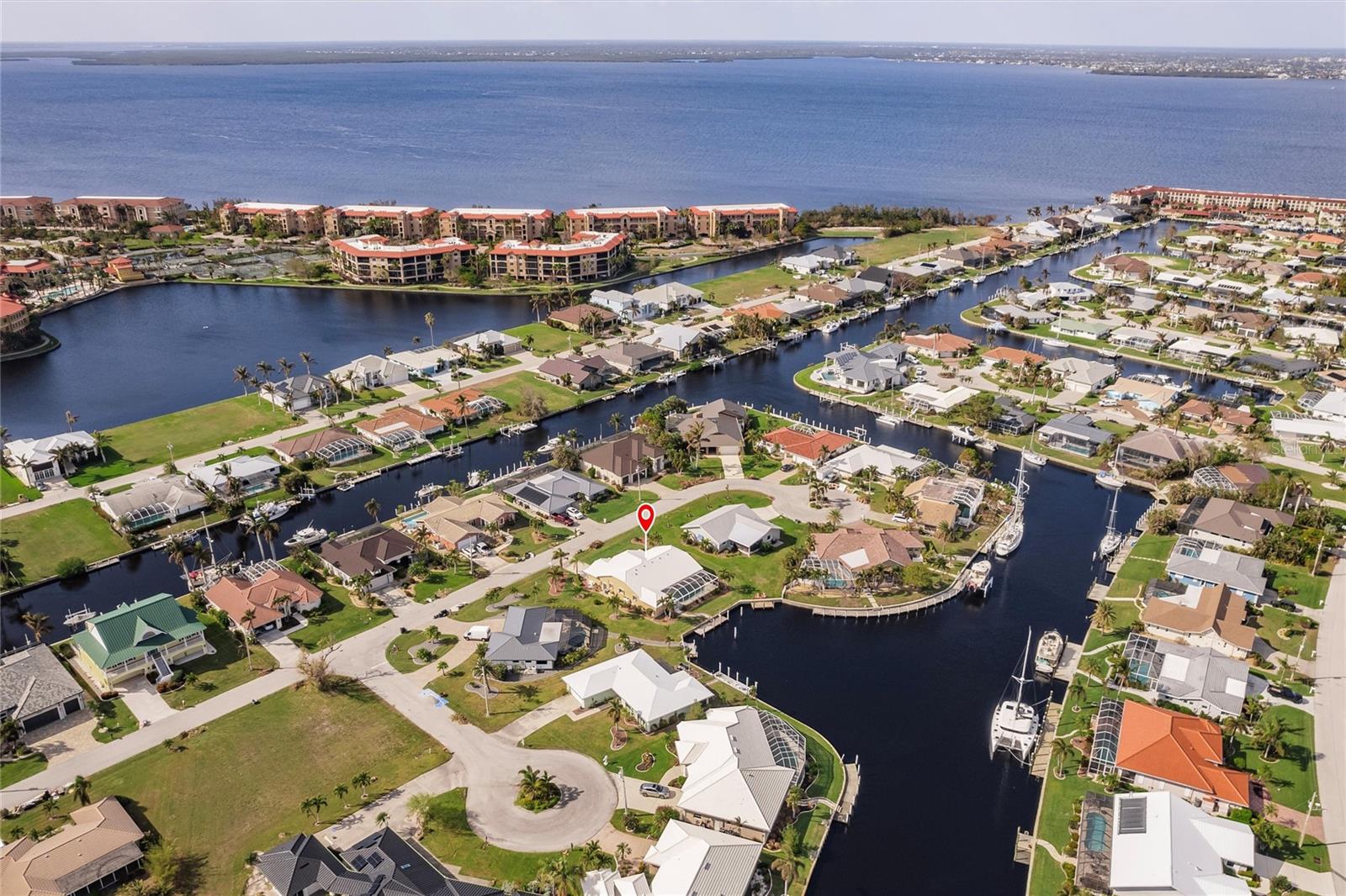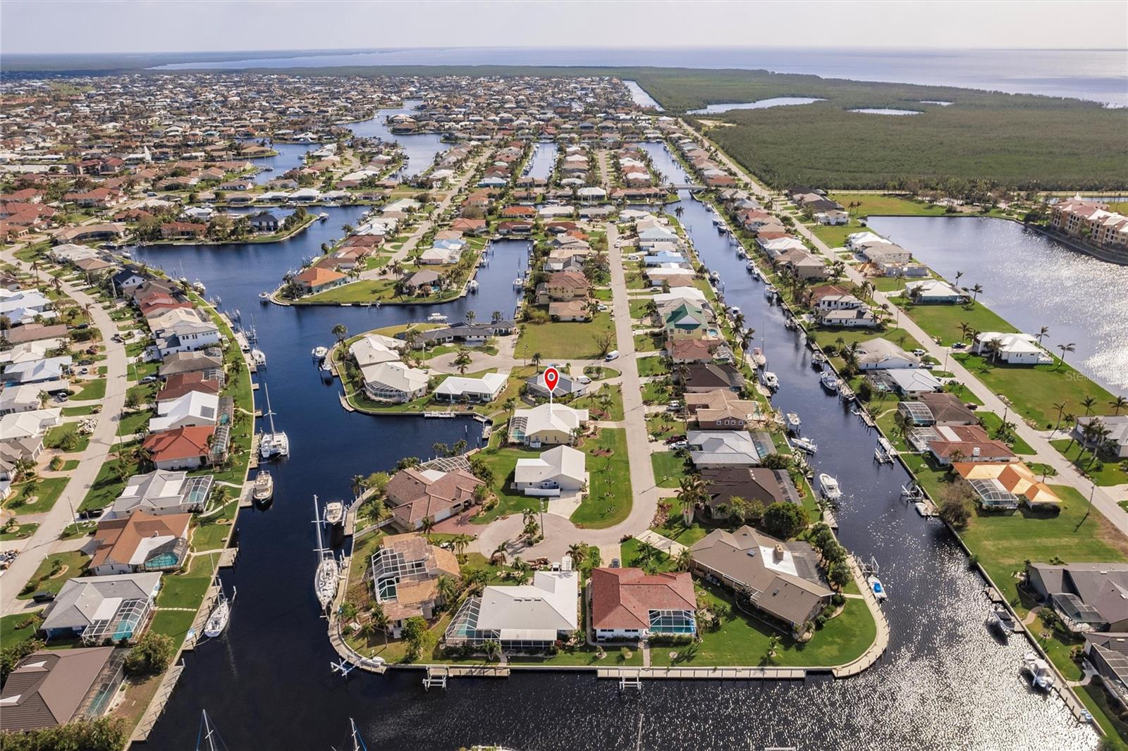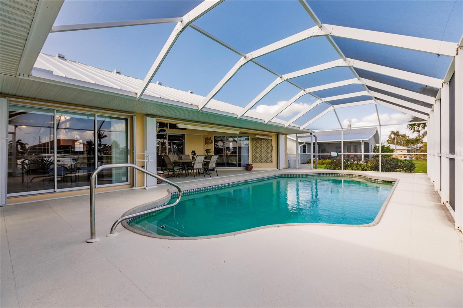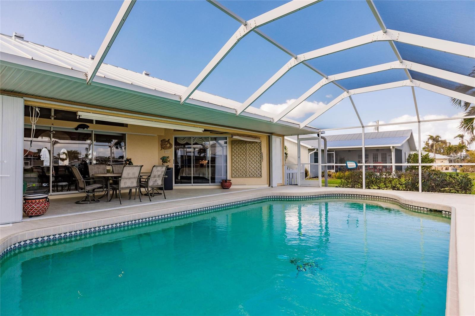 Welcome to your dream waterfront retreat in Punta Gorda Isles! Nestled on a quiet cu-de-sac near the end of the isles, this meticulously maintained sailboat-access home truly checks every box. Situated on an oversized lot along the King Fisher Lagoon, this property boasts DIRECT DEEP-WATER ACCESS with NO BRIDGES to Charlotte Harbor and beyond. Sail away in minutes and enjoy the best of Southwest Florida boating. This beautiful three bedroom, two bathroom residence features a desirable split floor plan, soaring cathedral ceilings, and over 2000 square feet of open concept living space. Large sliders and windows flood the home with natural light and frame stunning views of the wide canal. The updated interior requires no work, just bring your boat and bathing suit. Enjoy total peace of mind with a brand new air conditioning system and feel secure with uninterrupted power as the home features a whole house generator. The concrete sea wall, maintained by the city of Punta Gorda, adds additional value and stability. Outdoor living is just as impressive; a private heated pool area, lush tropical landscaping, and a thoughtful setback from the road provide a true sense of privacy. The only thing better than a waterfront lot in Punta Gorda is a large waterfront lot in Punta Gorda. The home is thoughtfully placed in the lot to maximize privacy and gorgeous sunrises that greet each new day. Additional highlights include ample storage throughout, spacious walk in closets, a quiet established neighborhood, no hurricane damage from any recent storms, and full hurricane house protection provided by accordion shutters. Only a short drive to the historic downtown Punta Gorda featuring shops, restaurants, a weekly Farmers Market and Flea Market at the History Park as well as the Harbor Walk and Pickleplex. Also a short drive to a dog park (Hounds on Henry), The Military Museum, Fisherman's Village, The Sunseeker Resort, and The Punta Gorda Airport offering flights throughout the country via Allegiant Air. Whether you are an avid sailor, a seasonal resident, or looking for your forever home, this property offers a perfect blend of luxury, location and lifestyle. Don't miss your chance to own this slice of coastal paradise.