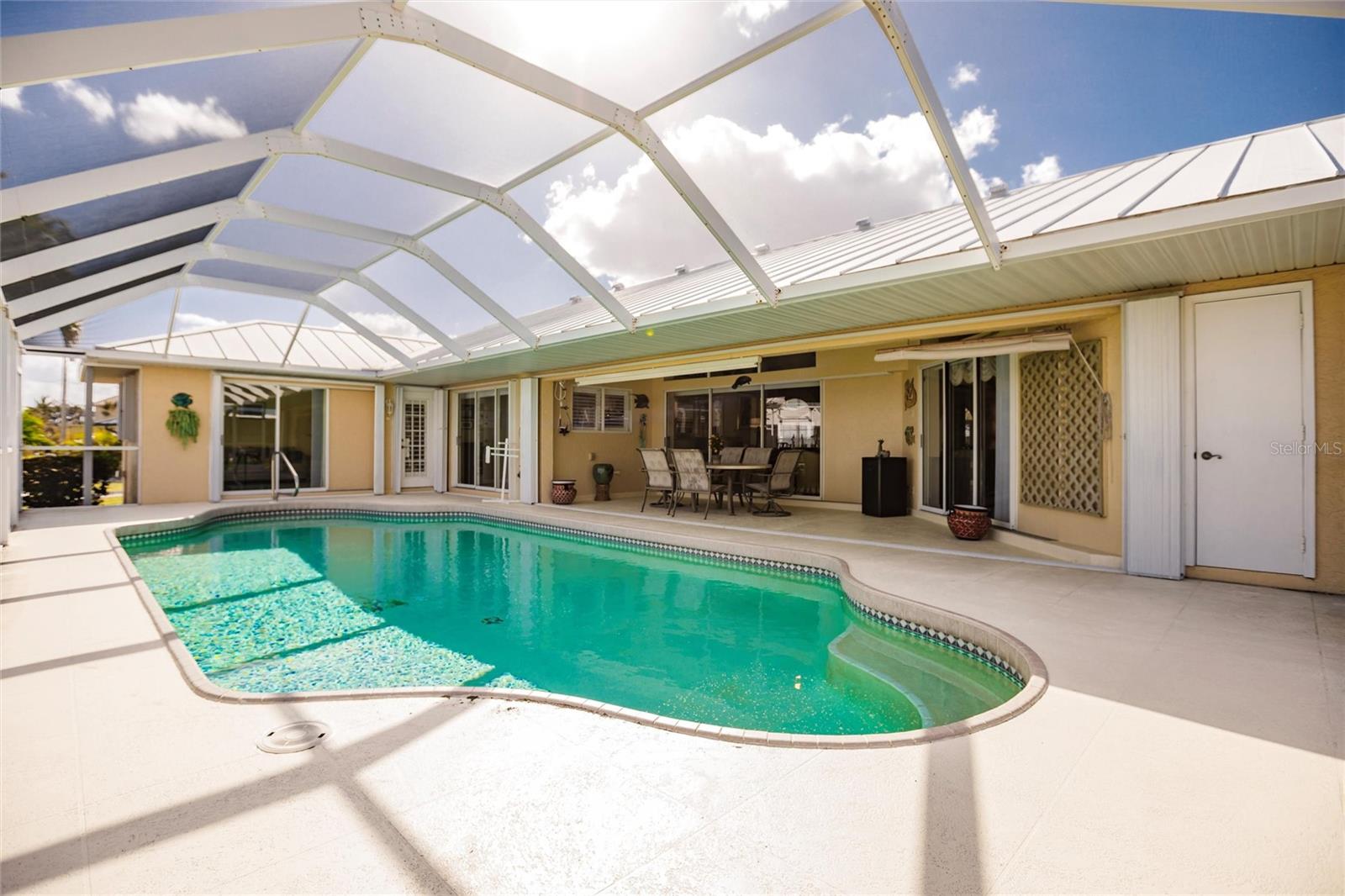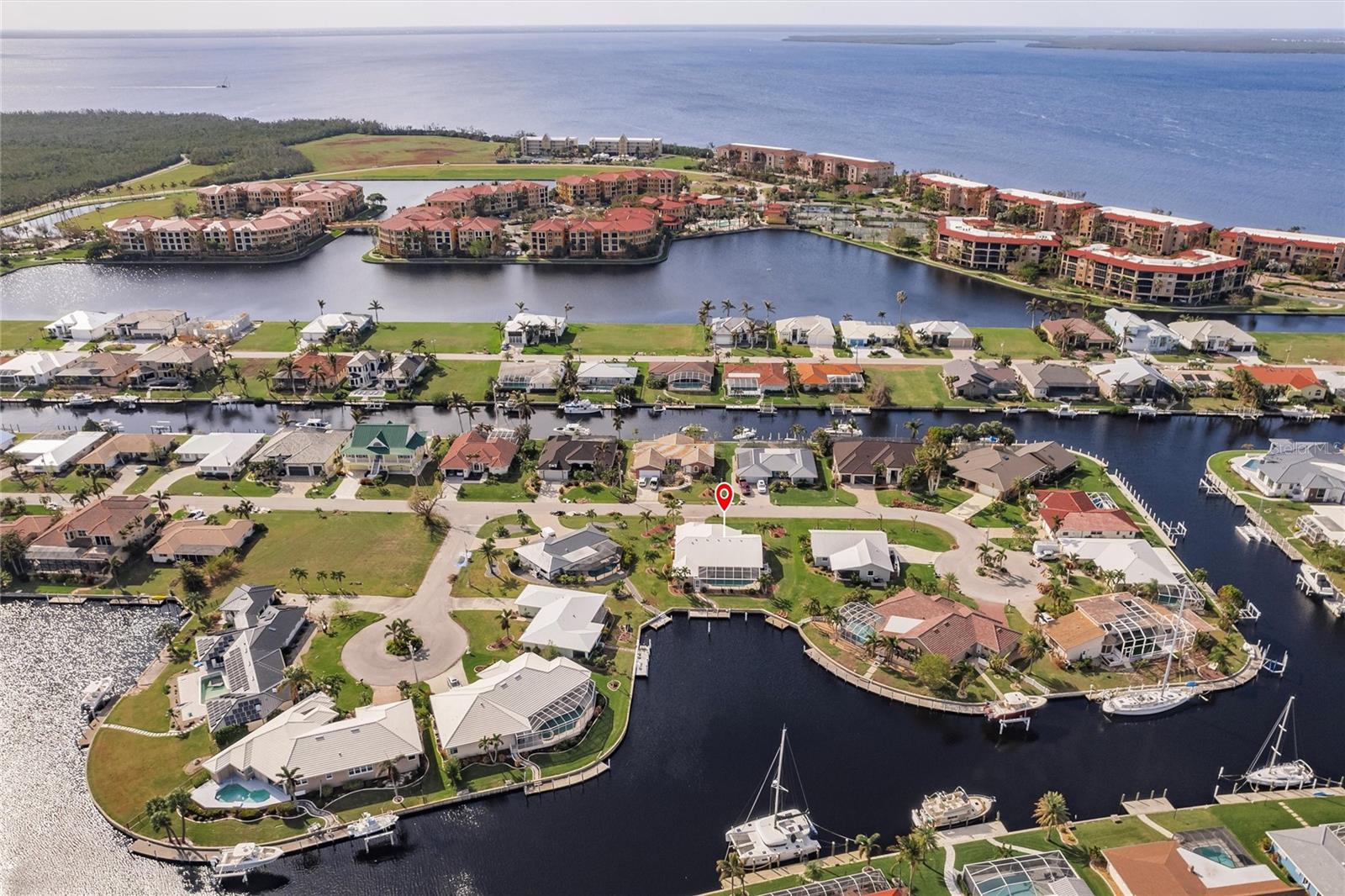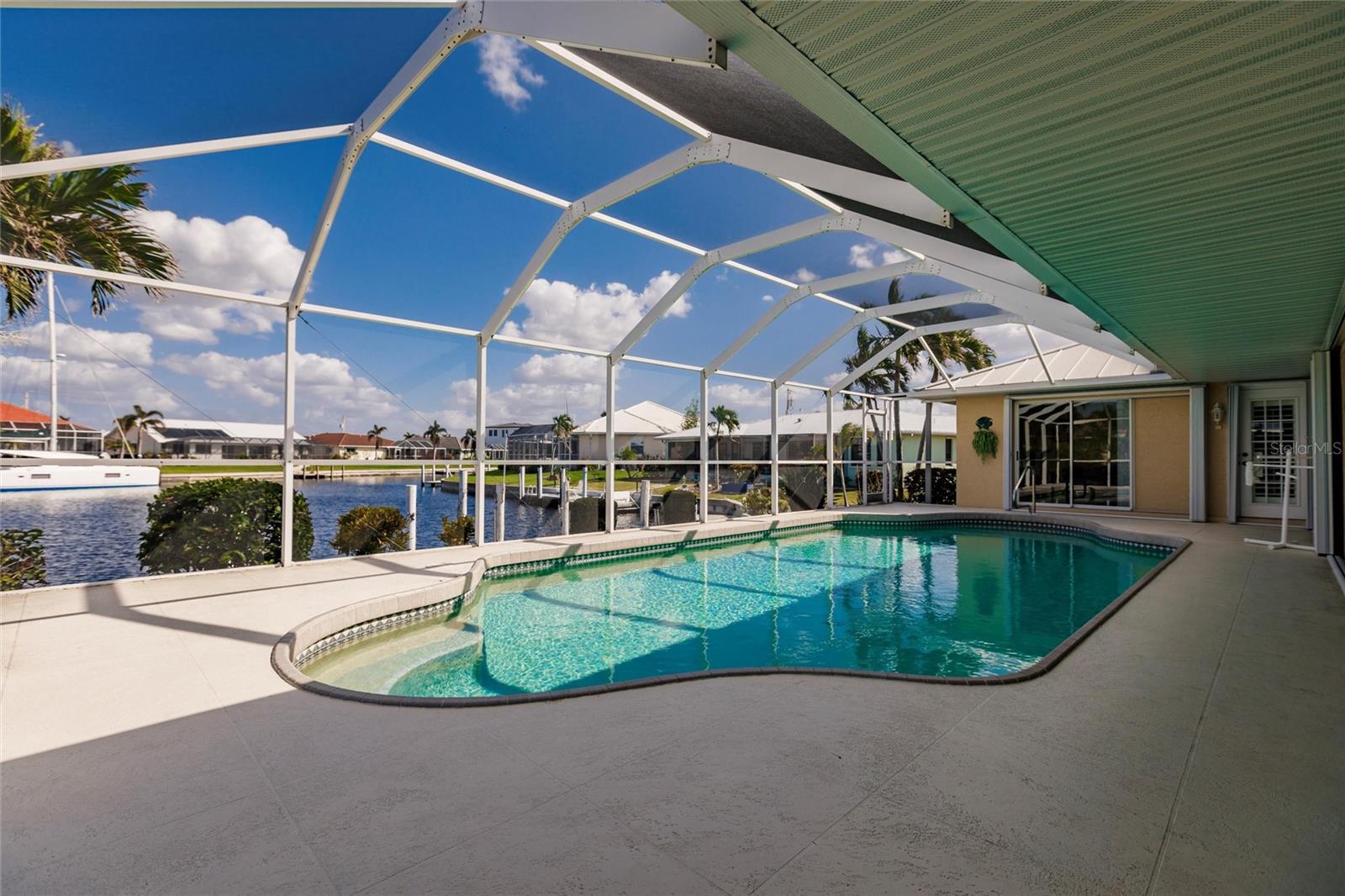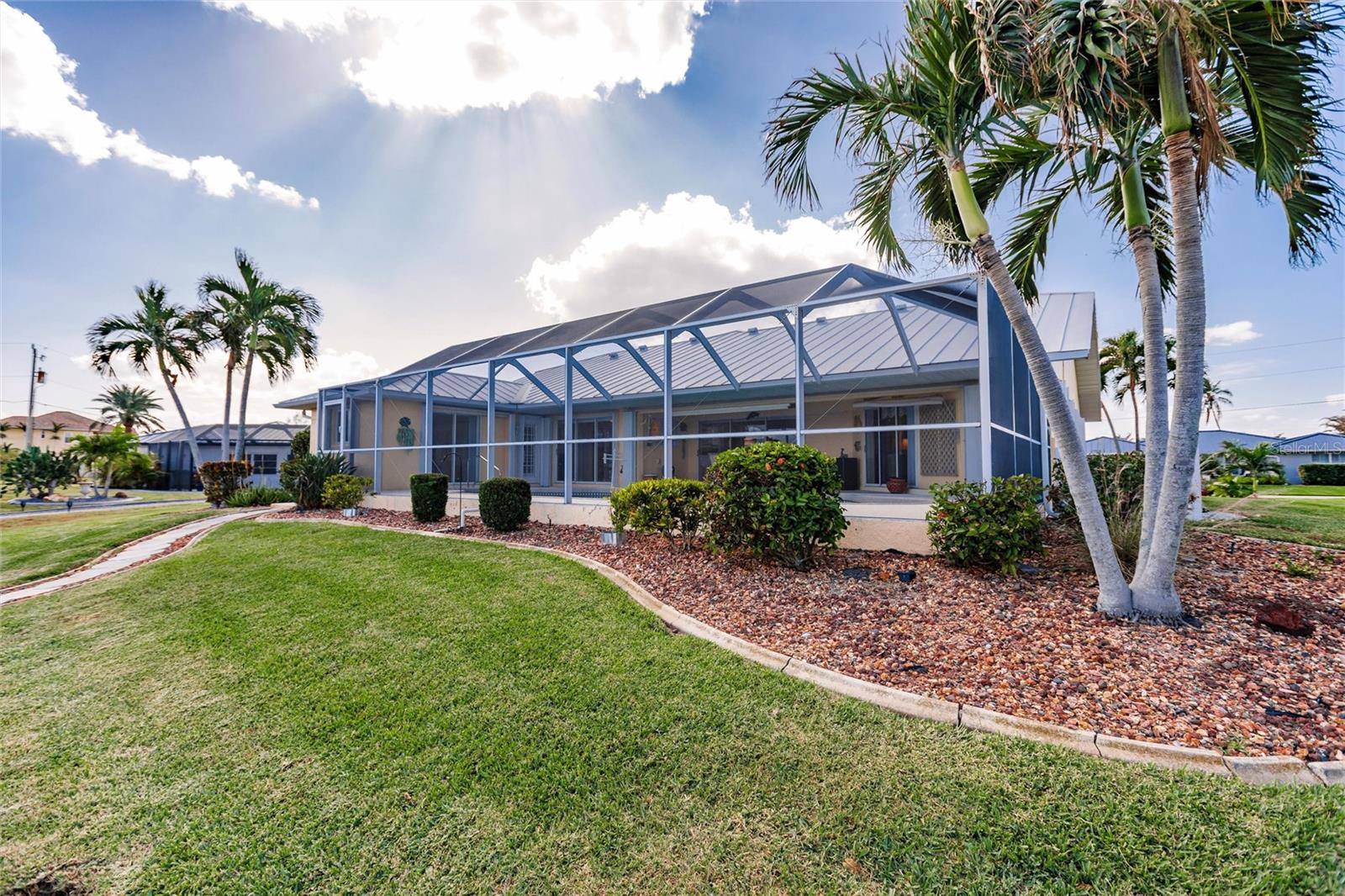 Welcome to your dream waterfront retreat in Punta Gorda Isles! Nestled on a quiet cu-de-sac near the end of the isles, this meticulously maintained sailboat-access home truly checks every box. Situated on an oversized lot along the King Fisher Lagoon, this property boasts DIRECT DEEP-WATER ACCESS with NO BRIDGES to Charlotte Harbor and beyond. Sail away in minutes and enjoy the best of Southwest Florida boating. This beautiful three bedroom, two bathroom residence features a desirable split floor plan, soaring cathedral ceilings, and over 2000 square feet of open concept living space. Large sliders and windows flood the home with natural light and frame stunning views of the wide canal. The updated interior requires no work, just bring your boat and bathing suit. Enjoy total peace of mind with a brand new air conditioning system and feel secure with uninterrupted power as the home features a whole house generator. The concrete sea wall, maintained by the city of Punta Gorda, adds additional value and stability. Outdoor living is just as impressive; a private heated pool area, lush tropical landscaping, and a thoughtful setback from the road provide a true sense of privacy. The only thing better than a waterfront lot in Punta Gorda is a large waterfront lot in Punta Gorda. The home is thoughtfully placed in the lot to maximize privacy and gorgeous sunrises that greet each new day. Additional highlights include ample storage throughout, spacious walk in closets, a quiet established neighborhood, no hurricane damage from any recent storms, and full hurricane house protection provided by accordion shutters. Only a short drive to the historic downtown Punta Gorda featuring shops, restaurants, a weekly Farmers Market and Flea Market at the History Park as well as the Harbor Walk and Pickleplex. Also a short drive to a dog park (Hounds on Henry), The Military Museum, Fisherman's Village, The Sunseeker Resort, and The Punta Gorda Airport offering flights throughout the country via Allegiant Air. Whether you are an avid sailor, a seasonal resident, or looking for your forever home, this property offers a perfect blend of luxury, location and lifestyle. Don't miss your chance to own this slice of coastal paradise.