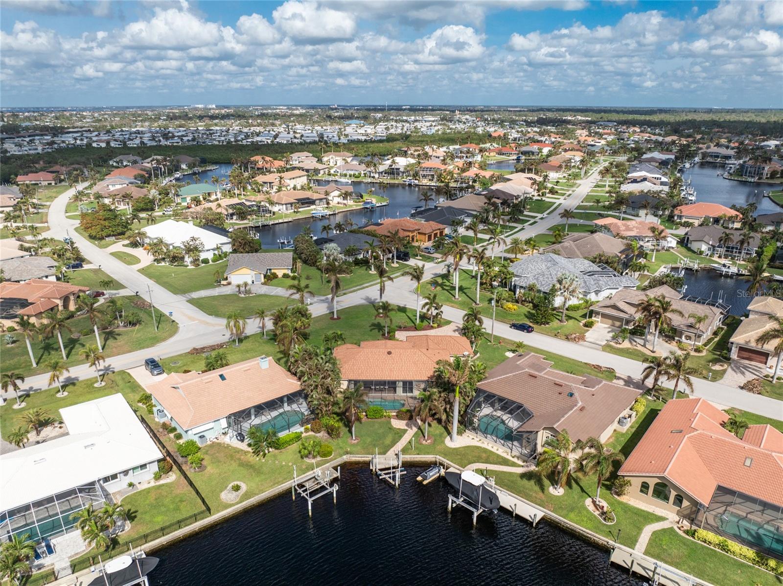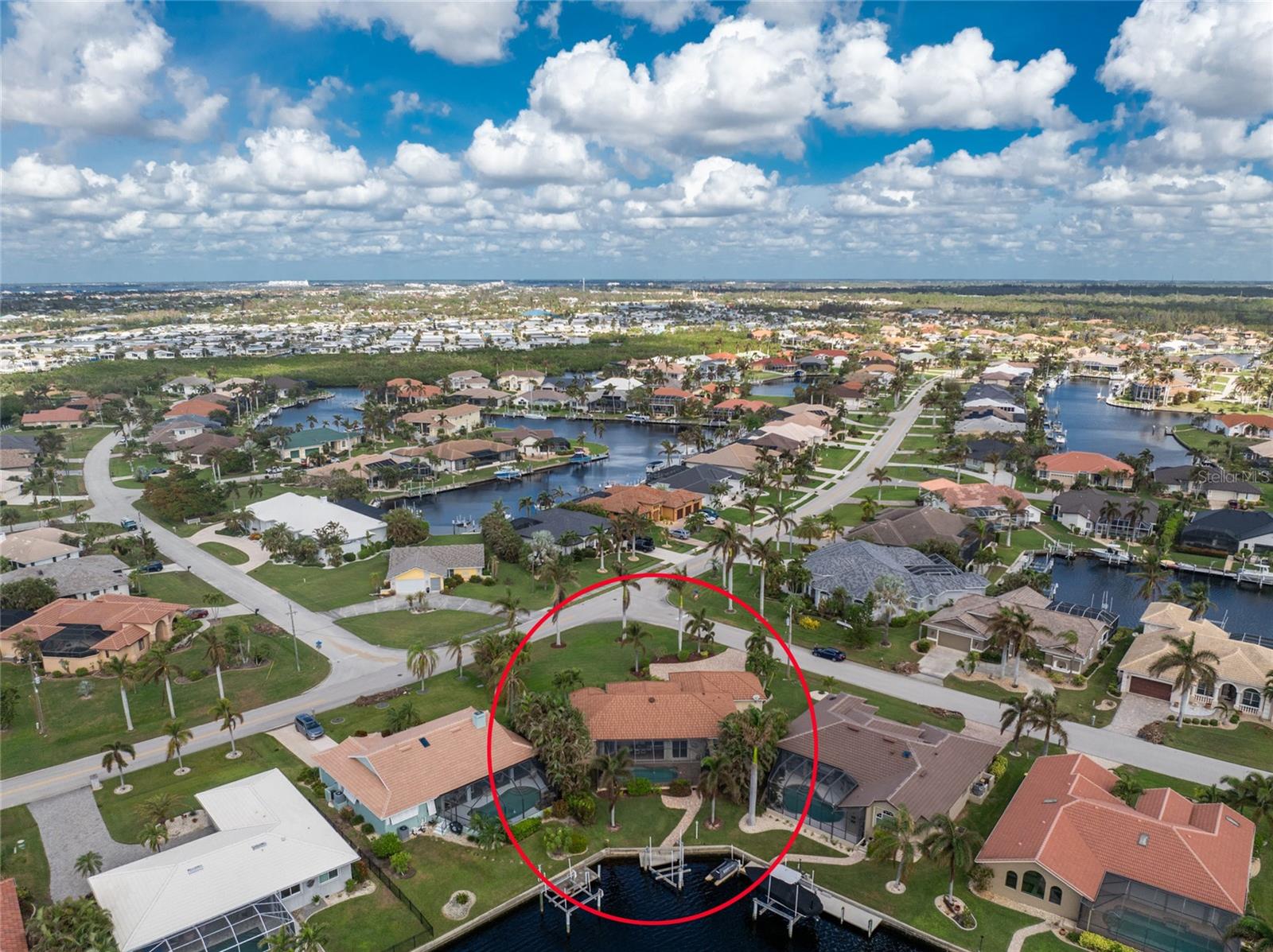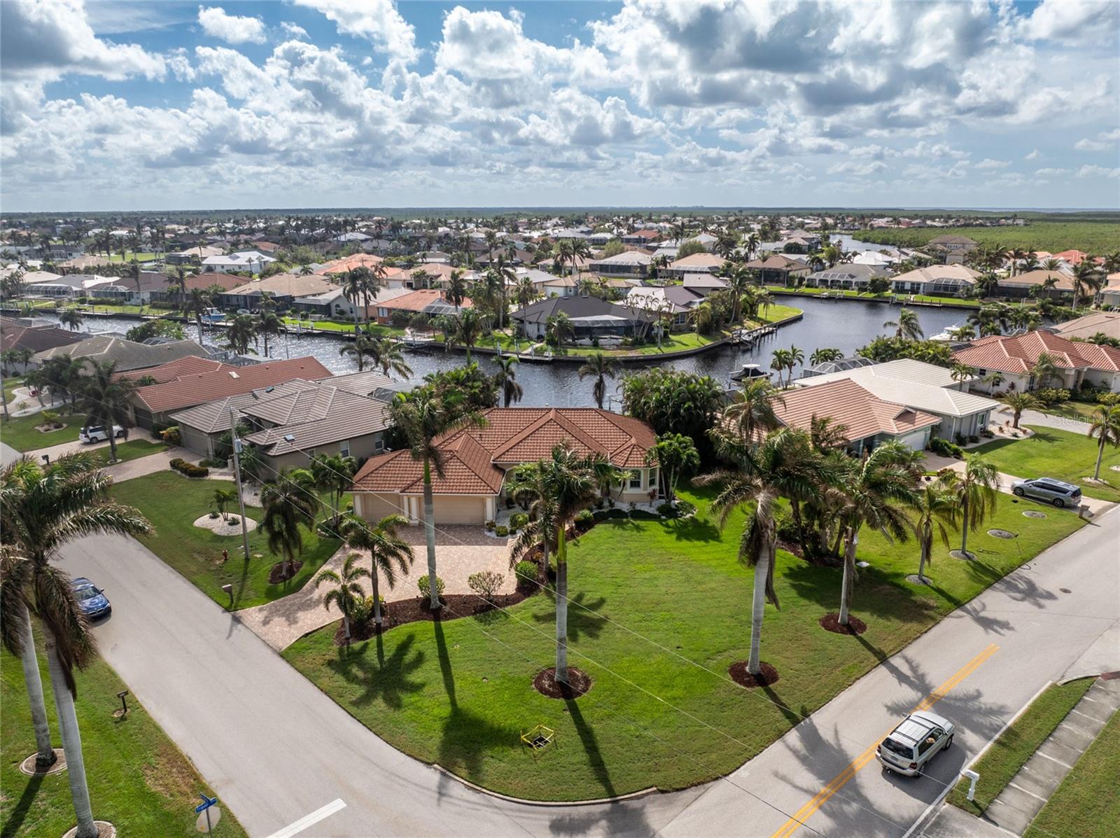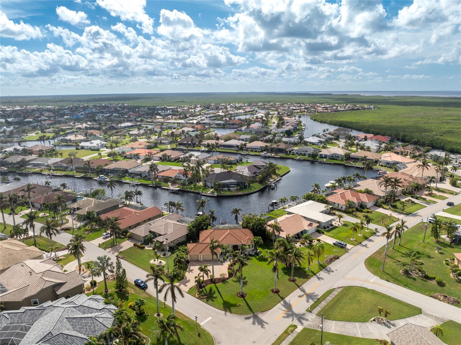 SOUTHERN EXPOSURE...Experience the finest in Florida living with this custom-built waterfront pool home, located on an oversized corner lot in the desirable Burnt Store Isles golf community. With sailboat access (no bridges out) to Charlotte Harbor and the Gulf, this superbly crafted 2011 home offers 3 bedrooms, 2 bathrooms, a spacious 3-car garage, and 2,054 square feet of open, tiled living space. From the moment you arrive, you'll be captivated by the elegant landscaping, outdoor lighting, and brick paver driveway and pathways. Step through the etched glass double doors into a grand Great Room, featuring a soaring 14' lighted double tray ceiling and disappearing pocket sliding doors that reveal an inviting lanai and pool area. The thoughtfully designed Great Room also includes a dining area and deluxe kitchen, complete with high-end granite countertops, matching backsplash, stainless steel appliances, an extended breakfast bar, and a dinette with serene views of the outdoors. The master suite is a true retreat, offering private access to the pool, a walk-in closet, an additional large closet, and an en-suite bathroom featuring a jetted soaking tub, his-and-her granite vanities, a walk-in tiled shower, and a private toilet room. The split floor plan provides guests with two private bedrooms and a full guest bathroom, ensuring comfort and privacy for family and friends. Step outside through the 8' glass sliders to relax on the oversized lanai and enjoy the heated pool with built-in seating and table, a large covered lanai with storm shutters, and a sun deck area. This waterfront property includes a seawall, a concrete dock, and a 10,000 lb. boat lift for easy sailboat access to the Gulf. Additional features include an oversized 3-car garage, a laundry room with a granite countertop sink and pantry, irrigation system, security system, crown molding, designer tray ceilings, Accordion shutters on lanai, NEW METAL TILE ROOF 2024 and so much more. Burnt Store Isles (BSI) is a deed-restricted, waterfront and golfing community, with Twin Isles Country Club located right in the center of the neighborhood. Conveniently located close to I-75, US-41, Fishermen’s Village, and downtown Punta Gorda's shops, dining, and entertainment, this home is spotless and move-in ready. Come enjoy the Florida lifestyle at its finest in this impressive Burnt Store Isles residence!