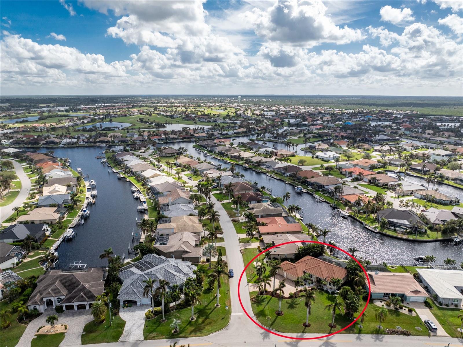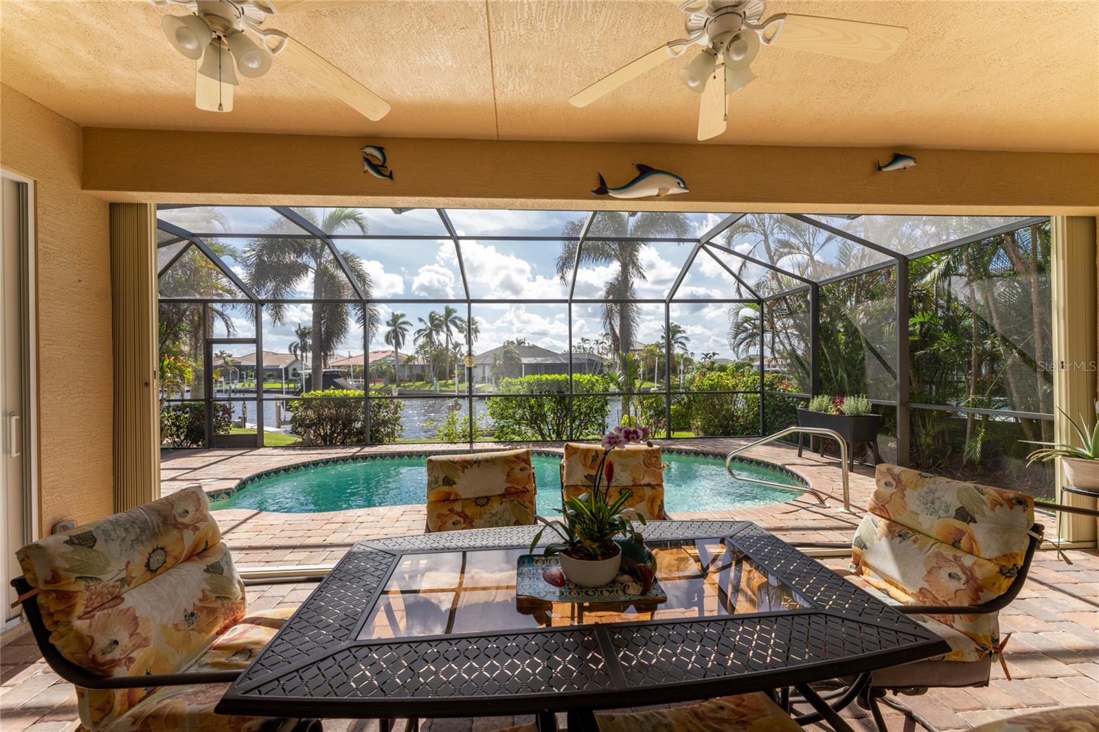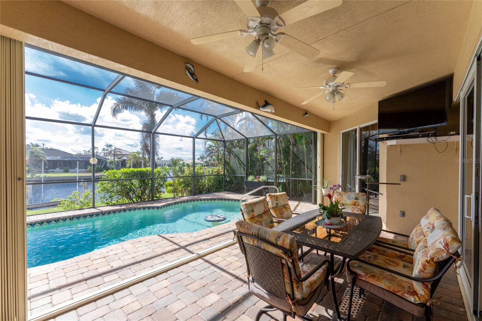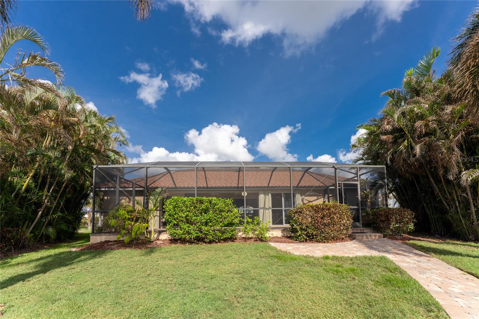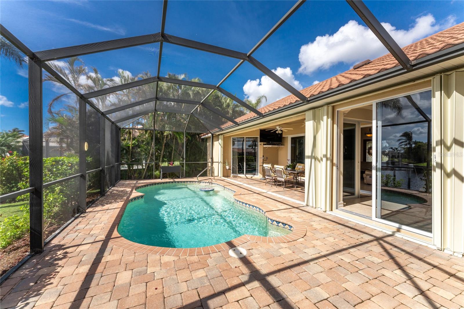 SOUTHERN EXPOSURE...Experience the finest in Florida living with this custom-built waterfront pool home, located on an oversized corner lot in the desirable Burnt Store Isles golf community. With sailboat access (no bridges out) to Charlotte Harbor and the Gulf, this superbly crafted 2011 home offers 3 bedrooms, 2 bathrooms, a spacious 3-car garage, and 2,054 square feet of open, tiled living space. From the moment you arrive, you'll be captivated by the elegant landscaping, outdoor lighting, and brick paver driveway and pathways. Step through the etched glass double doors into a grand Great Room, featuring a soaring 14' lighted double tray ceiling and disappearing pocket sliding doors that reveal an inviting lanai and pool area. The thoughtfully designed Great Room also includes a dining area and deluxe kitchen, complete with high-end granite countertops, matching backsplash, stainless steel appliances, an extended breakfast bar, and a dinette with serene views of the outdoors. The master suite is a true retreat, offering private access to the pool, a walk-in closet, an additional large closet, and an en-suite bathroom featuring a jetted soaking tub, his-and-her granite vanities, a walk-in tiled shower, and a private toilet room. The split floor plan provides guests with two private bedrooms and a full guest bathroom, ensuring comfort and privacy for family and friends. Step outside through the 8' glass sliders to relax on the oversized lanai and enjoy the heated pool with built-in seating and table, a large covered lanai with storm shutters, and a sun deck area. This waterfront property includes a seawall, a concrete dock, and a 10,000 lb. boat lift for easy sailboat access to the Gulf. Additional features include an oversized 3-car garage, a laundry room with a granite countertop sink and pantry, irrigation system, security system, crown molding, designer tray ceilings, Accordion shutters on lanai, NEW METAL TILE ROOF 2024 and so much more. Burnt Store Isles (BSI) is a deed-restricted, waterfront and golfing community, with Twin Isles Country Club located right in the center of the neighborhood. Conveniently located close to I-75, US-41, Fishermen’s Village, and downtown Punta Gorda's shops, dining, and entertainment, this home is spotless and move-in ready. Come enjoy the Florida lifestyle at its finest in this impressive Burnt Store Isles residence!