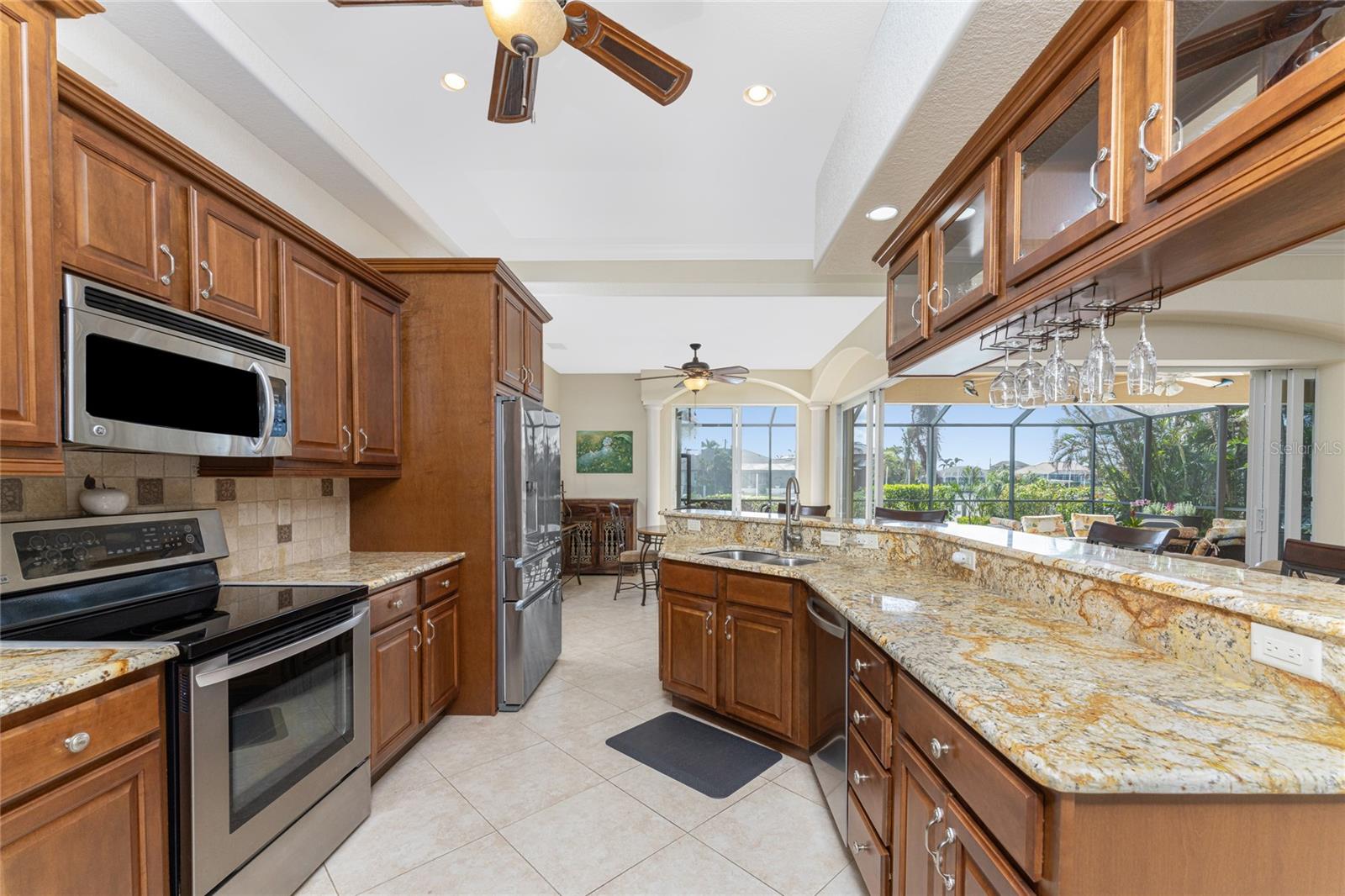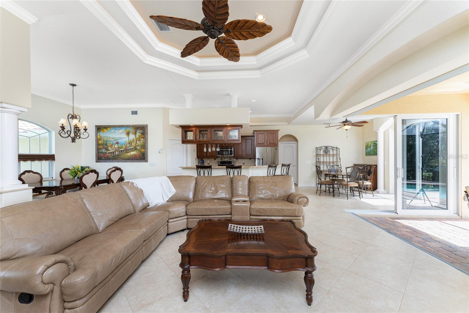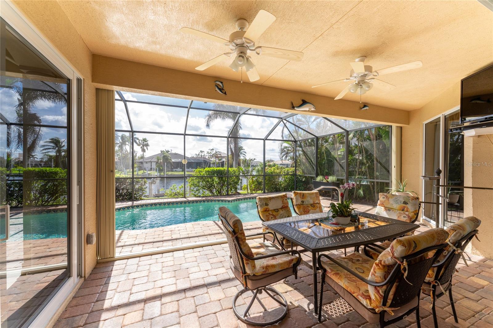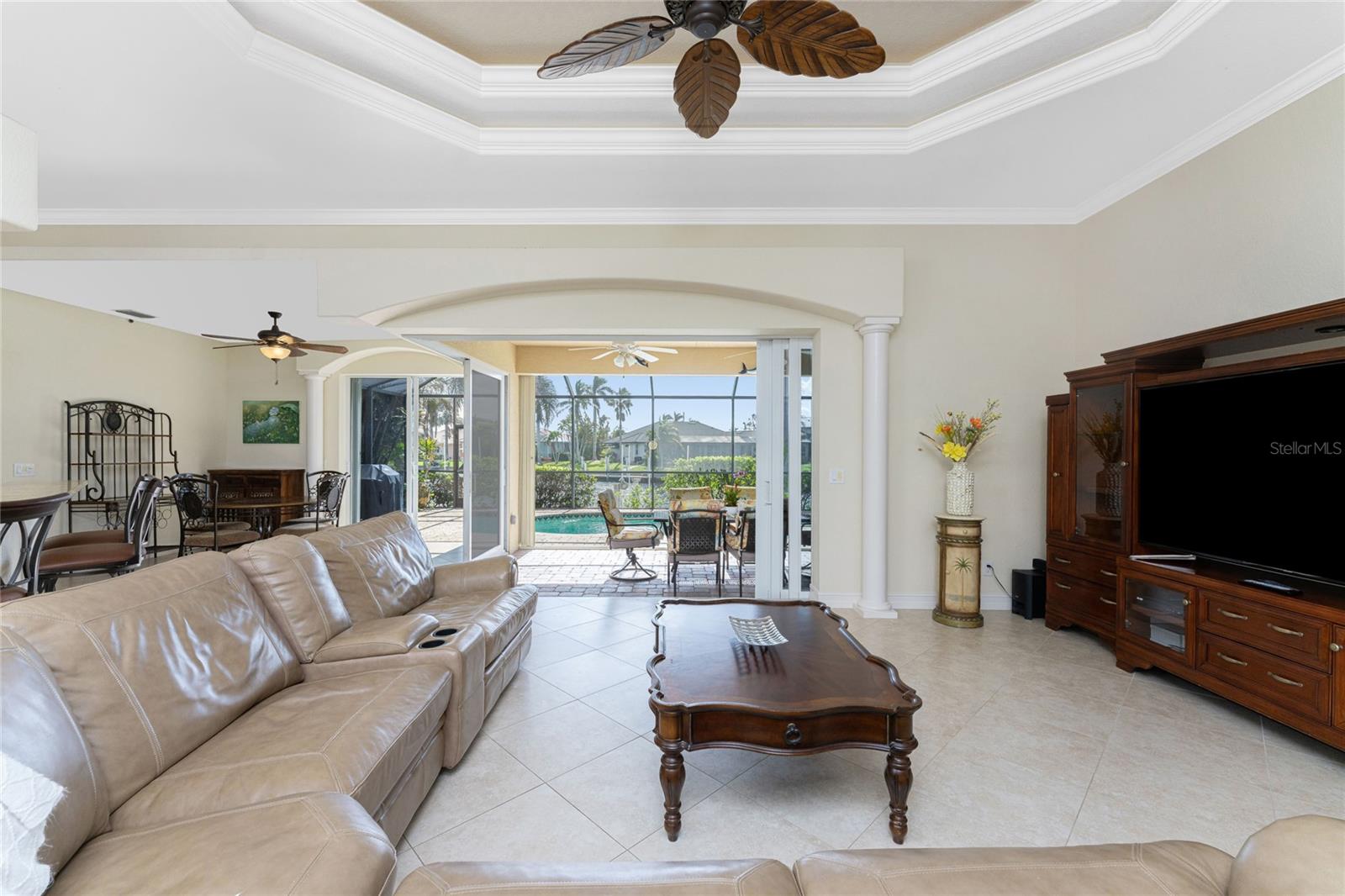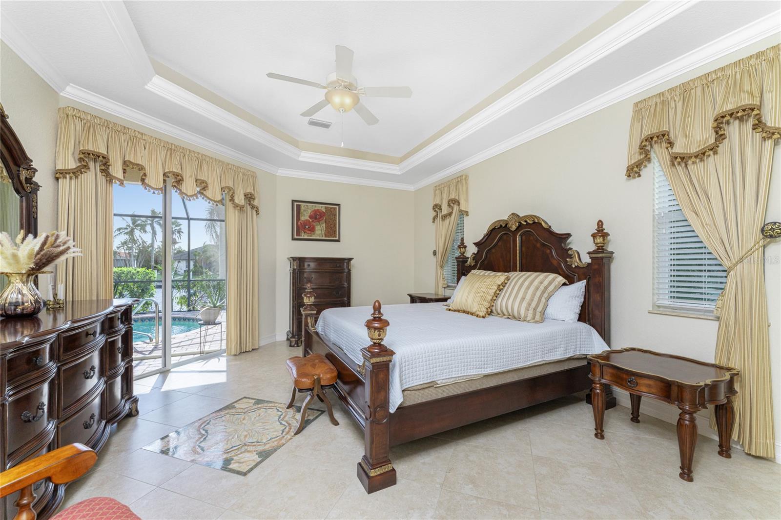 SOUTHERN EXPOSURE...Experience the finest in Florida living with this custom-built waterfront pool home, located on an oversized corner lot in the desirable Burnt Store Isles golf community. With sailboat access (no bridges out) to Charlotte Harbor and the Gulf, this superbly crafted 2011 home offers 3 bedrooms, 2 bathrooms, a spacious 3-car garage, and 2,054 square feet of open, tiled living space. From the moment you arrive, you'll be captivated by the elegant landscaping, outdoor lighting, and brick paver driveway and pathways. Step through the etched glass double doors into a grand Great Room, featuring a soaring 14' lighted double tray ceiling and disappearing pocket sliding doors that reveal an inviting lanai and pool area. The thoughtfully designed Great Room also includes a dining area and deluxe kitchen, complete with high-end granite countertops, matching backsplash, stainless steel appliances, an extended breakfast bar, and a dinette with serene views of the outdoors. The master suite is a true retreat, offering private access to the pool, a walk-in closet, an additional large closet, and an en-suite bathroom featuring a jetted soaking tub, his-and-her granite vanities, a walk-in tiled shower, and a private toilet room. The split floor plan provides guests with two private bedrooms and a full guest bathroom, ensuring comfort and privacy for family and friends. Step outside through the 8' glass sliders to relax on the oversized lanai and enjoy the heated pool with built-in seating and table, a large covered lanai with storm shutters, and a sun deck area. This waterfront property includes a seawall, a concrete dock, and a 10,000 lb. boat lift for easy sailboat access to the Gulf. Additional features include an oversized 3-car garage, a laundry room with a granite countertop sink and pantry, irrigation system, security system, crown molding, designer tray ceilings, Accordion shutters on lanai, NEW METAL TILE ROOF 2024 and so much more. Burnt Store Isles (BSI) is a deed-restricted, waterfront and golfing community, with Twin Isles Country Club located right in the center of the neighborhood. Conveniently located close to I-75, US-41, Fishermen’s Village, and downtown Punta Gorda's shops, dining, and entertainment, this home is spotless and move-in ready. Come enjoy the Florida lifestyle at its finest in this impressive Burnt Store Isles residence!