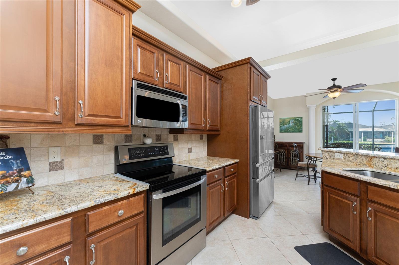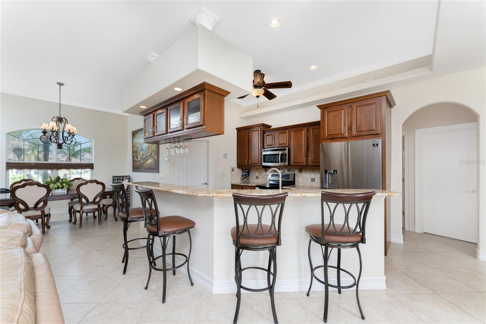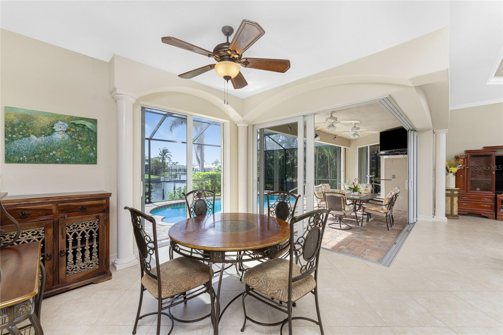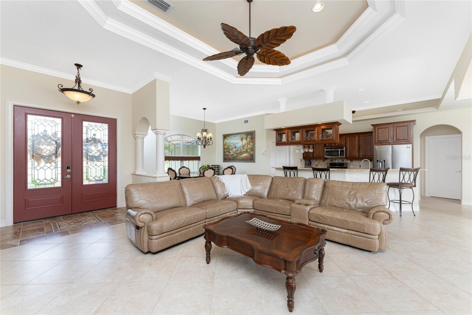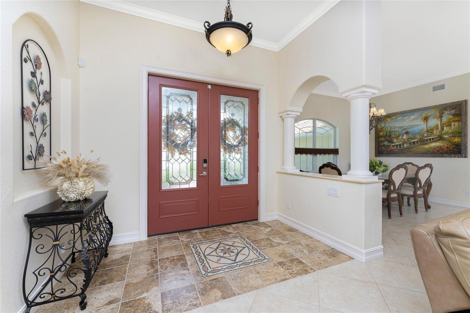 SOUTHERN EXPOSURE...Experience the finest in Florida living with this custom-built waterfront pool home, located on an oversized corner lot in the desirable Burnt Store Isles golf community. With sailboat access (no bridges out) to Charlotte Harbor and the Gulf, this superbly crafted 2011 home offers 3 bedrooms, 2 bathrooms, a spacious 3-car garage, and 2,054 square feet of open, tiled living space. From the moment you arrive, you'll be captivated by the elegant landscaping, outdoor lighting, and brick paver driveway and pathways. Step through the etched glass double doors into a grand Great Room, featuring a soaring 14' lighted double tray ceiling and disappearing pocket sliding doors that reveal an inviting lanai and pool area. The thoughtfully designed Great Room also includes a dining area and deluxe kitchen, complete with high-end granite countertops, matching backsplash, stainless steel appliances, an extended breakfast bar, and a dinette with serene views of the outdoors. The master suite is a true retreat, offering private access to the pool, a walk-in closet, an additional large closet, and an en-suite bathroom featuring a jetted soaking tub, his-and-her granite vanities, a walk-in tiled shower, and a private toilet room. The split floor plan provides guests with two private bedrooms and a full guest bathroom, ensuring comfort and privacy for family and friends. Step outside through the 8' glass sliders to relax on the oversized lanai and enjoy the heated pool with built-in seating and table, a large covered lanai with storm shutters, and a sun deck area. This waterfront property includes a seawall, a concrete dock, and a 10,000 lb. boat lift for easy sailboat access to the Gulf. Additional features include an oversized 3-car garage, a laundry room with a granite countertop sink and pantry, irrigation system, security system, crown molding, designer tray ceilings, Accordion shutters on lanai, NEW METAL TILE ROOF 2024 and so much more. Burnt Store Isles (BSI) is a deed-restricted, waterfront and golfing community, with Twin Isles Country Club located right in the center of the neighborhood. Conveniently located close to I-75, US-41, Fishermen’s Village, and downtown Punta Gorda's shops, dining, and entertainment, this home is spotless and move-in ready. Come enjoy the Florida lifestyle at its finest in this impressive Burnt Store Isles residence!