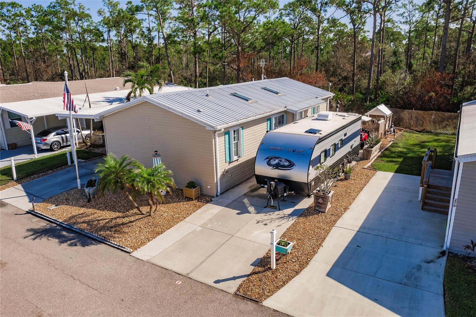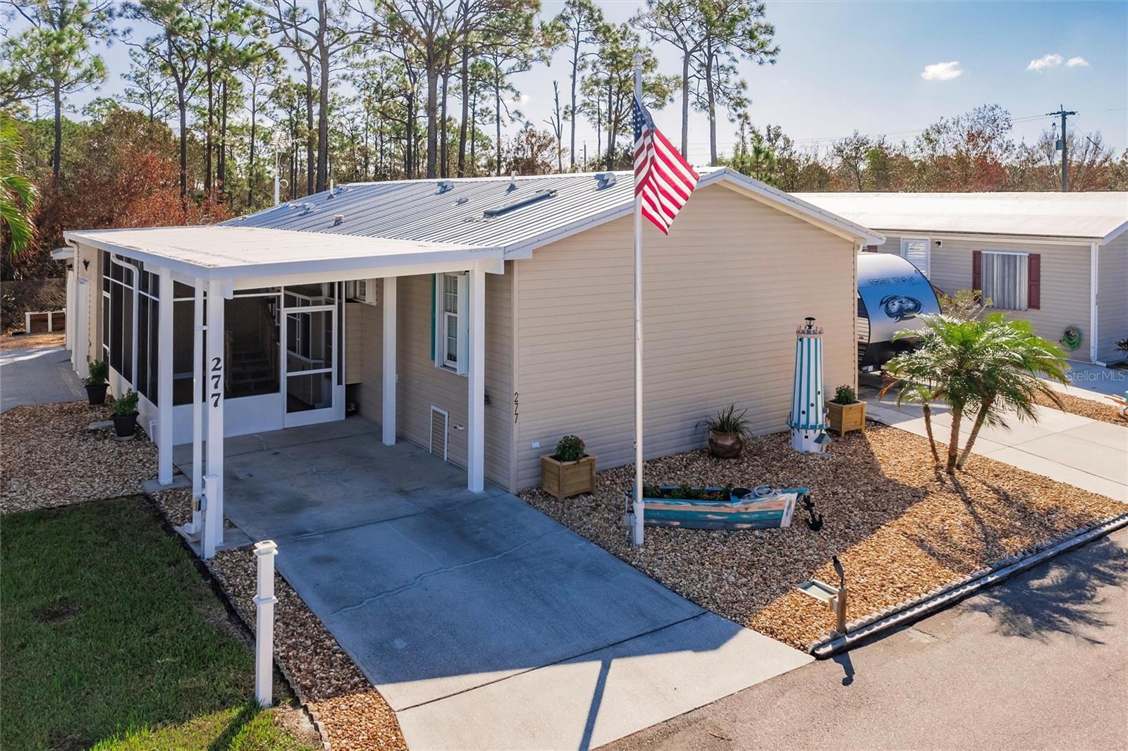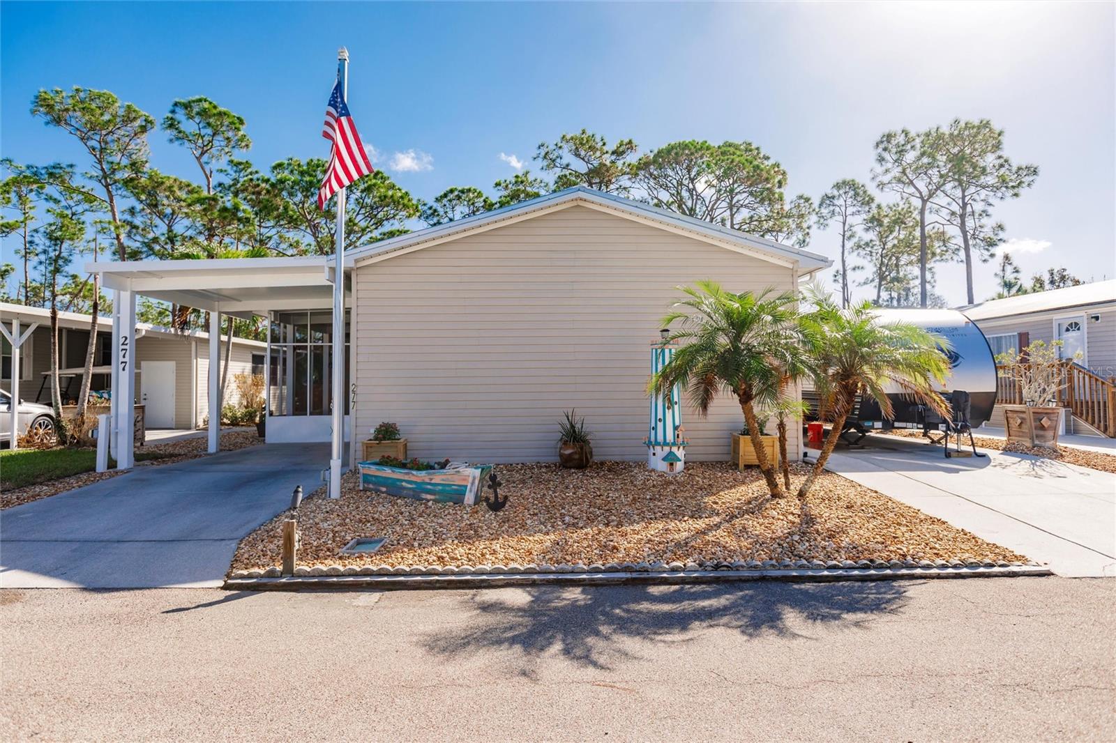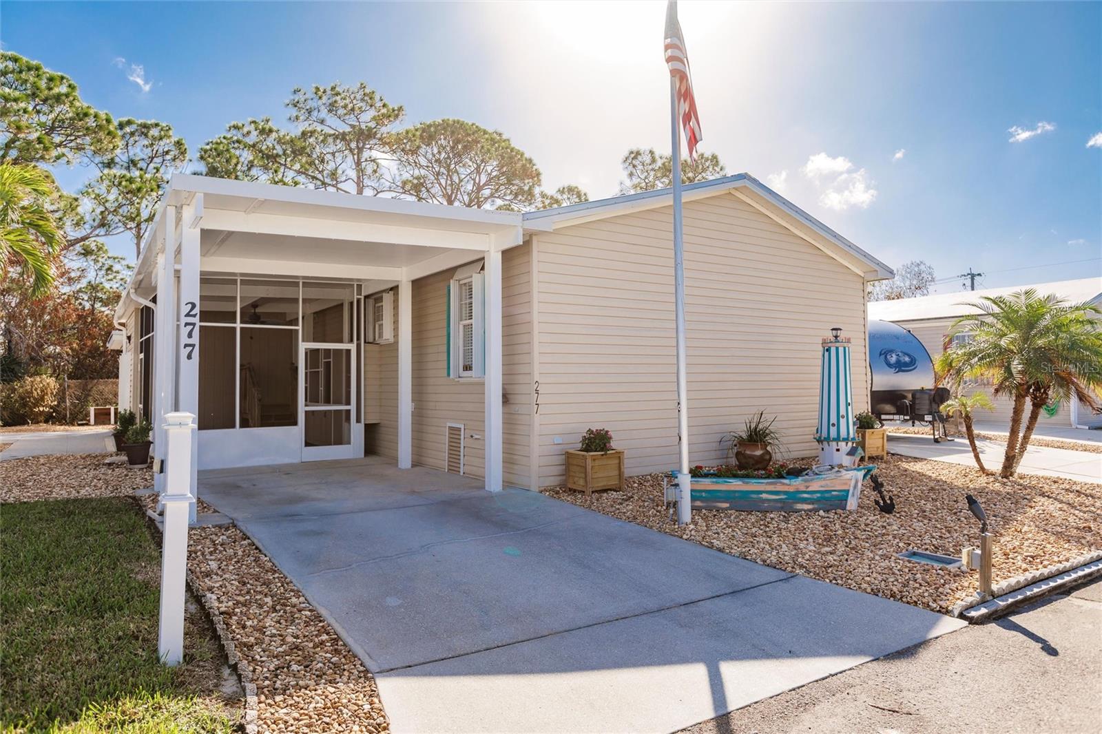 Welcome to your one-of-a-kind, custom-designed sanctuary! This stunning 2-bedroom, 2-bathroom home comes furnished in Alligator Park a highly sought after 55+ community in Punta Gorda, has been entirely reimagined by a skilled, high-end craftsman, with every room showcasing extraordinary detail and masterful design. The custom wood trim around all windows, baseboards, and crown molding enhances each space, while four skylights fill the home with ample natural light. The home has two entrances—one on the north side and one on the south—both featuring new doors and easy-access stairs. The south entrance opens to an enclosed lanai with a custom-built entertainment center, complete with a mounted television and mini-fridge, perfect for relaxing or entertaining. Upon entering, you'll notice the spacious open floor plan, with the living room flowing seamlessly into the kitchen. The custom kitchen is a chef’s dream, featuring a central butcher block island, a high-end stainless steel farmhouse sink with garbage disposal, and beautifully crafted details throughout. Custom cabinets with pull-out drawers, under-cabinet lighting, a tiled backsplash, glass-accented cabinet doors, and corbel pendant lighting over the island add both function and flair. The island also provides space for bar seating and entertaining. The master bedroom boasts a generous walk-in closet with custom shelving, while the vibrant en suite bathroom evokes a Key West vibe, with colors and design elements that create a serene escape. On the other side of the home, the second bedroom features custom-built shelves, a spacious double-sided walk-in closet, and a built-in cabinet prewired for your television. The guest bathroom is a true work of art, offering a hand-crafted walk-in shower with dual shower heads, built-in shelves, custom seating, and convenient grab bars. In the laundry area, you’ll find thoughtfully designed built-in cabinet storage surrounding the stackable front-loading washer and dryer. Step outside into your professionally landscaped garden oasis, complete with custom planters filled with Desert Roses, Stag Horn, a Magnolia Tree and beautiful annuals and perennials. A peaceful waterfall enhances the ambiance, while a full irrigation system ensures each planter thrives. The property also includes a custom shed housing a powerful 13,500-watt whole-house generator, supported by two 100-lb propane tanks and storage for 50 gallons of gasoline, providing complete peace of mind. For those with hobbies or storage needs, there’s a custom-built small garage ideal for a motorcycle or golf cart, plus a large attached workshop with ample space for projects and storage. This home is also equipped with a 5-year-old metal roof with extra insulation, rain gutters, and accordion hurricane shutters on every window and door. Filled with character and quality, every space has been meticulously planned and custom-designed for beauty, functionality, and style. This home price includes the park share of $60K, call now to schedule your private showing!