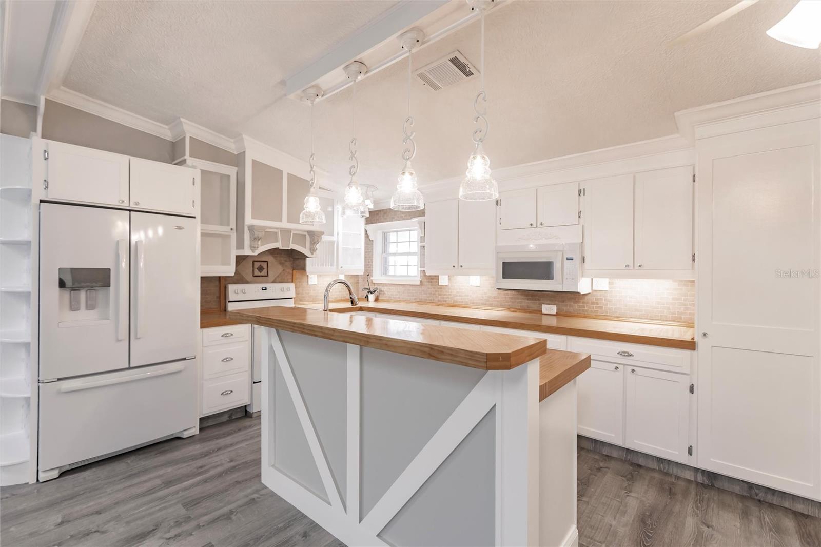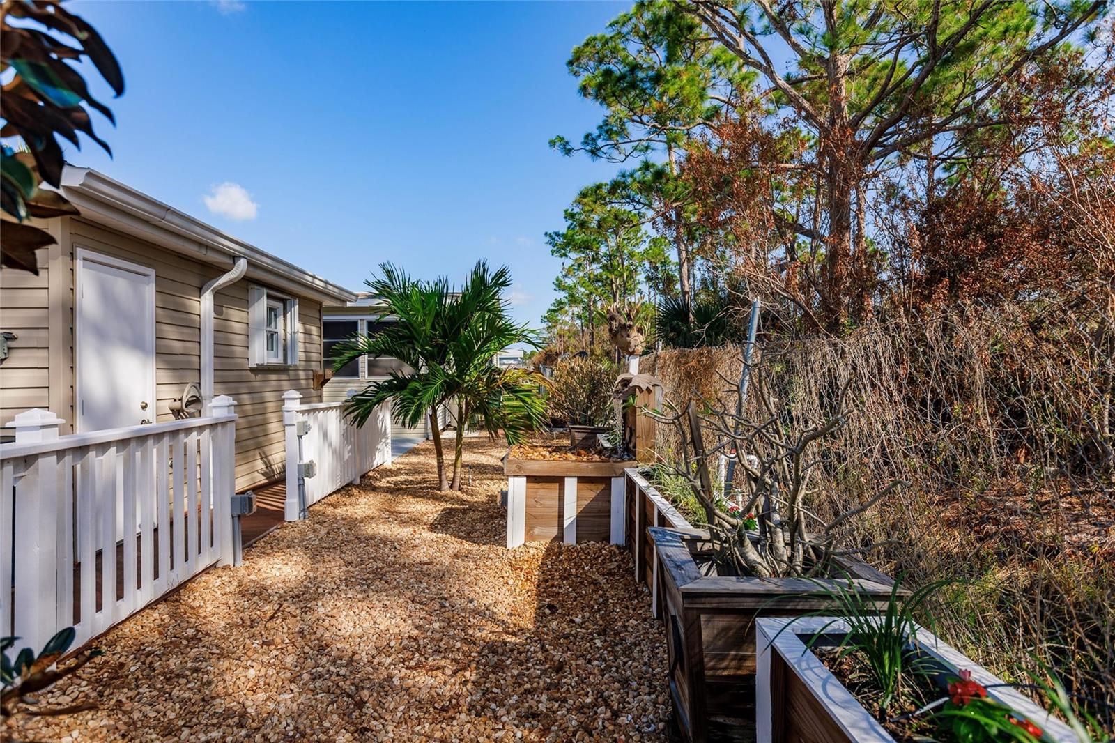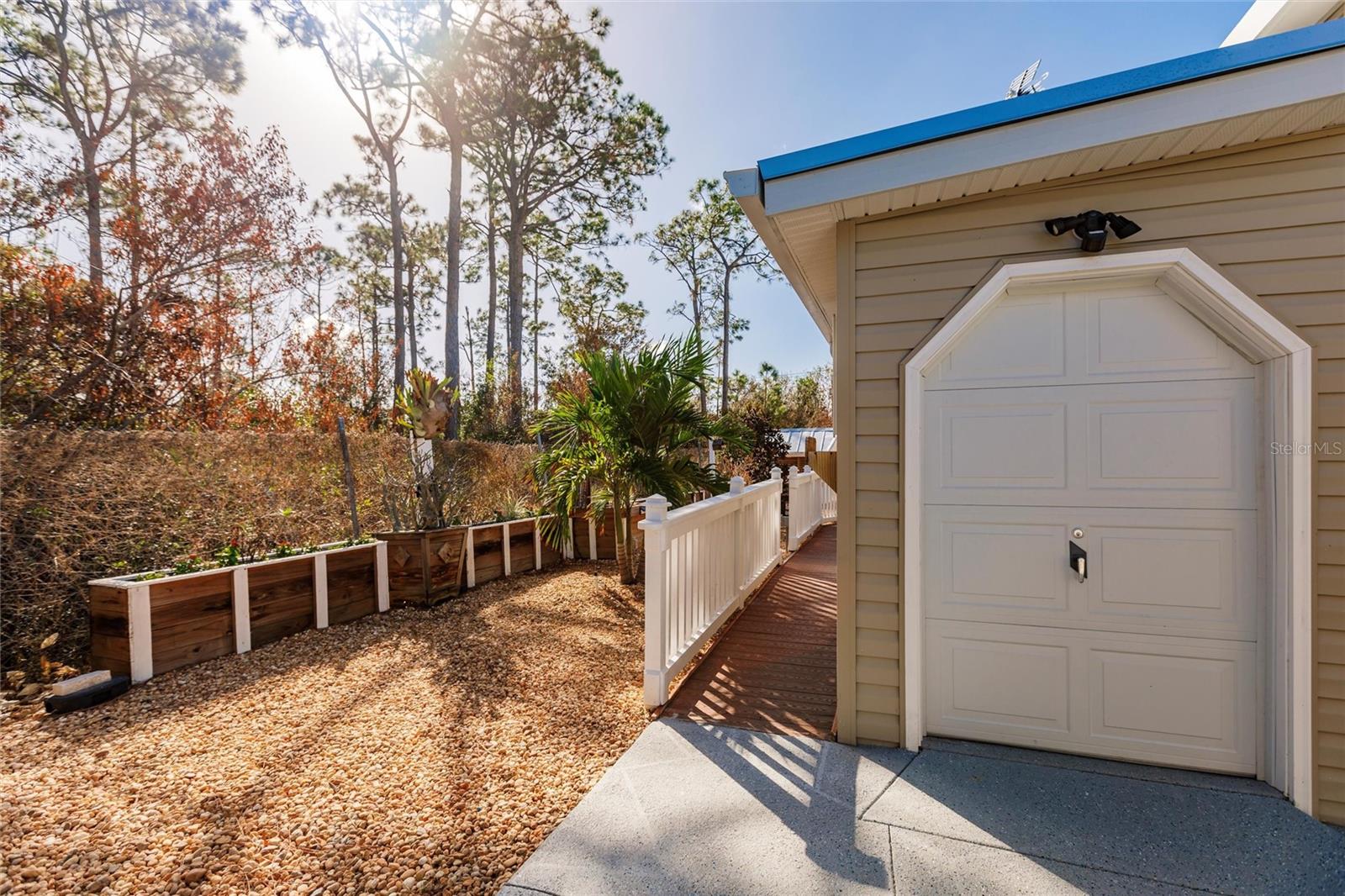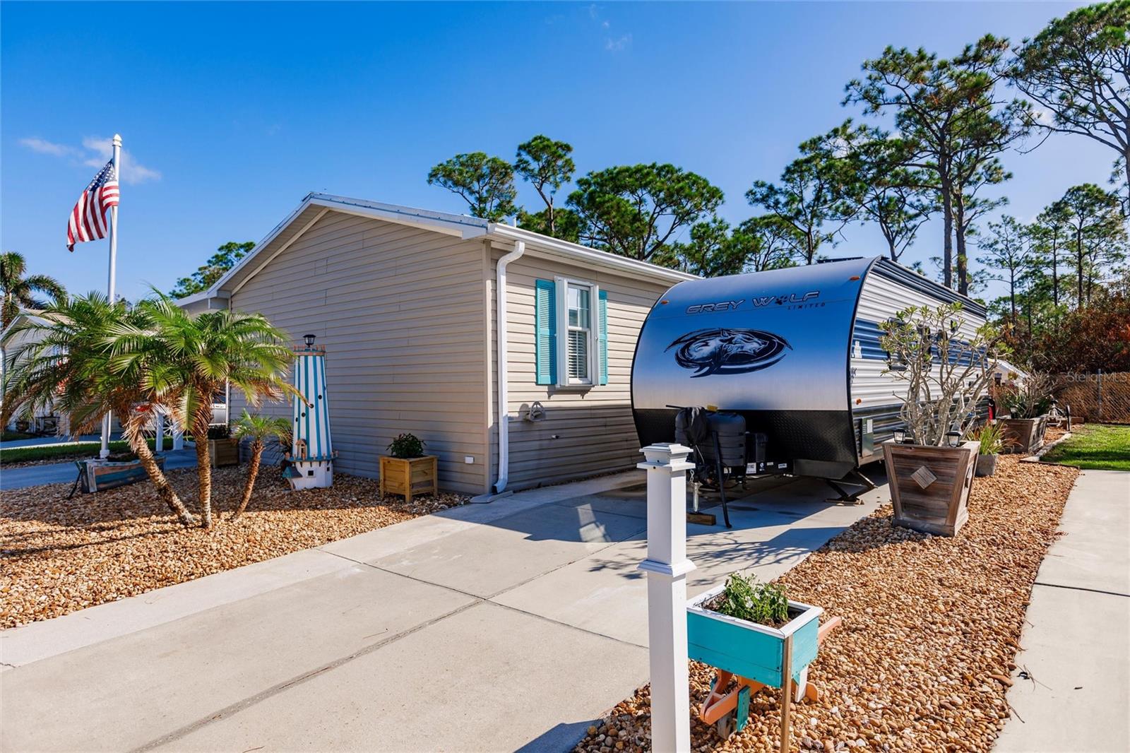 Welcome to your one-of-a-kind, custom-designed sanctuary! This stunning 2-bedroom, 2-bathroom home comes furnished in Alligator Park a highly sought after 55+ community in Punta Gorda, has been entirely reimagined by a skilled, high-end craftsman, with every room showcasing extraordinary detail and masterful design. The custom wood trim around all windows, baseboards, and crown molding enhances each space, while four skylights fill the home with ample natural light. The home has two entrances—one on the north side and one on the south—both featuring new doors and easy-access stairs. The south entrance opens to an enclosed lanai with a custom-built entertainment center, complete with a mounted television and mini-fridge, perfect for relaxing or entertaining. Upon entering, you'll notice the spacious open floor plan, with the living room flowing seamlessly into the kitchen. The custom kitchen is a chef’s dream, featuring a central butcher block island, a high-end stainless steel farmhouse sink with garbage disposal, and beautifully crafted details throughout. Custom cabinets with pull-out drawers, under-cabinet lighting, a tiled backsplash, glass-accented cabinet doors, and corbel pendant lighting over the island add both function and flair. The island also provides space for bar seating and entertaining. The master bedroom boasts a generous walk-in closet with custom shelving, while the vibrant en suite bathroom evokes a Key West vibe, with colors and design elements that create a serene escape. On the other side of the home, the second bedroom features custom-built shelves, a spacious double-sided walk-in closet, and a built-in cabinet prewired for your television. The guest bathroom is a true work of art, offering a hand-crafted walk-in shower with dual shower heads, built-in shelves, custom seating, and convenient grab bars. In the laundry area, you’ll find thoughtfully designed built-in cabinet storage surrounding the stackable front-loading washer and dryer. Step outside into your professionally landscaped garden oasis, complete with custom planters filled with Desert Roses, Stag Horn, a Magnolia Tree and beautiful annuals and perennials. A peaceful waterfall enhances the ambiance, while a full irrigation system ensures each planter thrives. The property also includes a custom shed housing a powerful 13,500-watt whole-house generator, supported by two 100-lb propane tanks and storage for 50 gallons of gasoline, providing complete peace of mind. For those with hobbies or storage needs, there’s a custom-built small garage ideal for a motorcycle or golf cart, plus a large attached workshop with ample space for projects and storage. This home is also equipped with a 5-year-old metal roof with extra insulation, rain gutters, and accordion hurricane shutters on every window and door. Filled with character and quality, every space has been meticulously planned and custom-designed for beauty, functionality, and style. This home price includes the park share of $60K, call now to schedule your private showing!