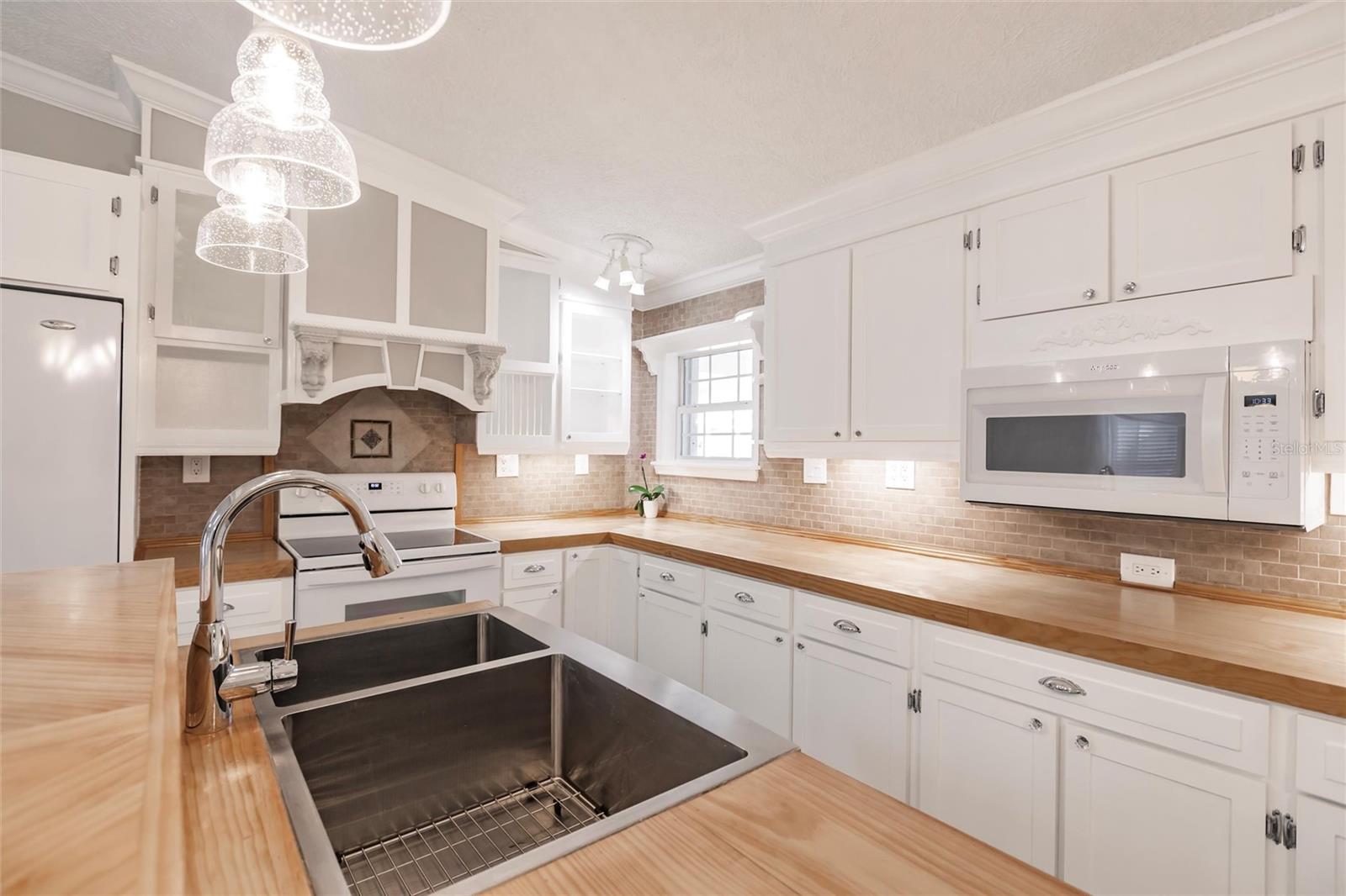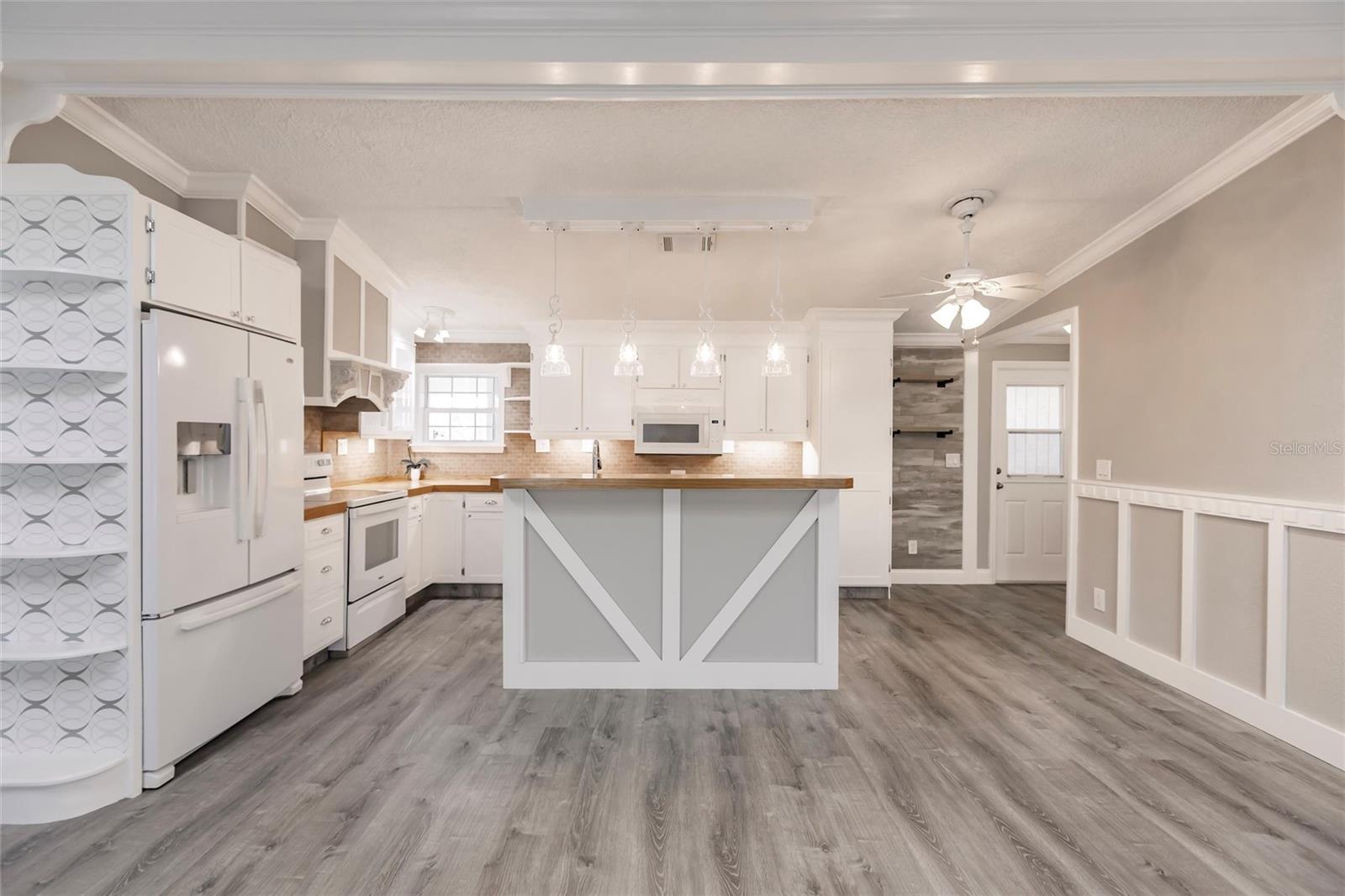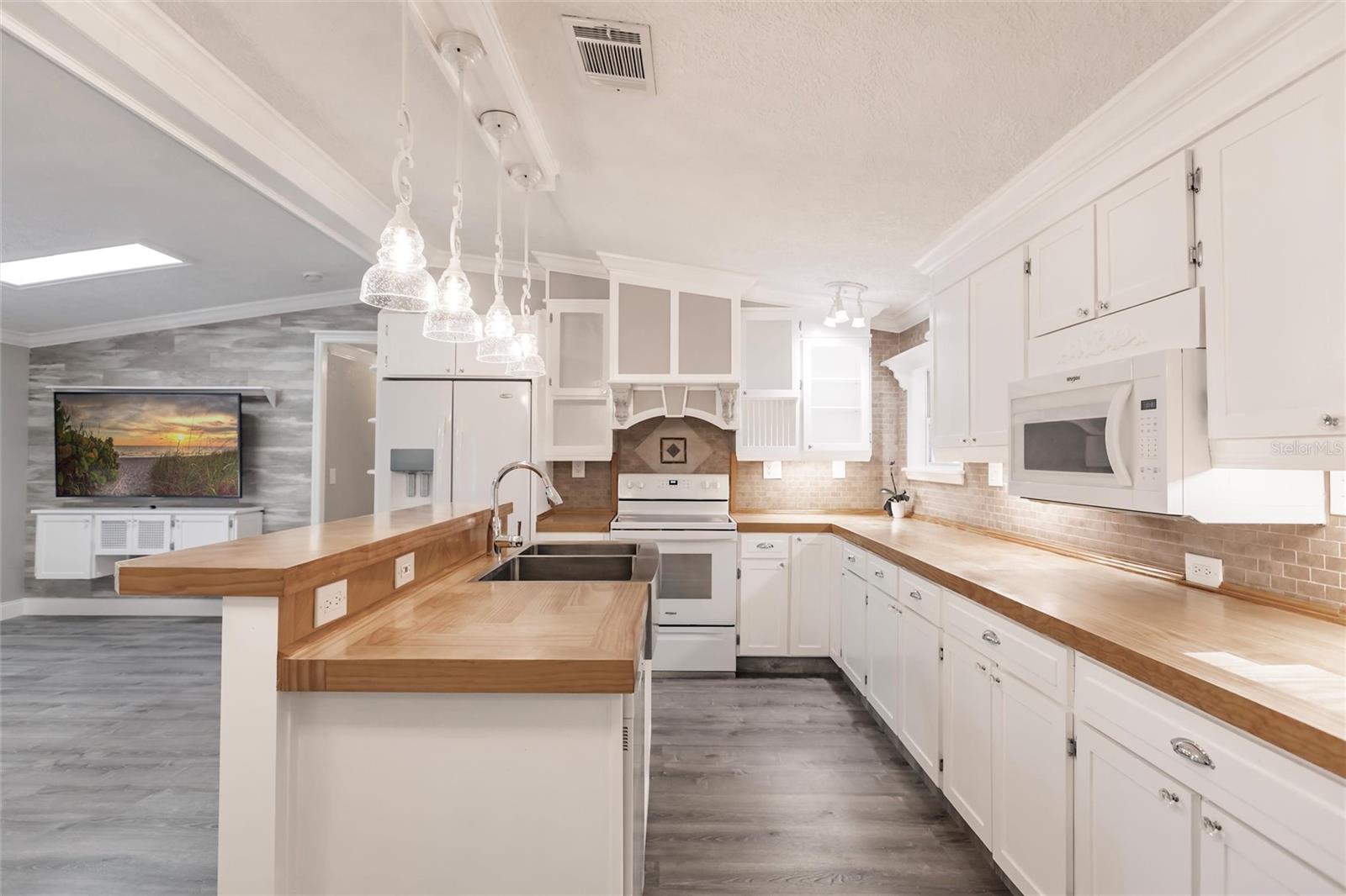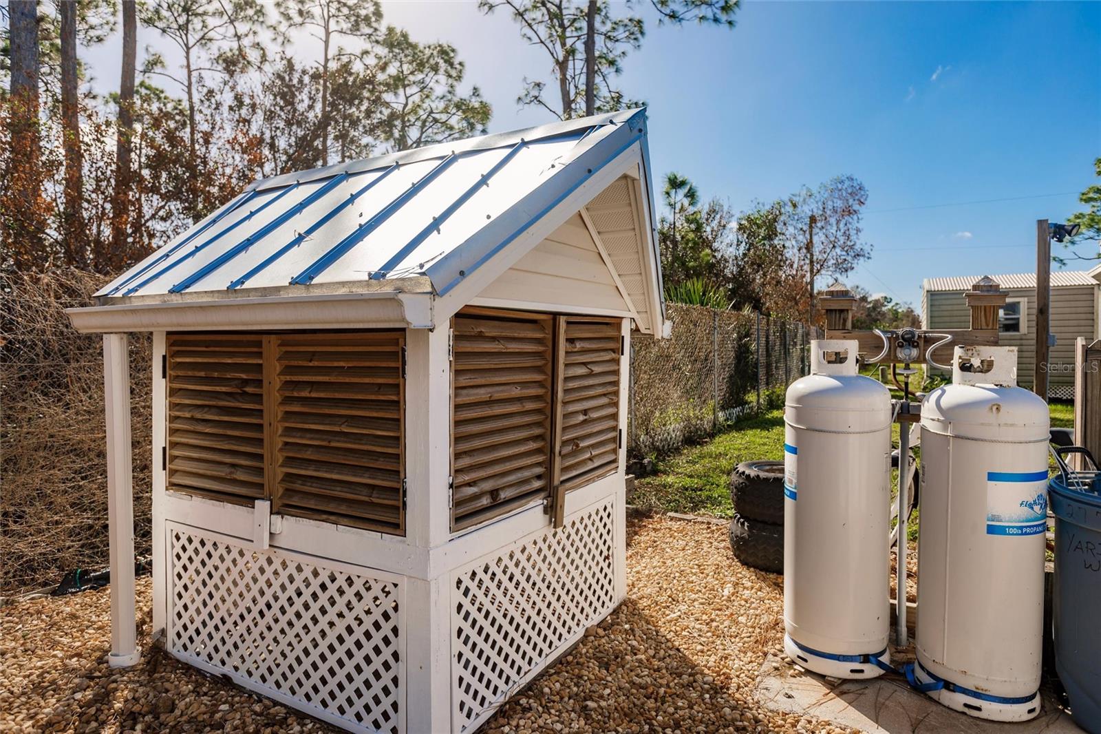 Welcome to your one-of-a-kind, custom-designed sanctuary! This stunning 2-bedroom, 2-bathroom home comes furnished in Alligator Park a highly sought after 55+ community in Punta Gorda, has been entirely reimagined by a skilled, high-end craftsman, with every room showcasing extraordinary detail and masterful design. The custom wood trim around all windows, baseboards, and crown molding enhances each space, while four skylights fill the home with ample natural light. The home has two entrances—one on the north side and one on the south—both featuring new doors and easy-access stairs. The south entrance opens to an enclosed lanai with a custom-built entertainment center, complete with a mounted television and mini-fridge, perfect for relaxing or entertaining. Upon entering, you'll notice the spacious open floor plan, with the living room flowing seamlessly into the kitchen. The custom kitchen is a chef’s dream, featuring a central butcher block island, a high-end stainless steel farmhouse sink with garbage disposal, and beautifully crafted details throughout. Custom cabinets with pull-out drawers, under-cabinet lighting, a tiled backsplash, glass-accented cabinet doors, and corbel pendant lighting over the island add both function and flair. The island also provides space for bar seating and entertaining. The master bedroom boasts a generous walk-in closet with custom shelving, while the vibrant en suite bathroom evokes a Key West vibe, with colors and design elements that create a serene escape. On the other side of the home, the second bedroom features custom-built shelves, a spacious double-sided walk-in closet, and a built-in cabinet prewired for your television. The guest bathroom is a true work of art, offering a hand-crafted walk-in shower with dual shower heads, built-in shelves, custom seating, and convenient grab bars. In the laundry area, you’ll find thoughtfully designed built-in cabinet storage surrounding the stackable front-loading washer and dryer. Step outside into your professionally landscaped garden oasis, complete with custom planters filled with Desert Roses, Stag Horn, a Magnolia Tree and beautiful annuals and perennials. A peaceful waterfall enhances the ambiance, while a full irrigation system ensures each planter thrives. The property also includes a custom shed housing a powerful 13,500-watt whole-house generator, supported by two 100-lb propane tanks and storage for 50 gallons of gasoline, providing complete peace of mind. For those with hobbies or storage needs, there’s a custom-built small garage ideal for a motorcycle or golf cart, plus a large attached workshop with ample space for projects and storage. This home is also equipped with a 5-year-old metal roof with extra insulation, rain gutters, and accordion hurricane shutters on every window and door. Filled with character and quality, every space has been meticulously planned and custom-designed for beauty, functionality, and style. This home price includes the park share of $60K, call now to schedule your private showing!
