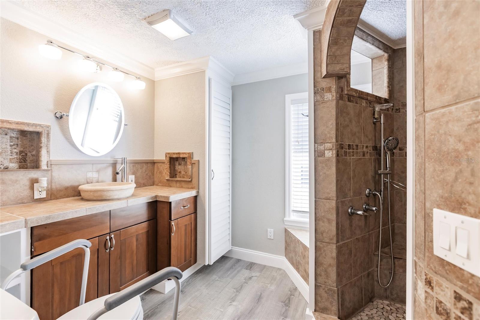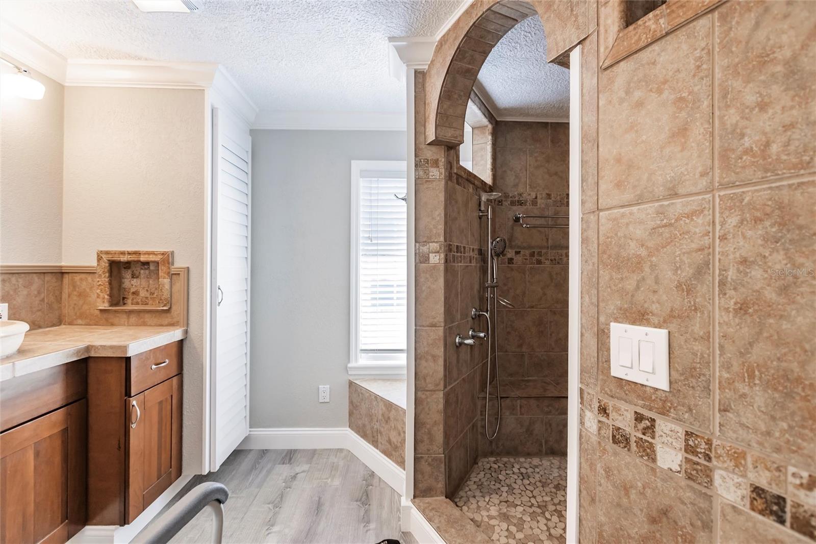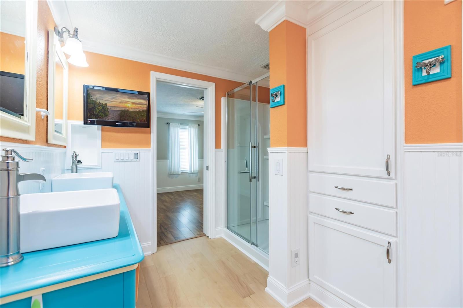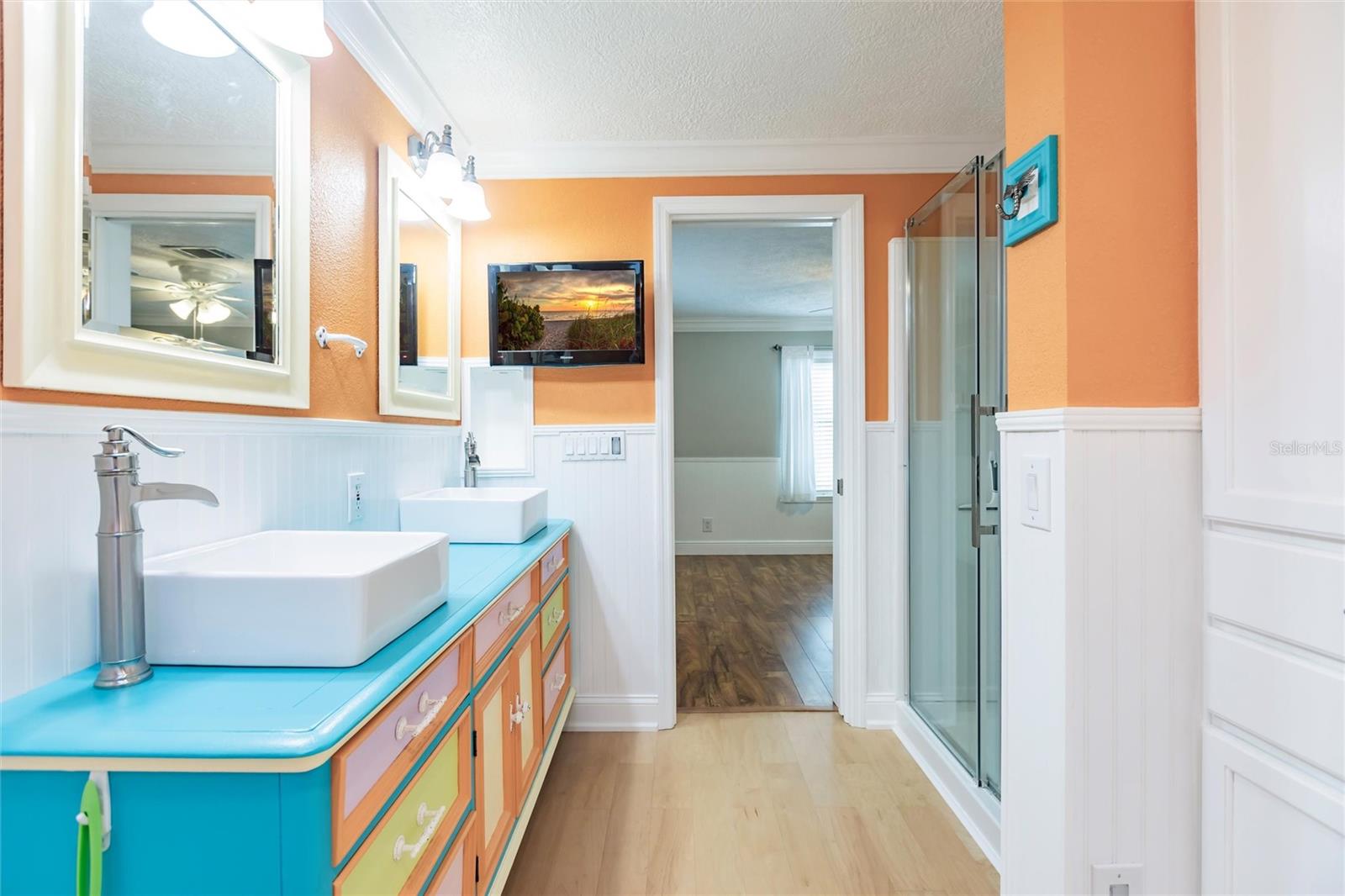 Welcome to your one-of-a-kind, custom-designed sanctuary! This stunning 2-bedroom, 2-bathroom home comes furnished in Alligator Park a highly sought after 55+ community in Punta Gorda, has been entirely reimagined by a skilled, high-end craftsman, with every room showcasing extraordinary detail and masterful design. The custom wood trim around all windows, baseboards, and crown molding enhances each space, while four skylights fill the home with ample natural light. The home has two entrances—one on the north side and one on the south—both featuring new doors and easy-access stairs. The south entrance opens to an enclosed lanai with a custom-built entertainment center, complete with a mounted television and mini-fridge, perfect for relaxing or entertaining. Upon entering, you'll notice the spacious open floor plan, with the living room flowing seamlessly into the kitchen. The custom kitchen is a chef’s dream, featuring a central butcher block island, a high-end stainless steel farmhouse sink with garbage disposal, and beautifully crafted details throughout. Custom cabinets with pull-out drawers, under-cabinet lighting, a tiled backsplash, glass-accented cabinet doors, and corbel pendant lighting over the island add both function and flair. The island also provides space for bar seating and entertaining. The master bedroom boasts a generous walk-in closet with custom shelving, while the vibrant en suite bathroom evokes a Key West vibe, with colors and design elements that create a serene escape. On the other side of the home, the second bedroom features custom-built shelves, a spacious double-sided walk-in closet, and a built-in cabinet prewired for your television. The guest bathroom is a true work of art, offering a hand-crafted walk-in shower with dual shower heads, built-in shelves, custom seating, and convenient grab bars. In the laundry area, you’ll find thoughtfully designed built-in cabinet storage surrounding the stackable front-loading washer and dryer. Step outside into your professionally landscaped garden oasis, complete with custom planters filled with Desert Roses, Stag Horn, a Magnolia Tree and beautiful annuals and perennials. A peaceful waterfall enhances the ambiance, while a full irrigation system ensures each planter thrives. The property also includes a custom shed housing a powerful 13,500-watt whole-house generator, supported by two 100-lb propane tanks and storage for 50 gallons of gasoline, providing complete peace of mind. For those with hobbies or storage needs, there’s a custom-built small garage ideal for a motorcycle or golf cart, plus a large attached workshop with ample space for projects and storage. This home is also equipped with a 5-year-old metal roof with extra insulation, rain gutters, and accordion hurricane shutters on every window and door. Filled with character and quality, every space has been meticulously planned and custom-designed for beauty, functionality, and style. This home price includes the park share of $60K, call now to schedule your private showing!