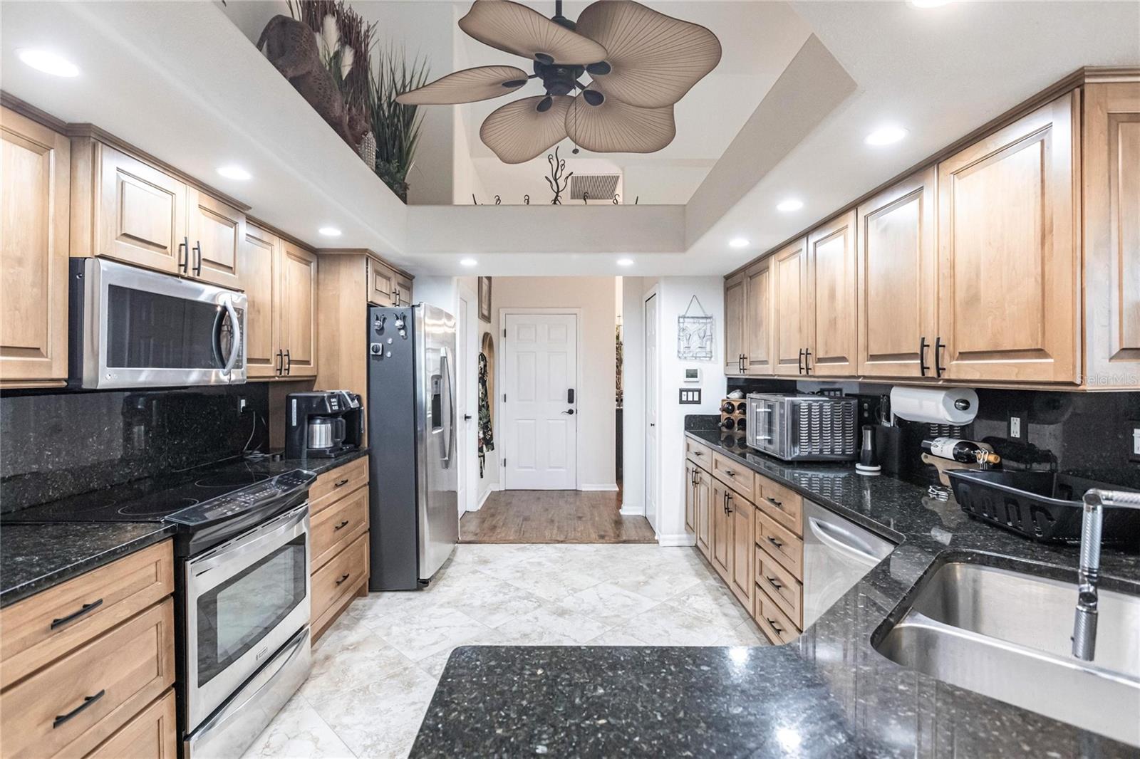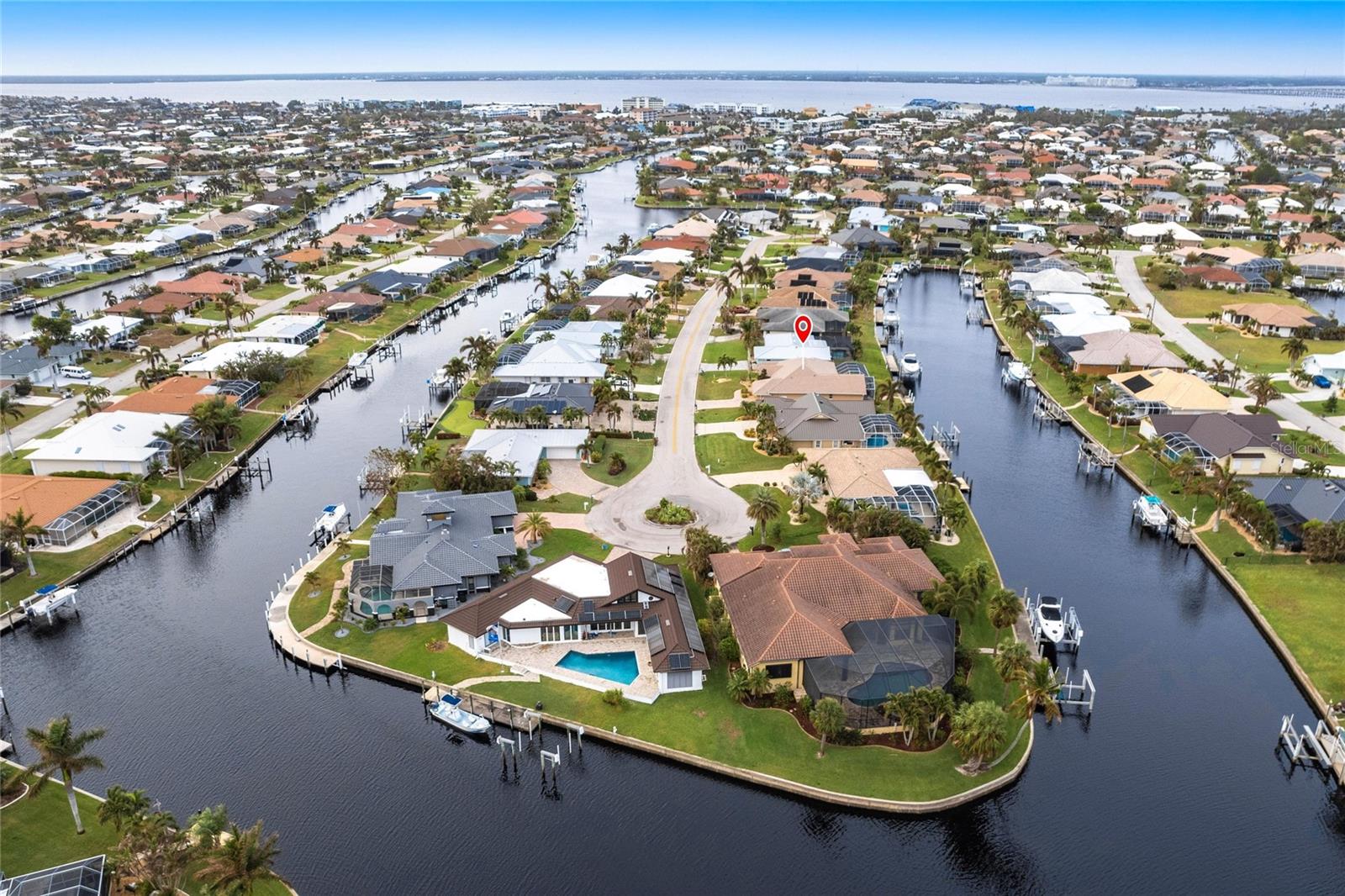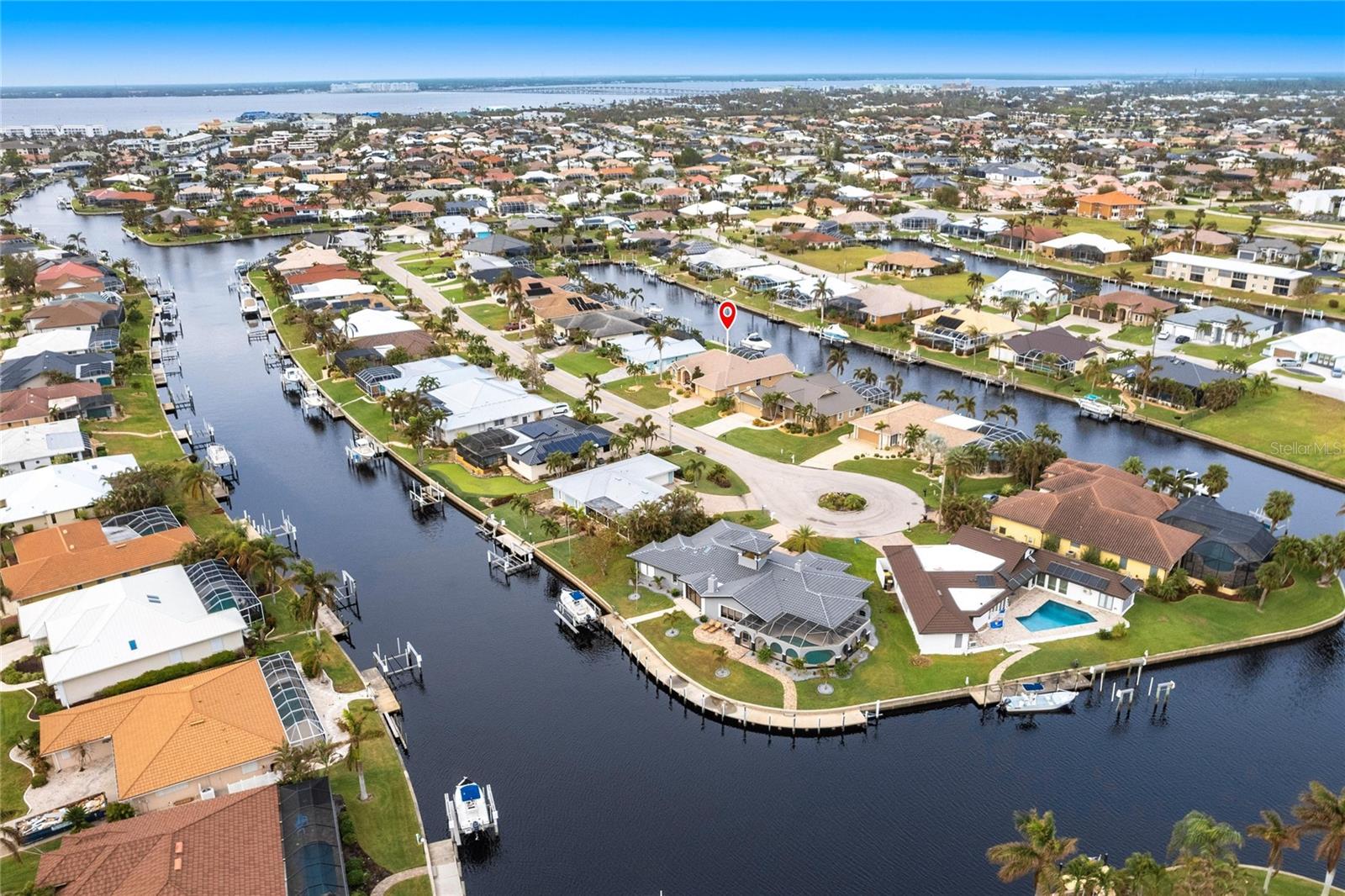 This spectacular home is a boater’s dream! This sailboat-access, waterfront, handicap-accessible pool home with 3 bedrooms and 2 baths offers direct access to beautiful Charlotte Harbor and the Gulf of Mexico. Bring your boat! With a concrete dock, city-maintained seawall, and 77 feet of water frontage, you’re just 10 minutes from open water. Designed to suit all ages, the home features a master bath equipped with grab bars, a comfort-height toilet with raised seat, and a doorless zero-entry shower. The garage includes a lift for wheelchair accessibility and ease of moving heavy items. A ramped lanai provides smooth entry, and a new pool lift offers effortless access in and out of the heated pool. The spacious guest suite accommodates a king-size bed, includes a walk-in closet, private bath also updated with new granite top vanity, hardware/fixtures and bonus room—ideal for a caregiver. With over 2,500 sq ft of living space, there’s room for everyone. Enjoy a living room, family room, dining area, large kitchen with casual dining, and lanai overlooking the water and pool. Invisible pocket sliders in the main living areas connect seamlessly to the lanai, blending indoor and outdoor living. Elegant touches include vaulted and tray ceilings, crown molding, tile and wood-look laminate flooring, accent walls, decorator lighting and fans, and a built-in entertainment center. The chef’s kitchen is a standout with rich wood cabinetry, closet pantry, stainless appliances (including wine fridge), stone countertops and backsplash, and an expansive breakfast bar that opens to the main living areas—perfect for entertaining. The casual dining area offers tranquil views of the pool and waterway, an ideal spot for morning coffee. Retreat to your luxurious master suite, complete with a versatile bonus room, private lanai access, two walk-in closets, and a beautifully updated en suite bath with a jetted soaking tub, walk-in shower, makeup vanity, new fixtures and hardware, and granite-topped wood cabinetry. The extended brick-paved lanai is perfect for relaxing and enjoying serene water views. Additional highlights include new whole-house storm protection, fencing, tile roof, irrigation system, and public water and sewer. Close to beaches, shopping, golf, dining, parks, trails, and boat ramps. Just minutes to historic downtown Punta Gorda and Fishermen’s Village. Quiet waterfront community with every convenience nearby. Claim your piece of Florida paradise!*PLEASE ENJOY THE 3D INTERACTIVE VIRTUAL TOUR ASSOCIATED WITH THIS LISTING