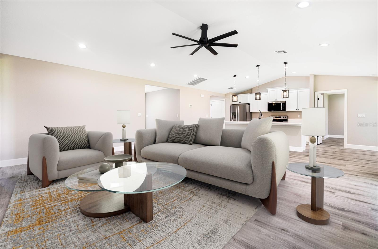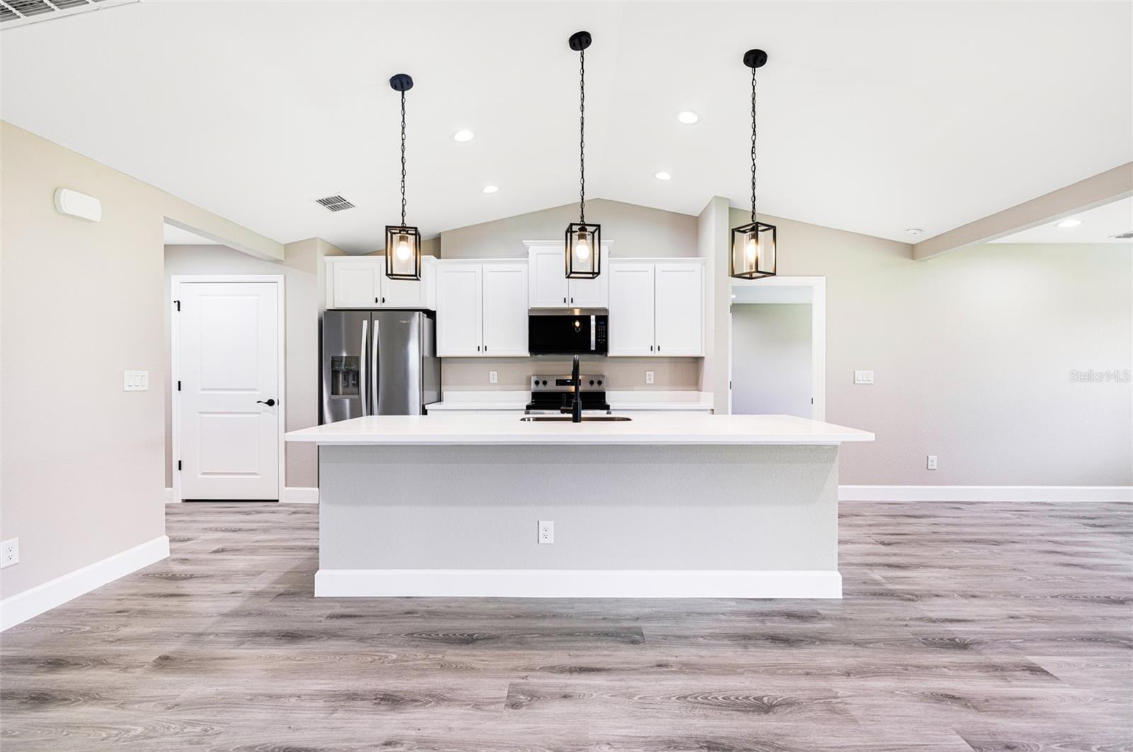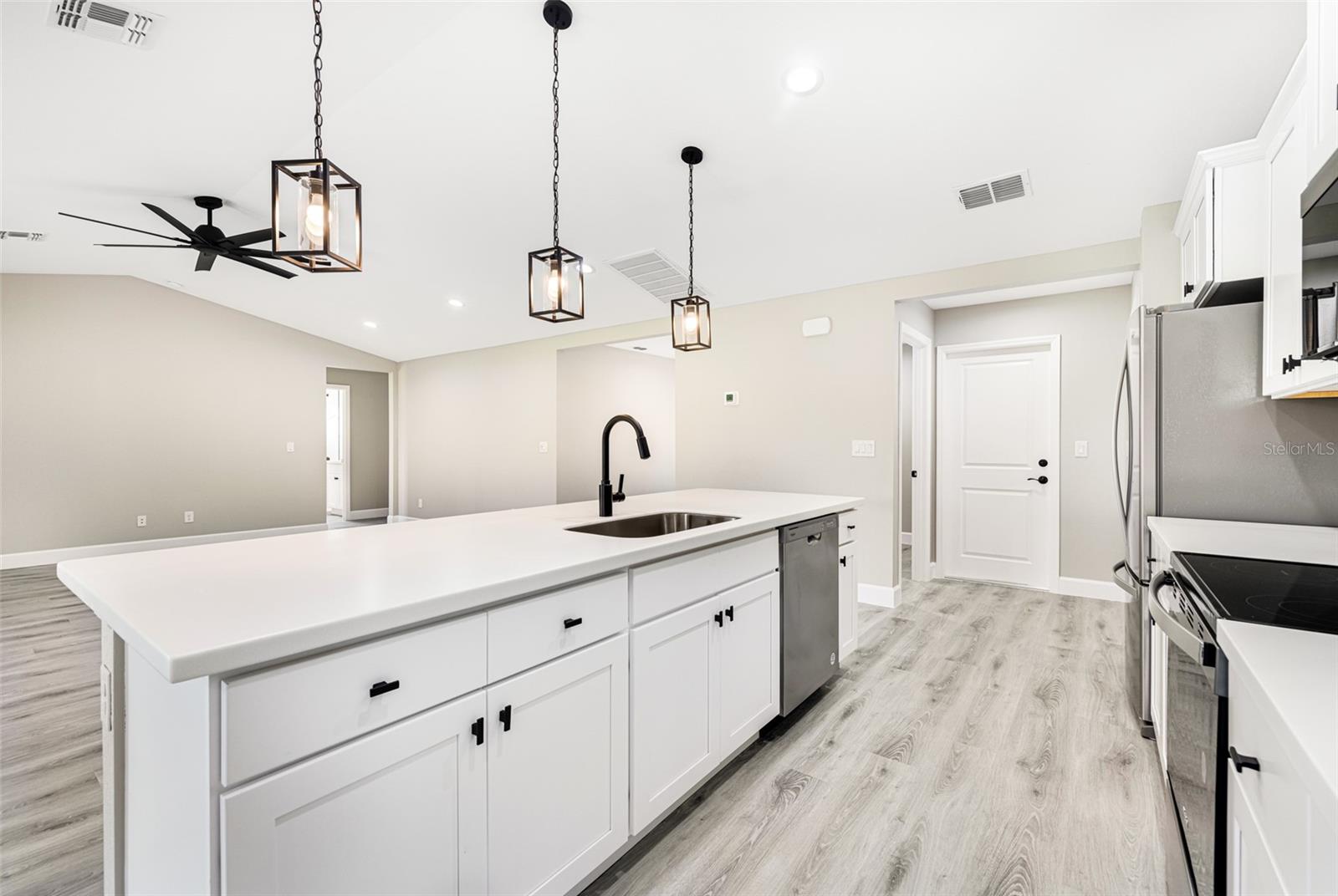 One or more photo(s) has been virtually staged. MOVE IN READY! MOVE IN NOW! NEW CONSTRUCTION OVER 2000 SQ FT on QUIET CUL-DE-SAC 4 SPACIOUS BEDROOMS/ 2 FULL BATHROOMS. MASTER BEDROOM WITH EN SUITE BATH AND DOUBLE SINKS & OVERSIZED SHOWER, HIS AND HER (WALK-IN) CLOSETS. 2 CAR GARAGE. HIGH END FINISHES THROUGHOUT. BEST VALUE DOLLAR FOR DOLLAR IN BURNT STORE VILLAGE COMMUNITY. OPEN FLOOR PLAN PERFECT FOR ENTERTAINING, WHITE KITCHEN, LARGE ISLAND WITH SLEEK COUNTERTOPS, STAINLESS STEEL APPLIANCES, SPACIOUS LAUNDRY ROOM, PRIVATE BACKYARD WITH SCREENED IN LANAI. WON'T LAST SCHEDULE A TOUR TODAY!!!