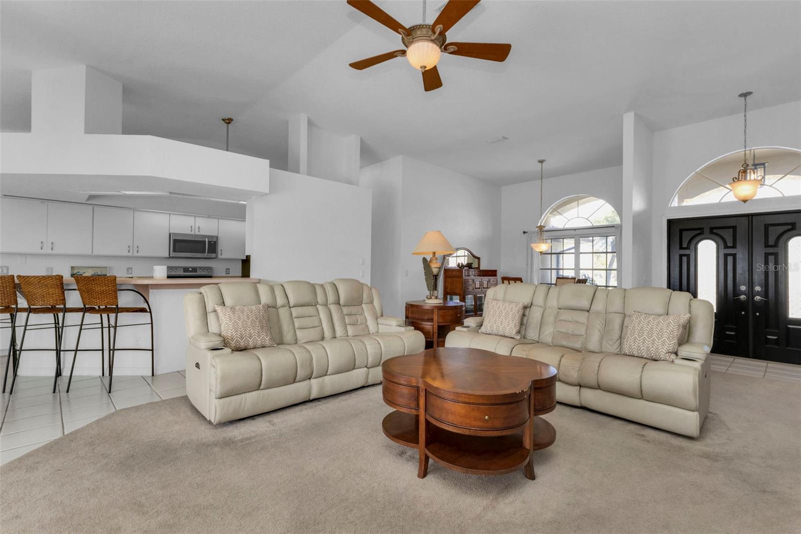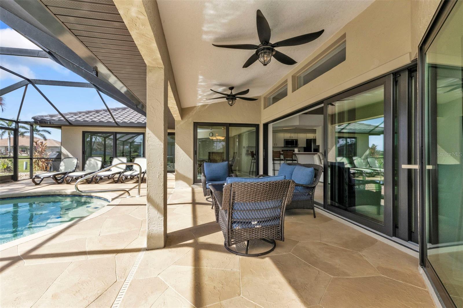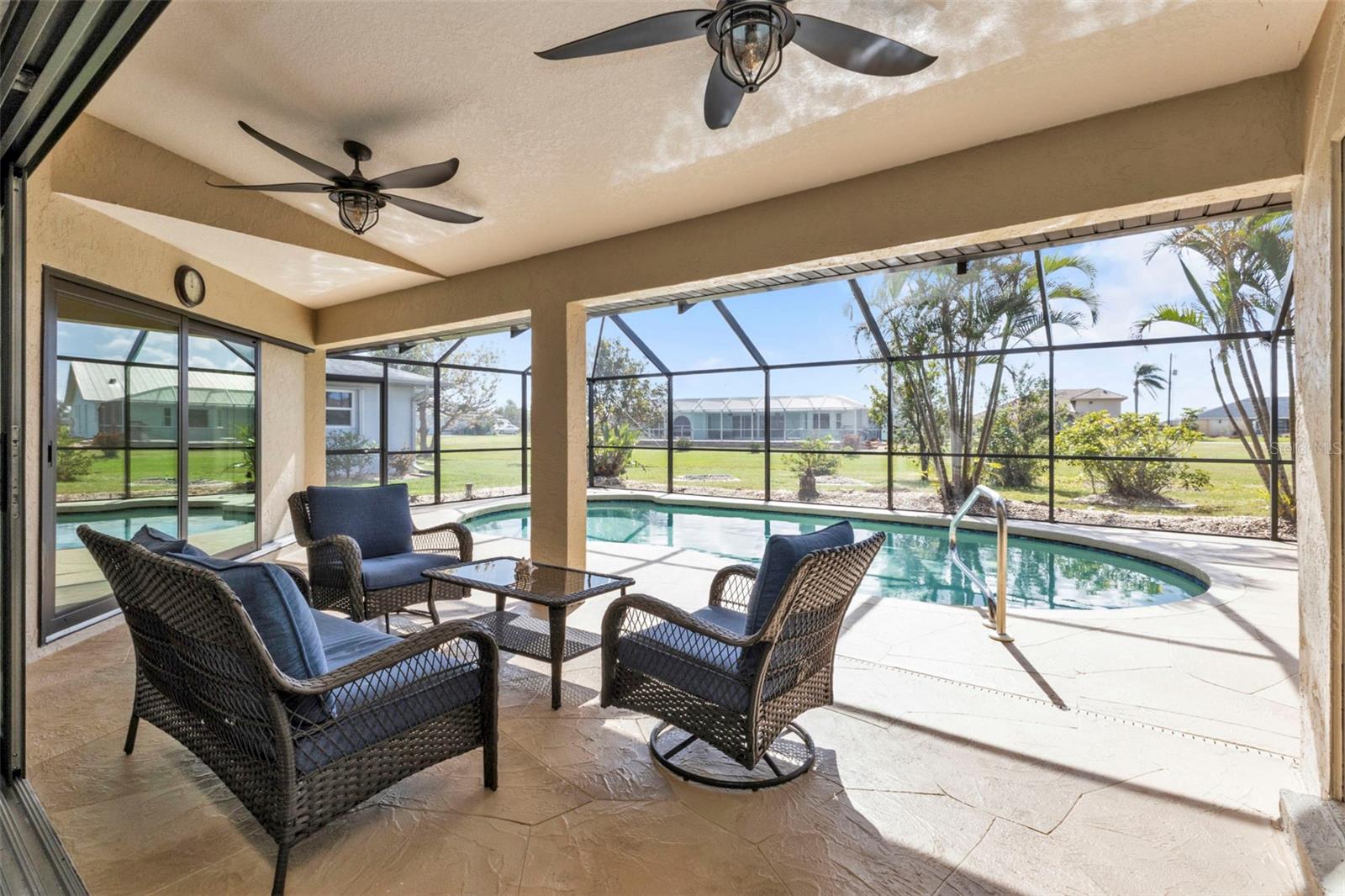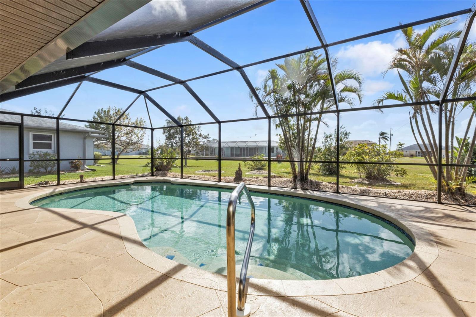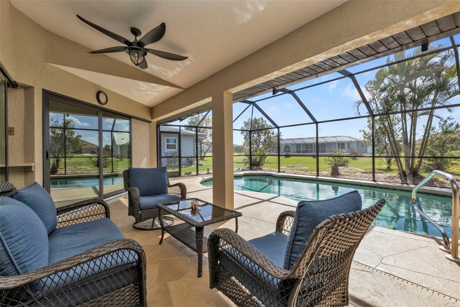 Welcome to the quiet, sought after community of Deep Creek in Punta Gorda, Florida. This beautiful home has great curb appeal. With NEW BARREL TILE ROOF, NEW SOFFITS, FASCIA AND GUTTERS, NEW EXTERIOR PAINT, NEW IMPACT SLIDERS AND A NEW WHOLE HOUSE GENERATOR, this home is move in ready and NOT IN FLOOD ZONE!!! As you enter the NEW double front door, you will see the large living area overlooking the beautiful pool with NEW decking and a NEW POOL CAGE with screened lanai. The New impact hide-away sliders will be great for all your entertaining needs. This beautifully maintained home has 3 bedrooms, 2 baths with an mini split A/C system in the 2 car garage. The garage also has a new hurricane garage door. This split floor plan has opened living area with privacy for your guest rooms and primary bedroom. The primary bedroom is huge! Enough space for your office or sitting area as well as your private ensuite bath. This entire house is protected with a NEW WHOLE HOUSE GENERATOR. The Deep Creek community has a public golf course, dining, shopping and restaurants. Close to I-75 you are close to the Punta Gorda airport, beaches, and boating. PLEASE PUT ON PROVIDED BOOTIES FOR YOUR SHOES. THANK YOU!!