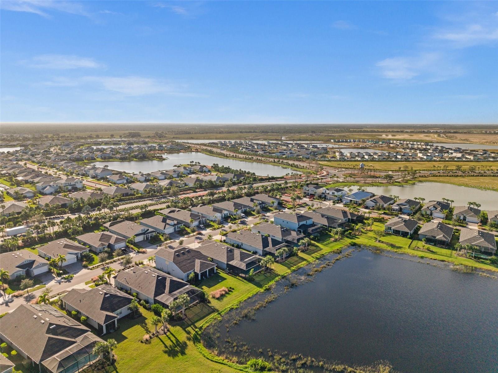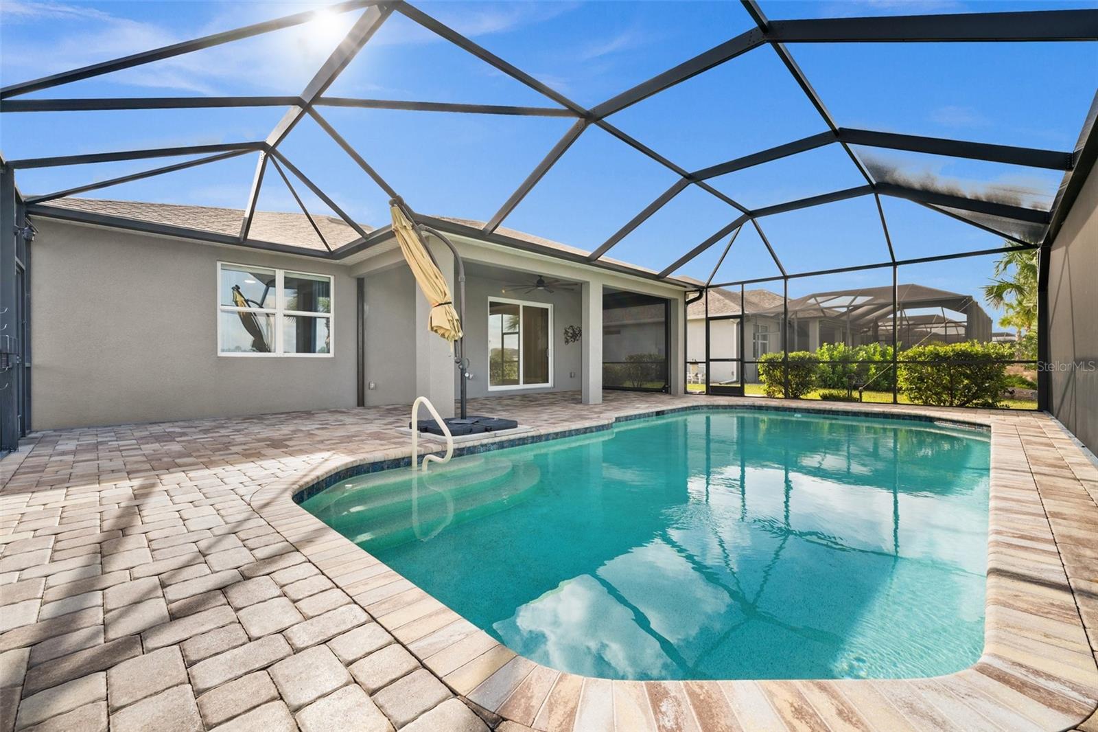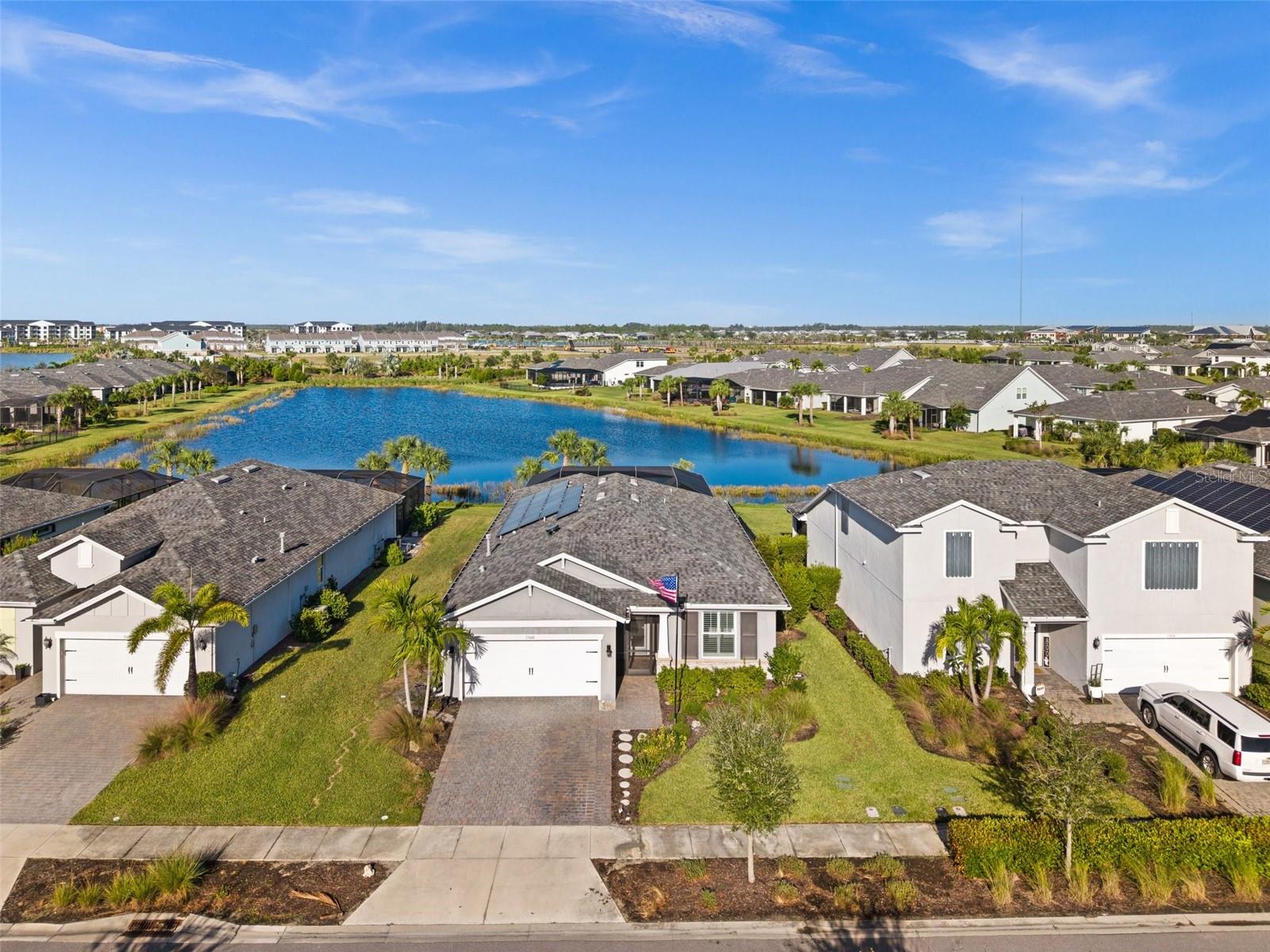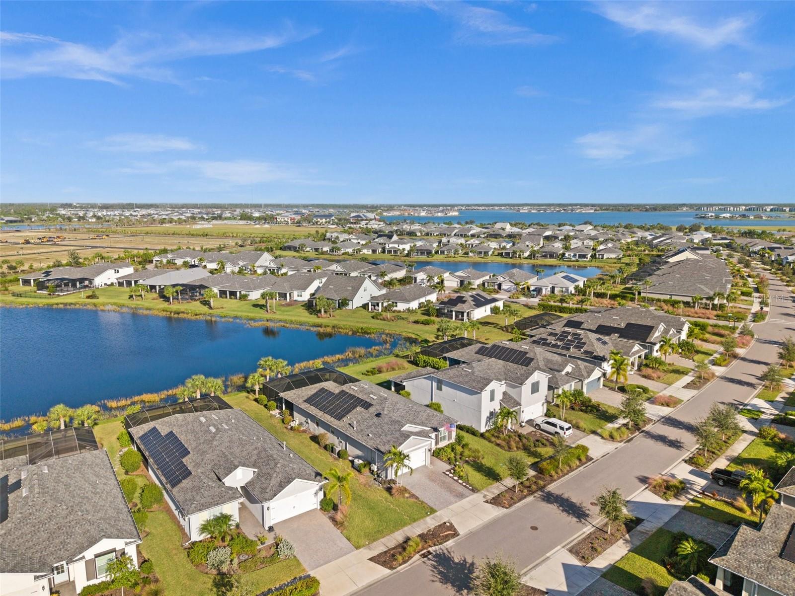 Welcome to your beautiful new home in the sought-after Parkside community at Babcock Ranch, by Pulte Homes. Featuring a custom lanai and pool, with a panoramic lake view, this stunning Oasis floorplan offers virtually every option available from the builder, as well as a long list of after-market options. Live comfortably and care-free with features like 42" cabinets, 8' doors, 9'4" ceilings, a custom gas-heated pool, custom closets, and a split-system AC unit in the garage, just to name a few. Don't fret over SW Florida's storms with features like Impact windows and doors, and a whole-house Generac generator. The full-capacity solar roof panels have a lifetime warranty! Babcock Ranch is 32' above sea level, and NO flood insurance is required on this great home. The owners have installed electric hurricane screens on the enclosed lanai, so storm prep is a breeze with the push of a button! Have dogs? No problem, as this property has a fenced section of the side yard for your pooches to enjoy the sunshine safely. There's even a Murphy bed in the custom den, which can double as a guest room when not serving as your home office! Parkside is a small, intimate community, located conveniently near Founder's Square, where you can enjoy Friday Night Food Trucks, art festivals, live music, and fine dining just a short golf cart ride from your door. Enjoy all that Babcock Ranch has to offer, with lakes, hiking trails, playgrounds, and dog parks, or meet your neighbors for a get-together at one of the neighborhood pools. If you'd rather stay home and unwind, simply watch the amazing sunsets from your own lanai and pool, featuring a full-width custom panorama screen. Call today, and schedule your own private tour!