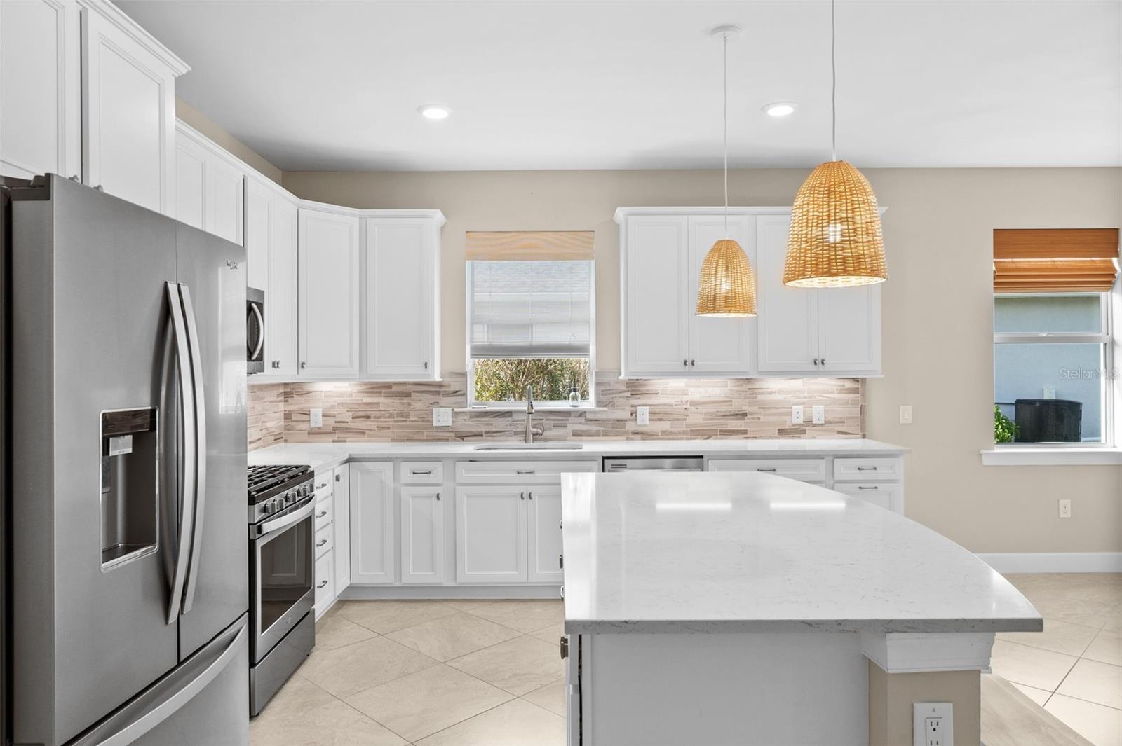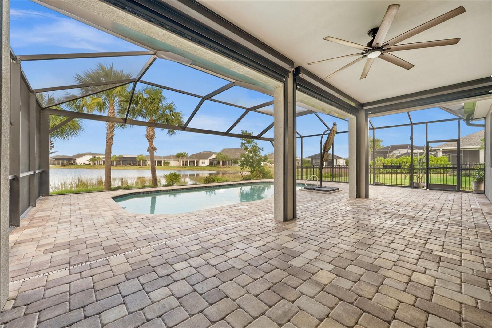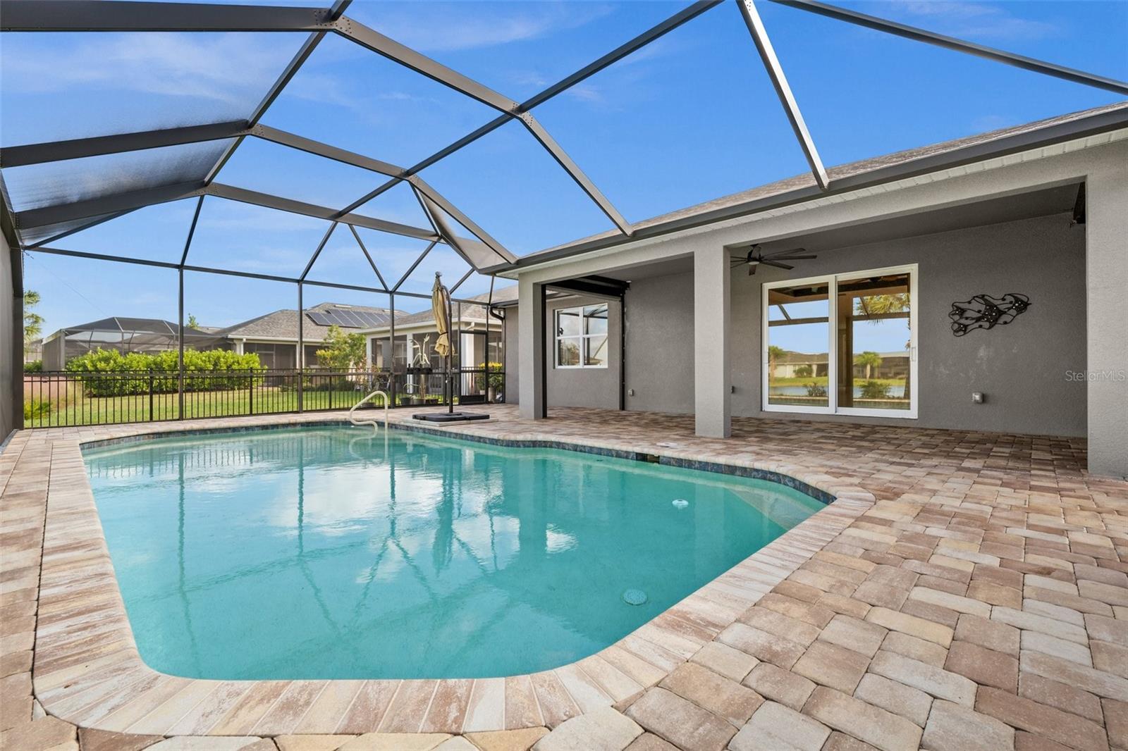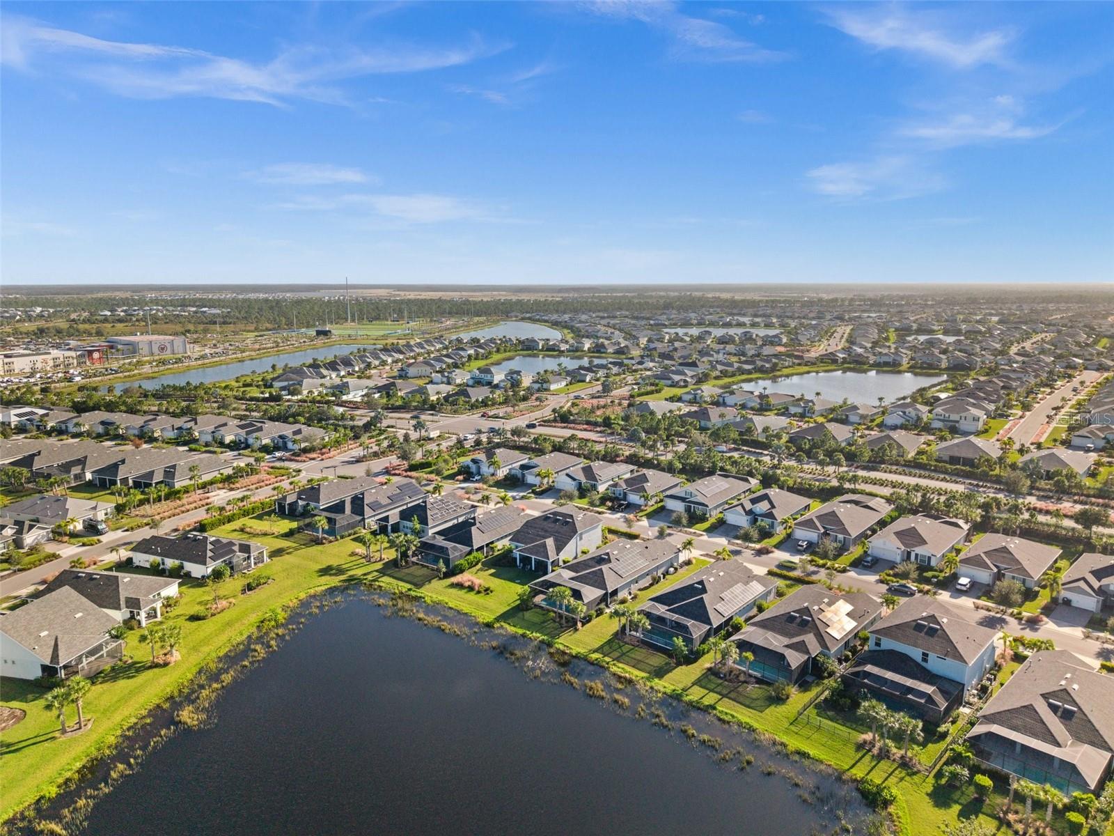 Welcome to your beautiful new home in the sought-after Parkside community at Babcock Ranch, by Pulte Homes. Featuring a custom lanai and pool, with a panoramic lake view, this stunning Oasis floorplan offers virtually every option available from the builder, as well as a long list of after-market options. Live comfortably and care-free with features like 42" cabinets, 8' doors, 9'4" ceilings, a custom gas-heated pool, custom closets, and a split-system AC unit in the garage, just to name a few. Don't fret over SW Florida's storms with features like Impact windows and doors, and a whole-house Generac generator. The full-capacity solar roof panels have a lifetime warranty! Babcock Ranch is 32' above sea level, and NO flood insurance is required on this great home. The owners have installed electric hurricane screens on the enclosed lanai, so storm prep is a breeze with the push of a button! Have dogs? No problem, as this property has a fenced section of the side yard for your pooches to enjoy the sunshine safely. There's even a Murphy bed in the custom den, which can double as a guest room when not serving as your home office! Parkside is a small, intimate community, located conveniently near Founder's Square, where you can enjoy Friday Night Food Trucks, art festivals, live music, and fine dining just a short golf cart ride from your door. Enjoy all that Babcock Ranch has to offer, with lakes, hiking trails, playgrounds, and dog parks, or meet your neighbors for a get-together at one of the neighborhood pools. If you'd rather stay home and unwind, simply watch the amazing sunsets from your own lanai and pool, featuring a full-width custom panorama screen. Call today, and schedule your own private tour!