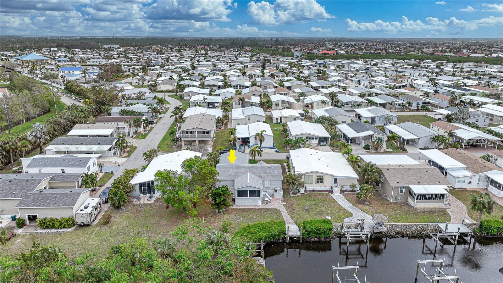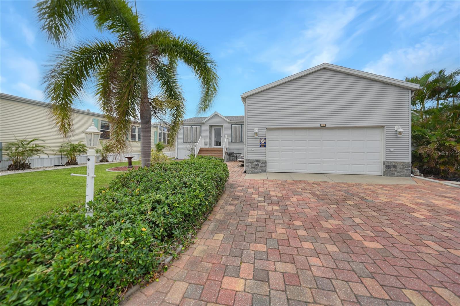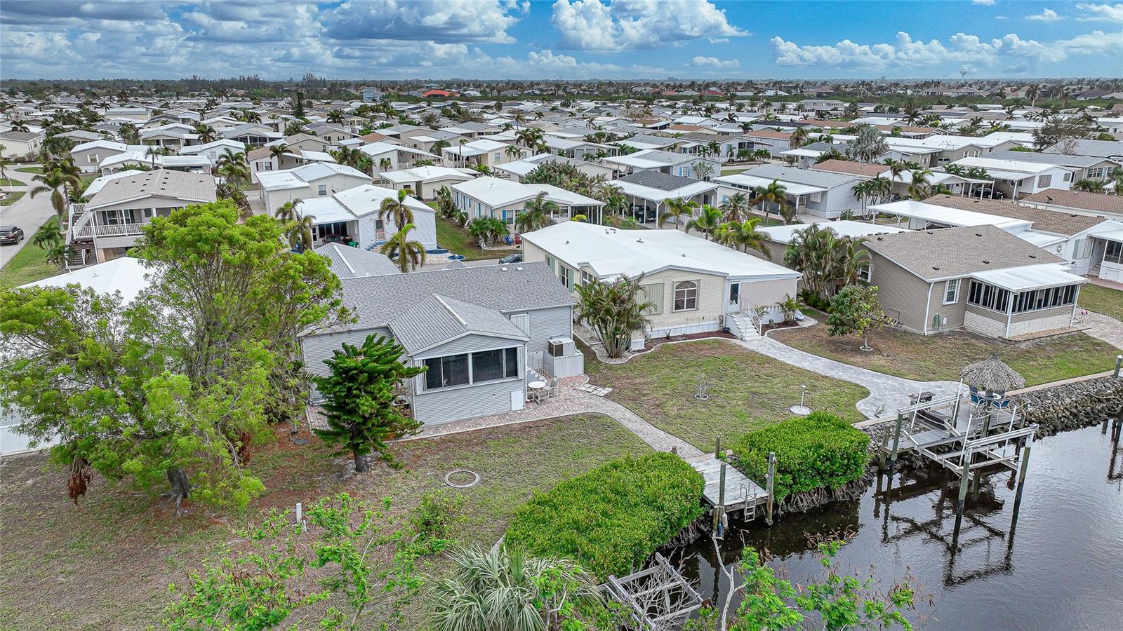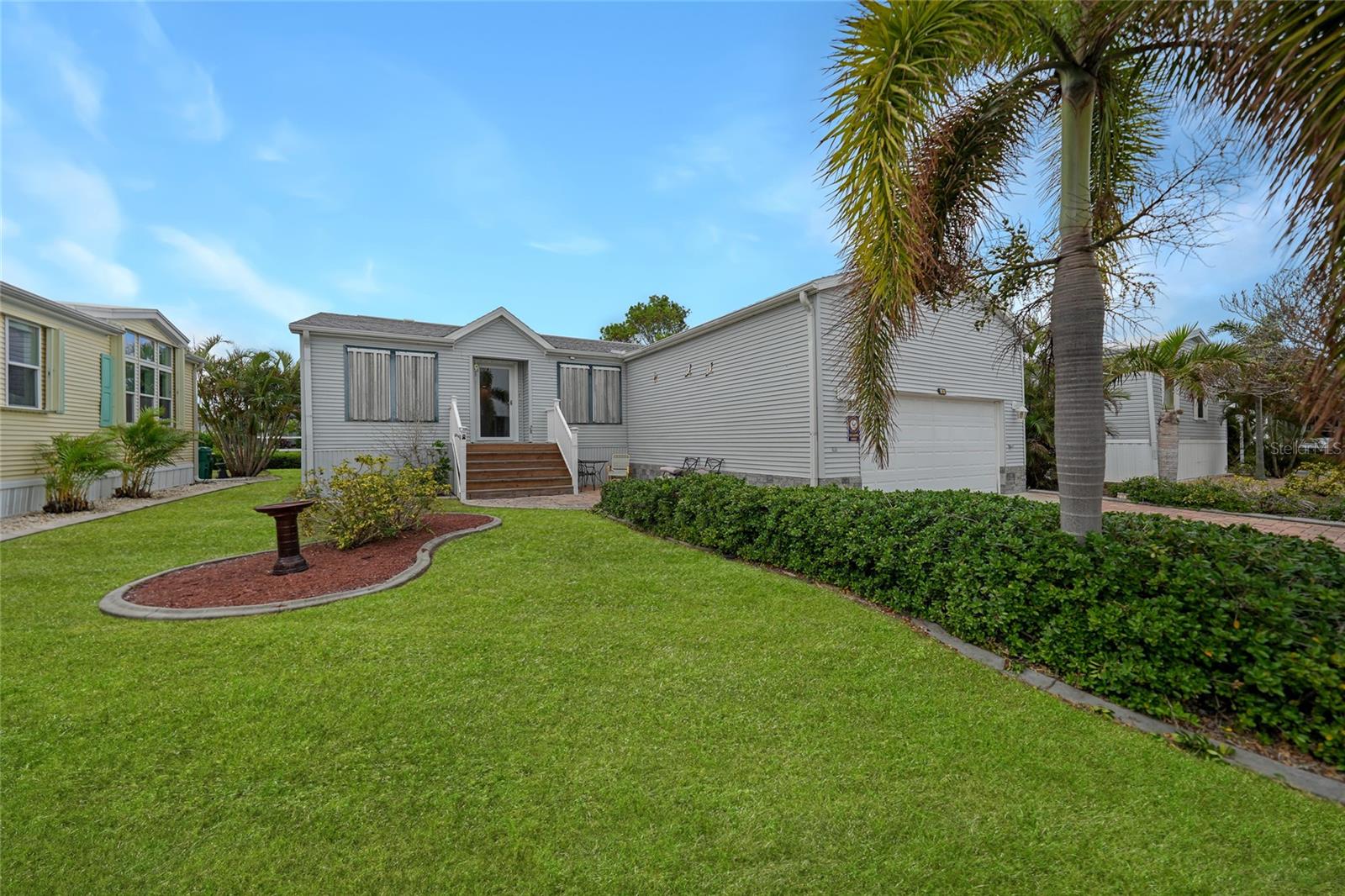 Welcome to your piece of paradise! NO FLOOD OR STORM DAMAGE. This spacious waterfront 1,728 sq. ft. Palm Harbor model home, built in 2007, is located in the highly sought-after, resident-owned, gated community of Windmill Village in Punta Gorda. Offering 3 bedrooms, 2 bathrooms, and a wealth of features, this home sits on a generous oversized lot with direct access to the serene Tarpon Canal. Step inside to discover an open floor plan with a welcoming living room, dining area, and a beautifully appointed kitchen. The home features drywall and crown molding throughout, creating a polished and refined atmosphere. In 2023, the home was updated with a new roof and new vinyl siding for peace of mind. The kitchen is a chef's dream, with a stunning decorative tile backsplash, stainless steel appliances, ample cabinetry, and a tile floor for easy maintenance. A large pantry ensures plenty of storage space. Laundry room is located off the kitchen and has space for a chest freezer. The expansive primary bedroom easily accommodates a king-size bed and boasts a massive 5.5 x 7.5 walk-in closet, offering an abundance of storage. The en-suite primary bath is a luxurious retreat with decorative ceramic tile, double sinks, and a multi-head shower with six shower heads—perfect for ultimate relaxation. The second and third bedrooms are generously sized and can each comfortably fit a queen-size bed, with ample closet space to match. Enjoy the tranquil waterfront view from your 16 x 18 enclosed lanai, a perfect spot for your morning coffee or evening cocktail. This air-conditioned space is equipped with an 18,000 BTU mini-split unit, providing year-round comfort and new plush carpet. For those who need extra storage, this home delivers! Inside, you'll find plenty of storage, and for even more space, the 2.5-car garage (24' deep x 22' across) is fully enclosed, offering ample room for your vehicles and other belongings. Fish from your dock, or take a trip out to the Harbor or Gulf. Windmill Village offers a full range of amenities to support an active, social lifestyle, including two private marinas, a boat ramp, trailer storage, horseshoe pits, shuffleboard, bocce ball, billiards, indoor pickleball courts, and a large community center with a variety of clubs. The recently built Pavilion by the heated pool is an ideal spot for gatherings and events. Please note, the purchase price does not include the $20,285 Buy-In Share and Bond, which is refundable upon resale.