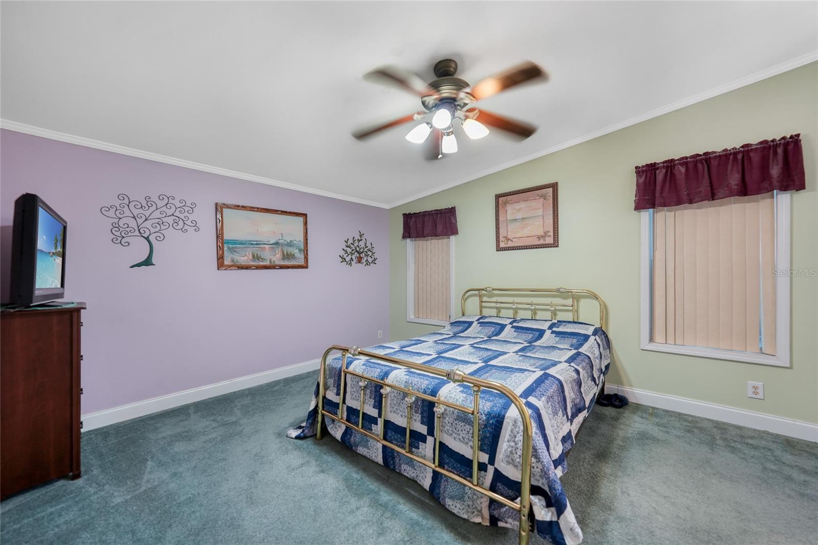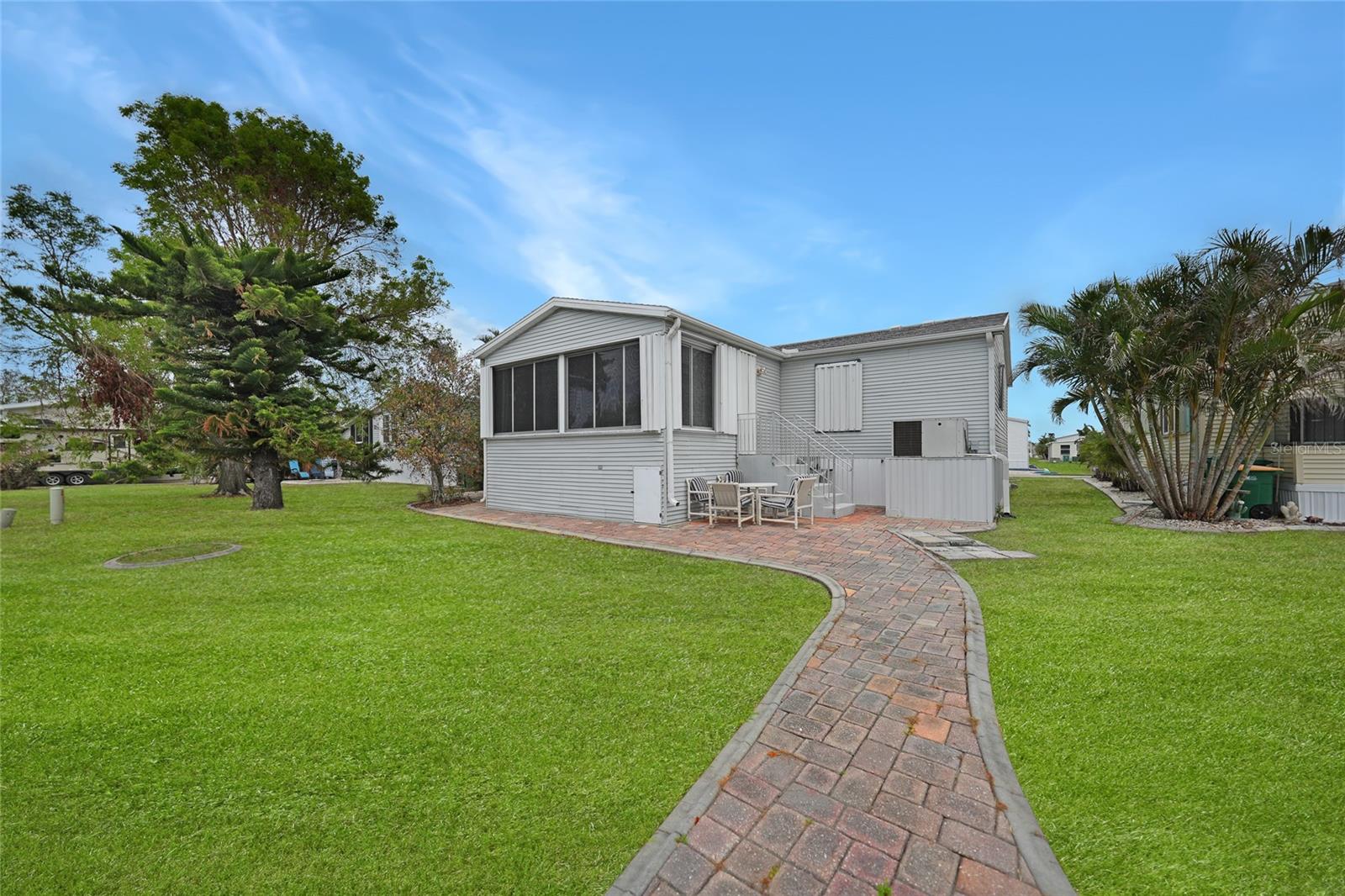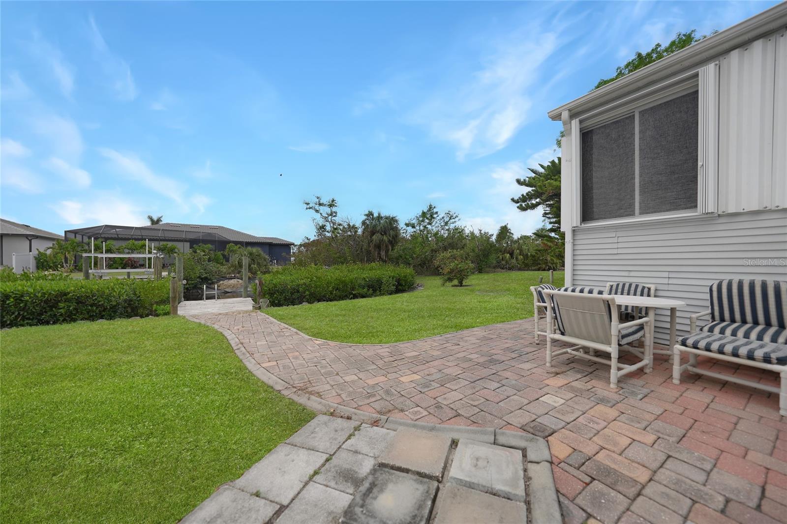 Welcome to your piece of paradise! NO FLOOD OR STORM DAMAGE. This spacious waterfront 1,728 sq. ft. Palm Harbor model home, built in 2007, is located in the highly sought-after, resident-owned, gated community of Windmill Village in Punta Gorda. Offering 3 bedrooms, 2 bathrooms, and a wealth of features, this home sits on a generous oversized lot with direct access to the serene Tarpon Canal. Step inside to discover an open floor plan with a welcoming living room, dining area, and a beautifully appointed kitchen. The home features drywall and crown molding throughout, creating a polished and refined atmosphere. In 2023, the home was updated with a new roof and new vinyl siding for peace of mind. The kitchen is a chef's dream, with a stunning decorative tile backsplash, stainless steel appliances, ample cabinetry, and a tile floor for easy maintenance. A large pantry ensures plenty of storage space. Laundry room is located off the kitchen and has space for a chest freezer. The expansive primary bedroom easily accommodates a king-size bed and boasts a massive 5.5 x 7.5 walk-in closet, offering an abundance of storage. The en-suite primary bath is a luxurious retreat with decorative ceramic tile, double sinks, and a multi-head shower with six shower heads—perfect for ultimate relaxation. The second and third bedrooms are generously sized and can each comfortably fit a queen-size bed, with ample closet space to match. Enjoy the tranquil waterfront view from your 16 x 18 enclosed lanai, a perfect spot for your morning coffee or evening cocktail. This air-conditioned space is equipped with an 18,000 BTU mini-split unit, providing year-round comfort and new plush carpet. For those who need extra storage, this home delivers! Inside, you'll find plenty of storage, and for even more space, the 2.5-car garage (24' deep x 22' across) is fully enclosed, offering ample room for your vehicles and other belongings. Fish from your dock, or take a trip out to the Harbor or Gulf. Windmill Village offers a full range of amenities to support an active, social lifestyle, including two private marinas, a boat ramp, trailer storage, horseshoe pits, shuffleboard, bocce ball, billiards, indoor pickleball courts, and a large community center with a variety of clubs. The recently built Pavilion by the heated pool is an ideal spot for gatherings and events. Please note, the purchase price does not include the $20,285 Buy-In Share and Bond, which is refundable upon resale.