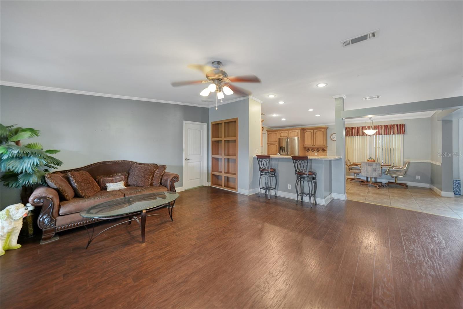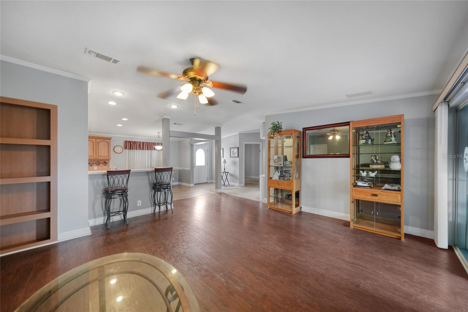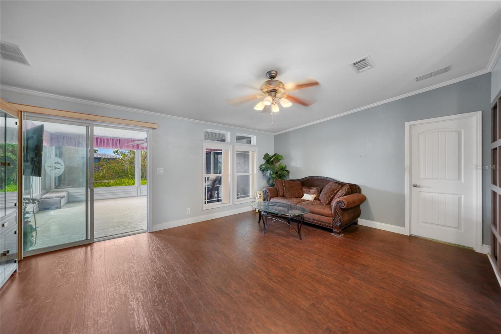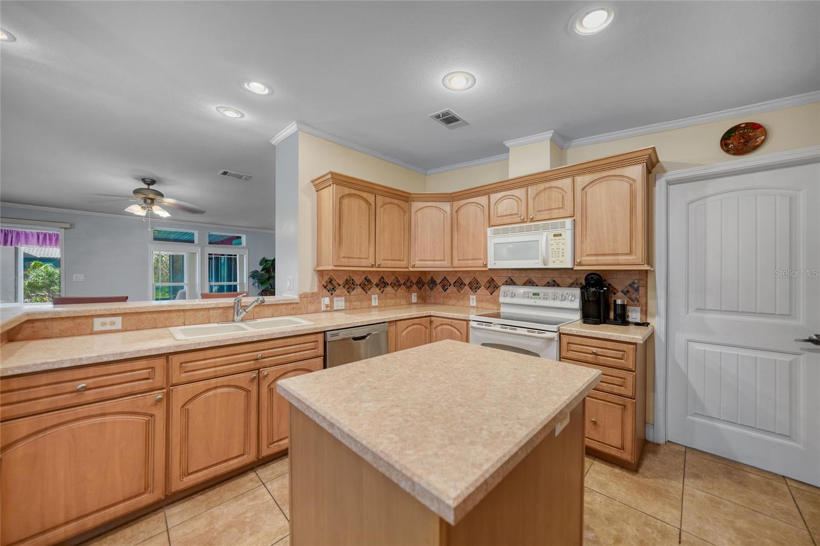 Welcome to your piece of paradise! NO FLOOD OR STORM DAMAGE. This spacious waterfront 1,728 sq. ft. Palm Harbor model home, built in 2007, is located in the highly sought-after, resident-owned, gated community of Windmill Village in Punta Gorda. Offering 3 bedrooms, 2 bathrooms, and a wealth of features, this home sits on a generous oversized lot with direct access to the serene Tarpon Canal. Step inside to discover an open floor plan with a welcoming living room, dining area, and a beautifully appointed kitchen. The home features drywall and crown molding throughout, creating a polished and refined atmosphere. In 2023, the home was updated with a new roof and new vinyl siding for peace of mind. The kitchen is a chef's dream, with a stunning decorative tile backsplash, stainless steel appliances, ample cabinetry, and a tile floor for easy maintenance. A large pantry ensures plenty of storage space. Laundry room is located off the kitchen and has space for a chest freezer. The expansive primary bedroom easily accommodates a king-size bed and boasts a massive 5.5 x 7.5 walk-in closet, offering an abundance of storage. The en-suite primary bath is a luxurious retreat with decorative ceramic tile, double sinks, and a multi-head shower with six shower heads—perfect for ultimate relaxation. The second and third bedrooms are generously sized and can each comfortably fit a queen-size bed, with ample closet space to match. Enjoy the tranquil waterfront view from your 16 x 18 enclosed lanai, a perfect spot for your morning coffee or evening cocktail. This air-conditioned space is equipped with an 18,000 BTU mini-split unit, providing year-round comfort and new plush carpet. For those who need extra storage, this home delivers! Inside, you'll find plenty of storage, and for even more space, the 2.5-car garage (24' deep x 22' across) is fully enclosed, offering ample room for your vehicles and other belongings. Fish from your dock, or take a trip out to the Harbor or Gulf. Windmill Village offers a full range of amenities to support an active, social lifestyle, including two private marinas, a boat ramp, trailer storage, horseshoe pits, shuffleboard, bocce ball, billiards, indoor pickleball courts, and a large community center with a variety of clubs. The recently built Pavilion by the heated pool is an ideal spot for gatherings and events. Please note, the purchase price does not include the $20,285 Buy-In Share and Bond, which is refundable upon resale.