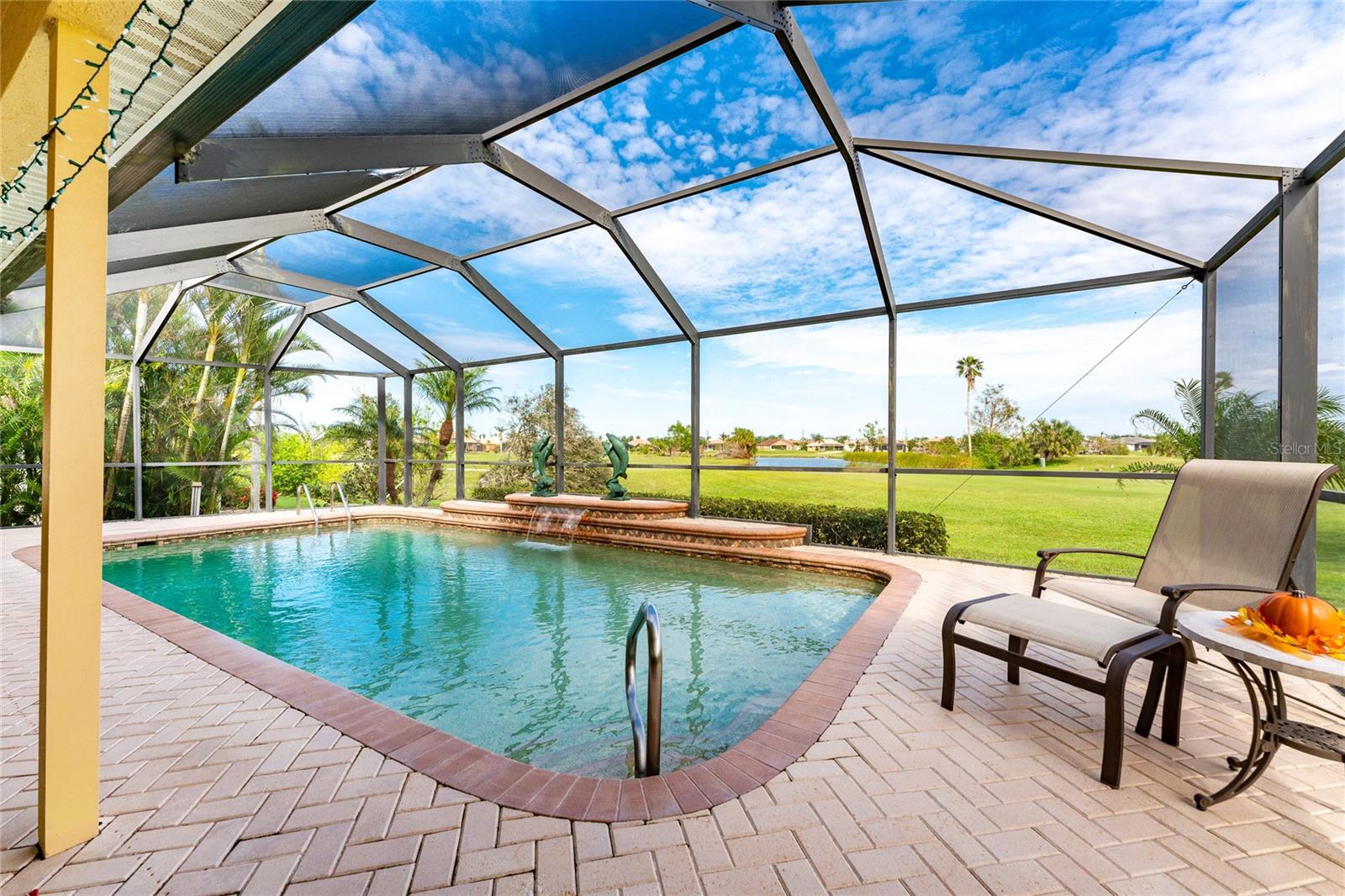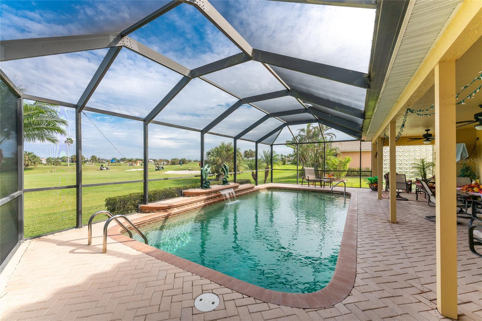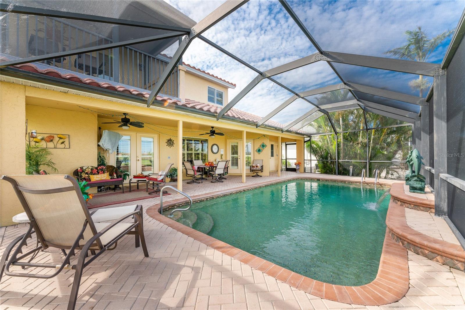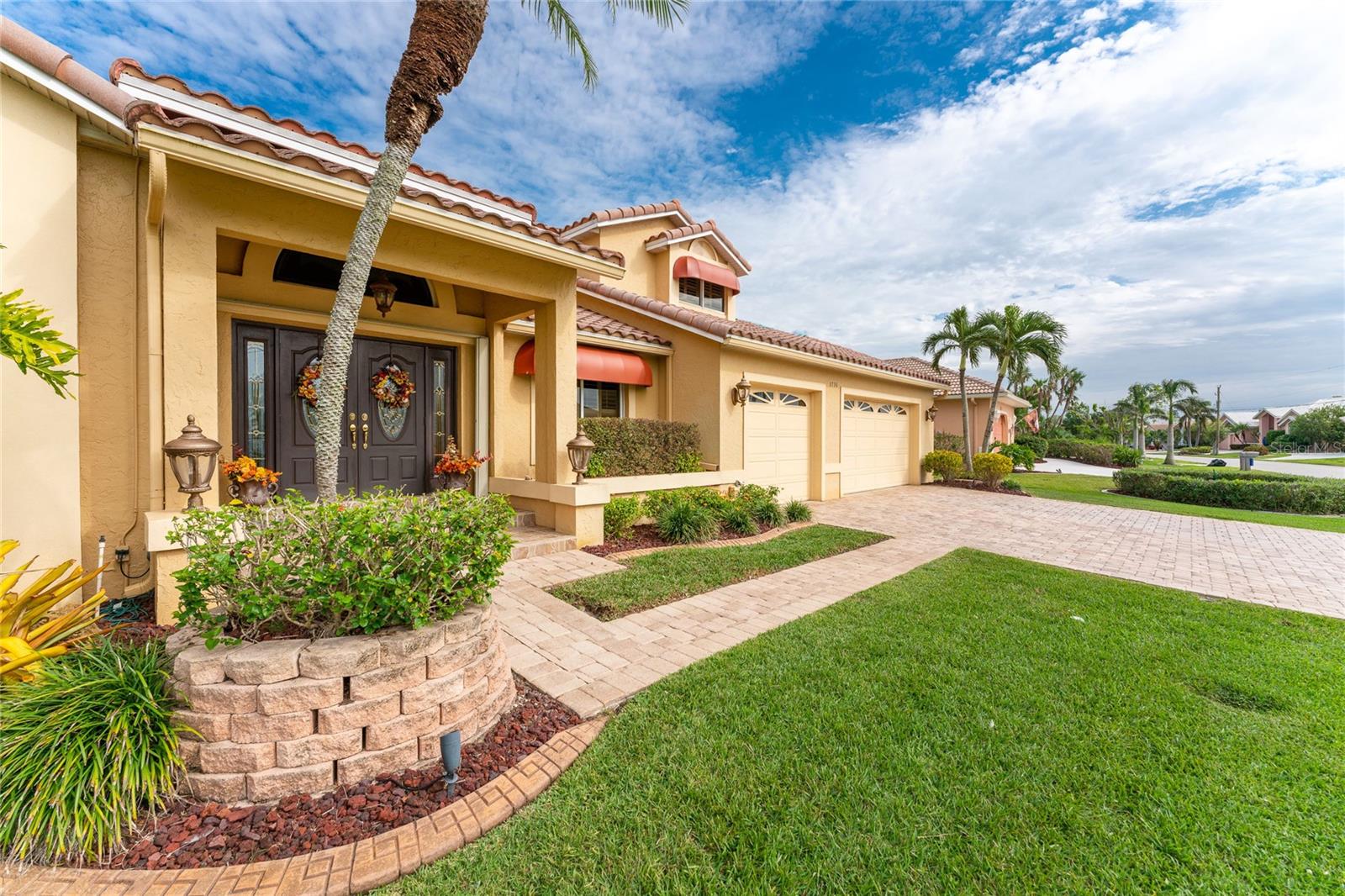 Stunning 3 Bedroom, 3.5 Bathroom plus Loft Bonus Room and 3 Car Garage with cabinets. Located on Twin Isles GOLF COURSE in desirable deed restricted BURNT STORE ISLES. *** TURNKEY FURNISHED*** This light and bright 2 story home offers an open and split bedroom floor plan with Great Room, Family Room with wood burning fireplace, formal Dining Room, well appointed Kitchen, Inside Laundry, second floor large Loft Bonus Room. Beautiful design features throughout. The Kitchen features a wood cabinet, granite counters, walk in pantry, breakfast bar, center island and dining area with wet bar. The Inside Laundry Room has a washer, dryer and laundry tub. There is a half bath off the Kitchen. The Master Bedroom suite on the second floor offers wood flooring, TWO walk in closets, private 17x7 screened balcony with awesome golf course views, wood burning fireplace and private bathroom with dual sinks, jetted tub, separate walk in shower. There is a 6x6 sewing room with wood floor. The guest bedrooms are also spacious, have wood floors and one bedroom has a walk in closet, the other has a double closet. One of the guest bedrooms is on the second floor. The second floor loft bonus room has an area used as an office and the other space is a fitness area. Large storage space. Your living space extends to the screened lanai and pool area with paver deck, large covered area, outdoor shower, outside bath access and ingound pool with fountain. Fabulous GOLF COURSE VIEW! Other features include: double door entry with transom window, plantation shutters, barrel tile roof, brick paver driveway and walkway. Utilities are city water and sewer. Per Sellers: ***NEW ROOF November 2023, NEW A/C 2019, NEW Refrigerator 2018, NEW Washer and Dryer 2017, NEW HWH (garage) 2022, NEW HWH (second floor) 2017. This home is minutes from Golf, Fishermen's Village and historic downtown Punta Gorda shopping, dining, medical care, waterfront parks, boat ramps, fishing piers, Charlotte Harbor Event Center, art galleries, walking and biking paths, weekend farmers markets, events and more!