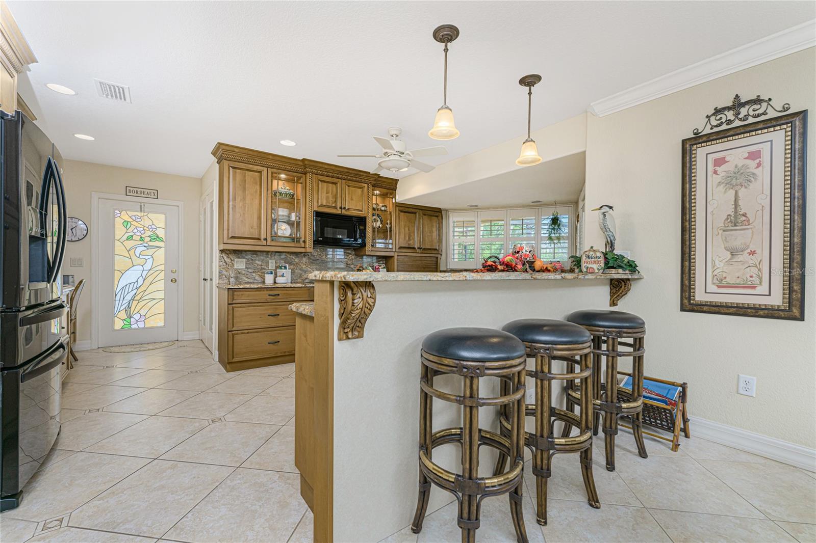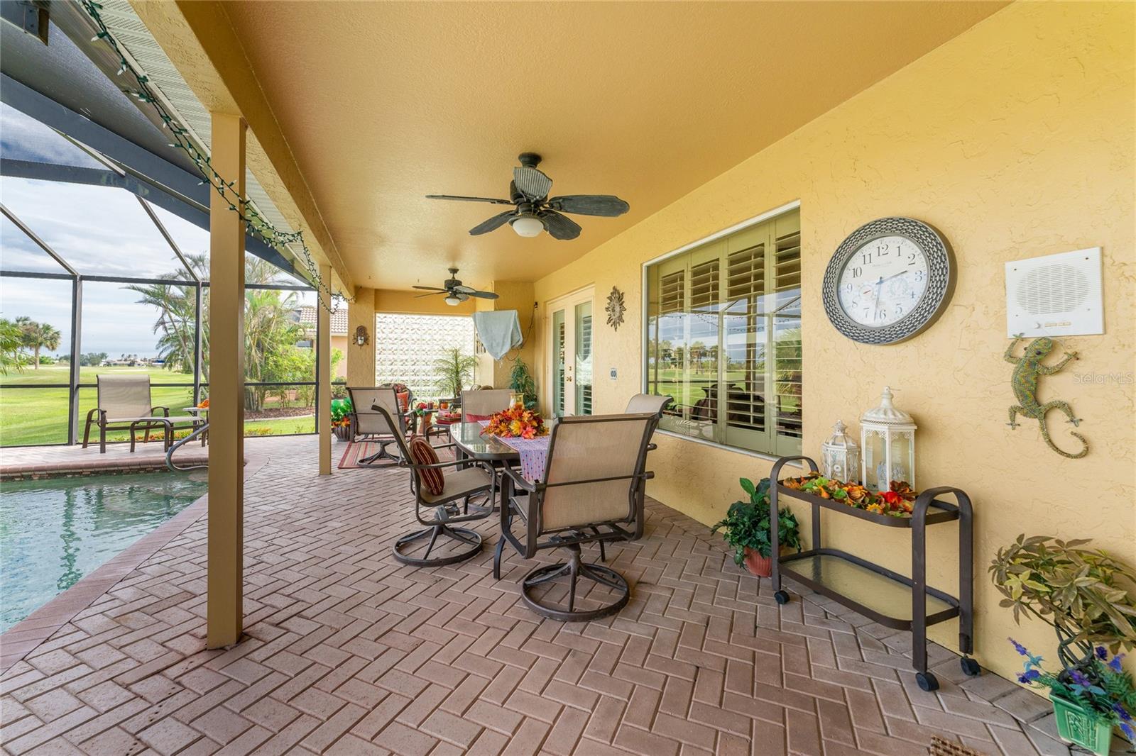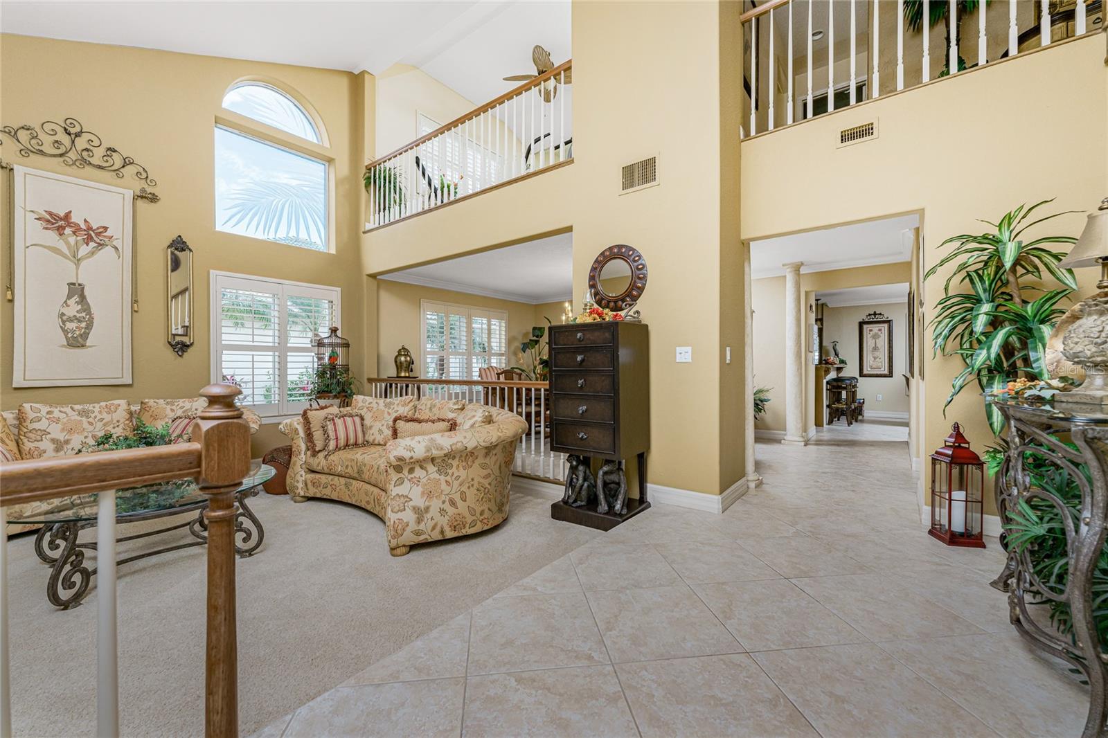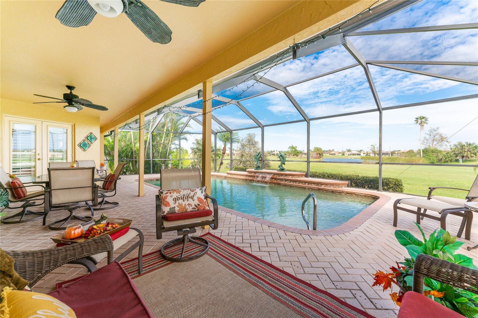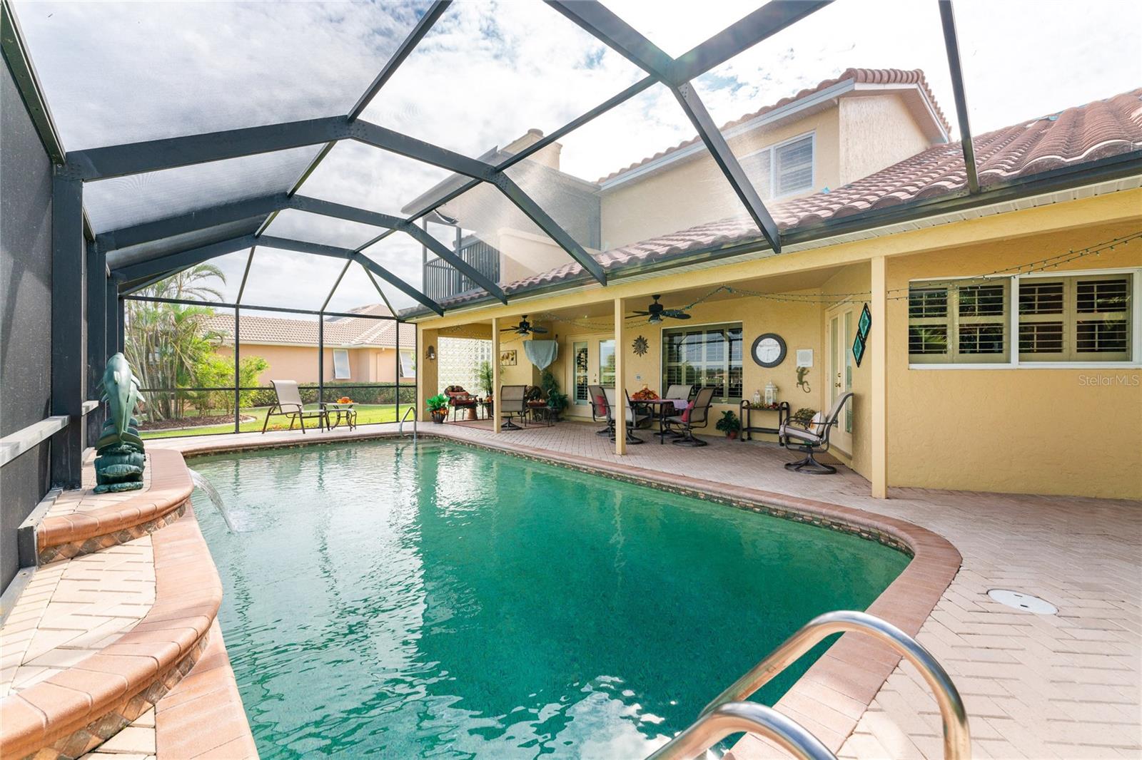 Stunning 3 Bedroom, 3.5 Bathroom plus Loft Bonus Room and 3 Car Garage with cabinets. Located on Twin Isles GOLF COURSE in desirable deed restricted BURNT STORE ISLES. *** TURNKEY FURNISHED*** This light and bright 2 story home offers an open and split bedroom floor plan with Great Room, Family Room with wood burning fireplace, formal Dining Room, well appointed Kitchen, Inside Laundry, second floor large Loft Bonus Room. Beautiful design features throughout. The Kitchen features a wood cabinet, granite counters, walk in pantry, breakfast bar, center island and dining area with wet bar. The Inside Laundry Room has a washer, dryer and laundry tub. There is a half bath off the Kitchen. The Master Bedroom suite on the second floor offers wood flooring, TWO walk in closets, private 17x7 screened balcony with awesome golf course views, wood burning fireplace and private bathroom with dual sinks, jetted tub, separate walk in shower. There is a 6x6 sewing room with wood floor. The guest bedrooms are also spacious, have wood floors and one bedroom has a walk in closet, the other has a double closet. One of the guest bedrooms is on the second floor. The second floor loft bonus room has an area used as an office and the other space is a fitness area. Large storage space. Your living space extends to the screened lanai and pool area with paver deck, large covered area, outdoor shower, outside bath access and ingound pool with fountain. Fabulous GOLF COURSE VIEW! Other features include: double door entry with transom window, plantation shutters, barrel tile roof, brick paver driveway and walkway. Utilities are city water and sewer. Per Sellers: ***NEW ROOF November 2023, NEW A/C 2019, NEW Refrigerator 2018, NEW Washer and Dryer 2017, NEW HWH (garage) 2022, NEW HWH (second floor) 2017. This home is minutes from Golf, Fishermen's Village and historic downtown Punta Gorda shopping, dining, medical care, waterfront parks, boat ramps, fishing piers, Charlotte Harbor Event Center, art galleries, walking and biking paths, weekend farmers markets, events and more!