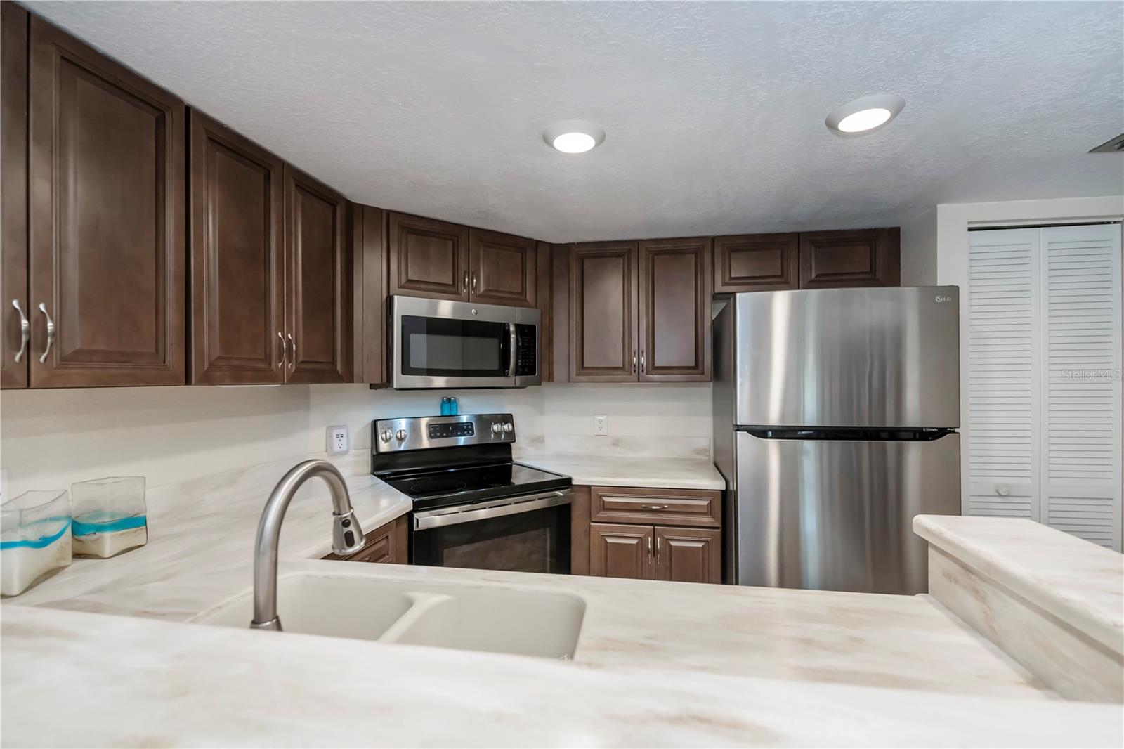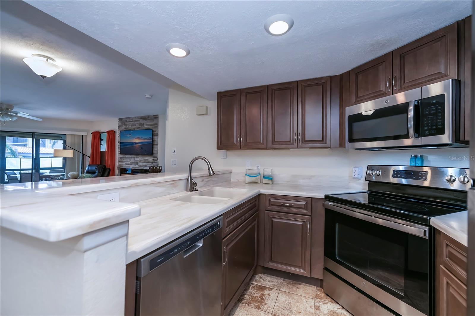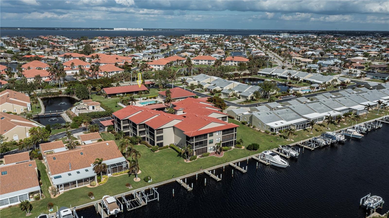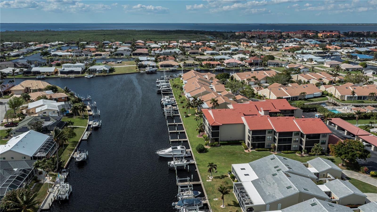 MOTIVATED SELLER! TURNKEY FURNISHED 2/2 villa style condo with an open air garage in the lush saltwaterfront community DOLPIN CLUB in Punta Gorda Isles! This upgraded beauty is an EXCEPTIONALLY PRIVATE GROUND FLOOR END UNIT VILLA STYLE 2/2/1 with lush RESORT FEEL VIEWS plus its own separate deeded covered parking in the luxurious Dolphin Club.Move in ready and beautifully TURNKEY FURNISHED, simply park right outside your front door, without elevators or stairs to tackle, these units are RARELY AVAILABLE and this one is just perfectly done up to enjoy now. This split plan shows BIG featuring a remarkable chef worthy kitchen boasting top grade quartz countertops, stainless appliances, breakfast bar with custom open cabinet display, full pantry, easy slide spice racks and rich wood cabinetry. Enjoy anytime of day or eve by the decorator stone entertainment area with complete ambiance from the custom 4 mode electric fireplace plus suspended tv with slider access to the ALL SEASON FLORIDA ROOM from the spacious living room. Master suite all has parklike views , ensuite bath, large walk in closet, private patio access ( with nicely lit PLUS full pull down attic storage, wow).Guest bedroom has equally wonderful views and its own patio with access to a wonderfully decorated and upgraded second bath shared with the main living area. Pet lovers will not only love the ability to only step outside from the luxuriously wide and long L shaped lanai, the ease of being 21 steps to the SPA, sparkling HEATED POOL and RENOVATED CLUBHOUSE but the HUGE YARD feel adds serenity to be a unique home. DESIRE TO HAVE A BOAT without the liability or extra expense? You are in luck, it's easy to lease a dock right here in the same community close by too. Additional ammenities include tropical landscaping, bbq area and low hoa includes water, sewer, and lawn maintenance too. Conveniently located minutes from charming downtown Punta Gorda's shopping and restaurants, I-75, the airport, shopping, marinas, golfing, hospitals, parks, events, SUN SEEKER RESORT, farmers markets and the most stunning sunsets that Southwest Florida has to enjoy! Schedule your showing today and DON'T MISS OUT on this amazing Punta Gorda home with the lifestyle that you've been seeking!