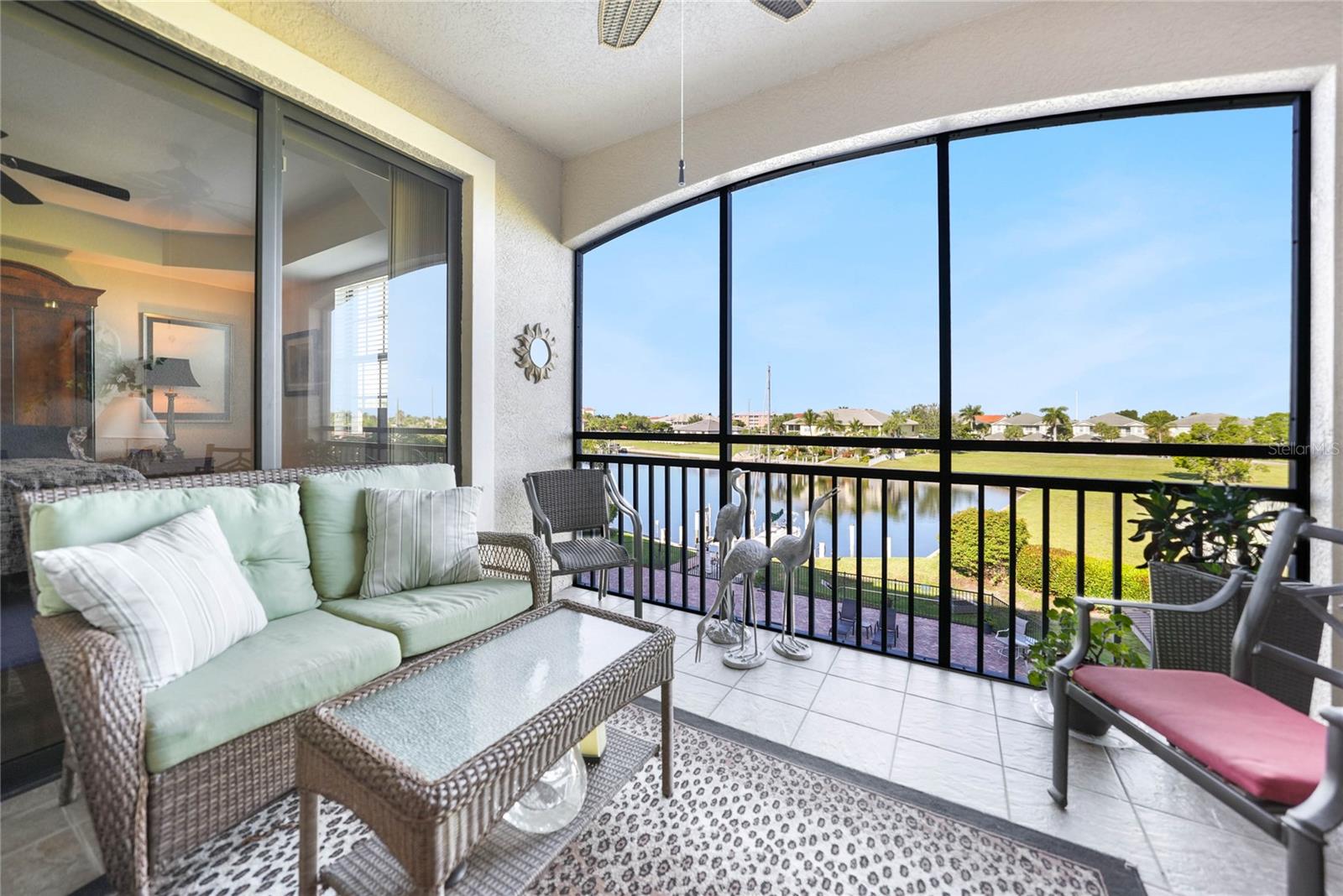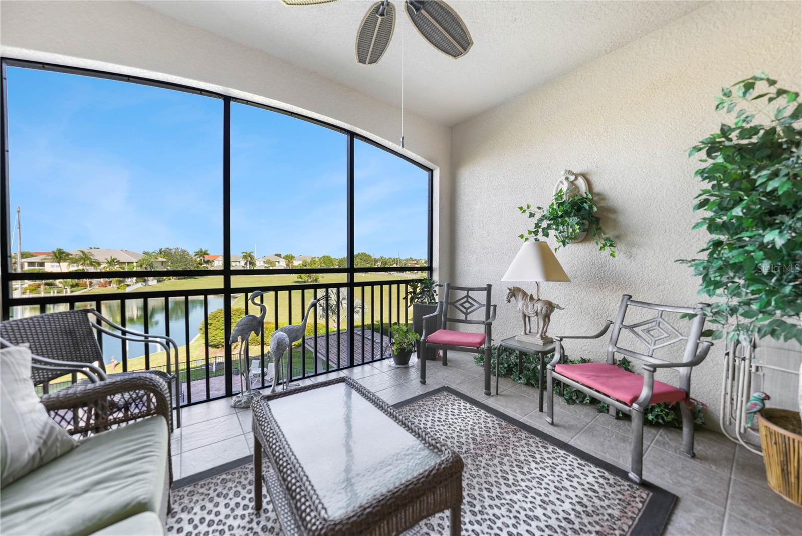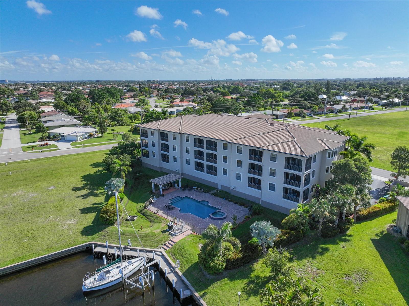 Tastefully updated, move in ready, 3-bedroom 2-bath, 3rd floor unit on a Sailboat Canal. SB4D Compliant Association with Concrete construction, new tile roof, impact rated doors and windows, built to Florida code. Condo features porcelain tile and engineered hardwood floors, granite countertops, large open kitchen with wood cabinets and recessed lighting. The Great room provides plenty of space for entertaining, with sunset views over the saltwater canal. The large master suite has an oversized walk-in closet, glass slider with direct access to the lanai, adjoining bath with a large shower and two vanities. 2 additional bedrooms, guest bath with tub/shower, and laundry room with storage completes the interior space. All windows have recently been fitted with Plantation shutters. The Westerly facing screened lanai presents some of the best views in the building of waterfront, boat docks, heated pool & spa. Watch the manatees and dolphins as they travel through, along with eagles and other birds of prey. Bike, walk, or drive the short distance to downtown Punta Gorda for all your entertainment and shopping needs. Travel less than an hour to Fort Myers or Sarasota for world class beaches, concerts, sporting events, and more. Or just sit back and enjoy your own piece of Southwest Florida. Price includes: one under building gated parking space, one assigned outside space near the elevator, and one enclosed storage room on the first floor. Please view the two attached virtual tour links.