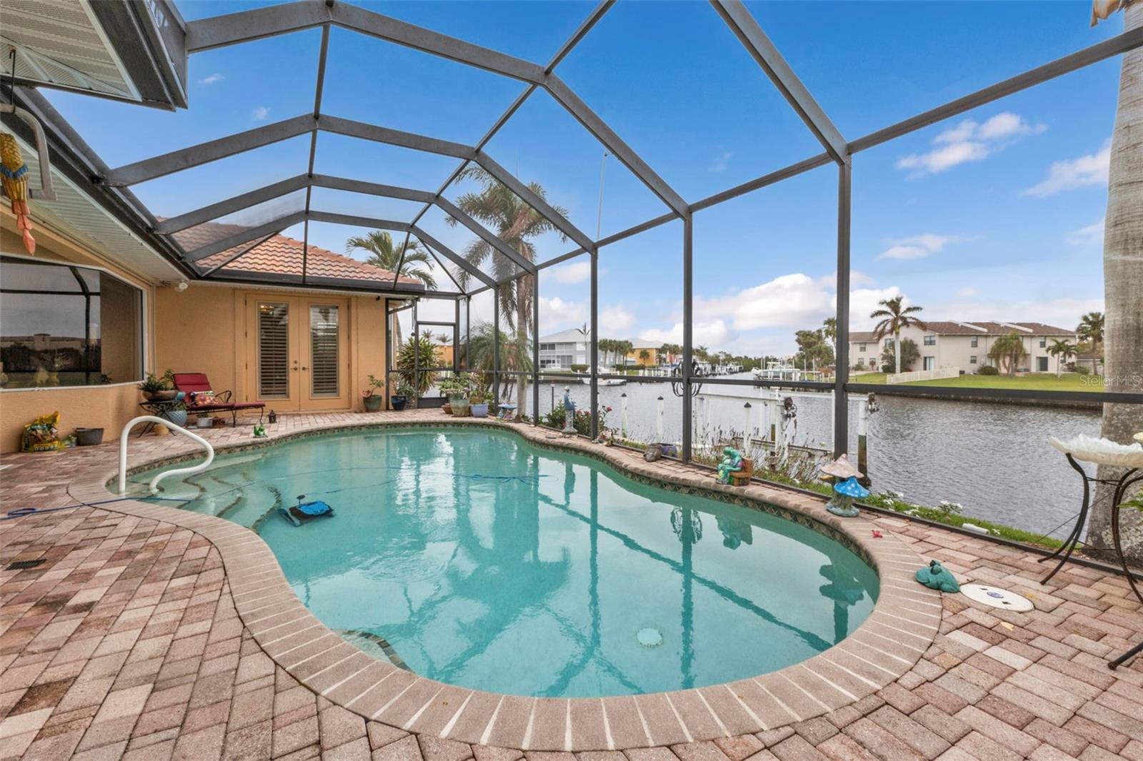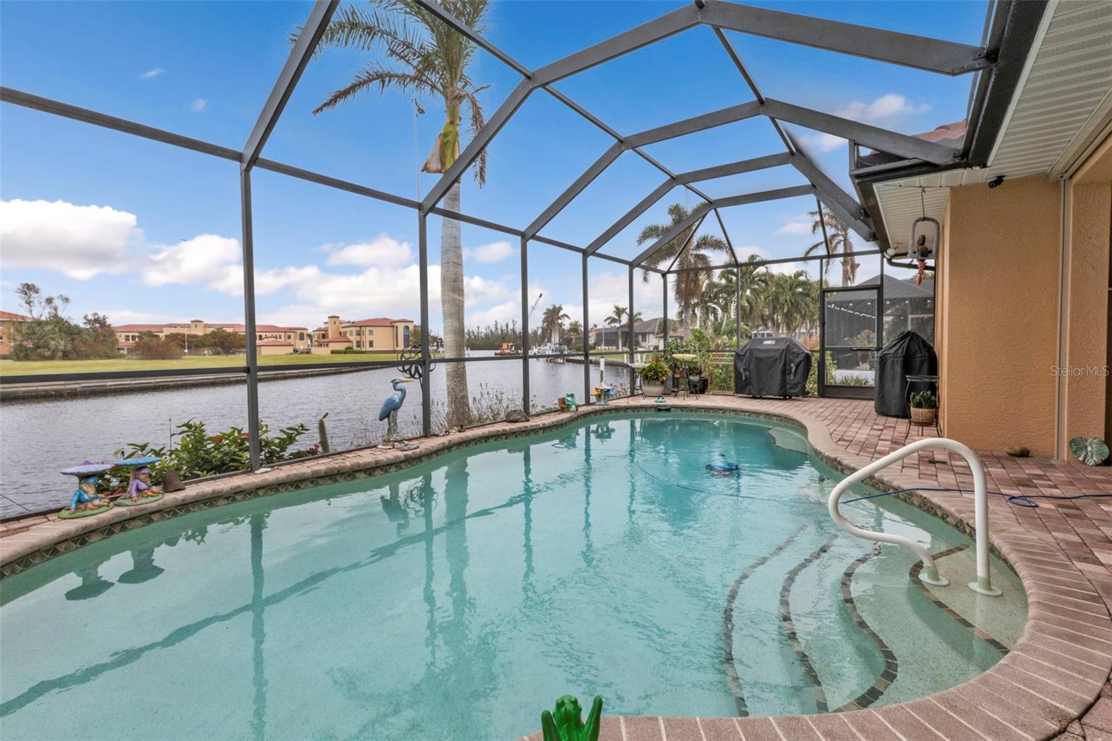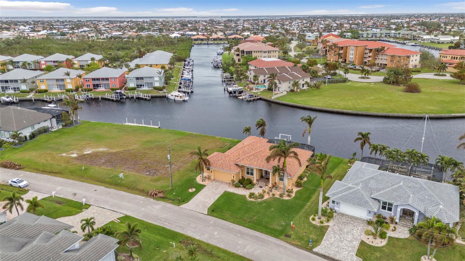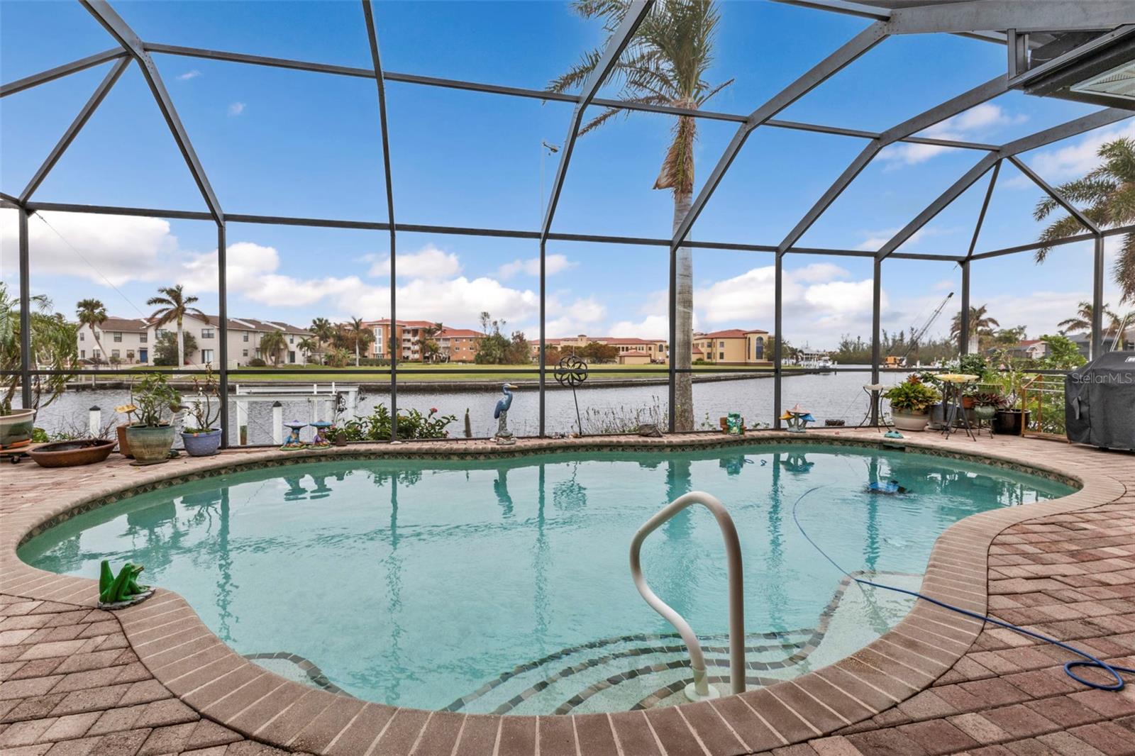 Nestled in the heart of the exclusive waterfront community of Punta Gorda Isles, this exquisite residence captures the essence of luxurious coastal living. Built in 2003 by the esteemed West Coast Builders, this home greets you with a meticulously designed paver driveway and a welcoming front walk. Step inside through the stunning new double glass doors, and let the airy ambiance embrace you. The open floor plan with soaring 13-foot ceilings and an expansive stone fireplace wall, complete with large flat-screen TV, sets the stage for both relaxation and entertainment. The kitchen is a chef’s dream, boasting sleek granite countertops, premium stainless steel appliances from LG and Kenmore Elite, and a layout that makes cooking a joy. Every door in the home is crafted from solid core wood, standing at an impressive 8 feet tall, lending an air of quality and sophistication. Plus, the home’s Man-a-Block plumbing system and generator-wired electrical panel provide peace of mind, offering both functionality and resilience. The air-conditioned garage, with its epoxy-coated floor, workshop space, and overhead storage, is perfect for hobbyists and organizers alike. Designed for the ultimate Florida lifestyle, the outdoor amenities are unmatched: a sparkling pool with new variable-speed pump, heat pump, and saltwater system are complemented by updated double-pane low-e windows, Kevlar hurricane panels, and a full suite of security alarm and cameras for worry-free living. At the water’s edge, a 30’ concrete dock with a 10,000-lb boat lift and direct canal access invites you to explore the open waters of Charlotte Harbor and the Gulf of Mexico. Be to open water in approximately 20 minutes by way of Buckley's Pass! With its new landscaping, soffits, lighting, and roof, every corner of this home has been thoughtfully refreshed and upgraded. Don’t miss this rare opportunity to experience a lifestyle where elegance meets the water’s edge.