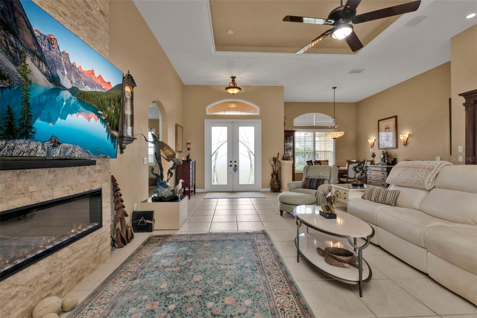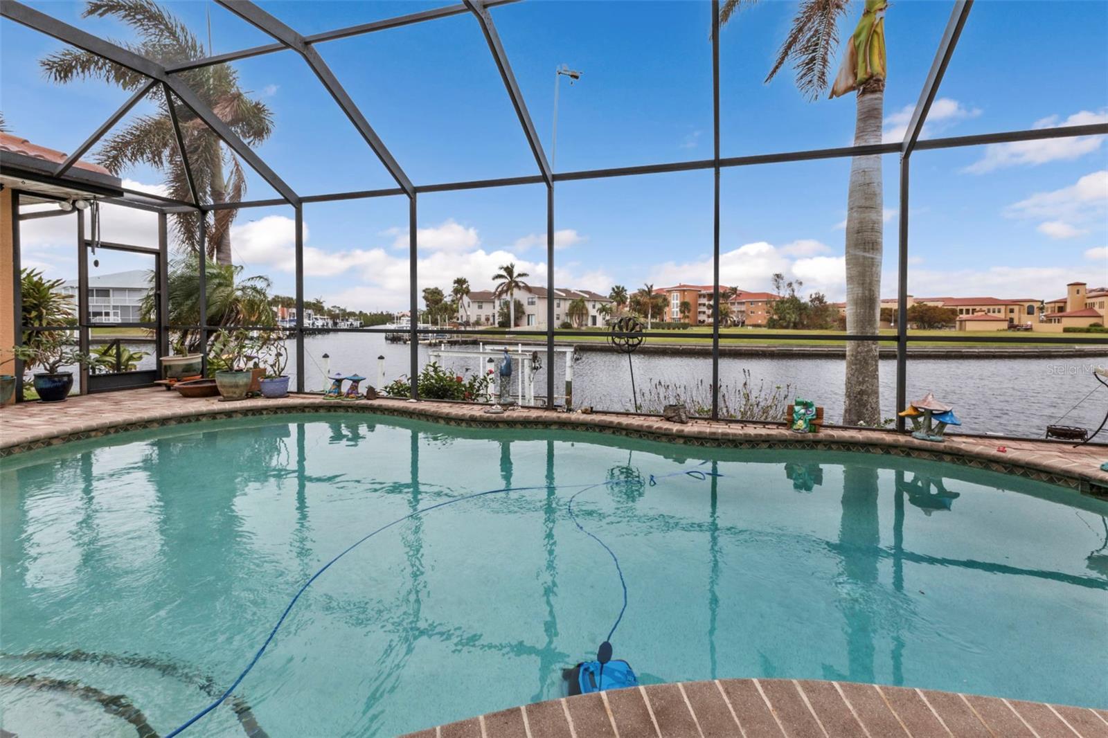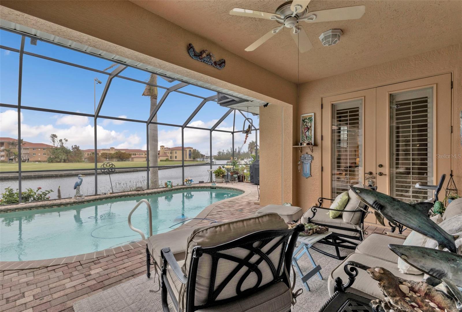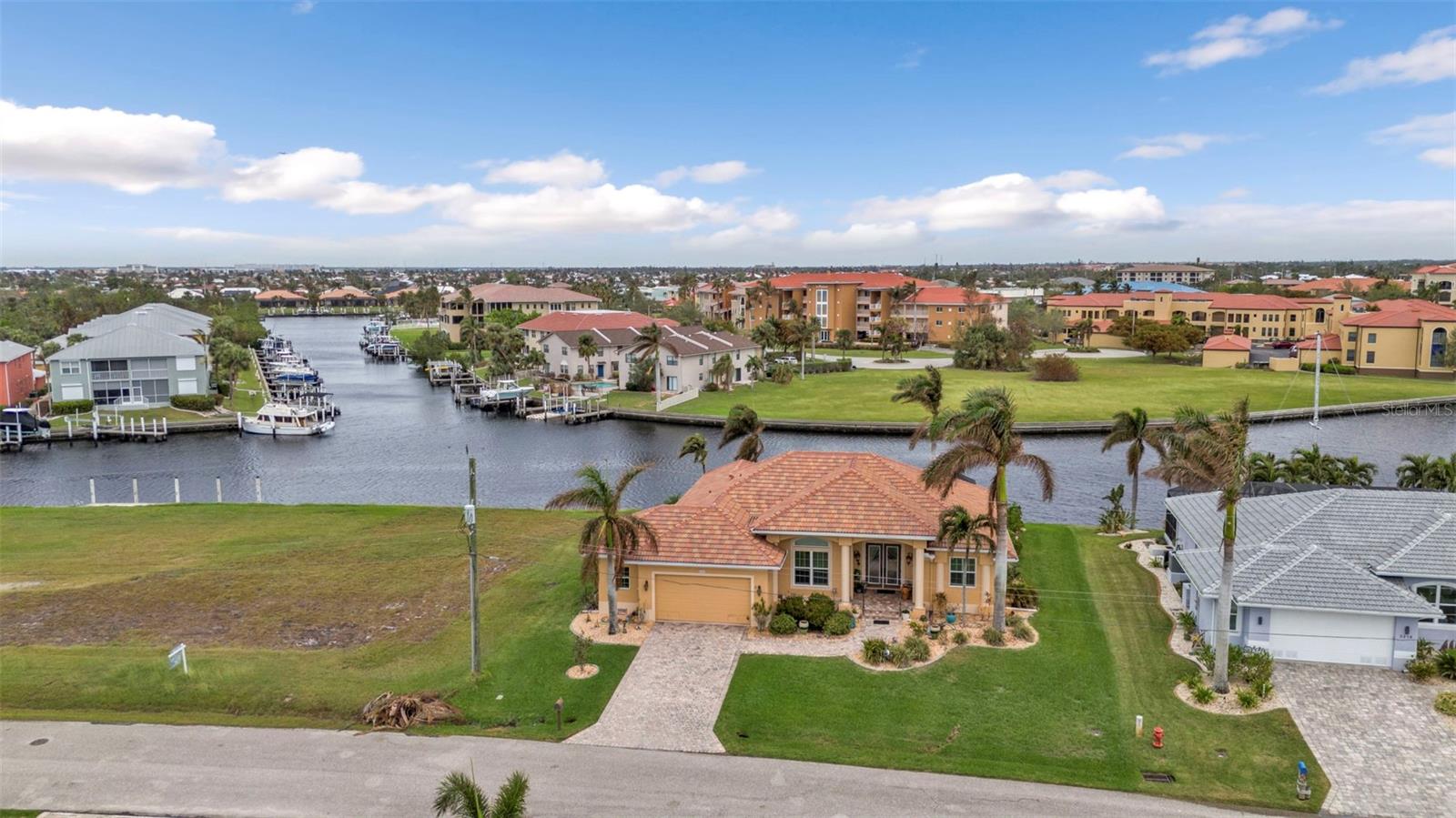 Nestled in the heart of the exclusive waterfront community of Punta Gorda Isles, this exquisite residence captures the essence of luxurious coastal living. Built in 2003 by the esteemed West Coast Builders, this home greets you with a meticulously designed paver driveway and a welcoming front walk. Step inside through the stunning new double glass doors, and let the airy ambiance embrace you. The open floor plan with soaring 13-foot ceilings and an expansive stone fireplace wall, complete with large flat-screen TV, sets the stage for both relaxation and entertainment. The kitchen is a chef’s dream, boasting sleek granite countertops, premium stainless steel appliances from LG and Kenmore Elite, and a layout that makes cooking a joy. Every door in the home is crafted from solid core wood, standing at an impressive 8 feet tall, lending an air of quality and sophistication. Plus, the home’s Man-a-Block plumbing system and generator-wired electrical panel provide peace of mind, offering both functionality and resilience. The air-conditioned garage, with its epoxy-coated floor, workshop space, and overhead storage, is perfect for hobbyists and organizers alike. Designed for the ultimate Florida lifestyle, the outdoor amenities are unmatched: a sparkling pool with new variable-speed pump, heat pump, and saltwater system are complemented by updated double-pane low-e windows, Kevlar hurricane panels, and a full suite of security alarm and cameras for worry-free living. At the water’s edge, a 30’ concrete dock with a 10,000-lb boat lift and direct canal access invites you to explore the open waters of Charlotte Harbor and the Gulf of Mexico. Be to open water in approximately 20 minutes by way of Buckley's Pass! With its new landscaping, soffits, lighting, and roof, every corner of this home has been thoughtfully refreshed and upgraded. Don’t miss this rare opportunity to experience a lifestyle where elegance meets the water’s edge.