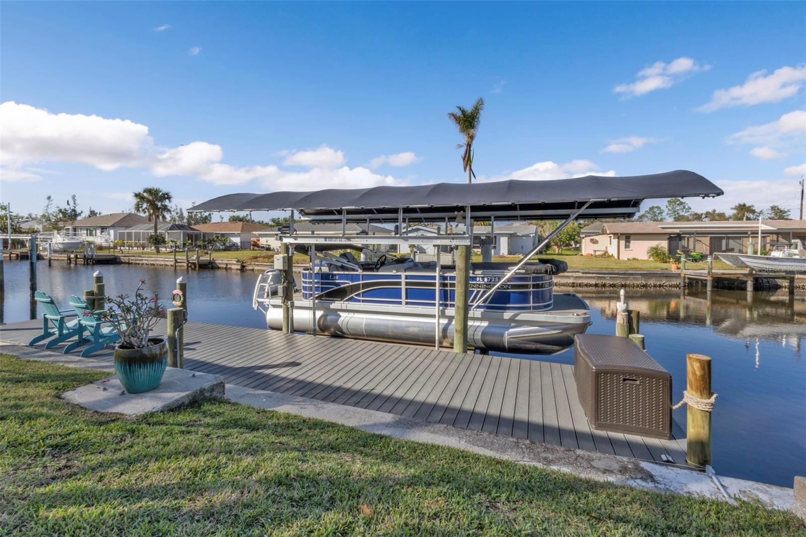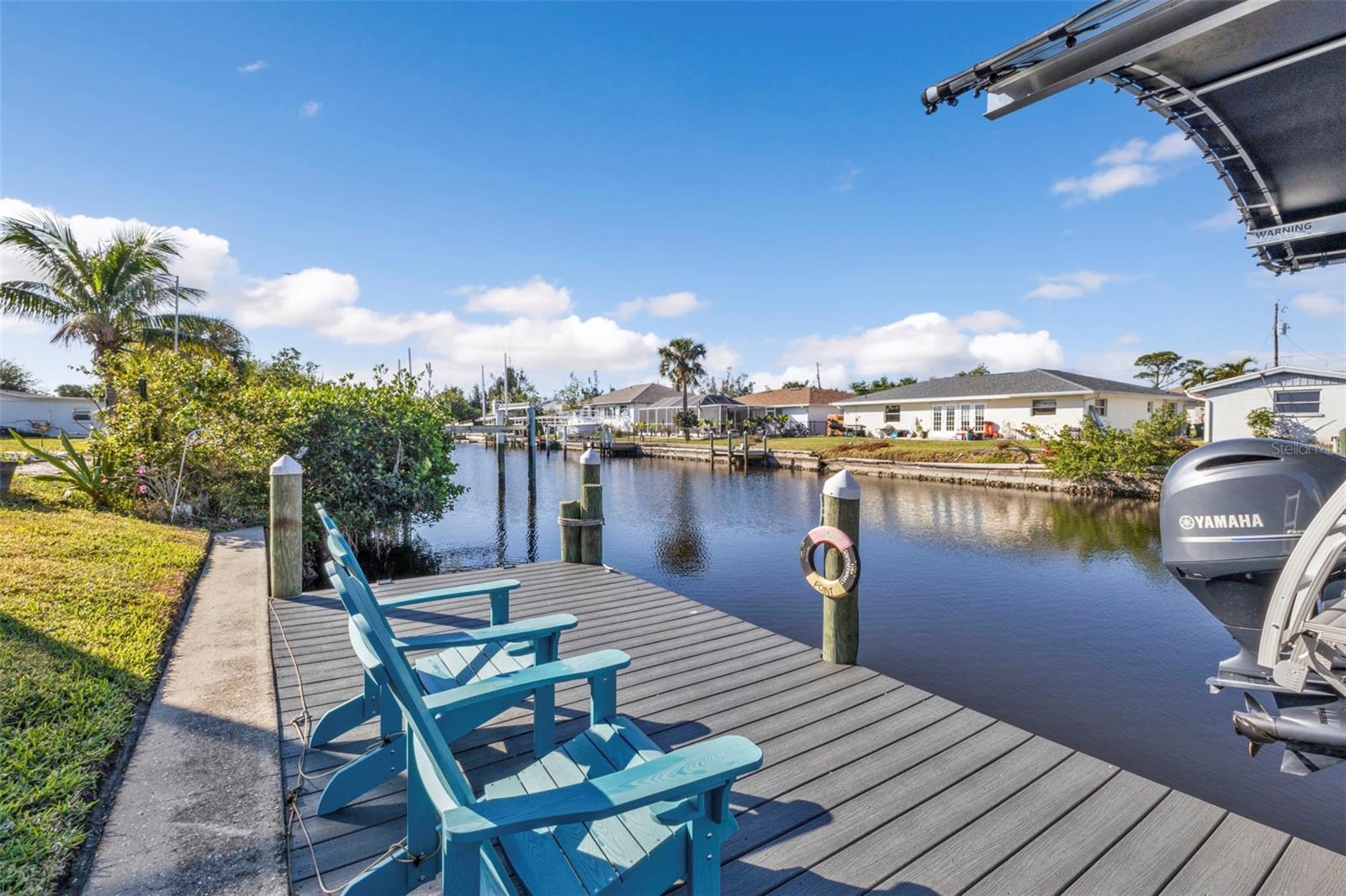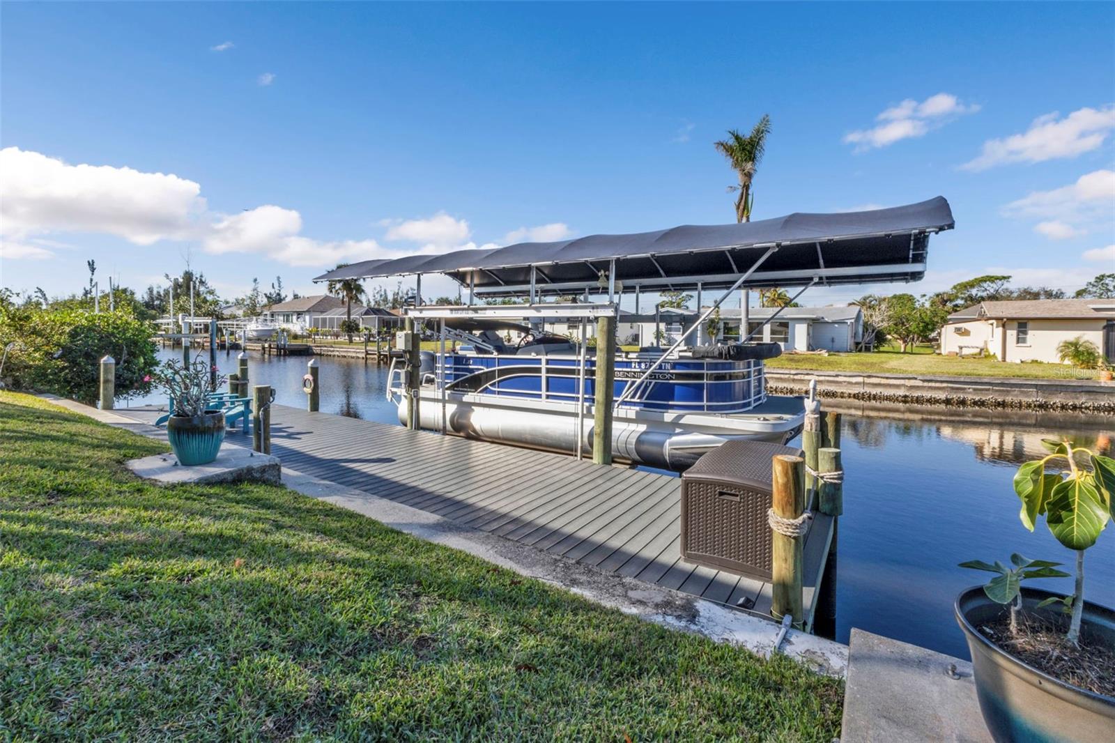 **PRICE REDUCED** 2-bedroom, 2-bath layout features luxury vinyl and tile flooring throughout!! Never flooded and built on a 3–5 foot stem wall for added elevation, this fully renovated waterfront home in Punta Gorda, FL offers peace of mind & has a short ride to Charlotte Harbor & out to the Gulf—perfect for boaters. ****A 39 ft composite dock (2020) **** 10,000 lb COVERED BOAT LIFT **** 74 ft concrete seawall **** and HEATED SALTWATER POOL (2023) with sun ledge, brick paver deck, and screened lanai create the ultimate Florida outdoor lifestyle. **** VAULTED CEILINGS **** and a bright, open great room with water views. The updated kitchen includes GRANITE COUNTERTOPS, STAINLESS STEEL APPLIANCES, and white wood cabinets. The spacious primary suite has private pool access, a walk-in closet, and an elegant ensuite with dual sinks, garden tub, and walk-in shower. Additional highlights include Whole house MOUNTED SLIDING HURRICANE SHUTTERS (so no installing shutters before storms) **** NEW A/C (2024) **** IRRIGATION SPRINKLER SYSTEM **** and generator-ready setup with 30amp & 50amp outlets and transfer switch. Transferable flood insurance is available. Located just minutes from downtown Punta Gorda, Fishermen’s Village, parks, trails, pickleball courts, and waterfront dining—this home is your gateway to the Florida lifestyle.