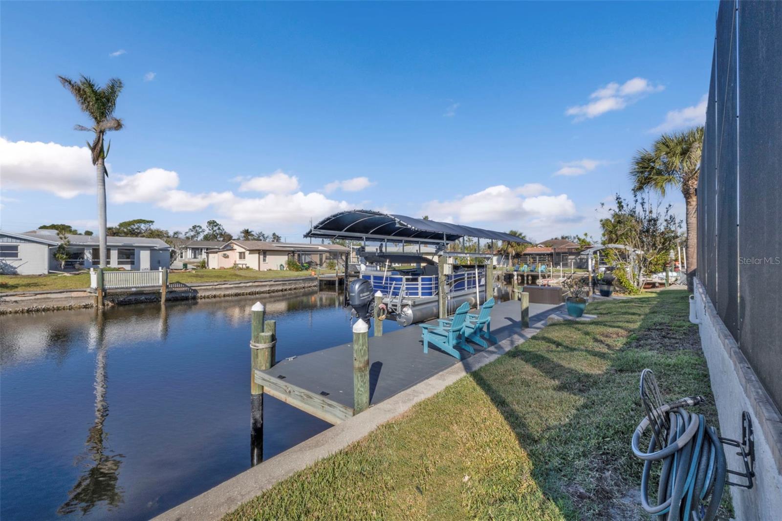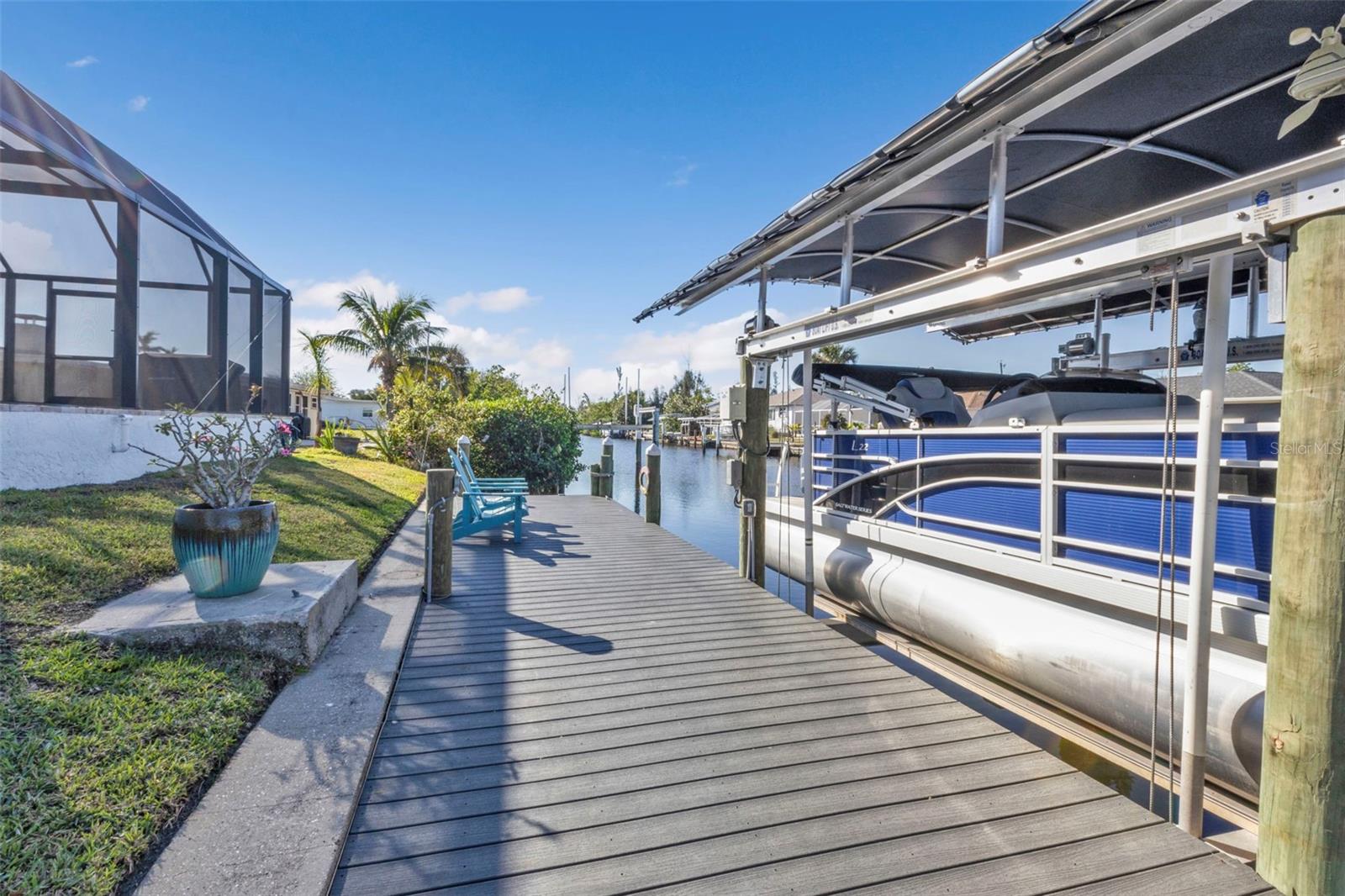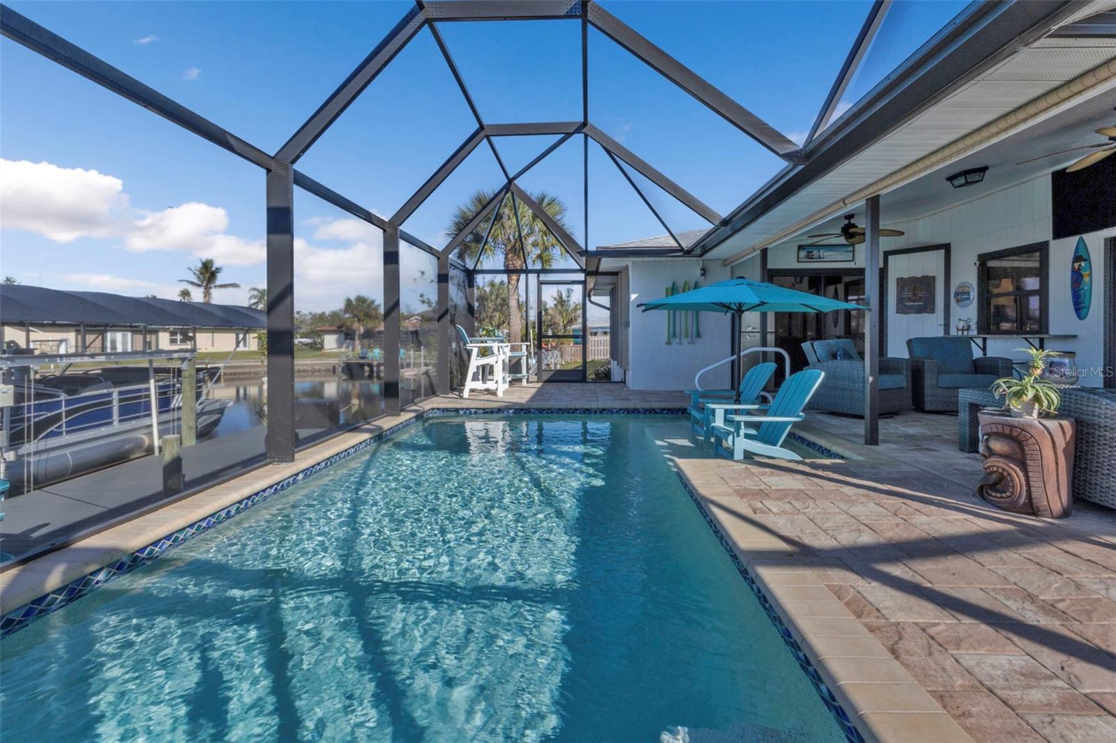 **PRICE REDUCED** 2-bedroom, 2-bath layout features luxury vinyl and tile flooring throughout!! Never flooded and built on a 3–5 foot stem wall for added elevation, this fully renovated waterfront home in Punta Gorda, FL offers peace of mind & has a short ride to Charlotte Harbor & out to the Gulf—perfect for boaters. ****A 39 ft composite dock (2020) **** 10,000 lb COVERED BOAT LIFT **** 74 ft concrete seawall **** and HEATED SALTWATER POOL (2023) with sun ledge, brick paver deck, and screened lanai create the ultimate Florida outdoor lifestyle. **** VAULTED CEILINGS **** and a bright, open great room with water views. The updated kitchen includes GRANITE COUNTERTOPS, STAINLESS STEEL APPLIANCES, and white wood cabinets. The spacious primary suite has private pool access, a walk-in closet, and an elegant ensuite with dual sinks, garden tub, and walk-in shower. Additional highlights include Whole house MOUNTED SLIDING HURRICANE SHUTTERS (so no installing shutters before storms) **** NEW A/C (2024) **** IRRIGATION SPRINKLER SYSTEM **** and generator-ready setup with 30amp & 50amp outlets and transfer switch. Transferable flood insurance is available. Located just minutes from downtown Punta Gorda, Fishermen’s Village, parks, trails, pickleball courts, and waterfront dining—this home is your gateway to the Florida lifestyle.